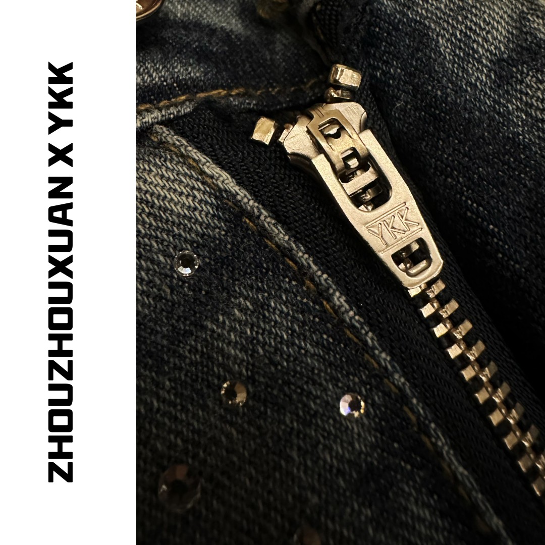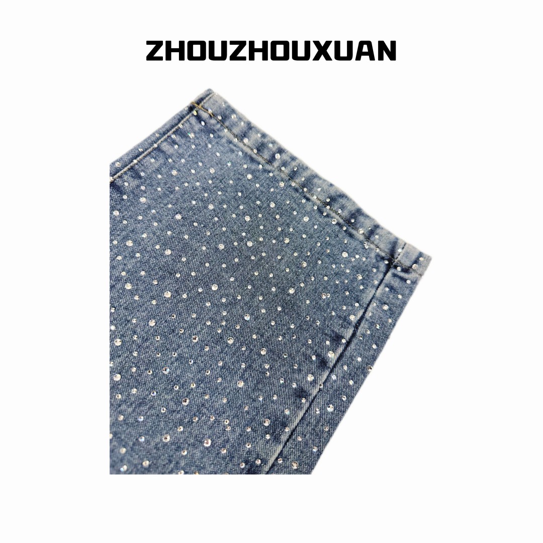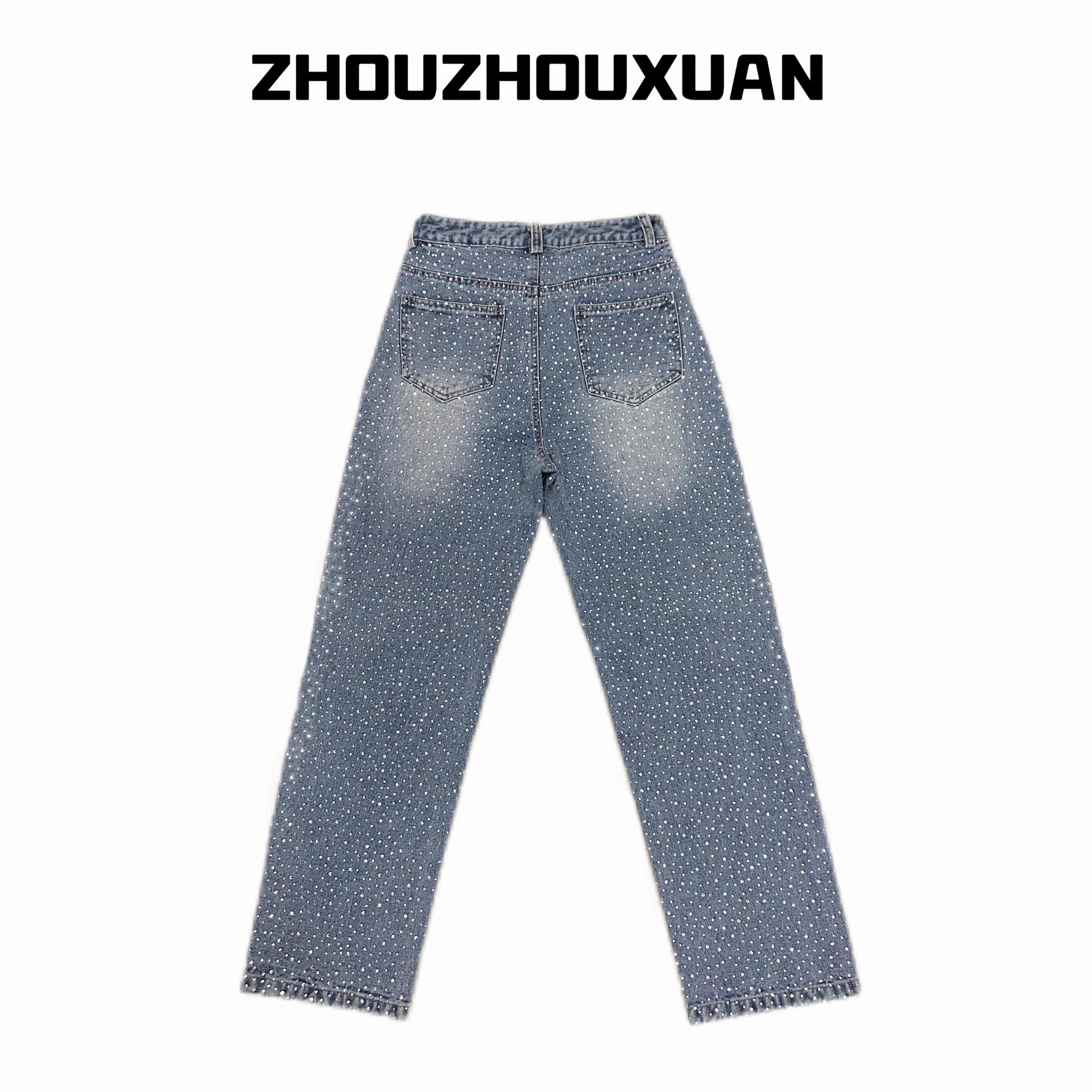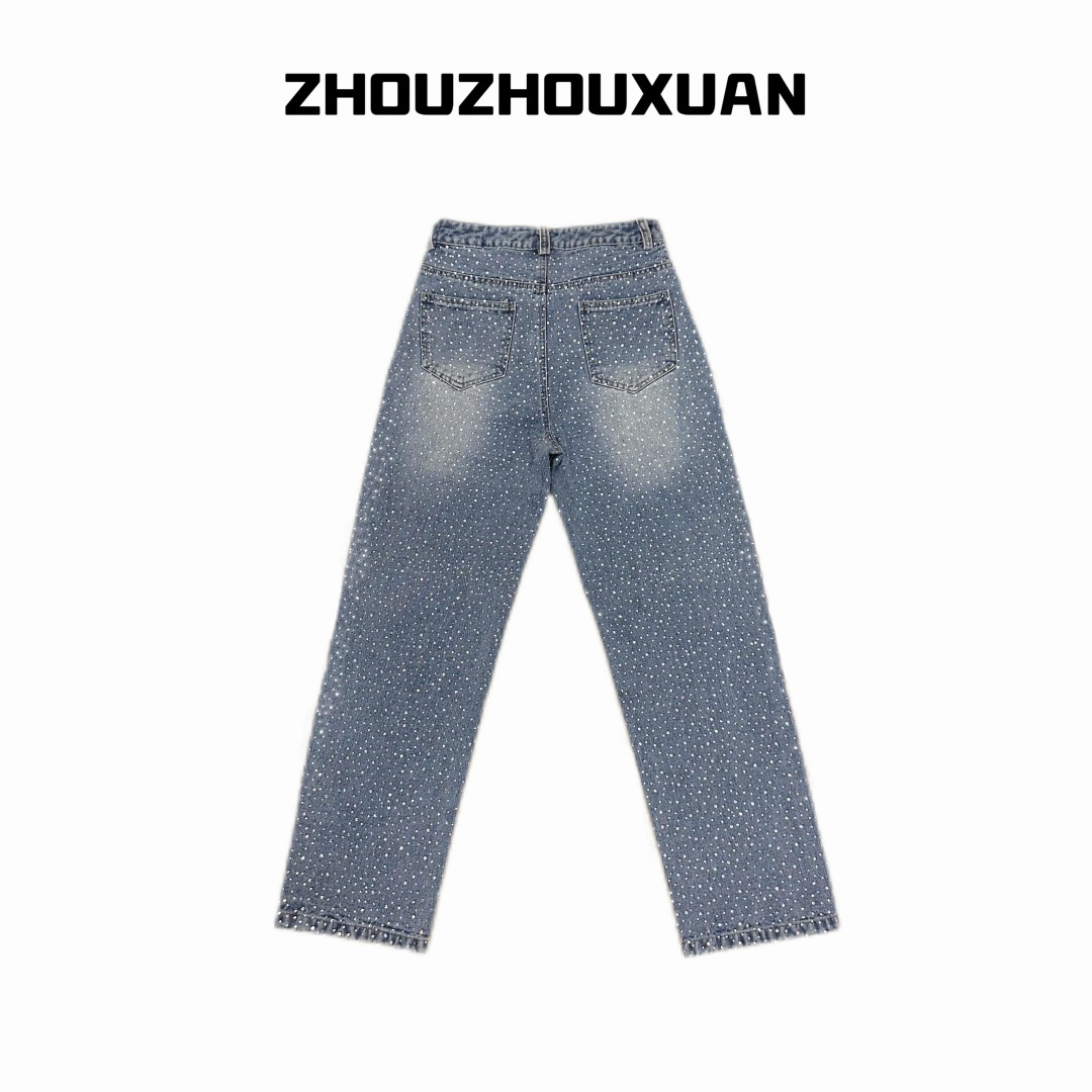 Rhinestone Star Wash Straight Denim Jeans WN20696