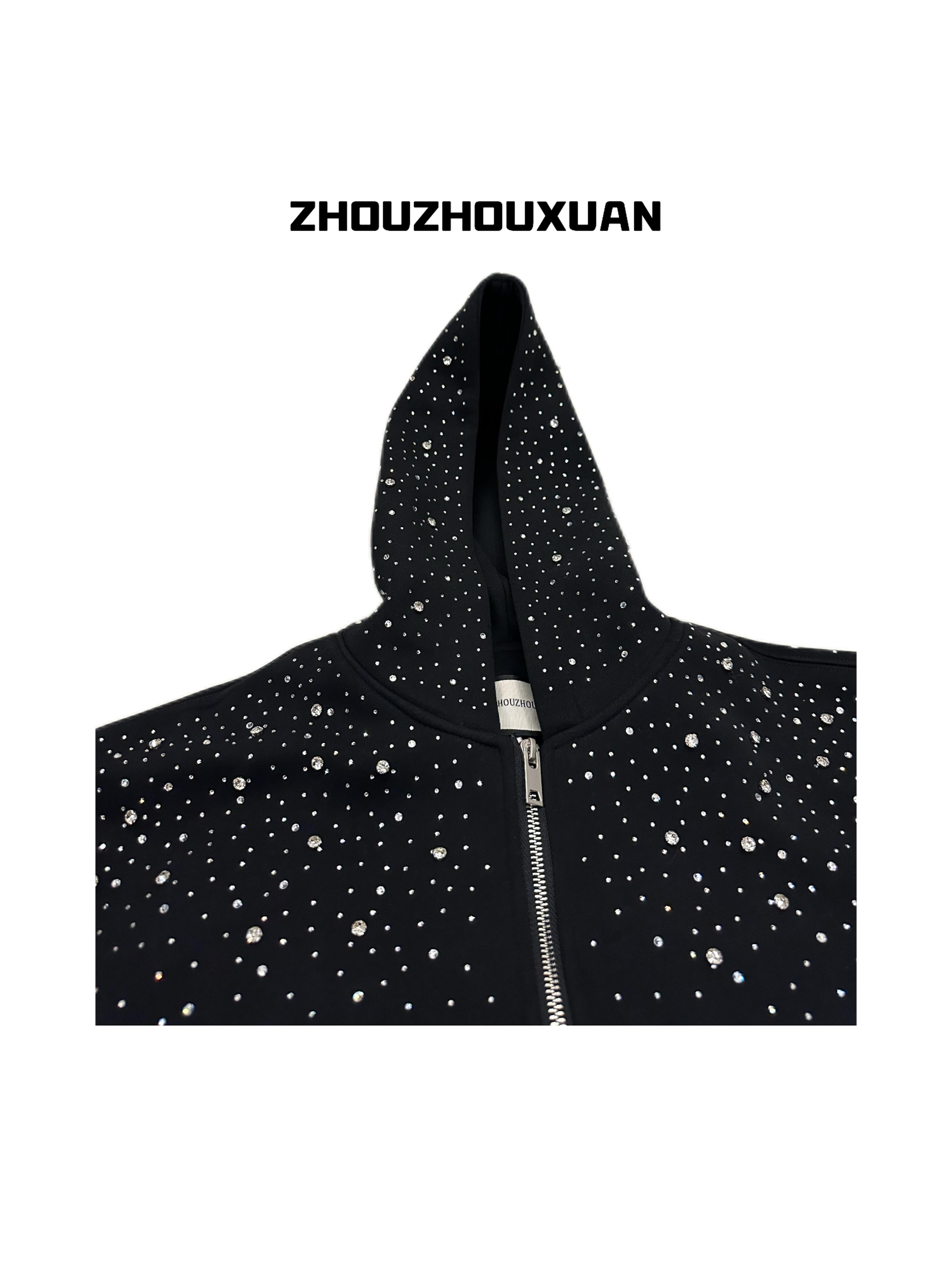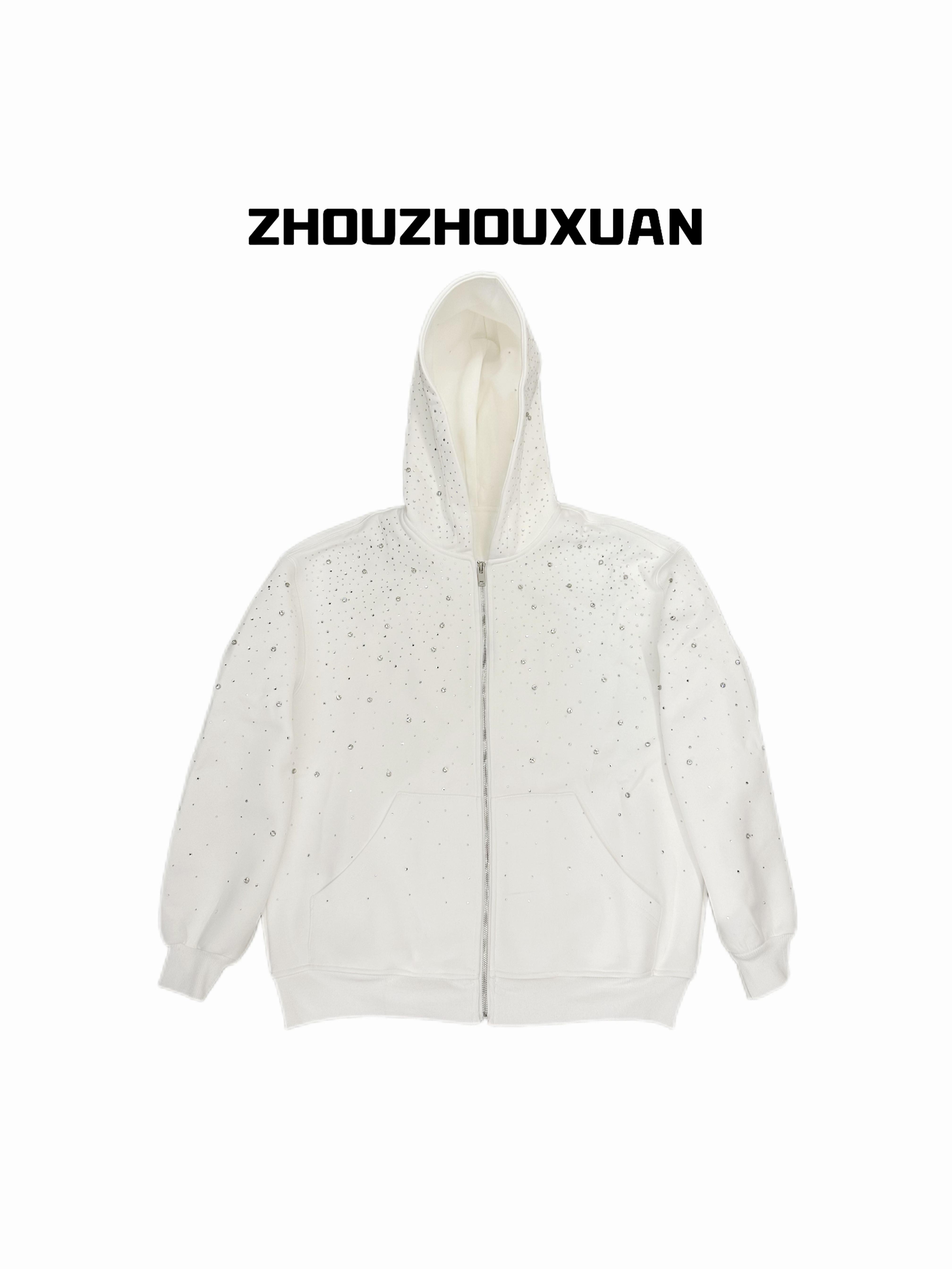 Rhinestone Star Heavyweight Zipper Hoodie WN20721