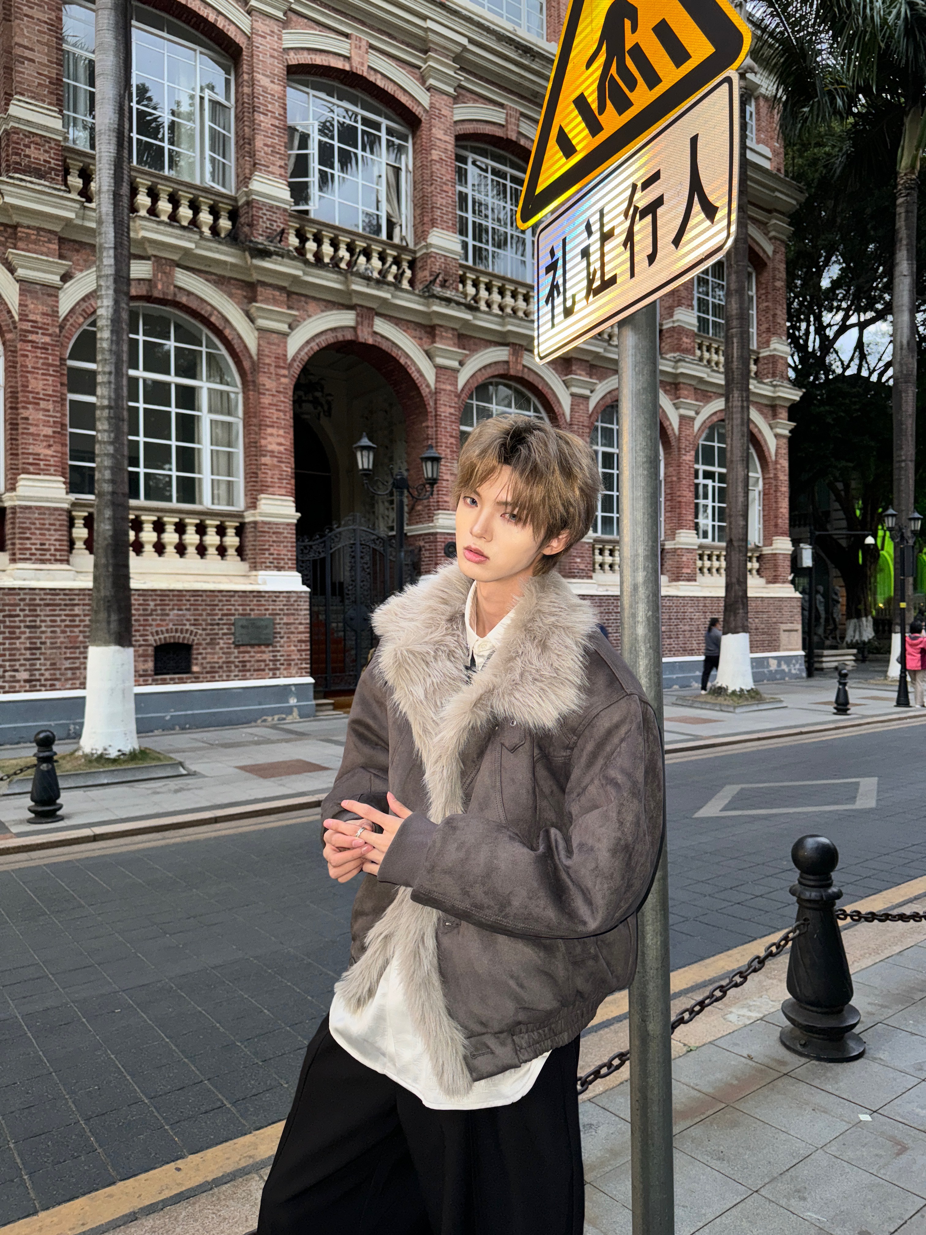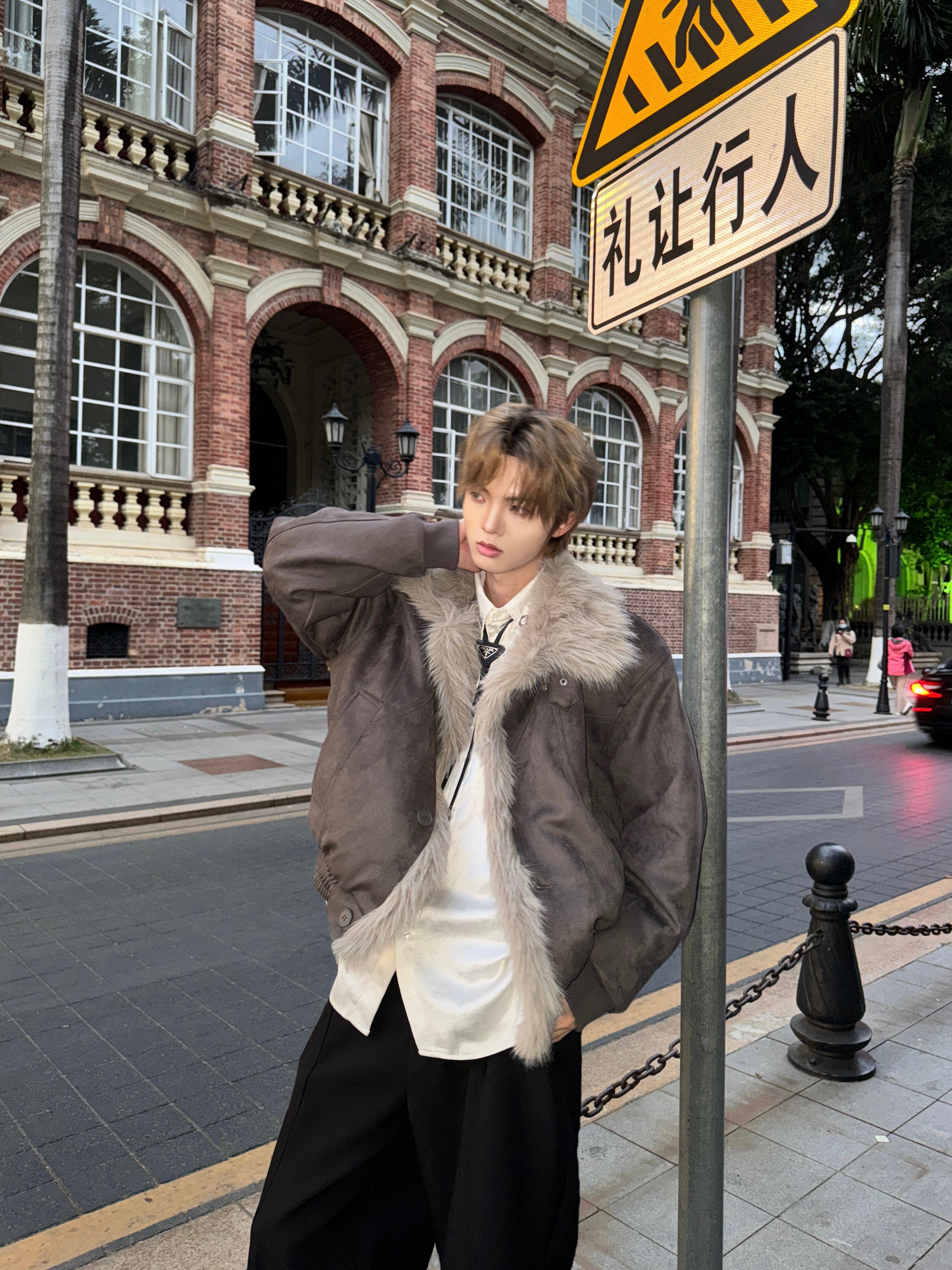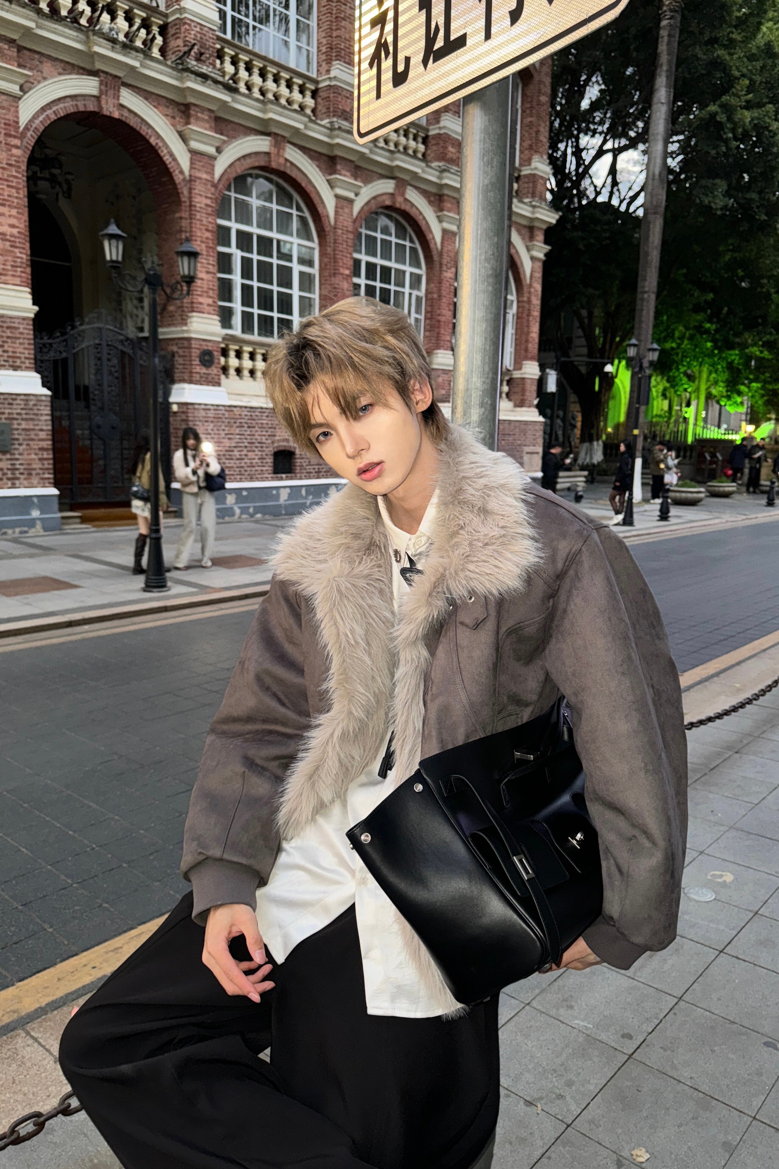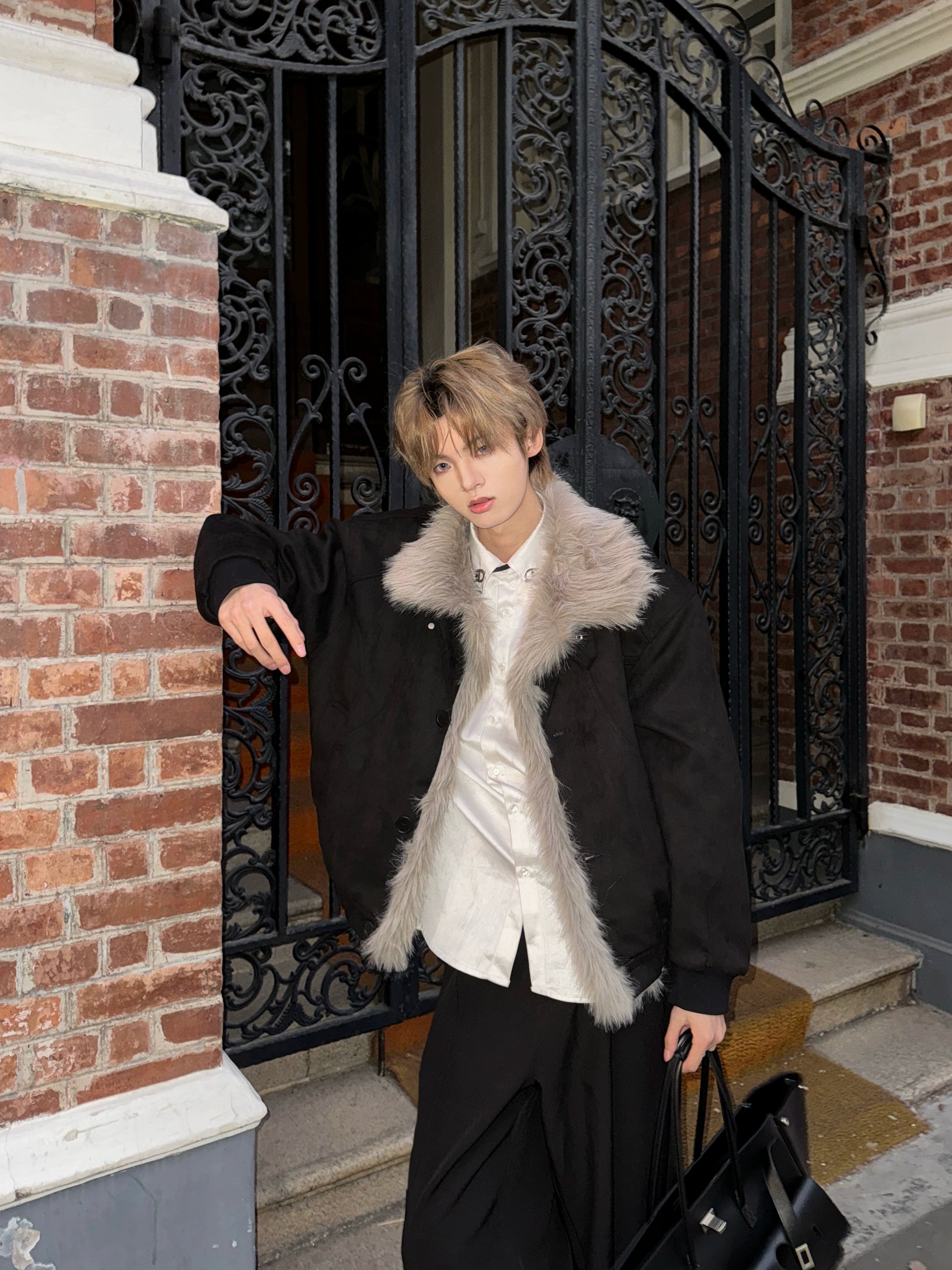 Suede Fake Fur Collar Thick Puffer Jacket WN20727