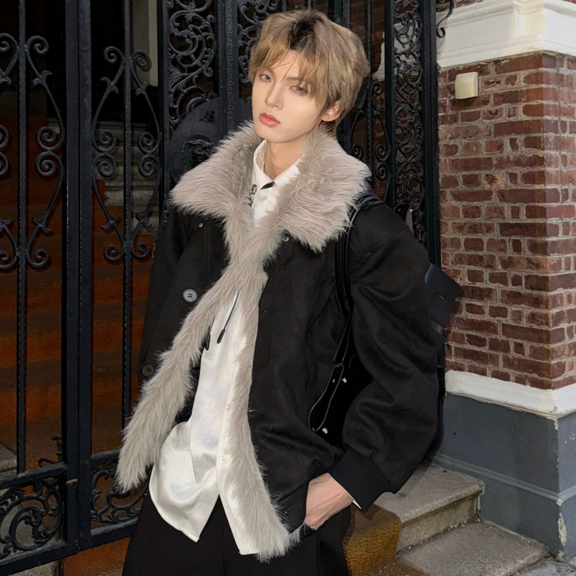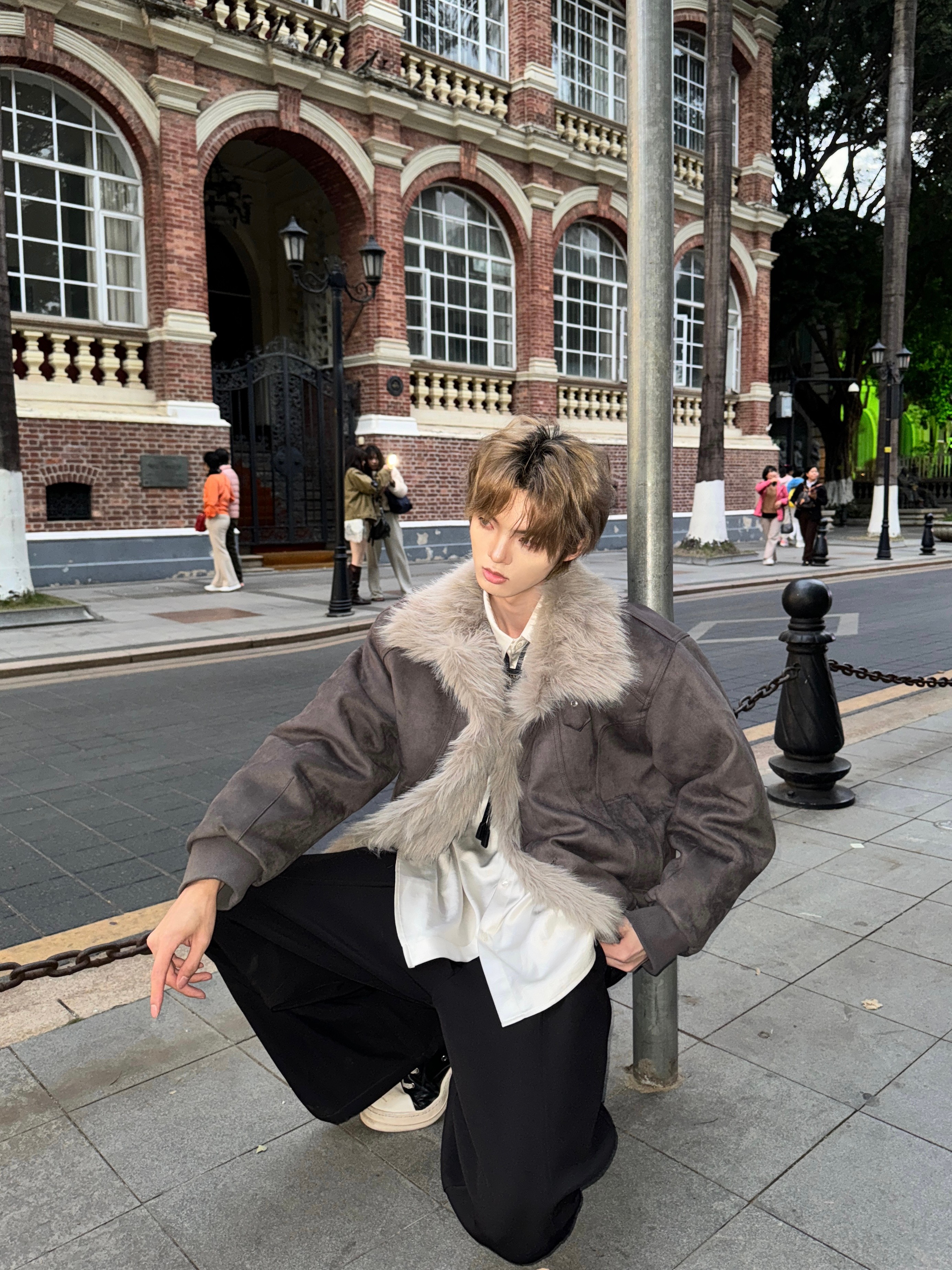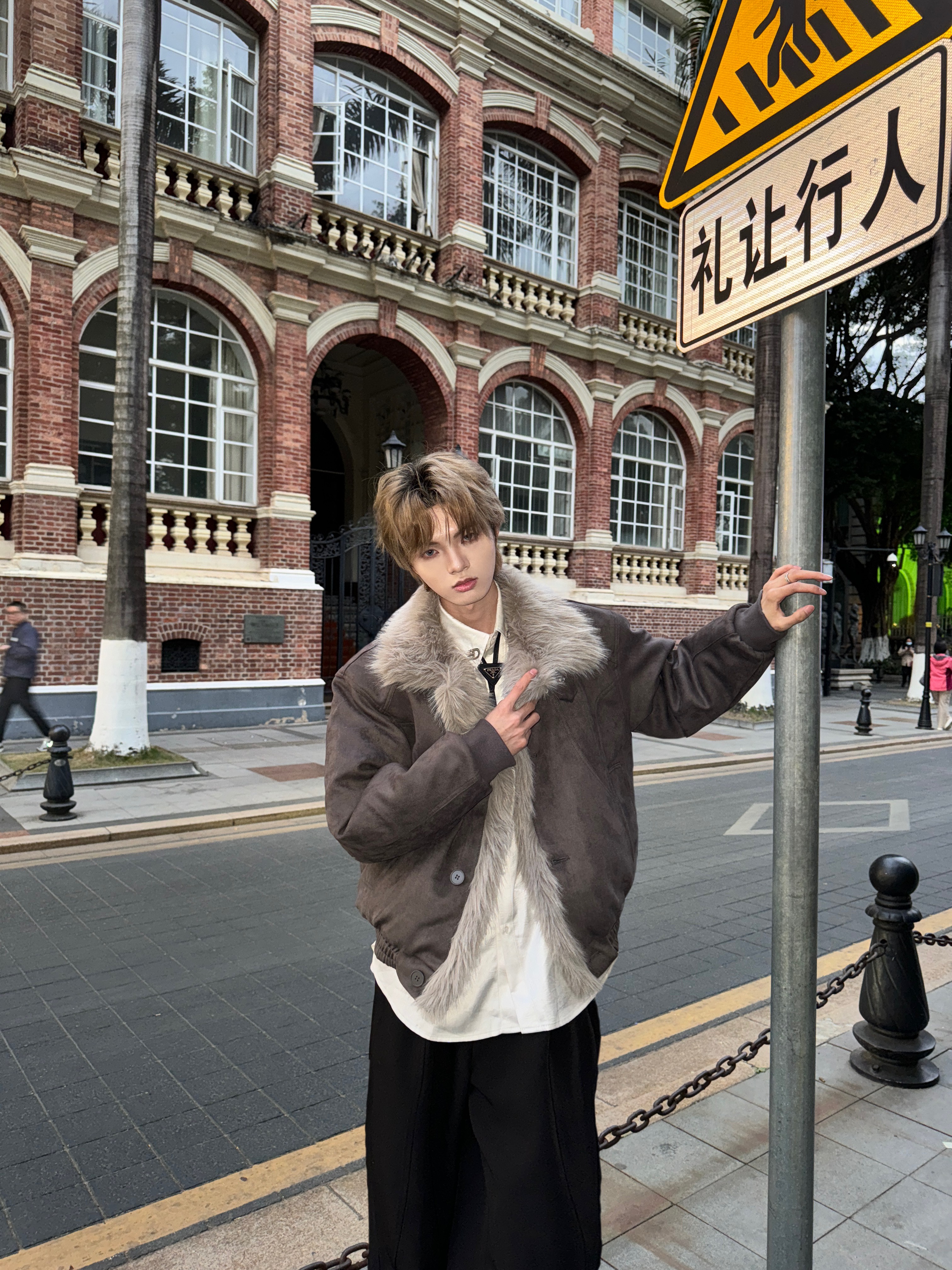 Suede Fake Fur Collar Thick Puffer Jacket WN20727