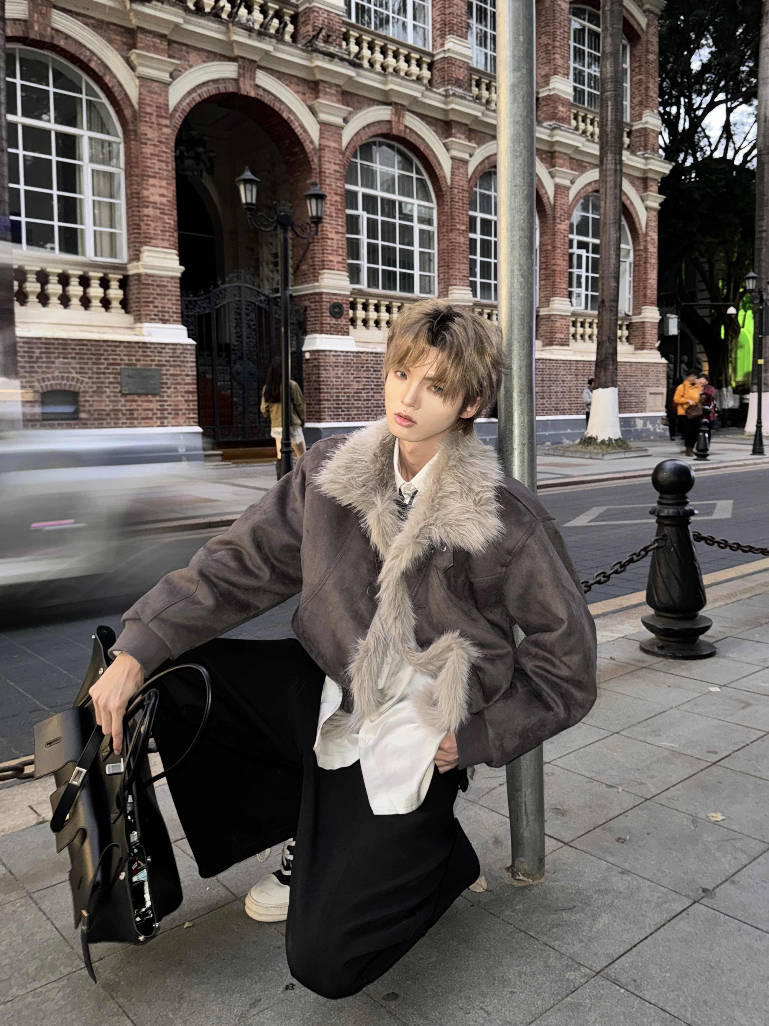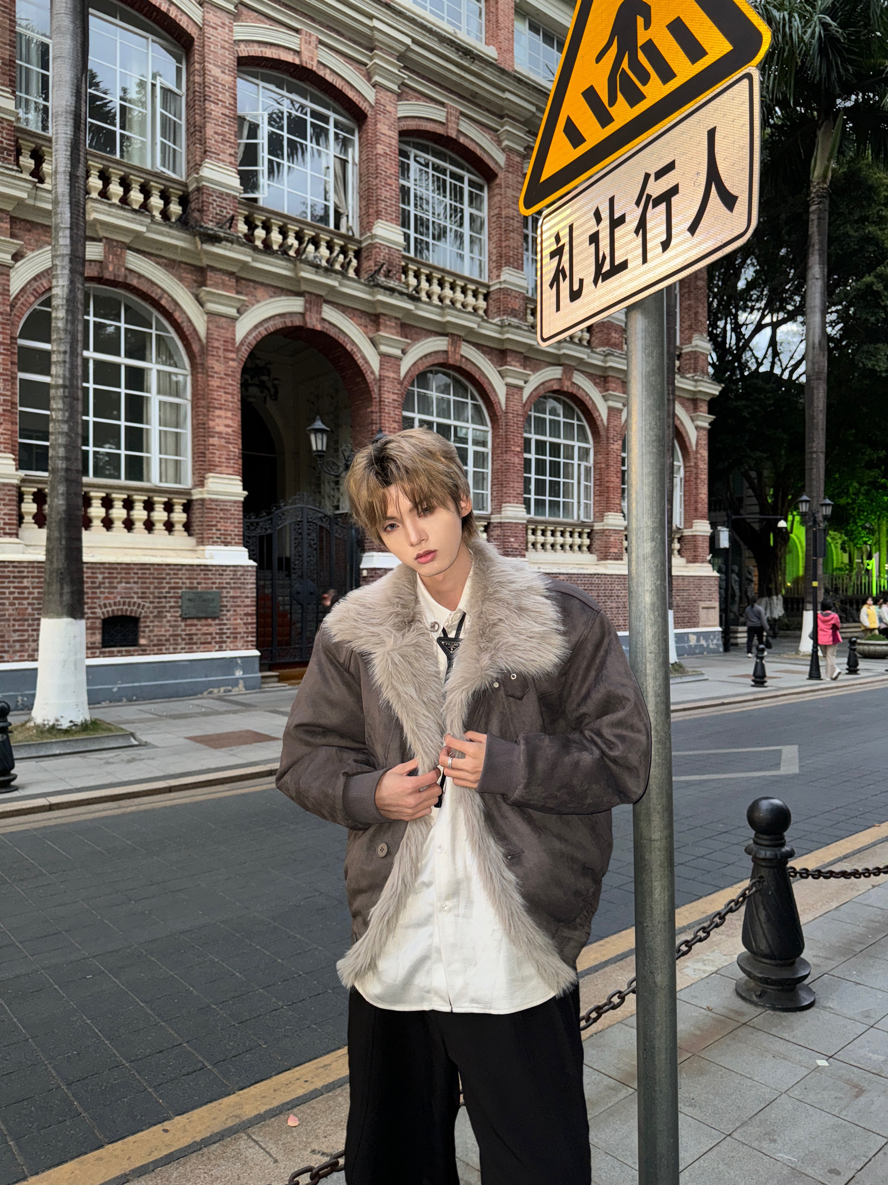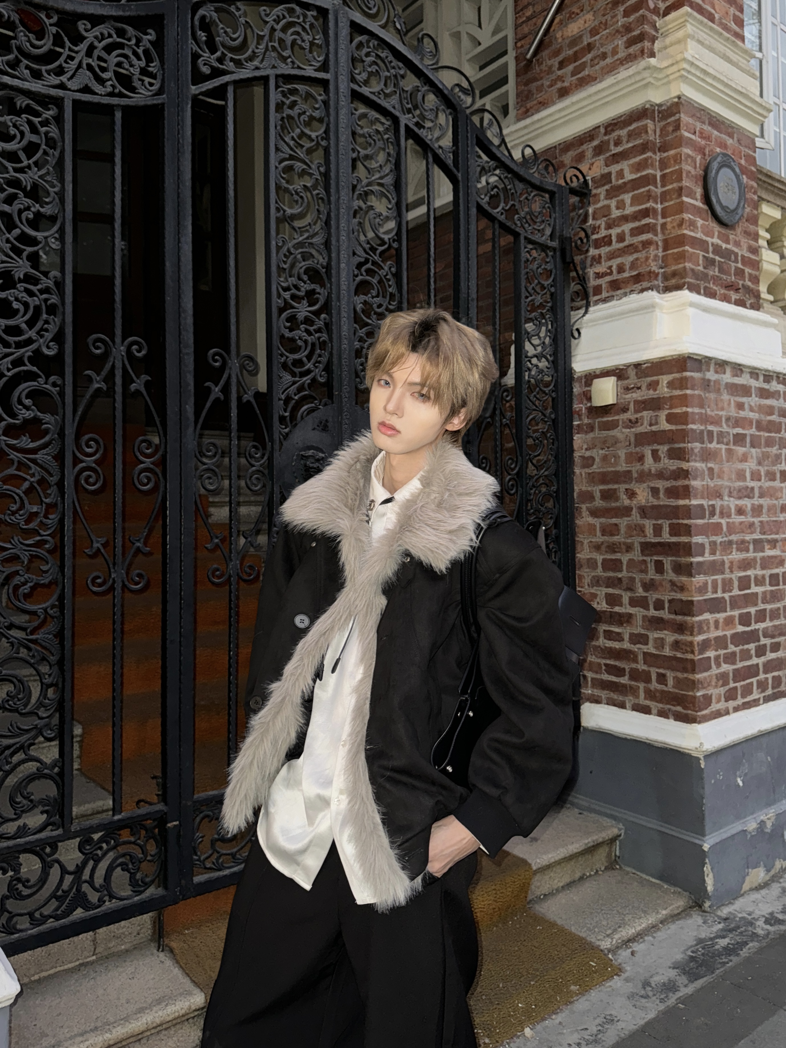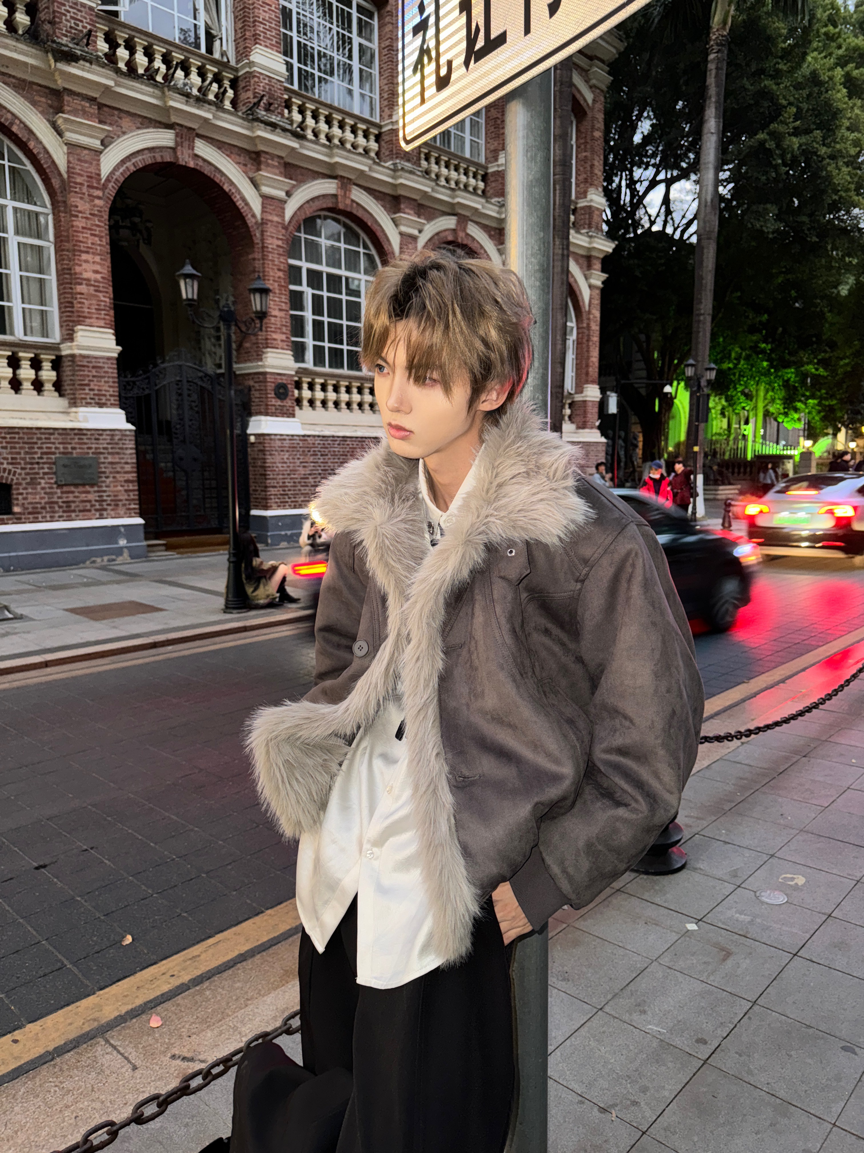 Suede Fake Fur Collar Thick Puffer Jacket WN20727