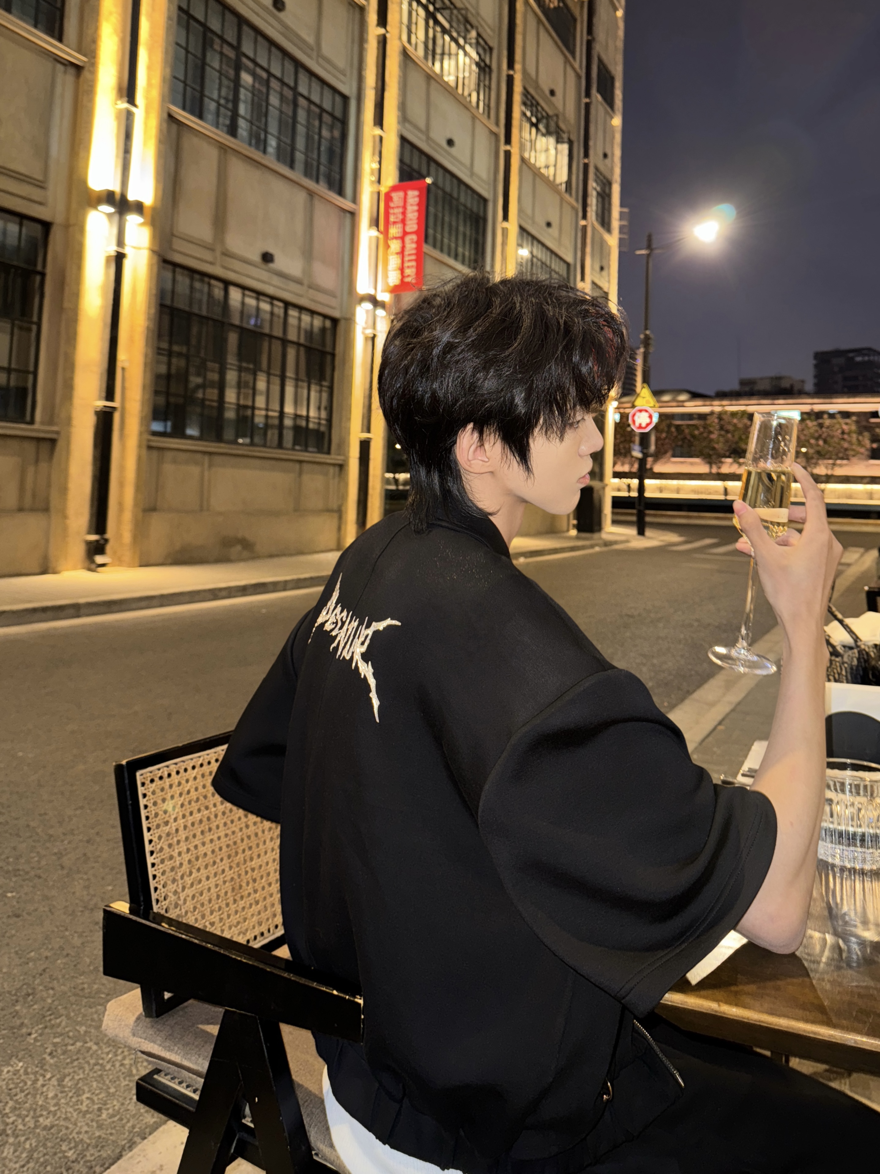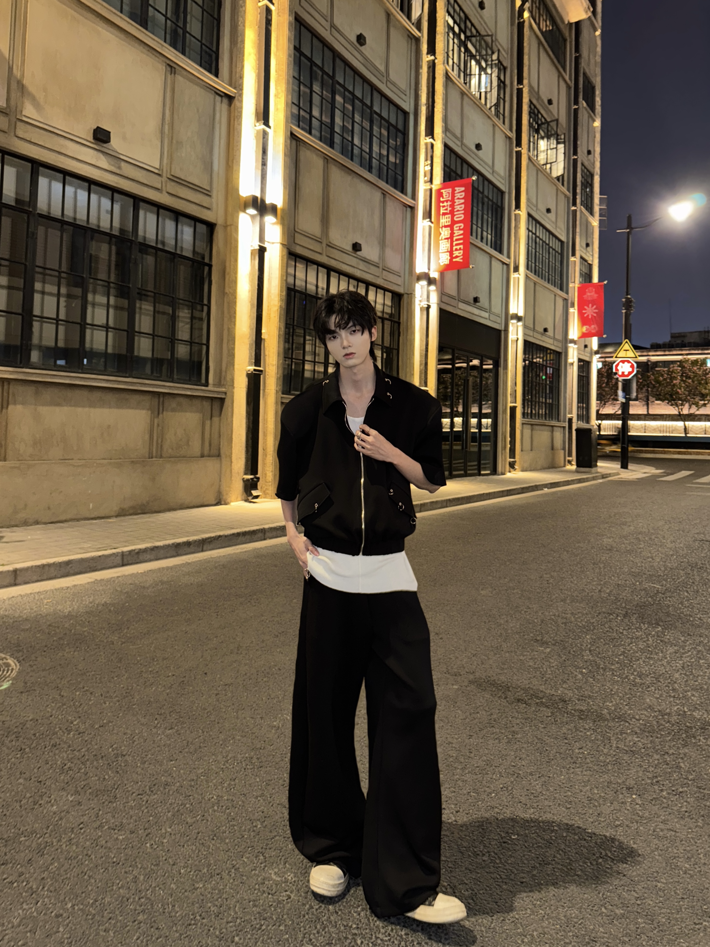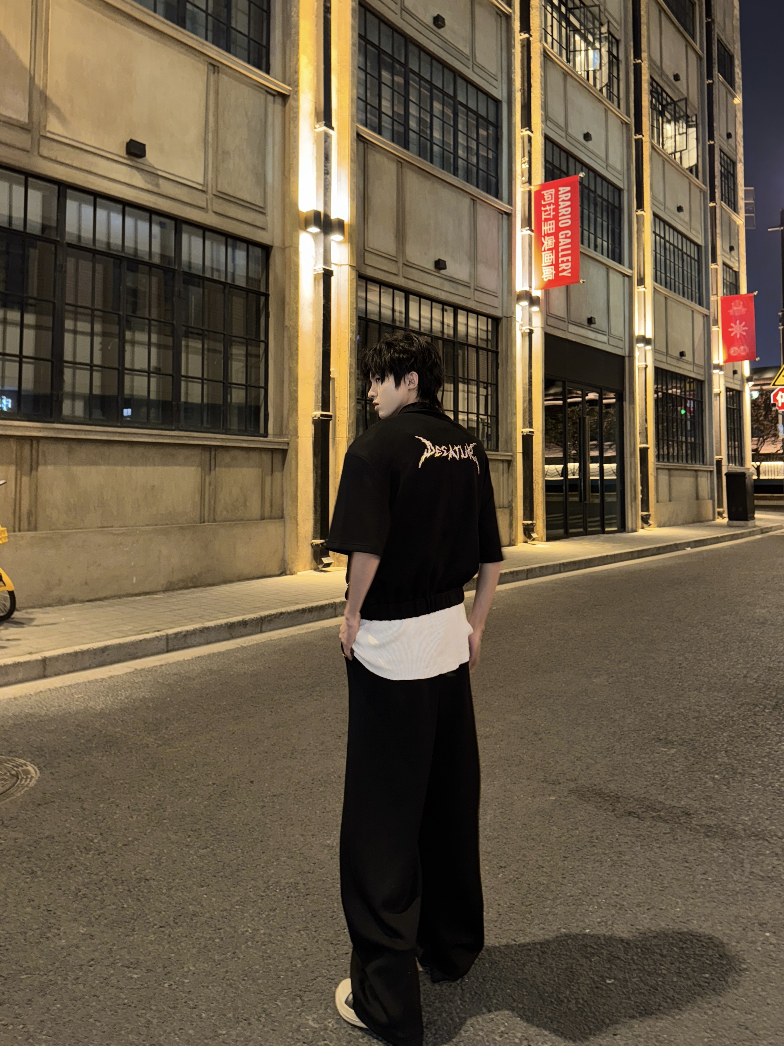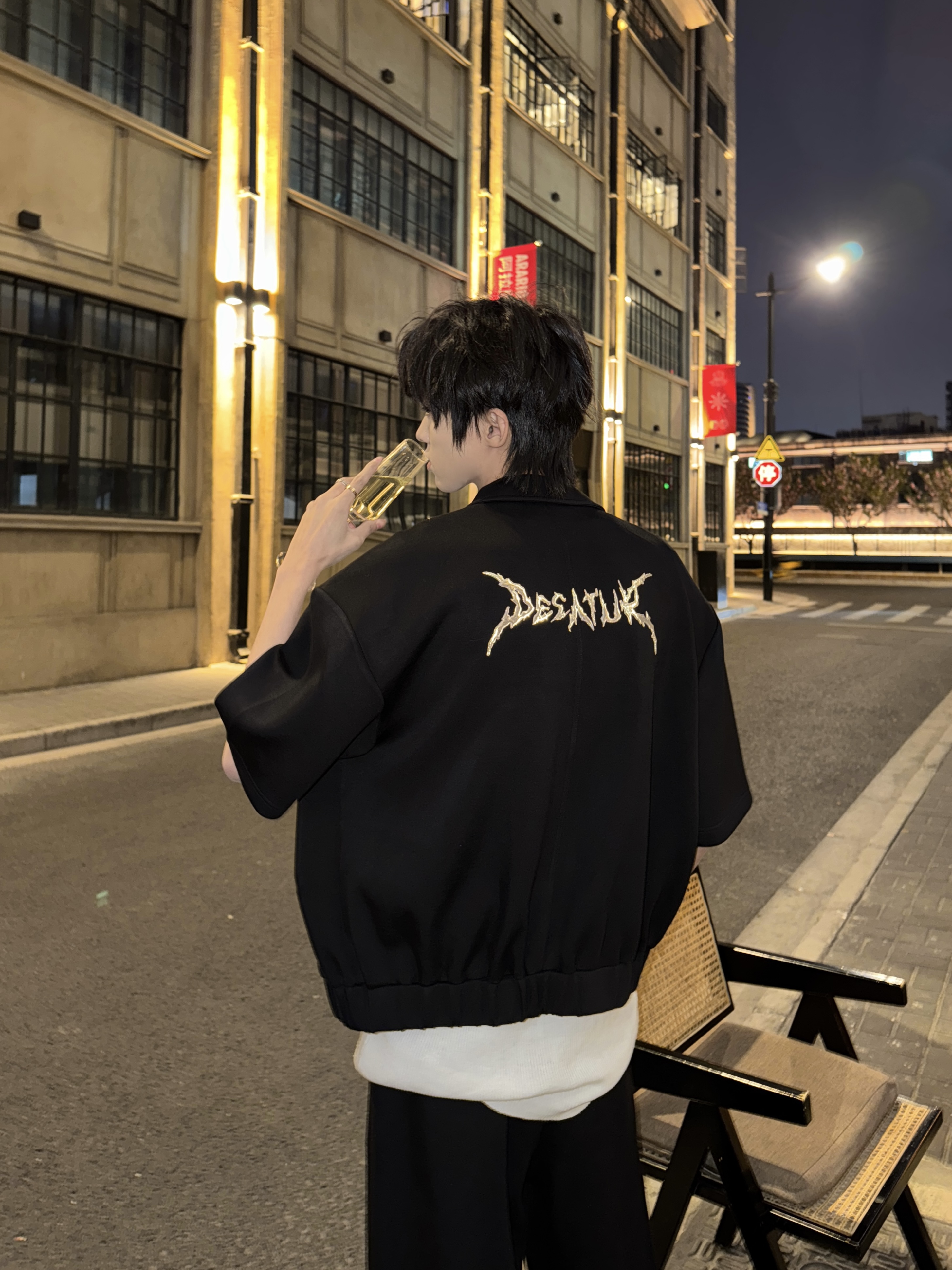 Graphic Letter Embroidery Shoulder-Pad Short Jacket & Wide Leg Pants Setup WN20748