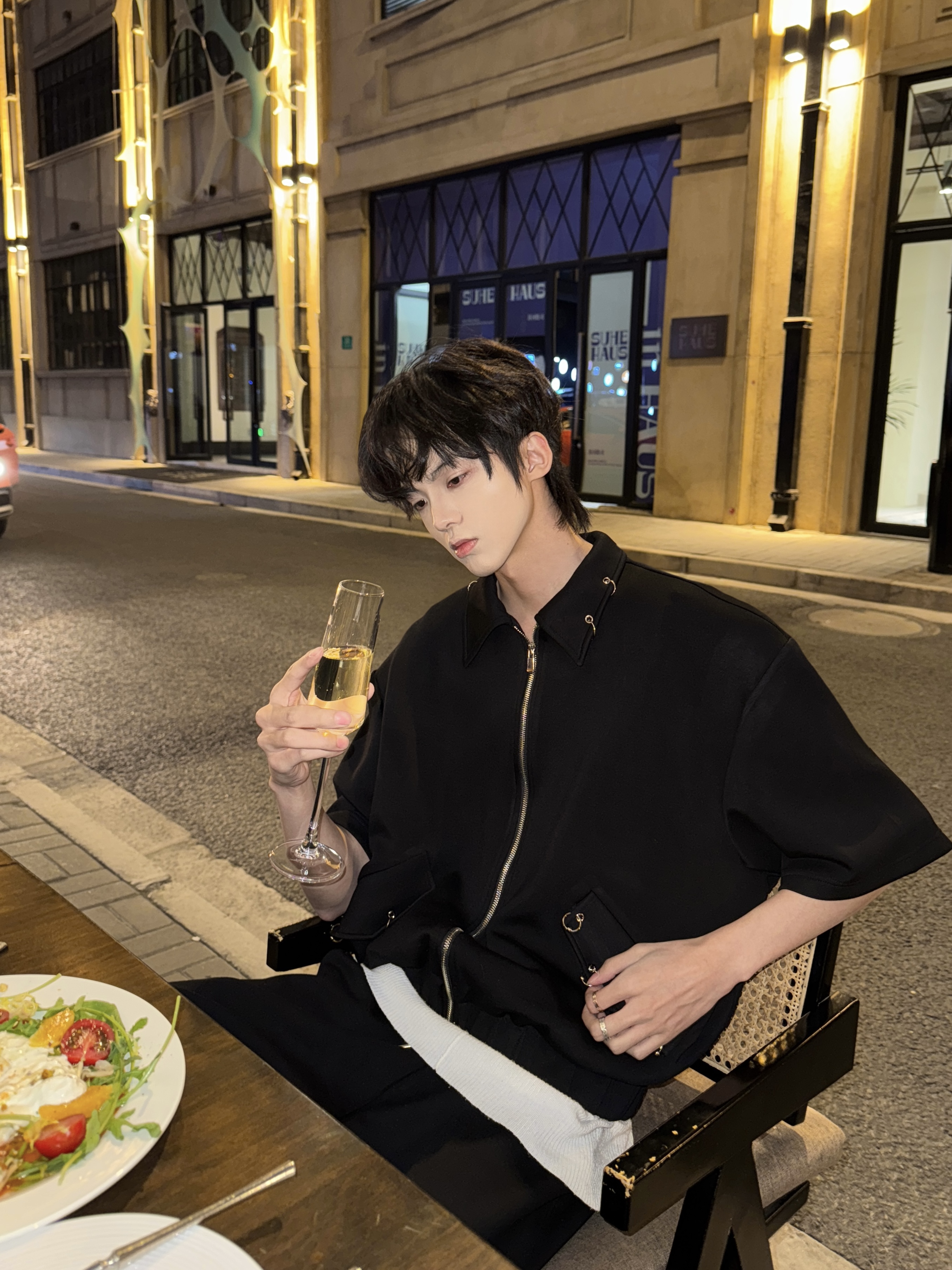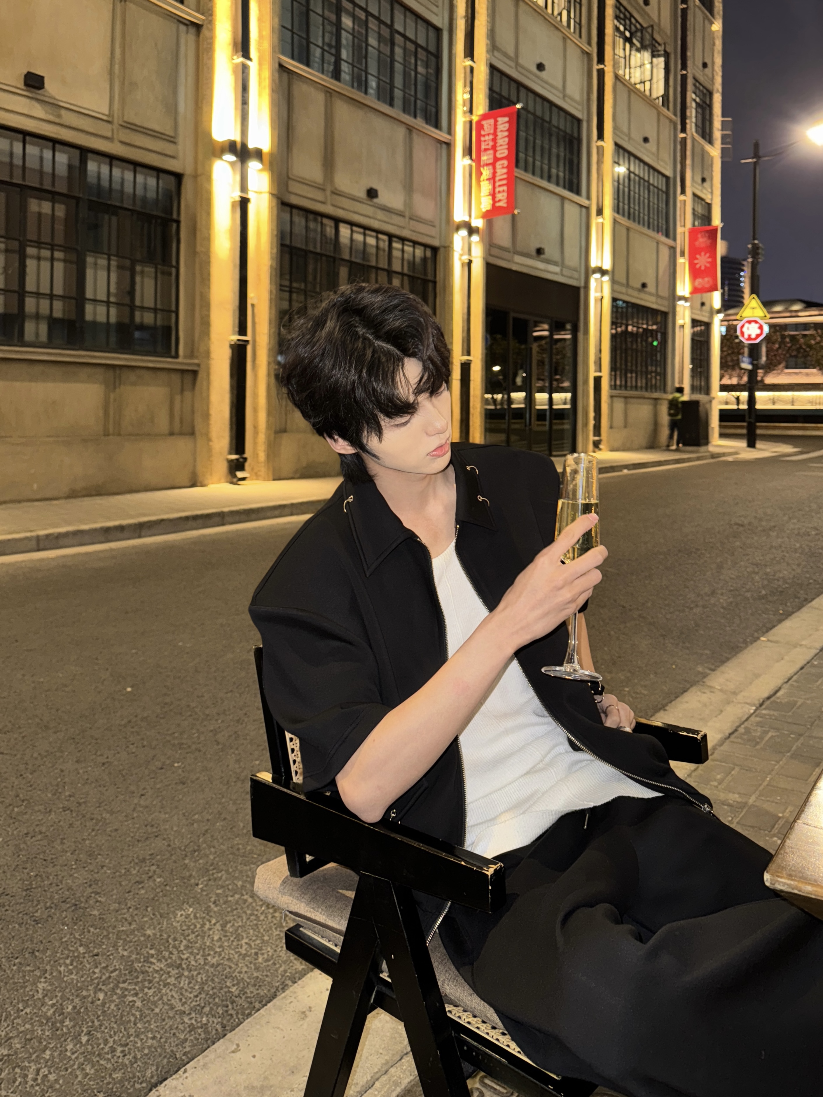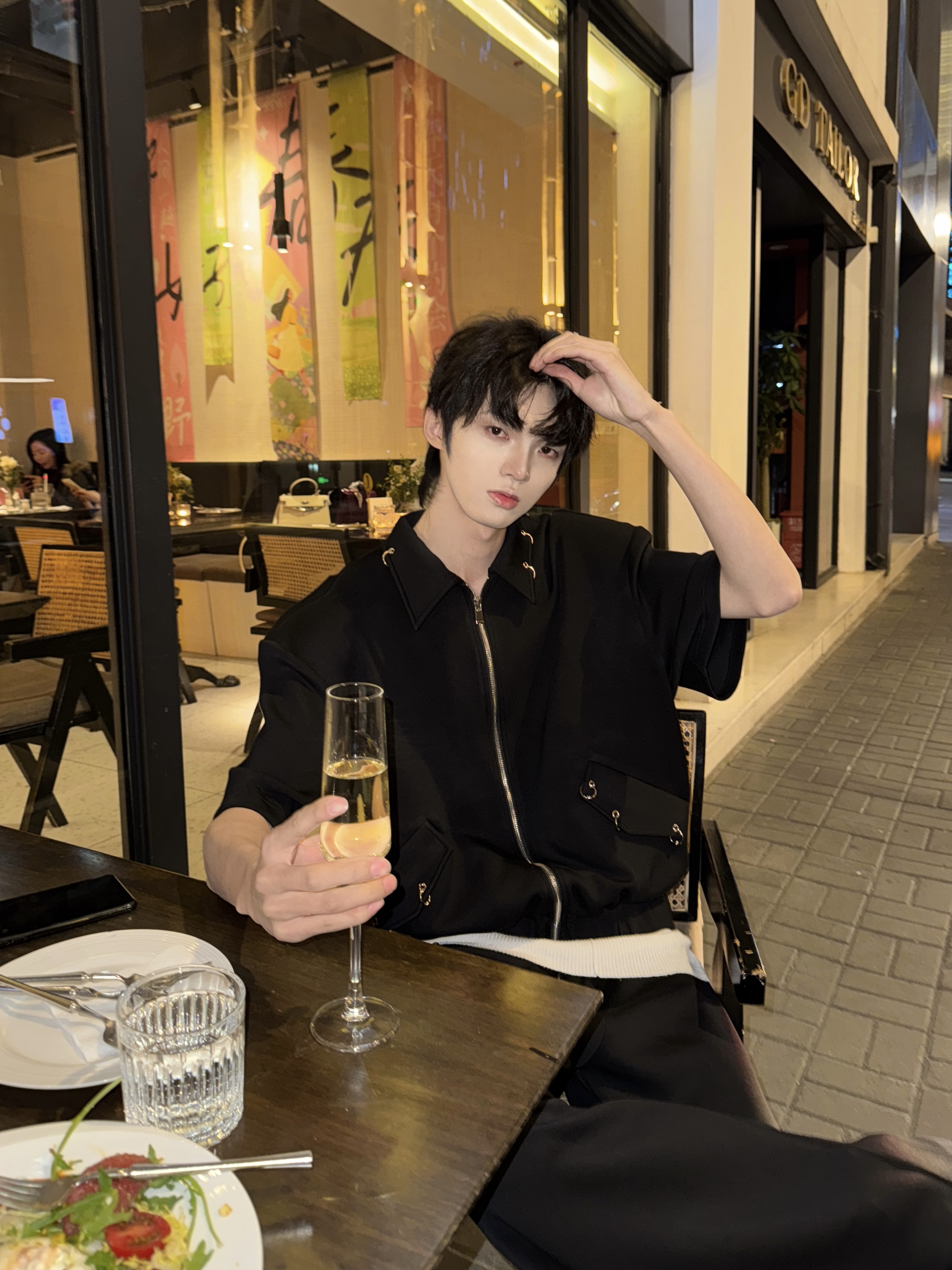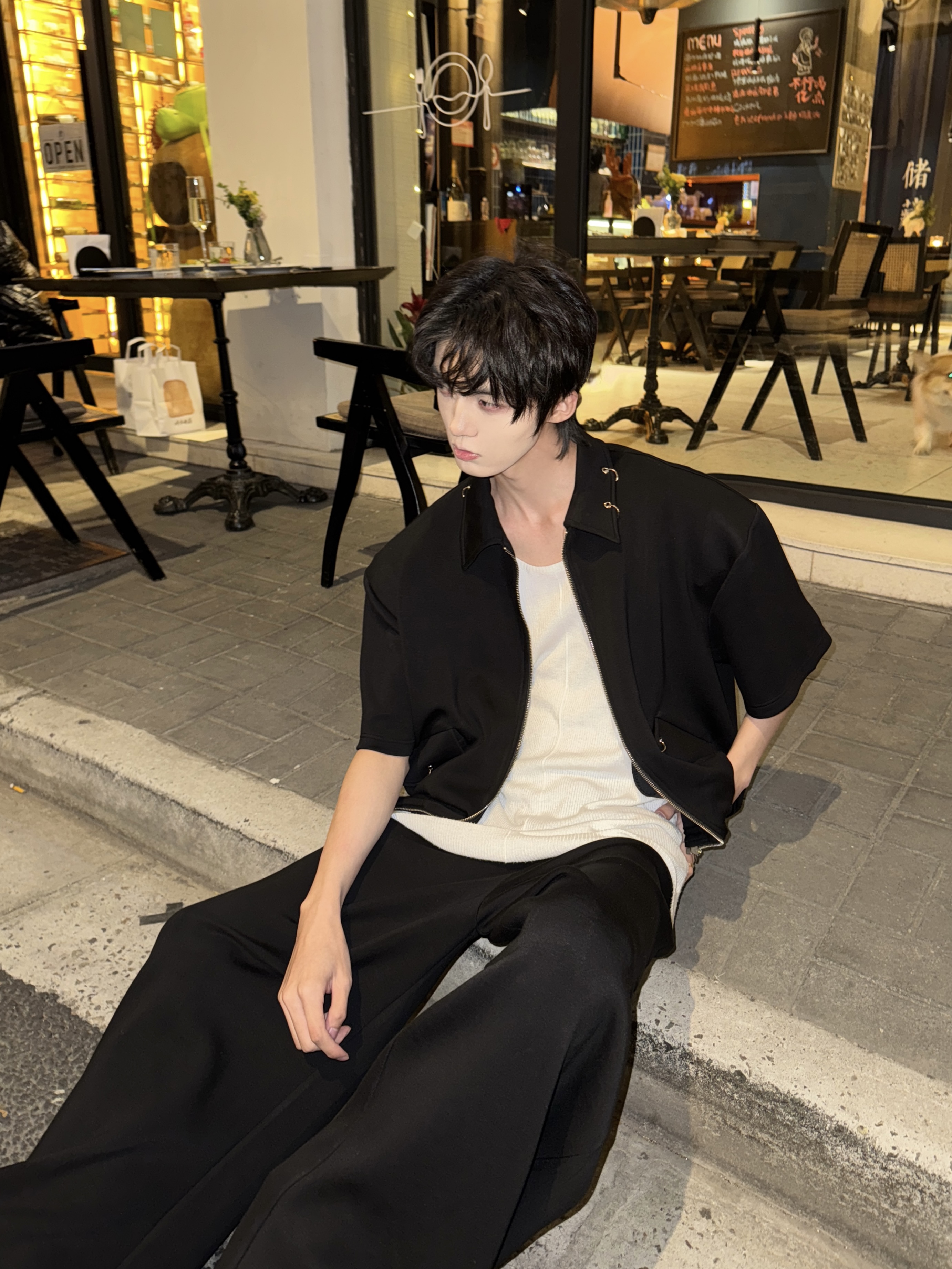 Graphic Letter Embroidery Shoulder-Pad Short Jacket & Wide Leg Pants Setup WN20748