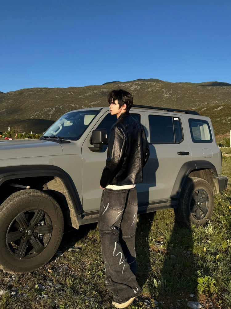 Hand-Paint Graffiti Metal Button Flare Denim Jeans WN20762