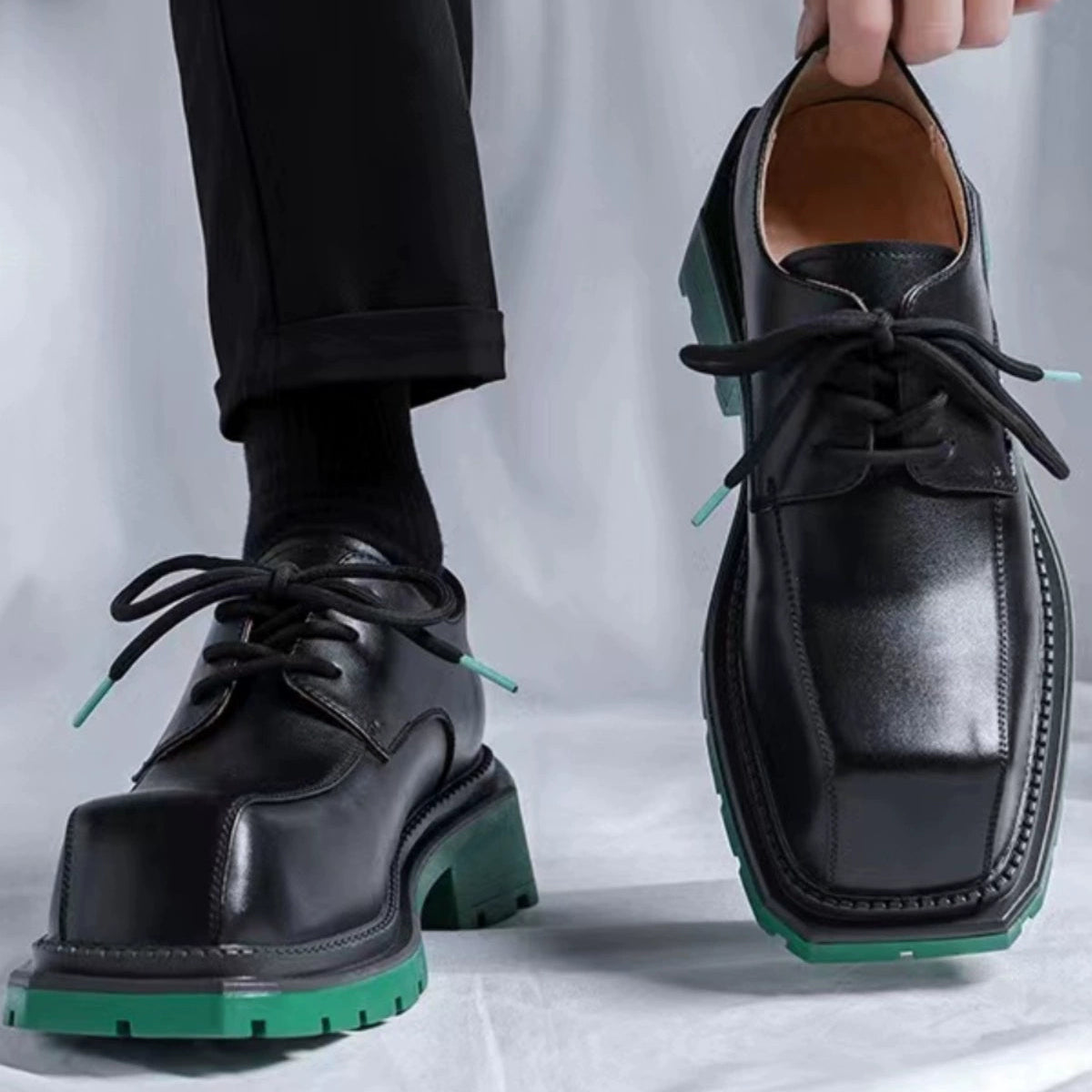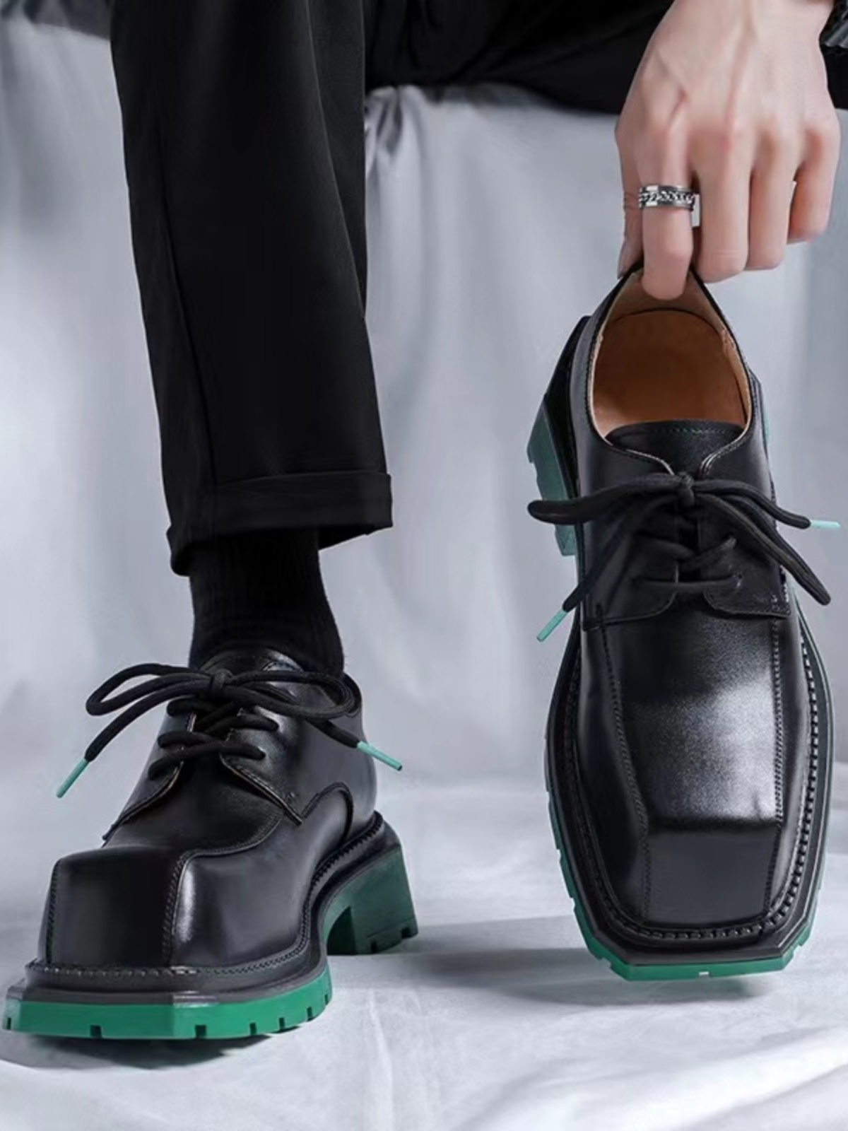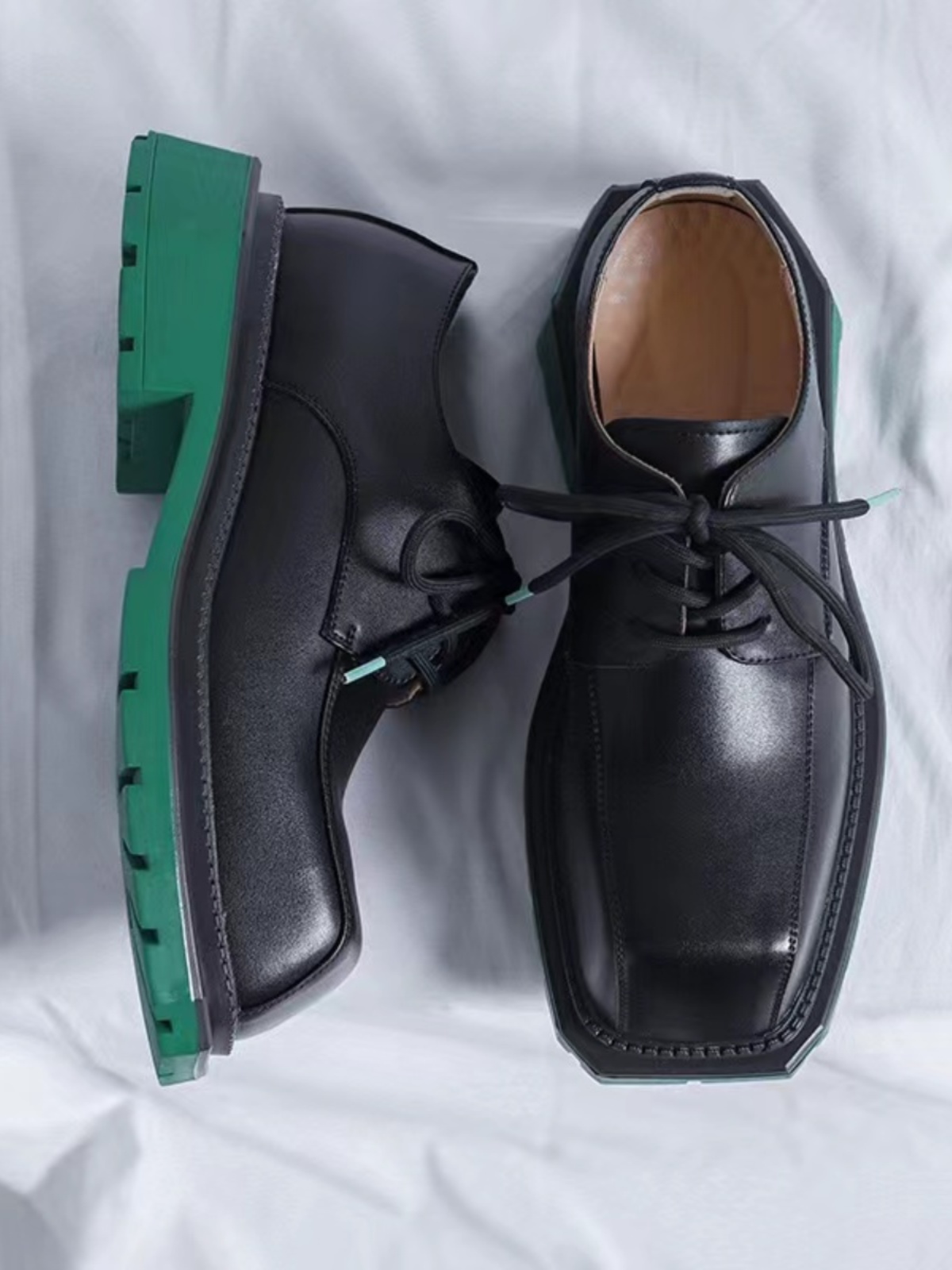 Square Toe Chunky Sole Leather Derby Shoes WN20769