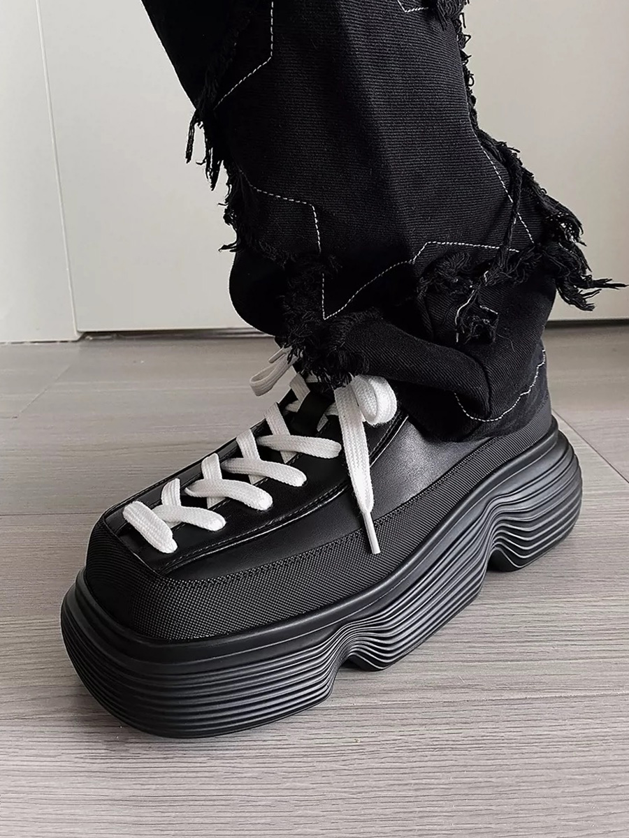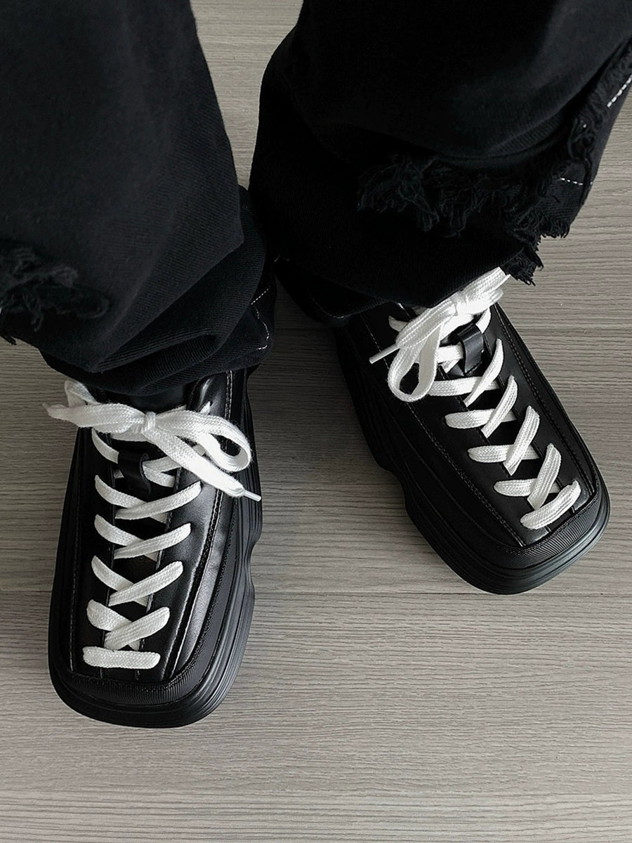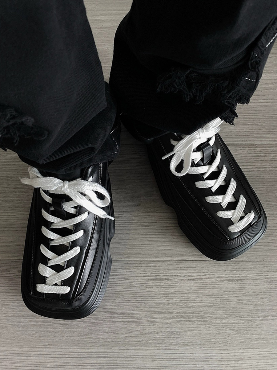 Square Toe Chunky Sole Leather Derby Shoes WN20773