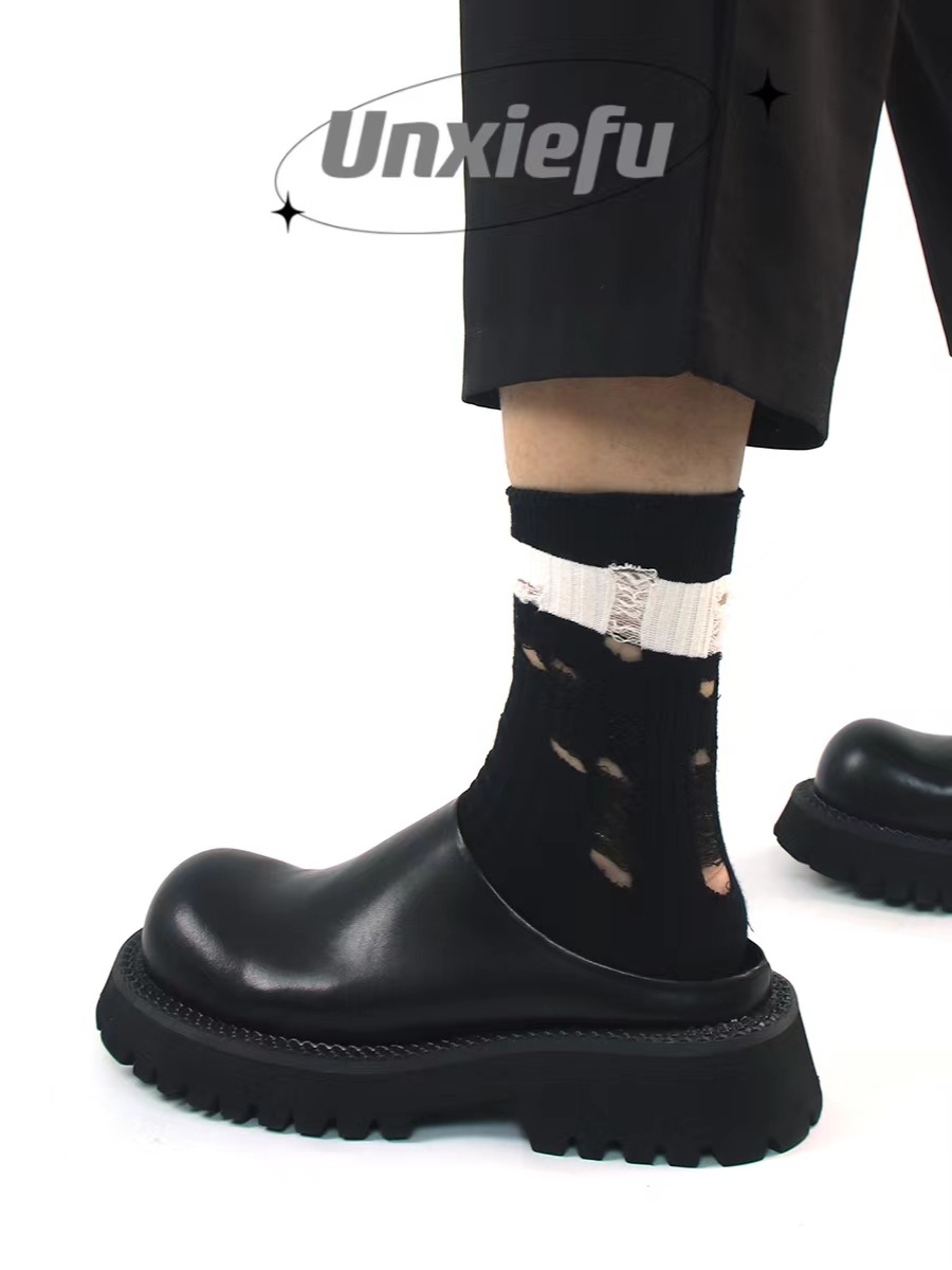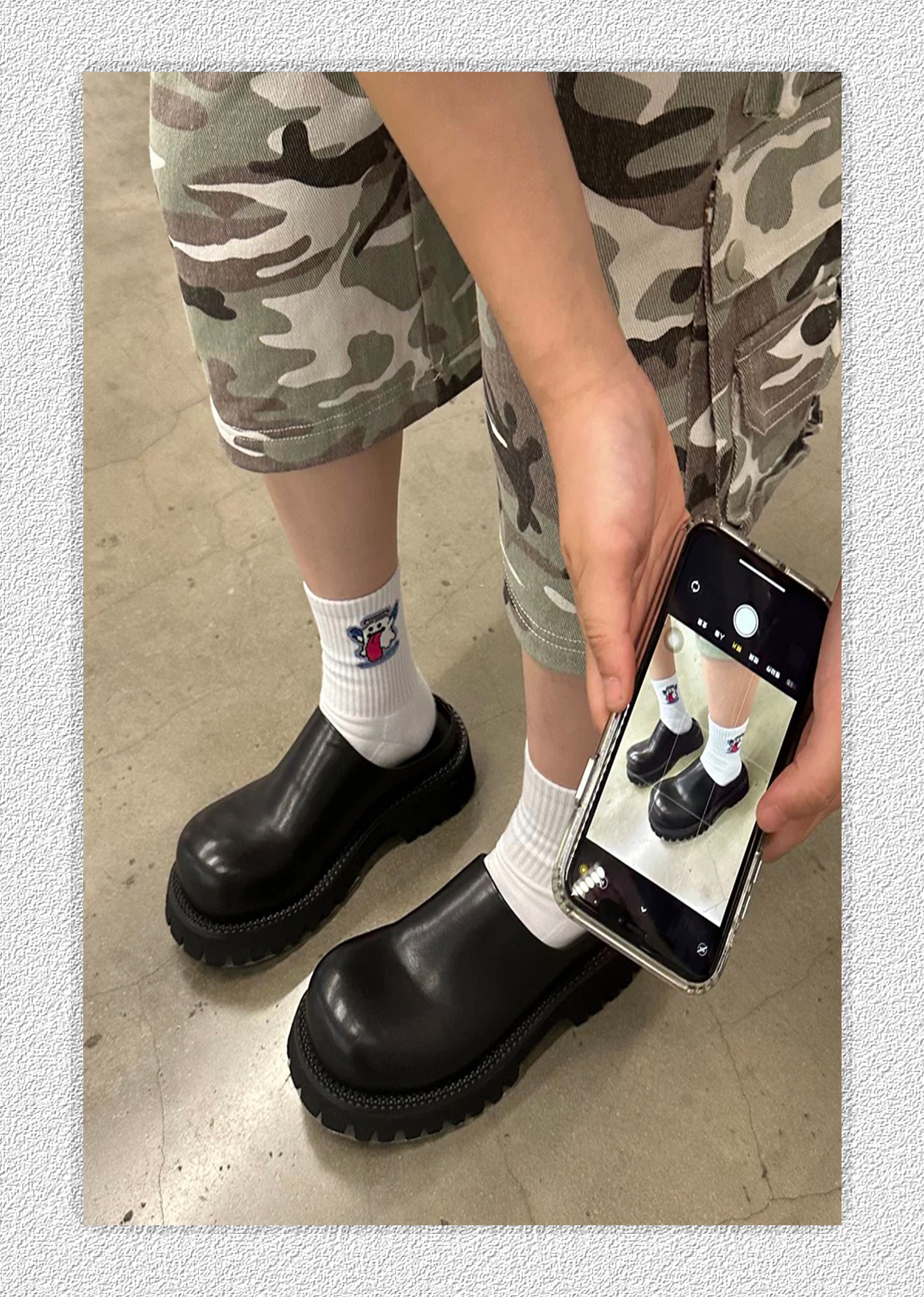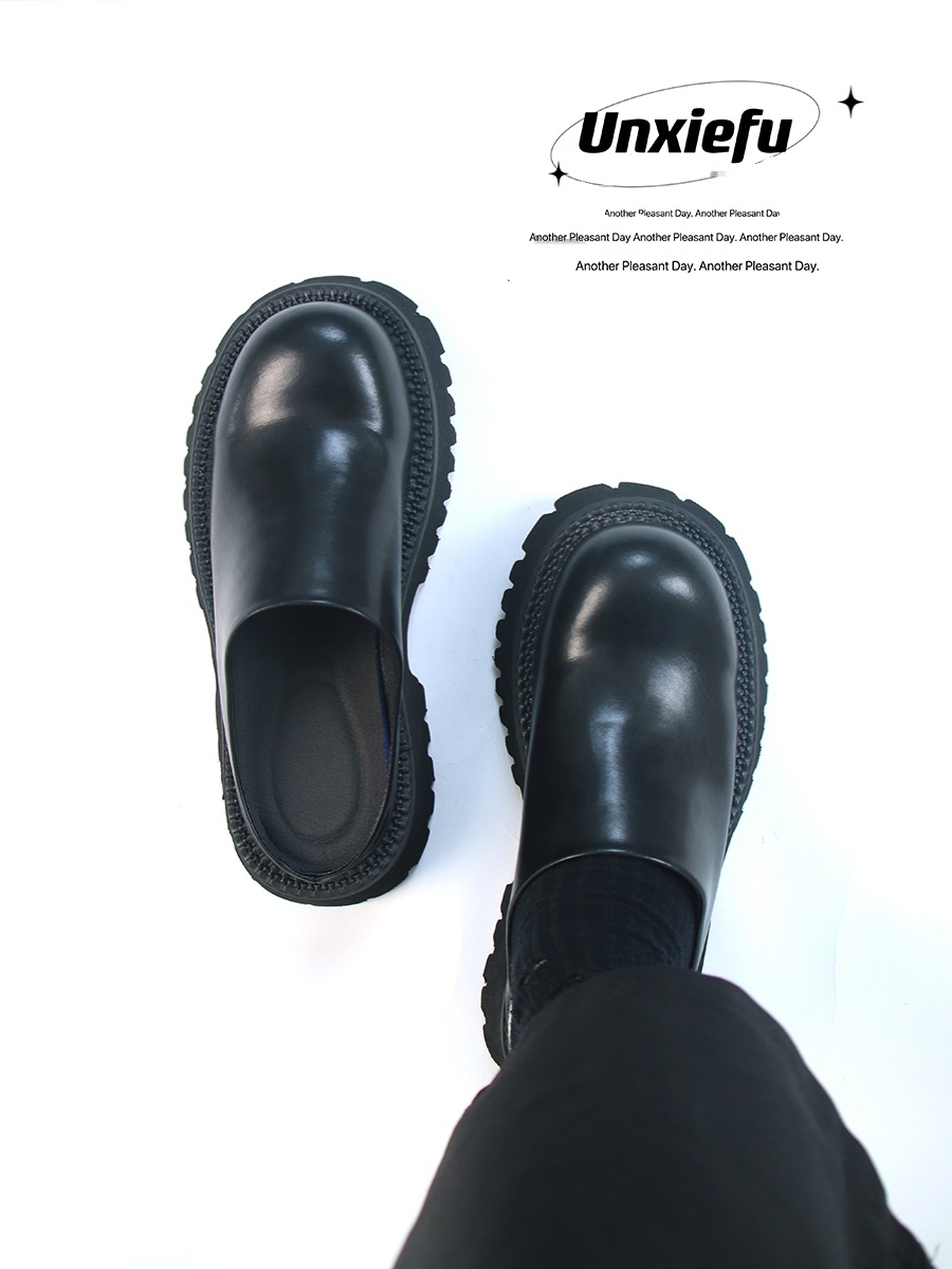 Chunky Sole Leather Mule Derby Shoes WN20776