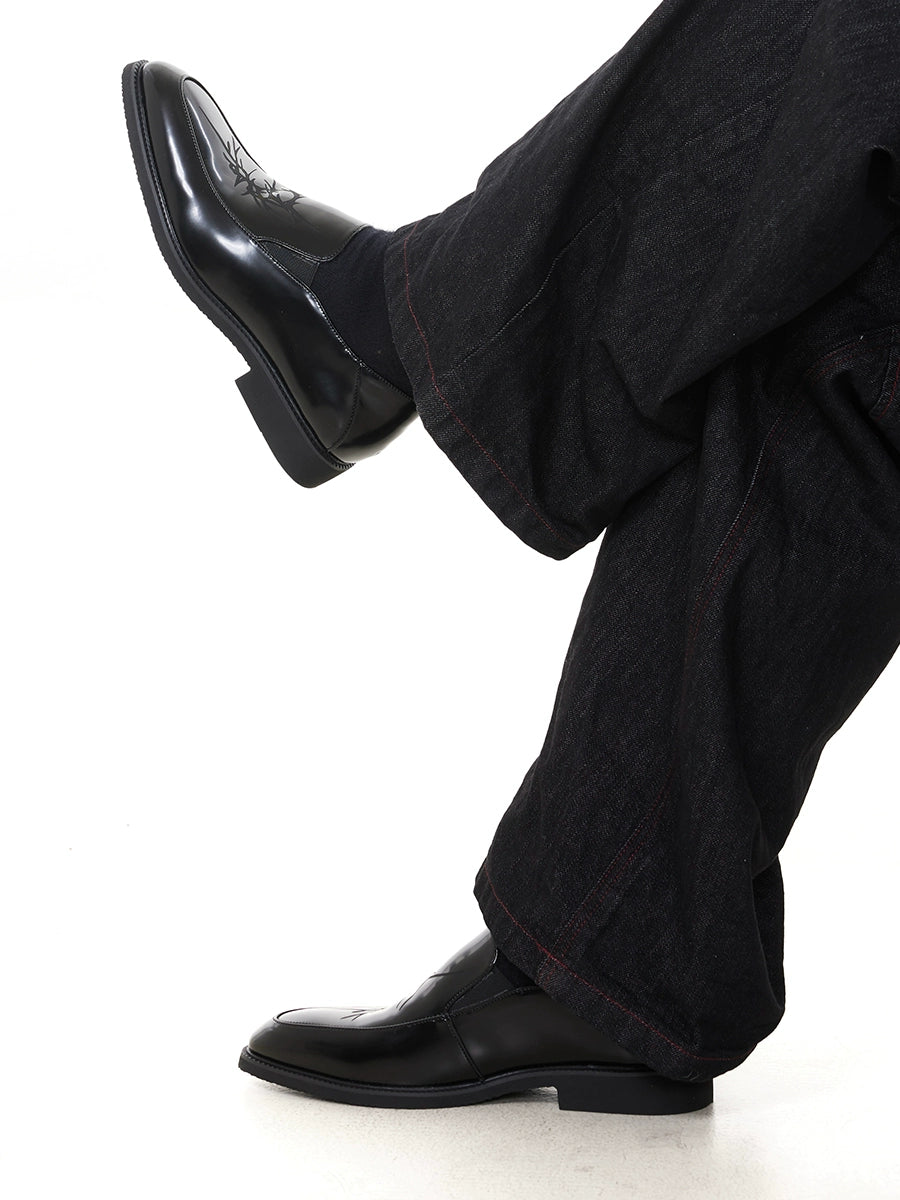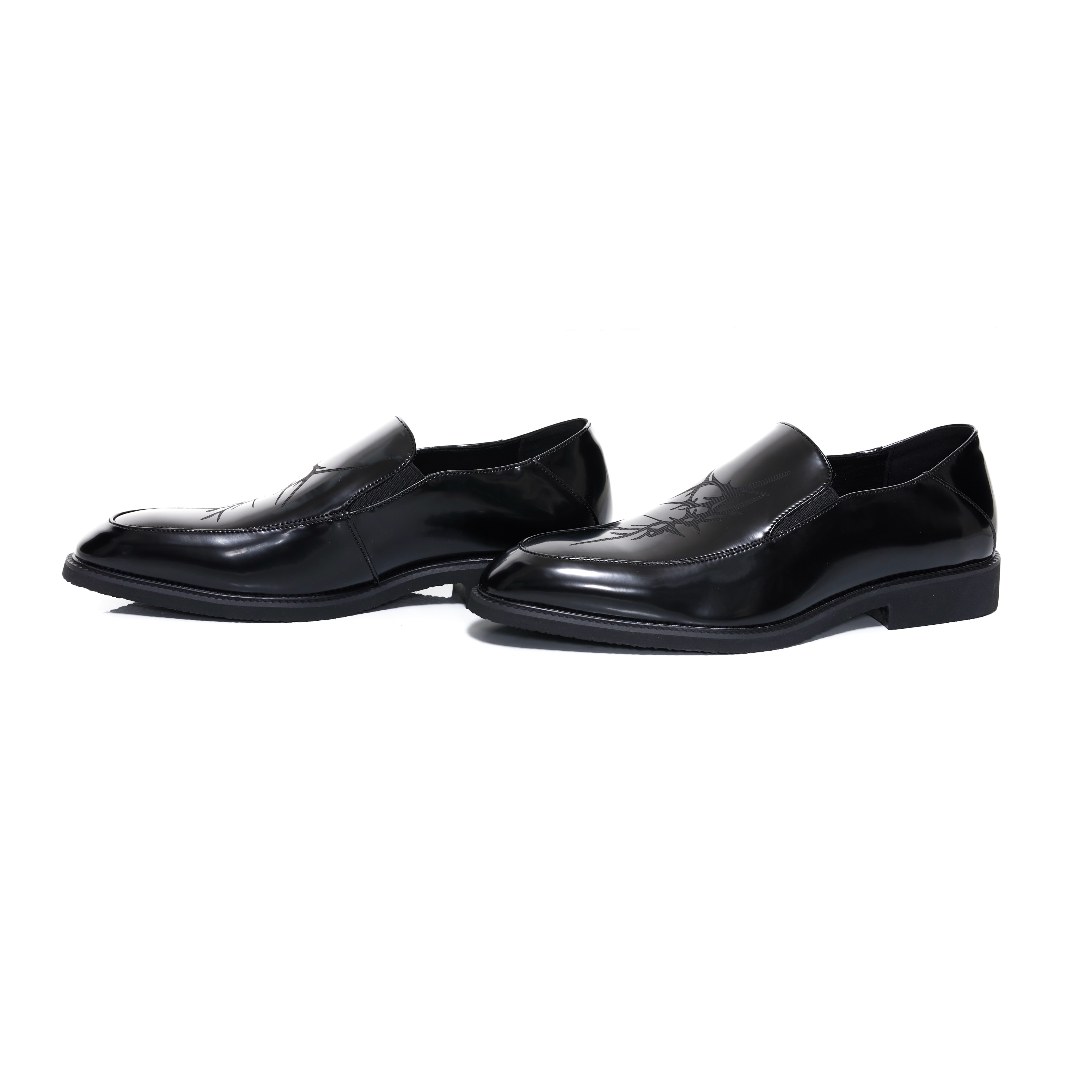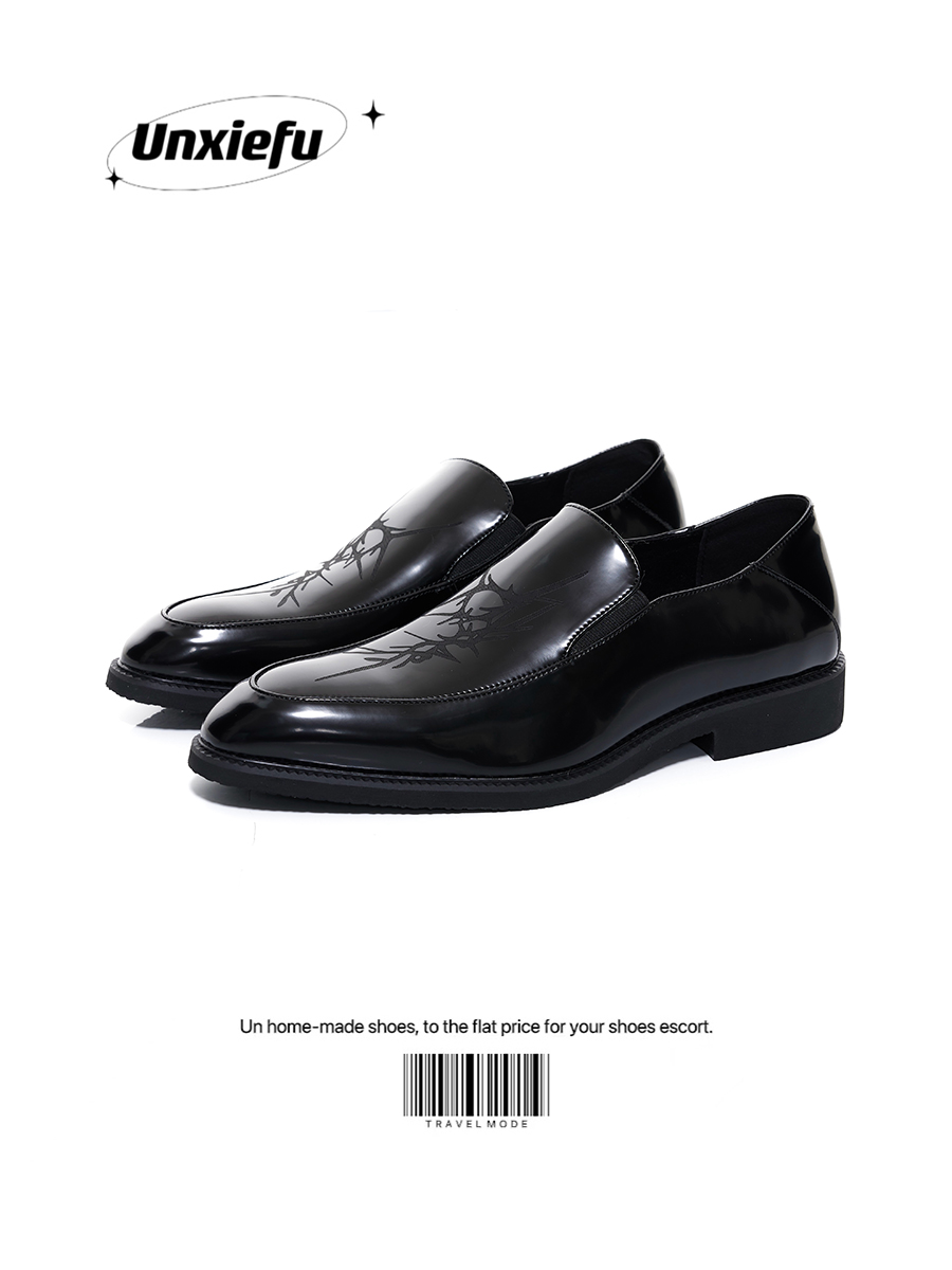 Pointed Toe Chunky Heel Leather Loafers WN20795