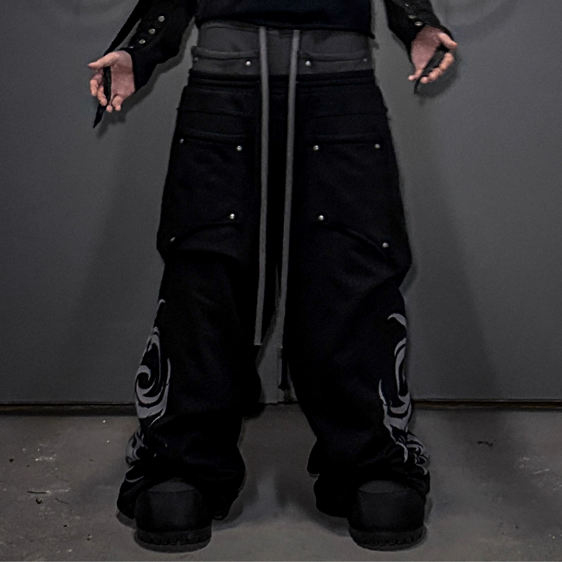 Graphic Art Print Wide Leg Sporty Pants WN20845