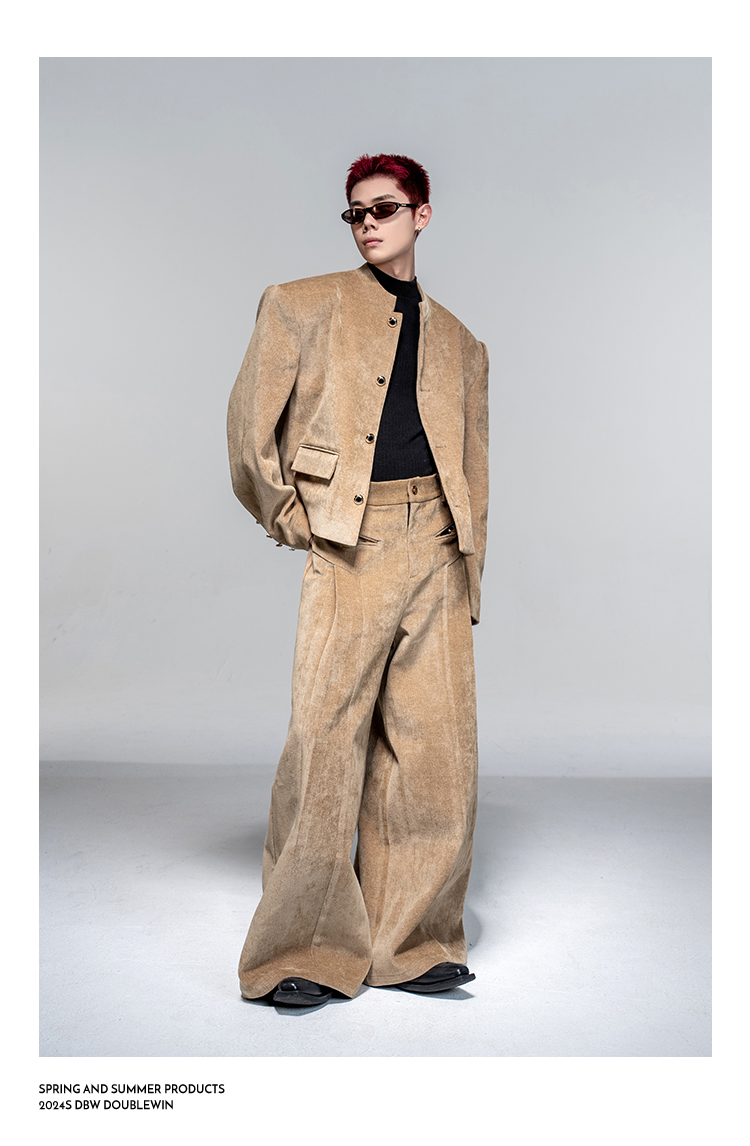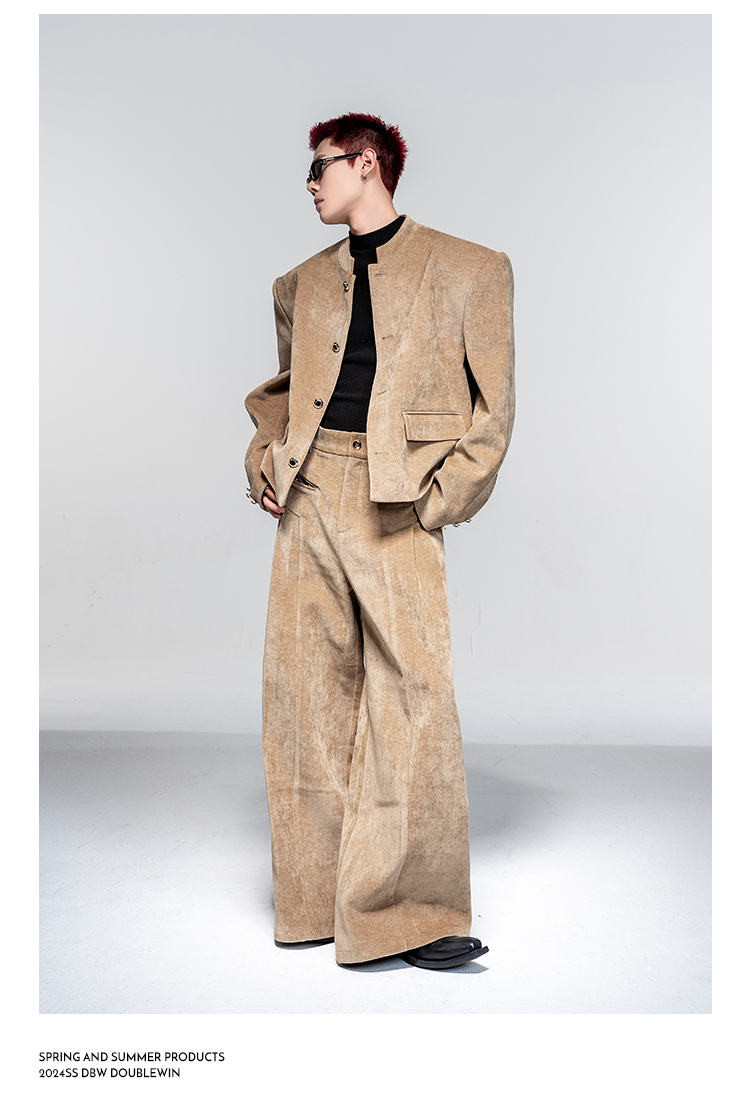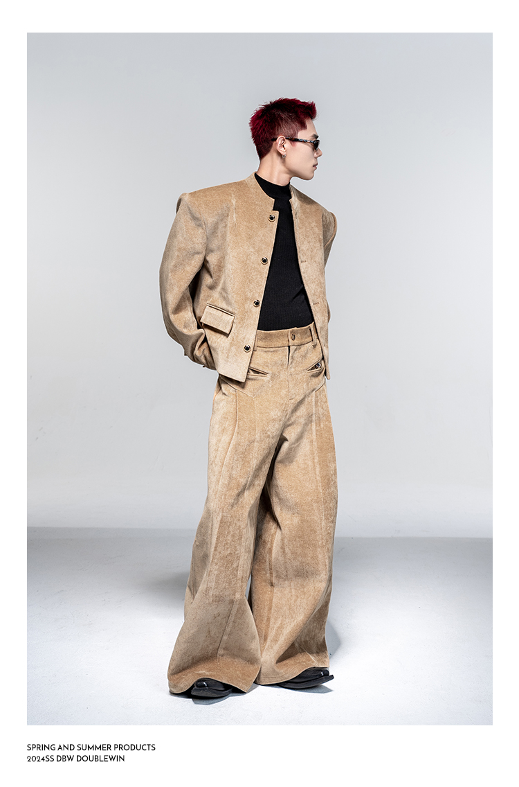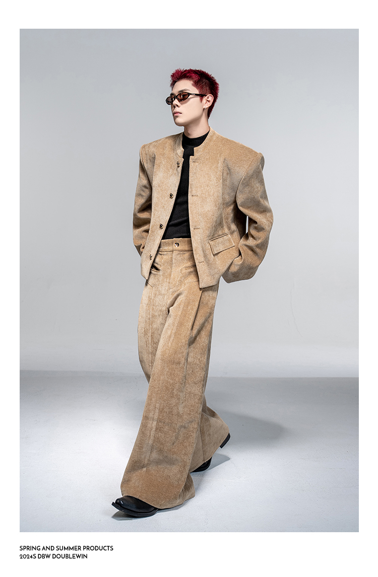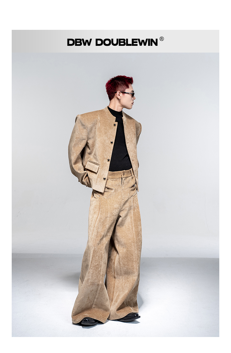 Shoulder-Pad Velvet Tailored Jacket & Wide Leg Trousers Setup WN20882