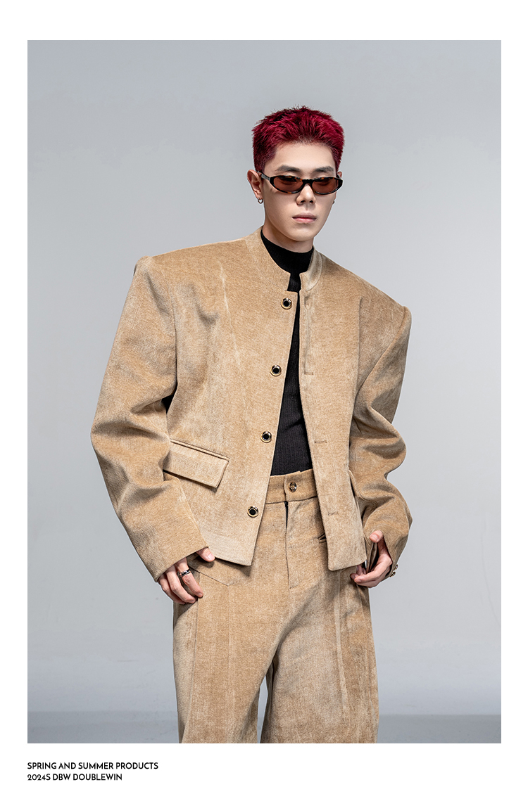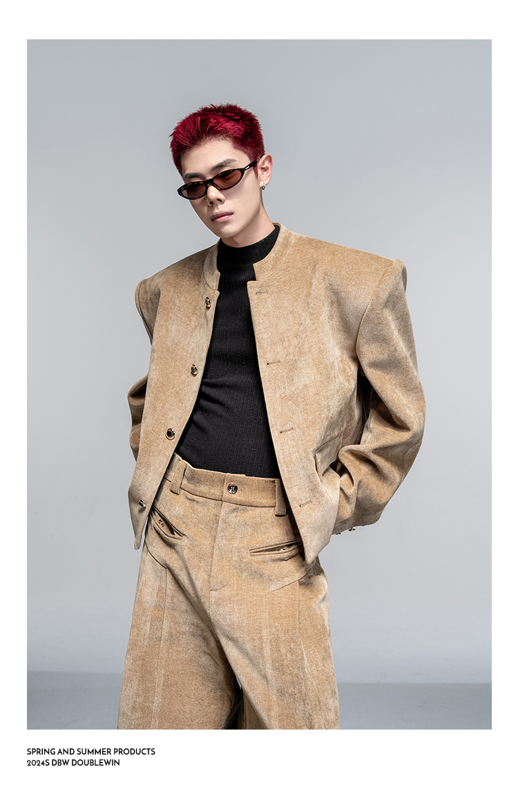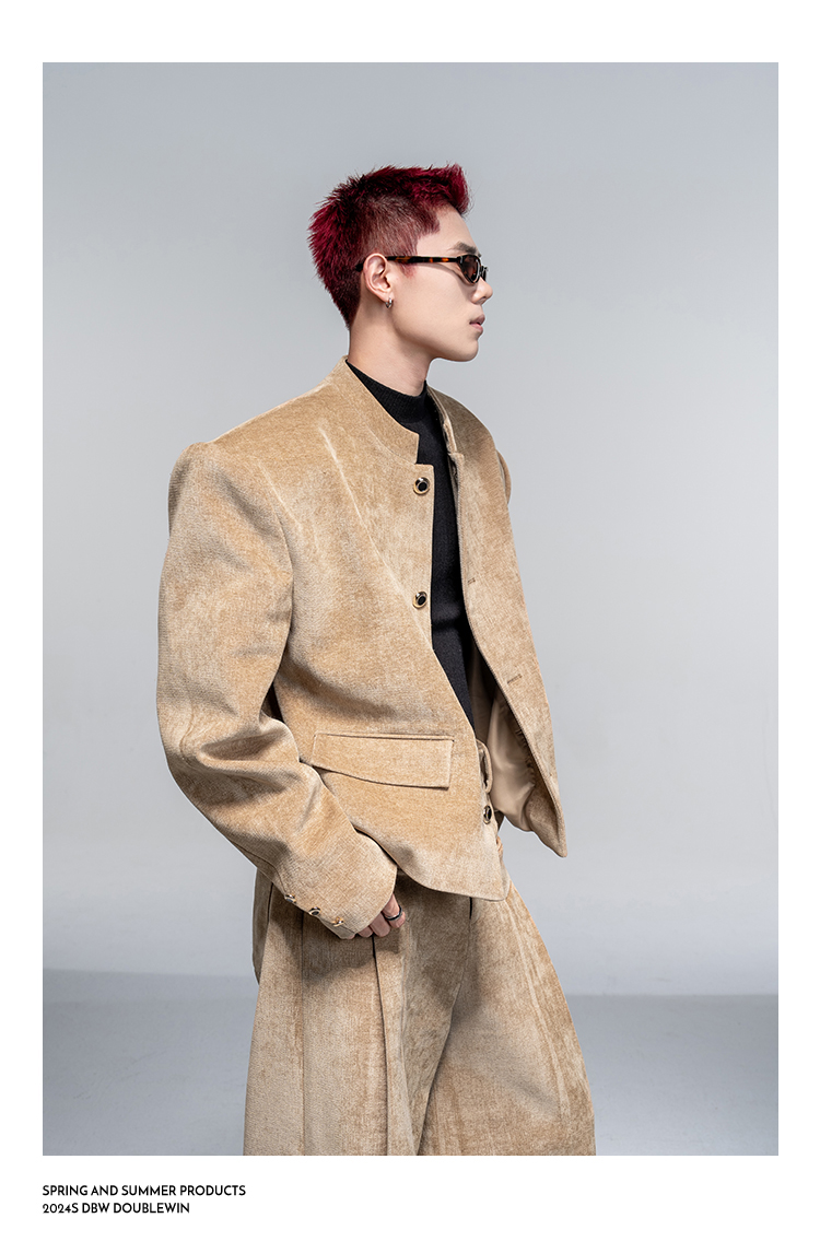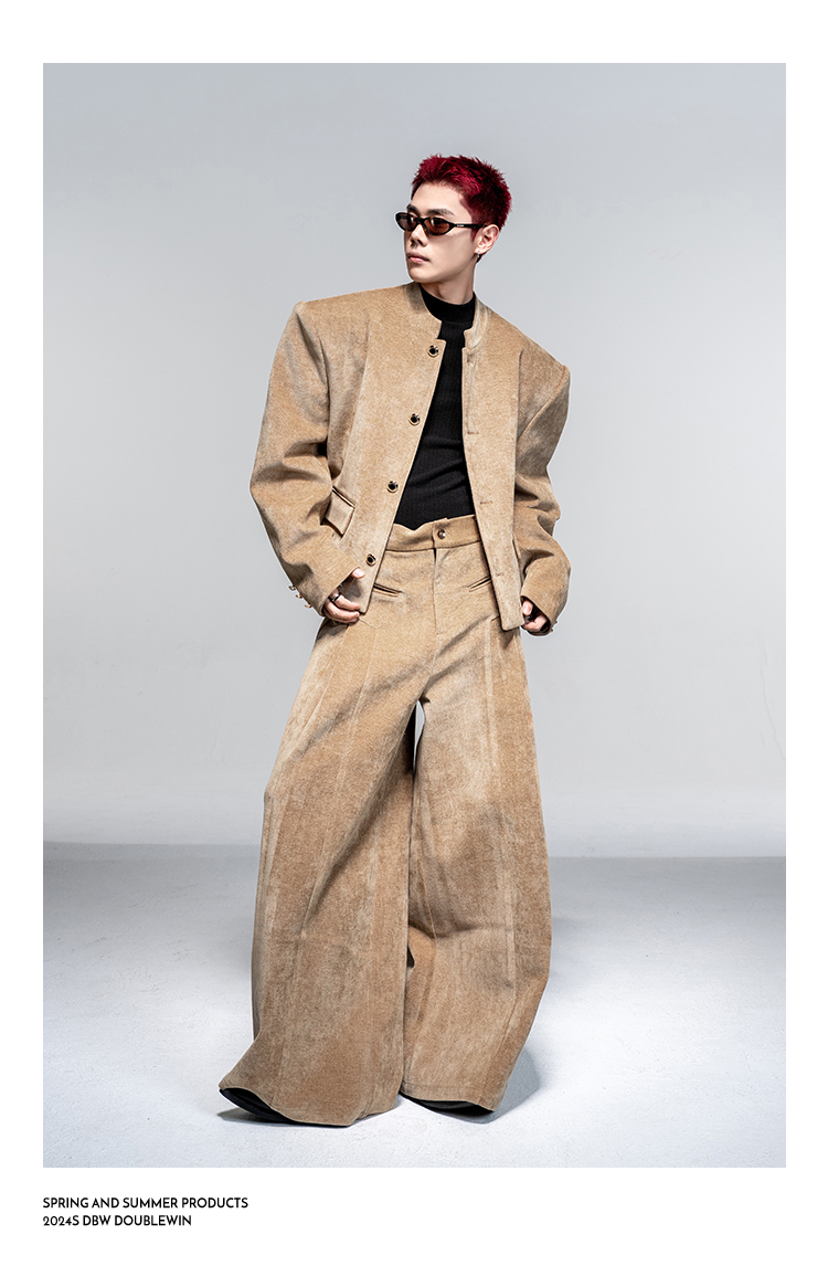 Shoulder-Pad Velvet Tailored Jacket & Wide Leg Trousers Setup WN20882