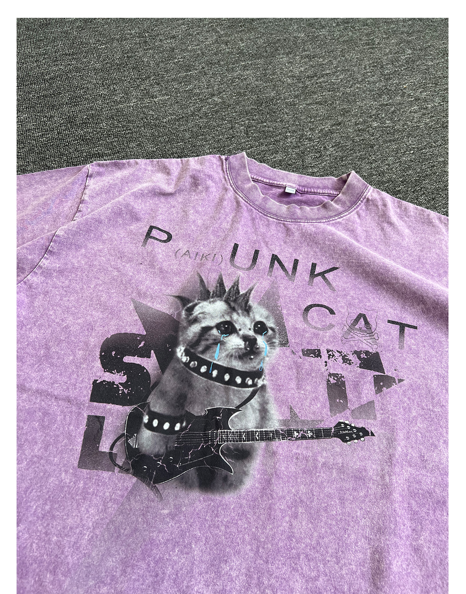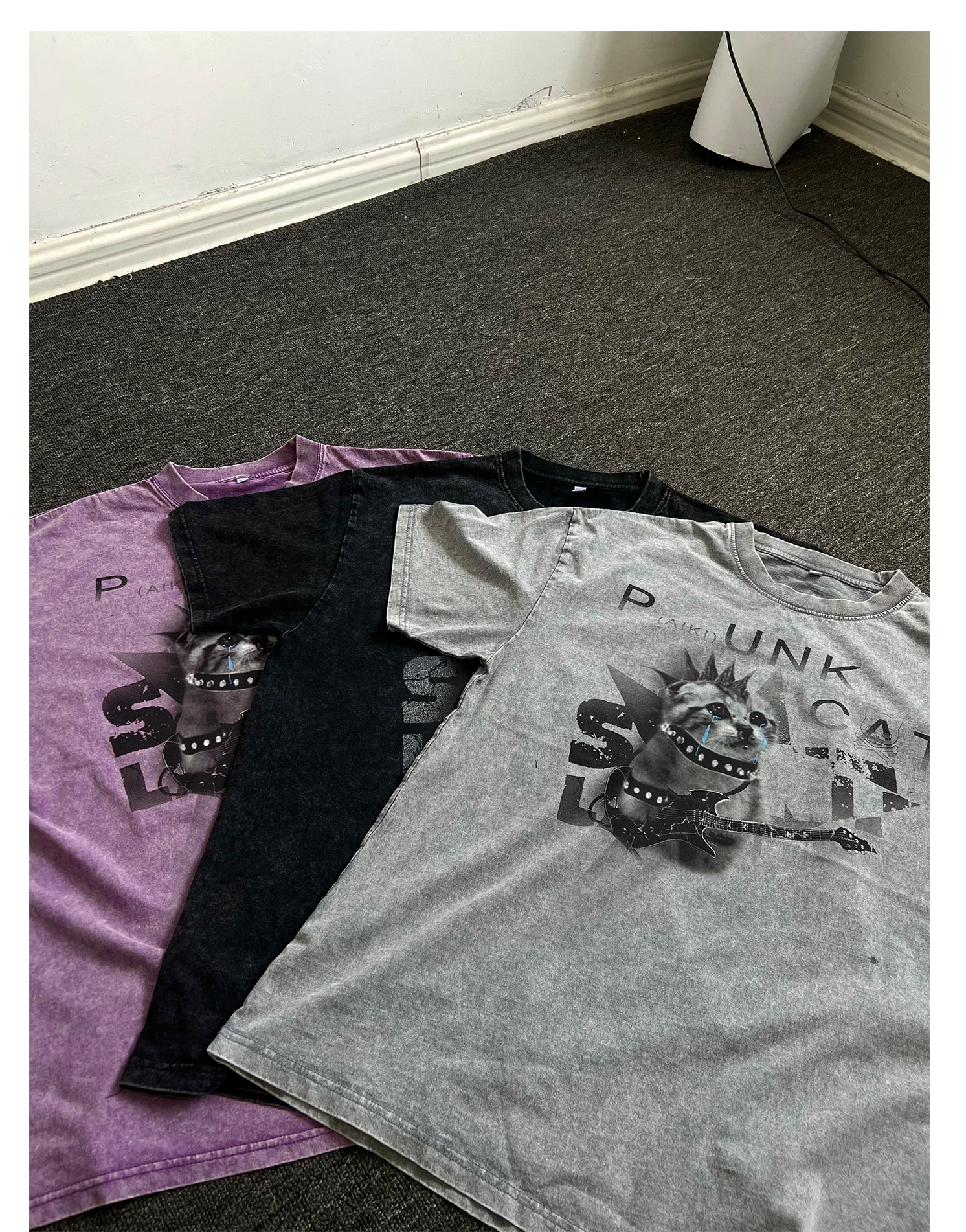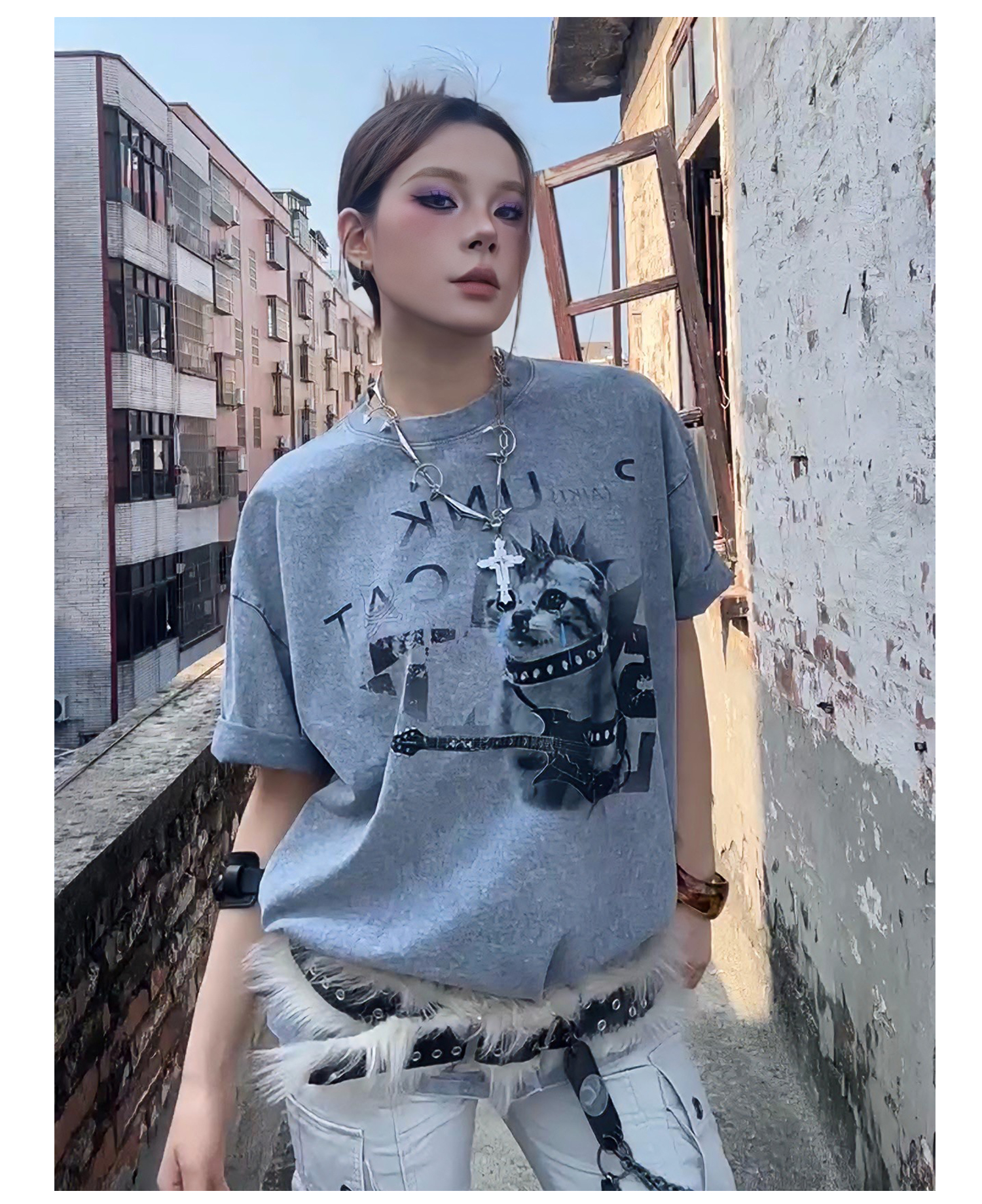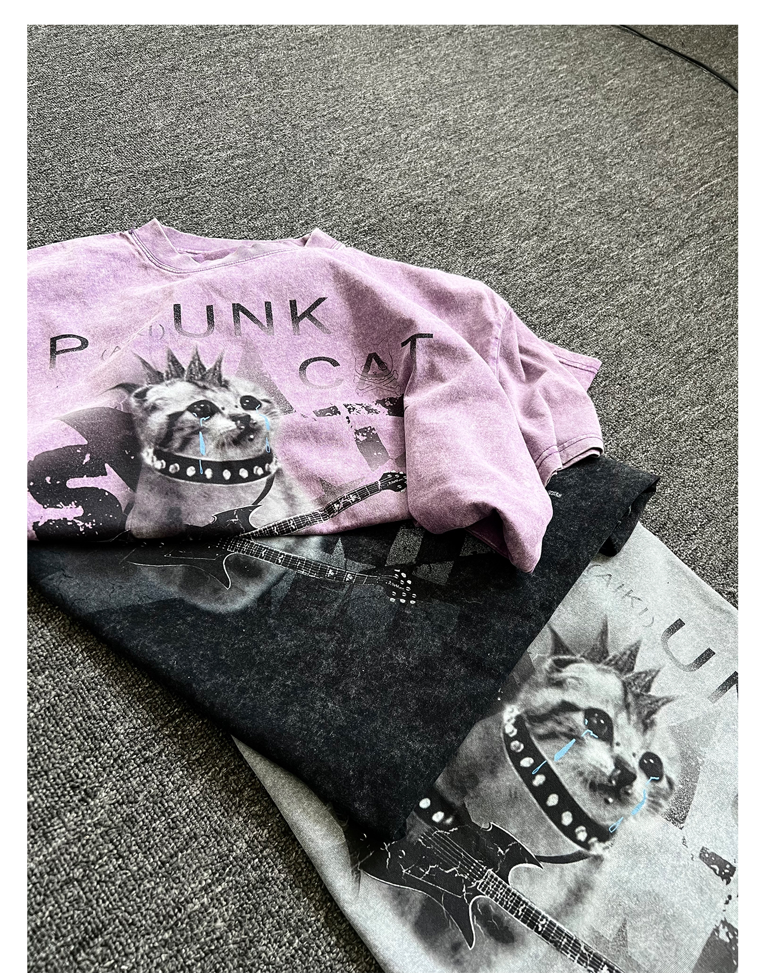Cat Animal Print Oversize Short Sleeve T-Shirt WN20885