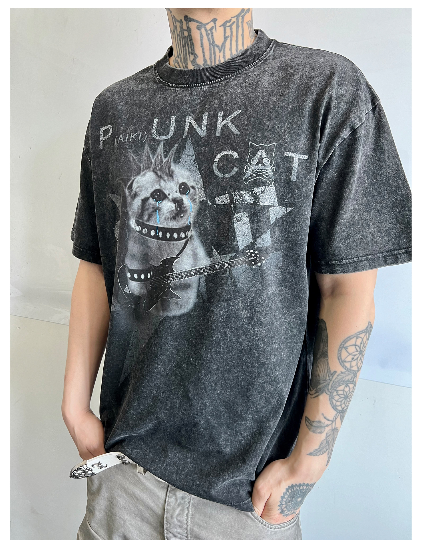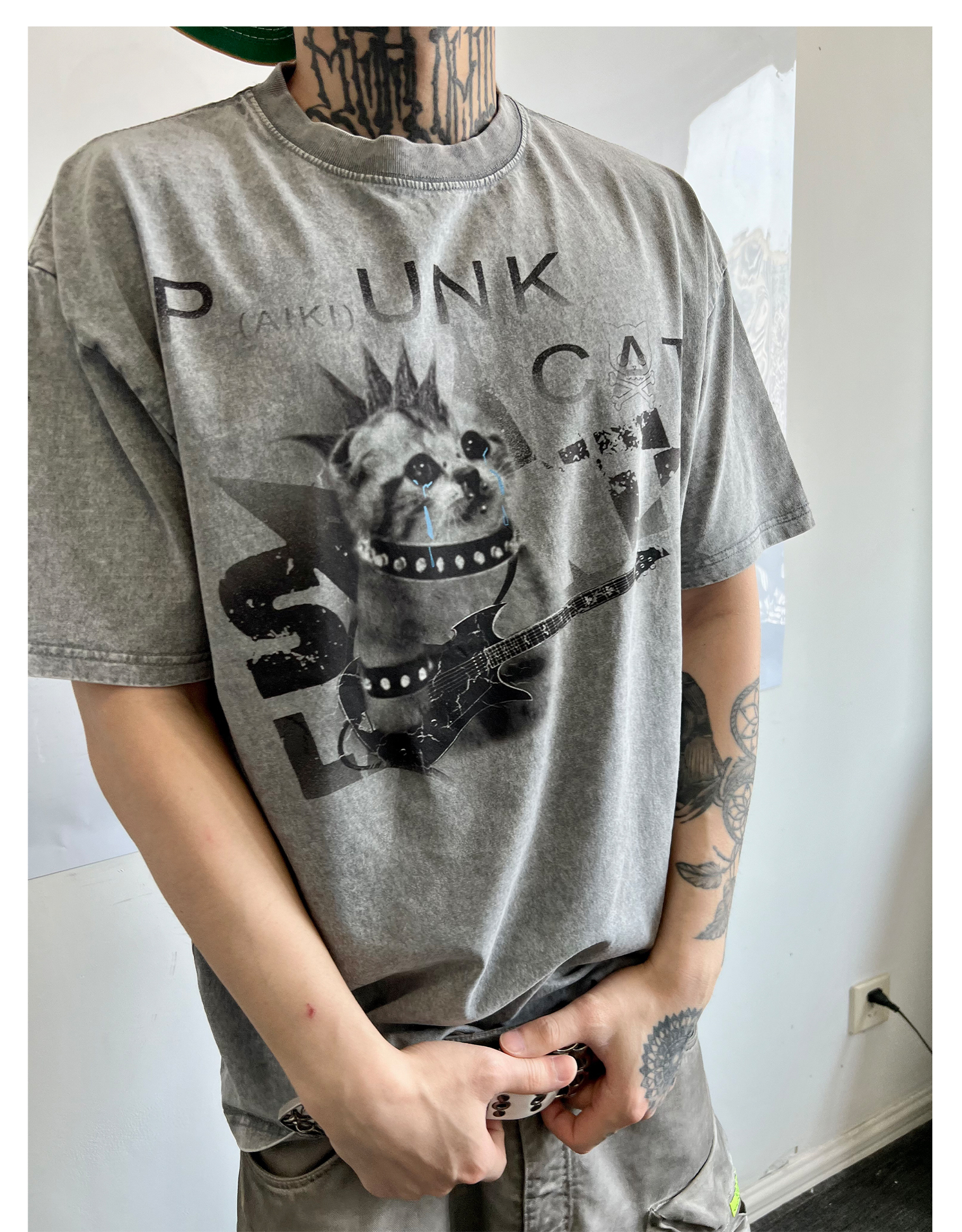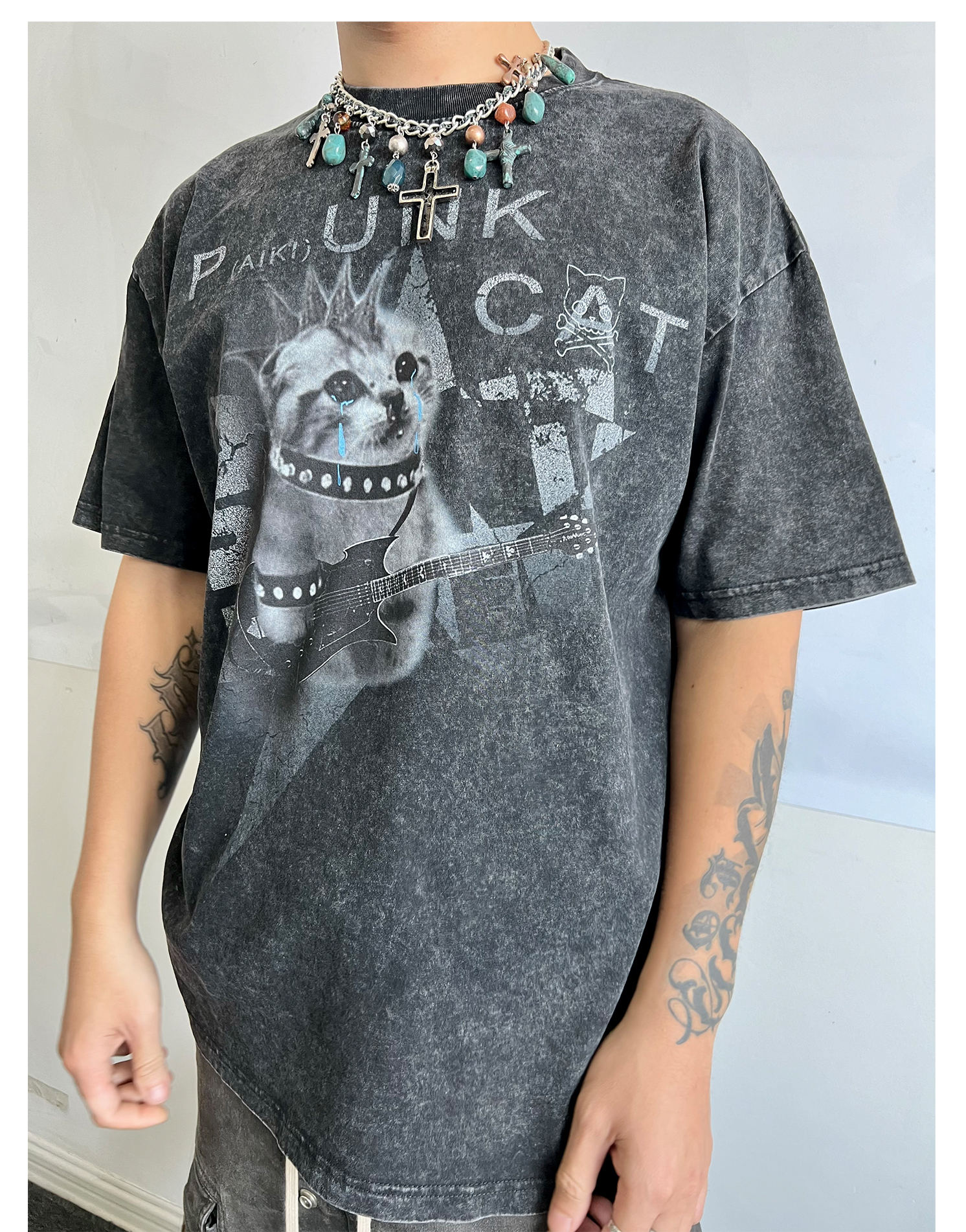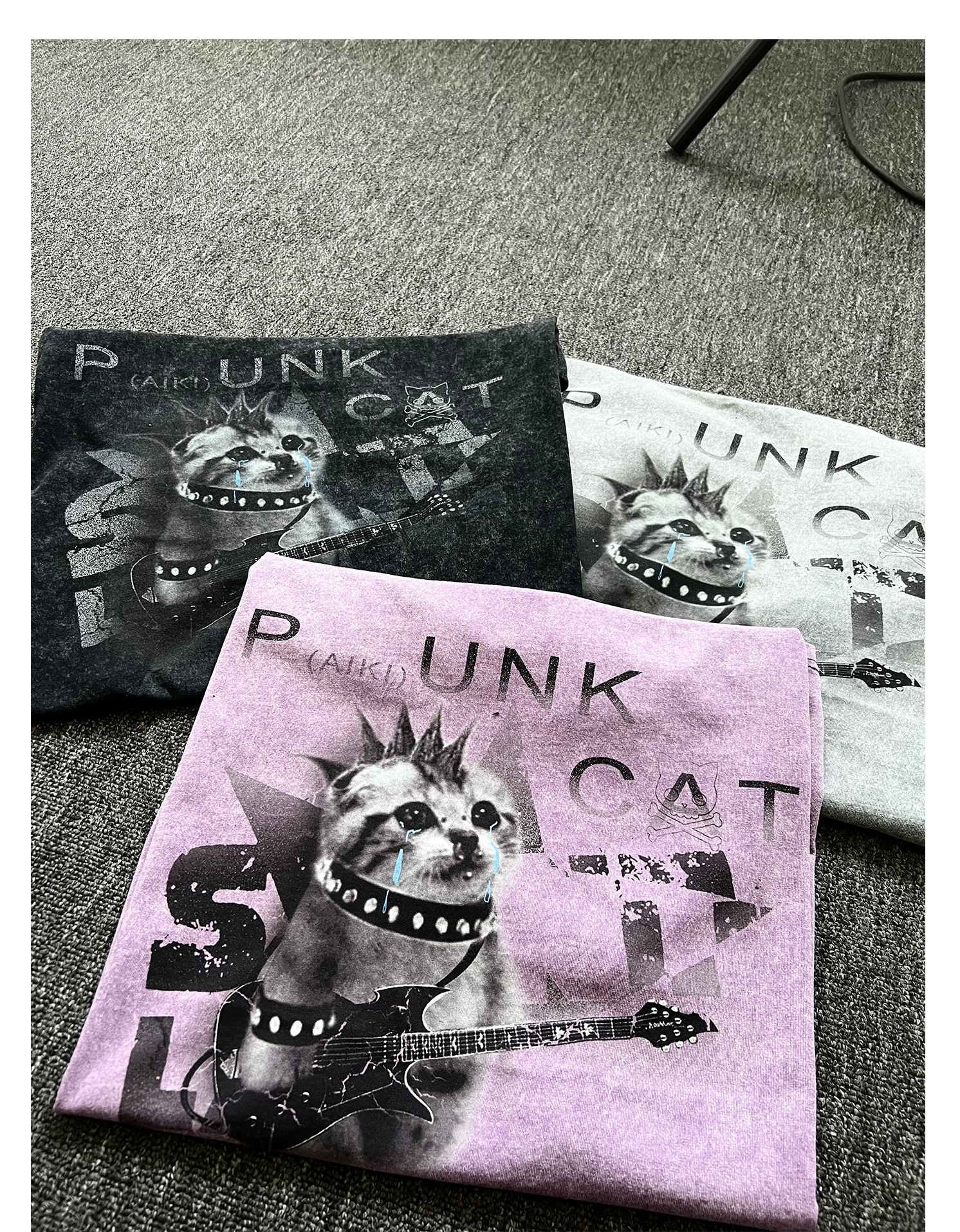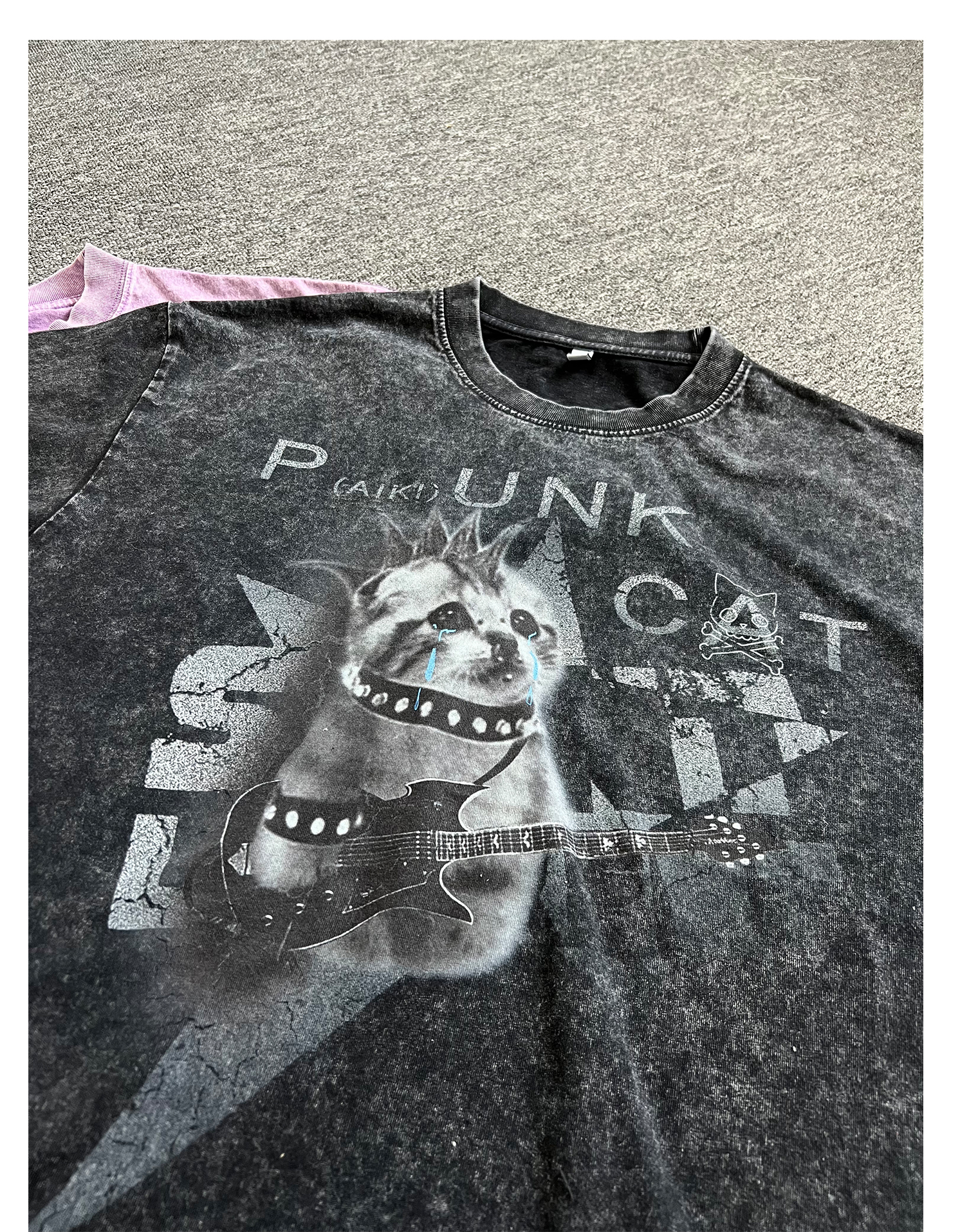 Cat Animal Print Oversize Short Sleeve T-Shirt WN20885
