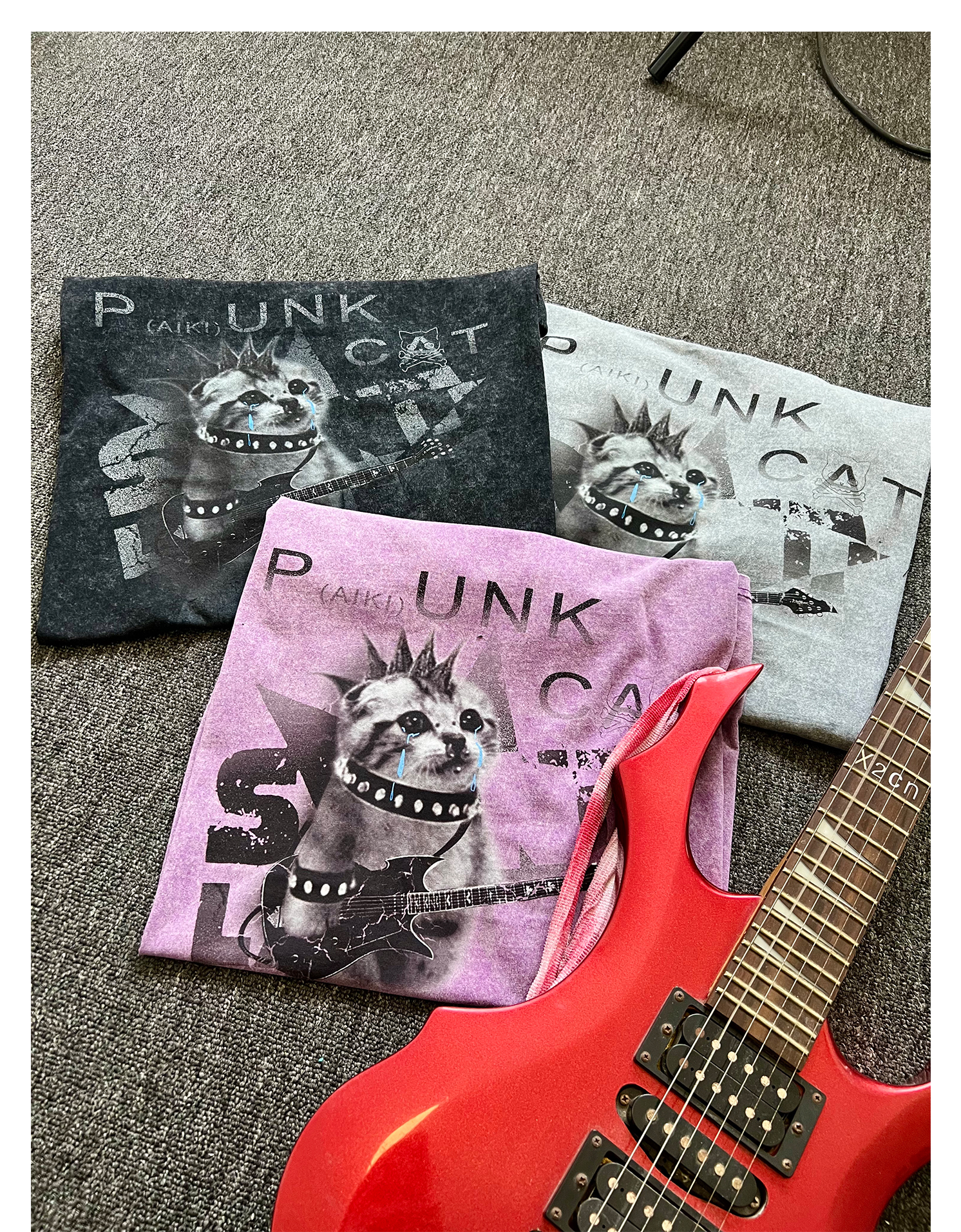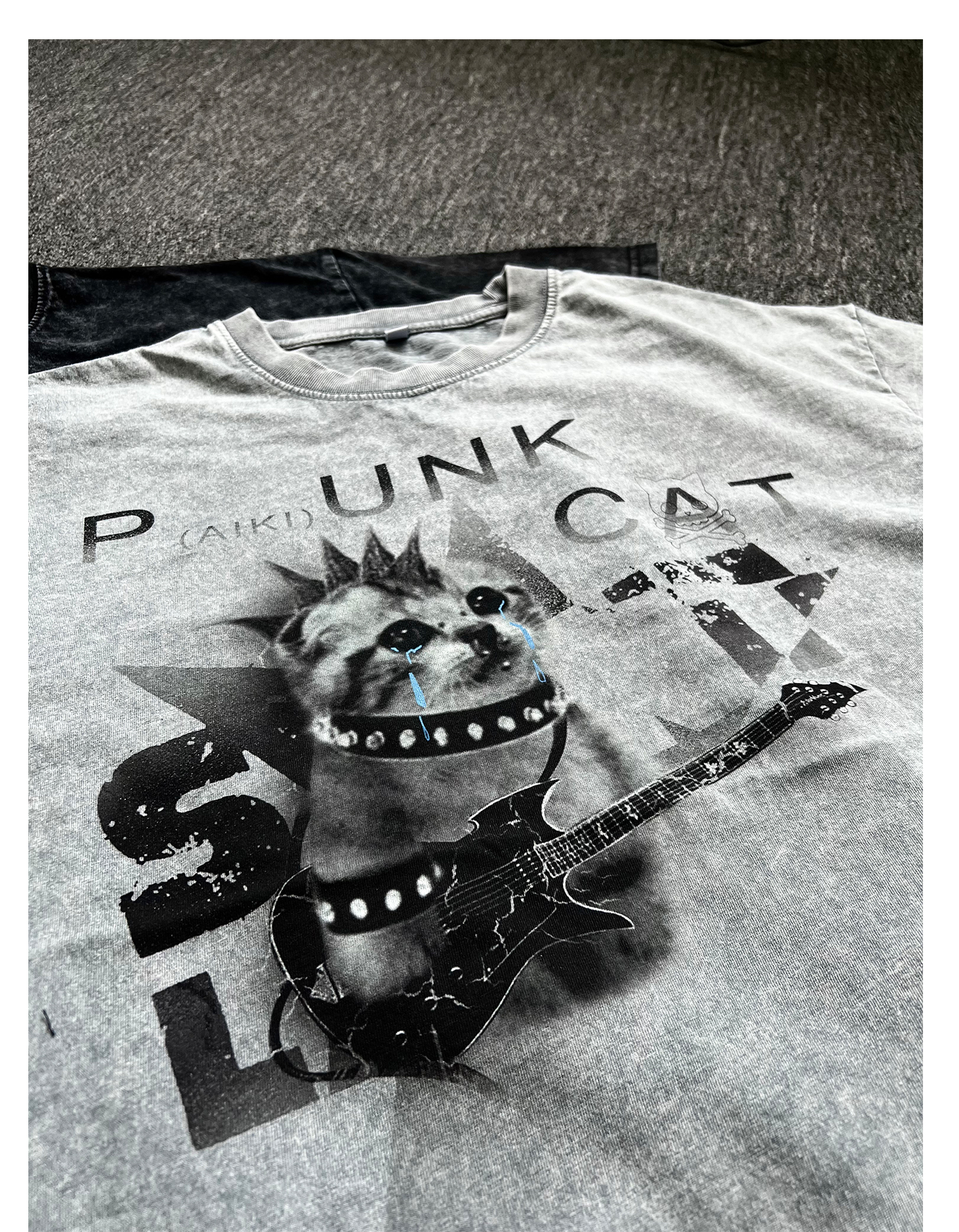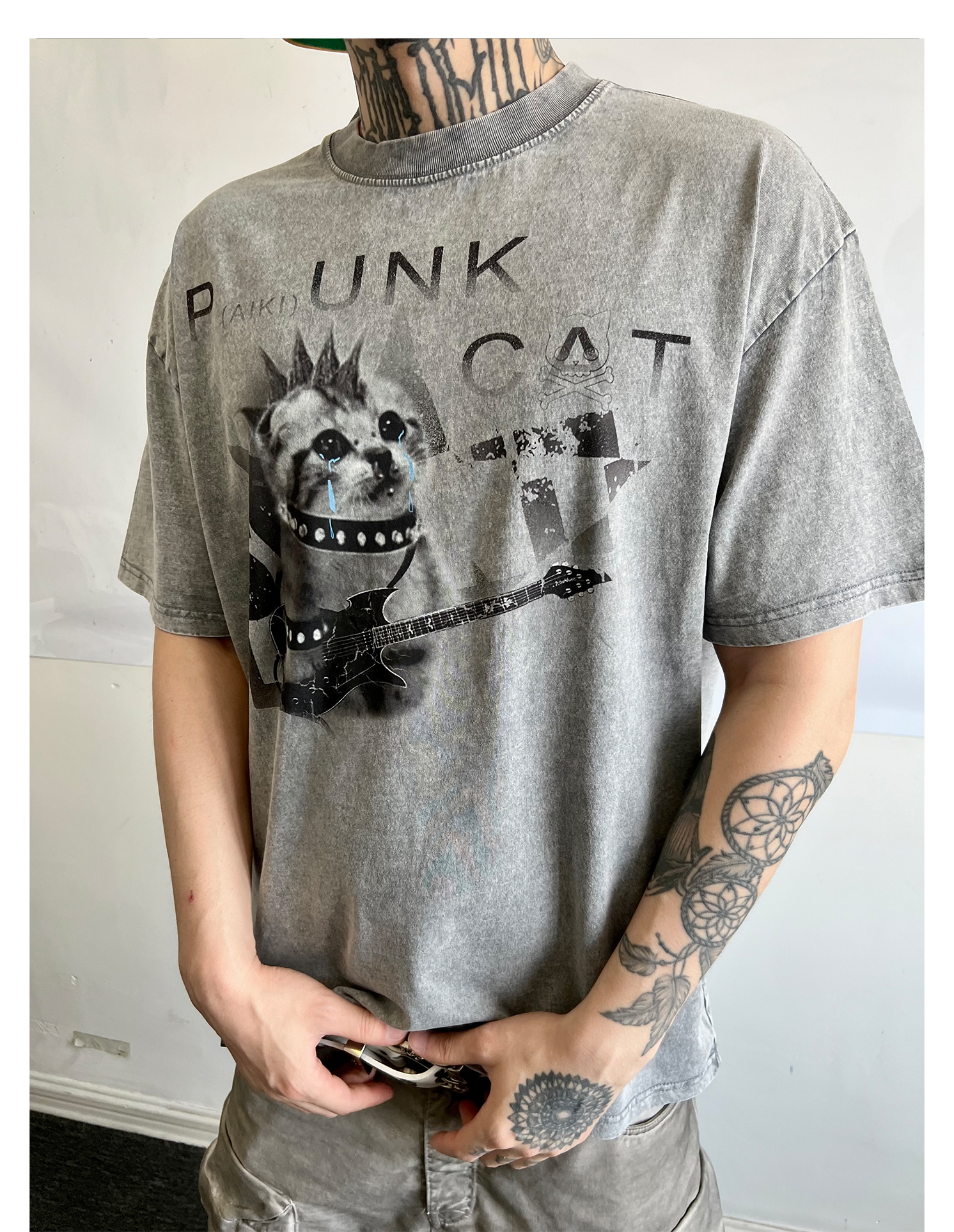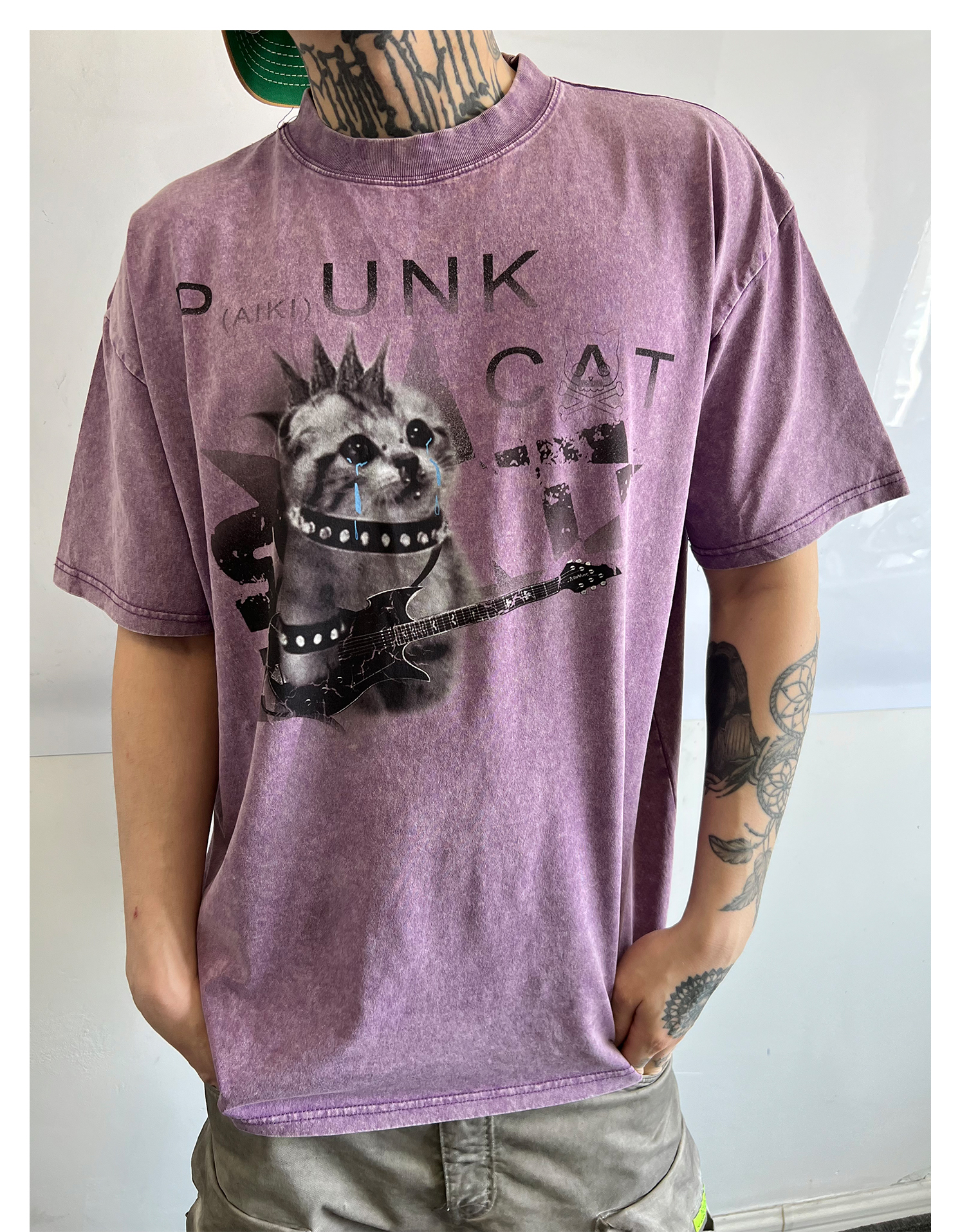 Cat Animal Print Oversize Short Sleeve T-Shirt WN20885
