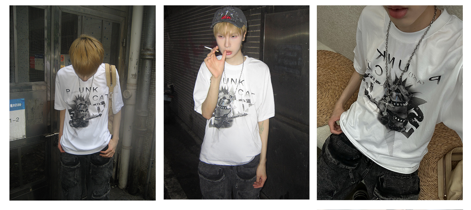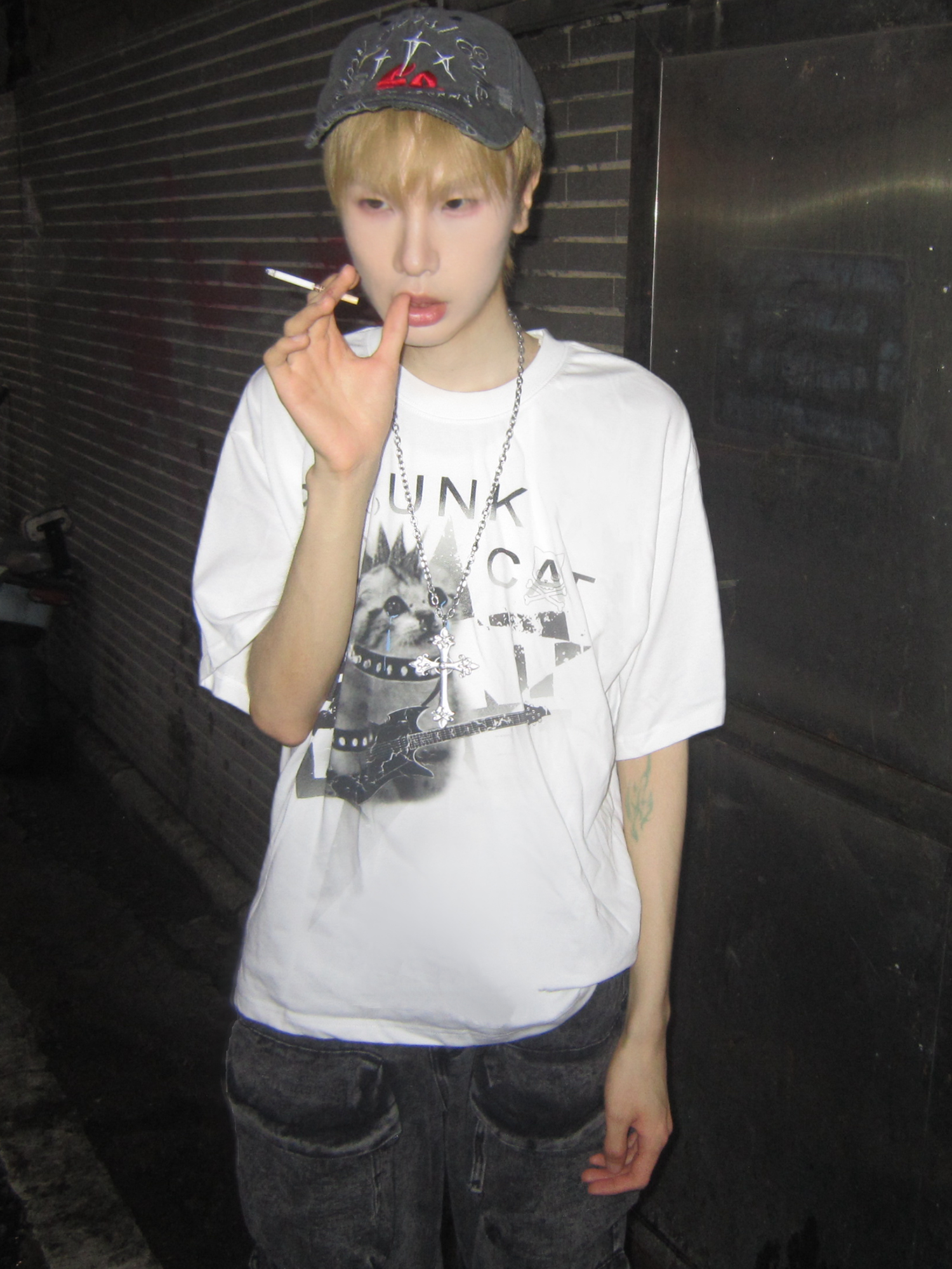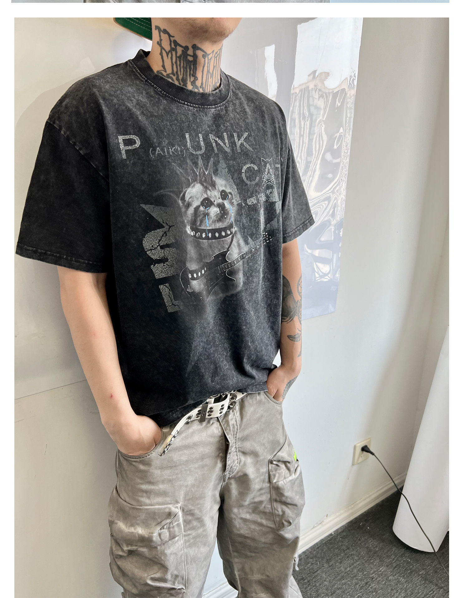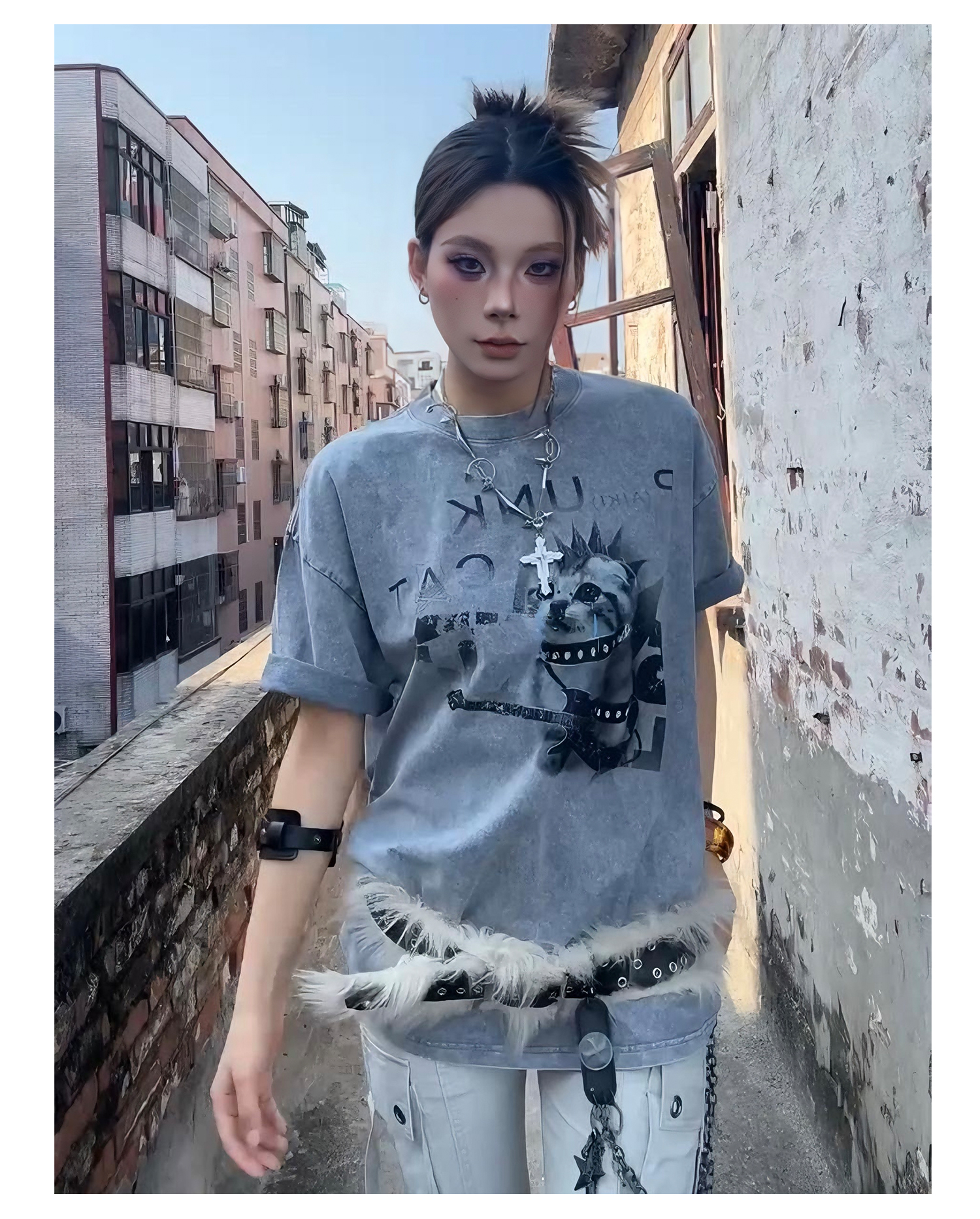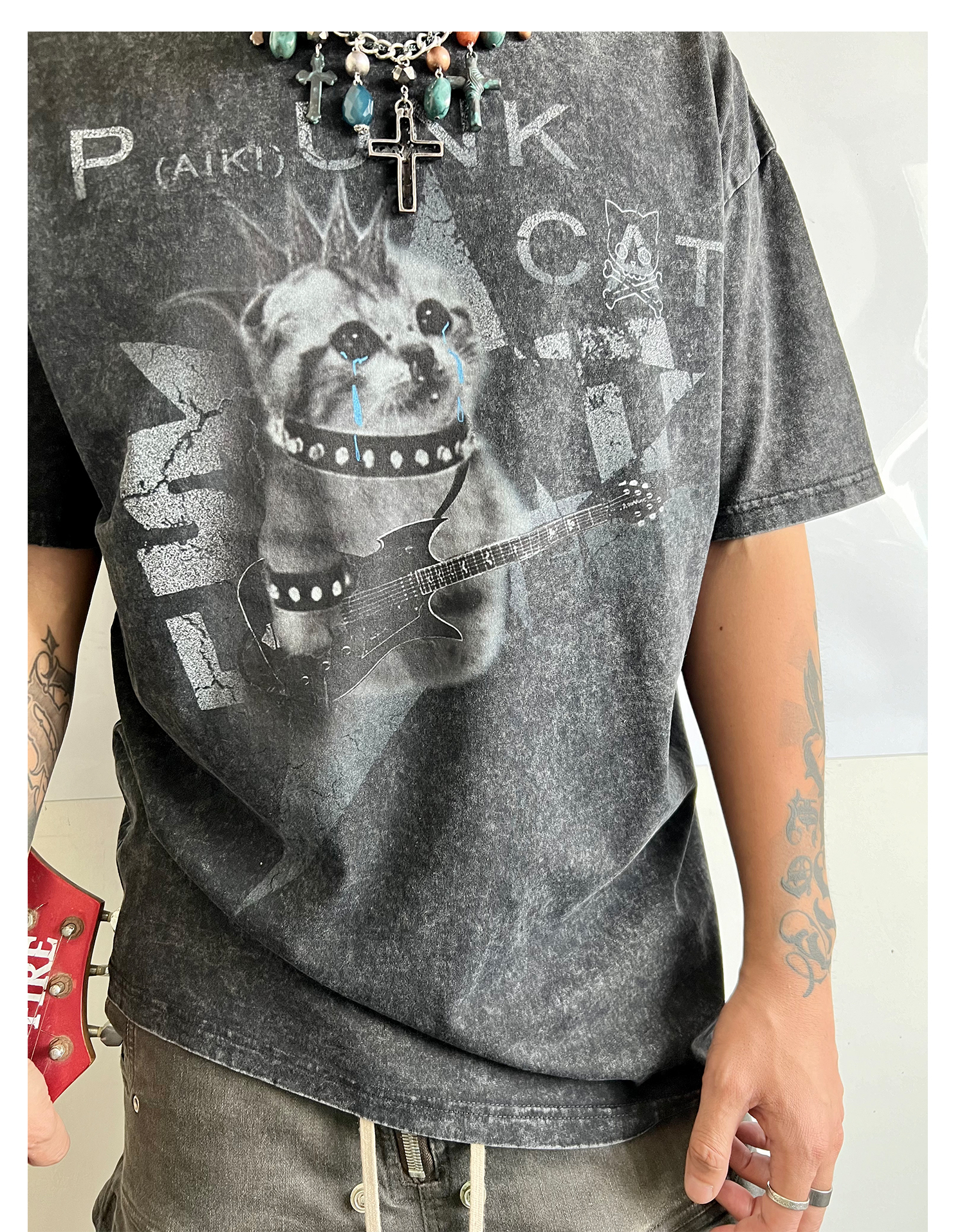 Cat Animal Print Oversize Short Sleeve T-Shirt WN20885