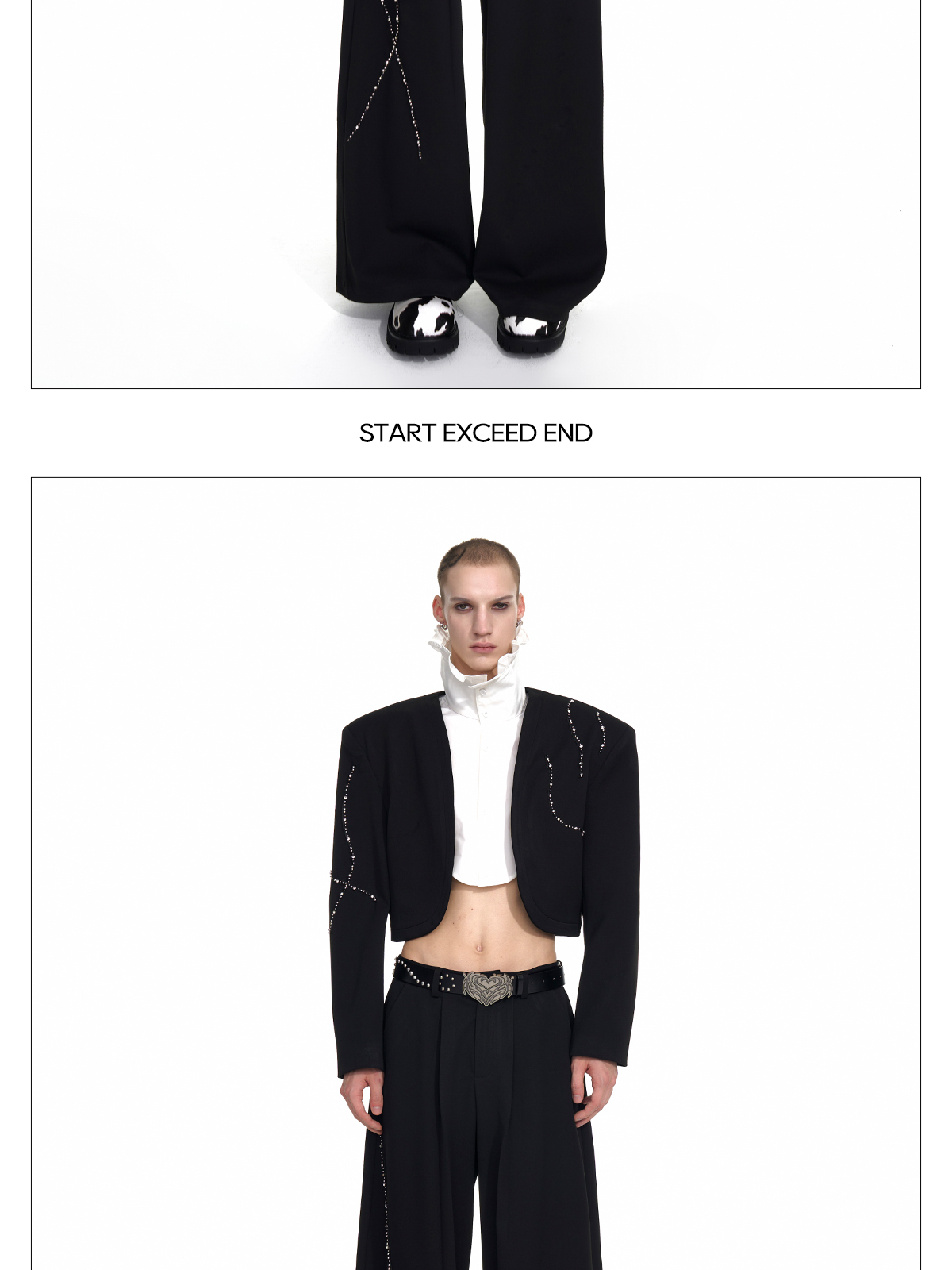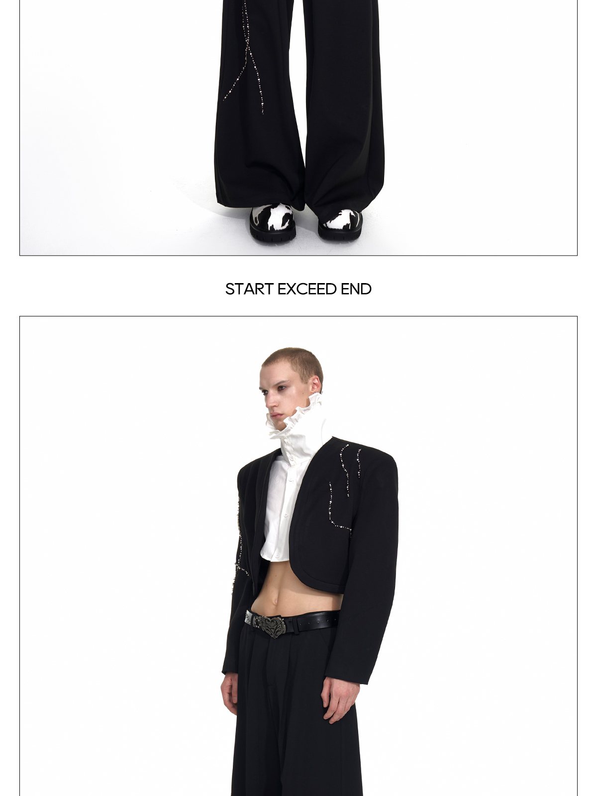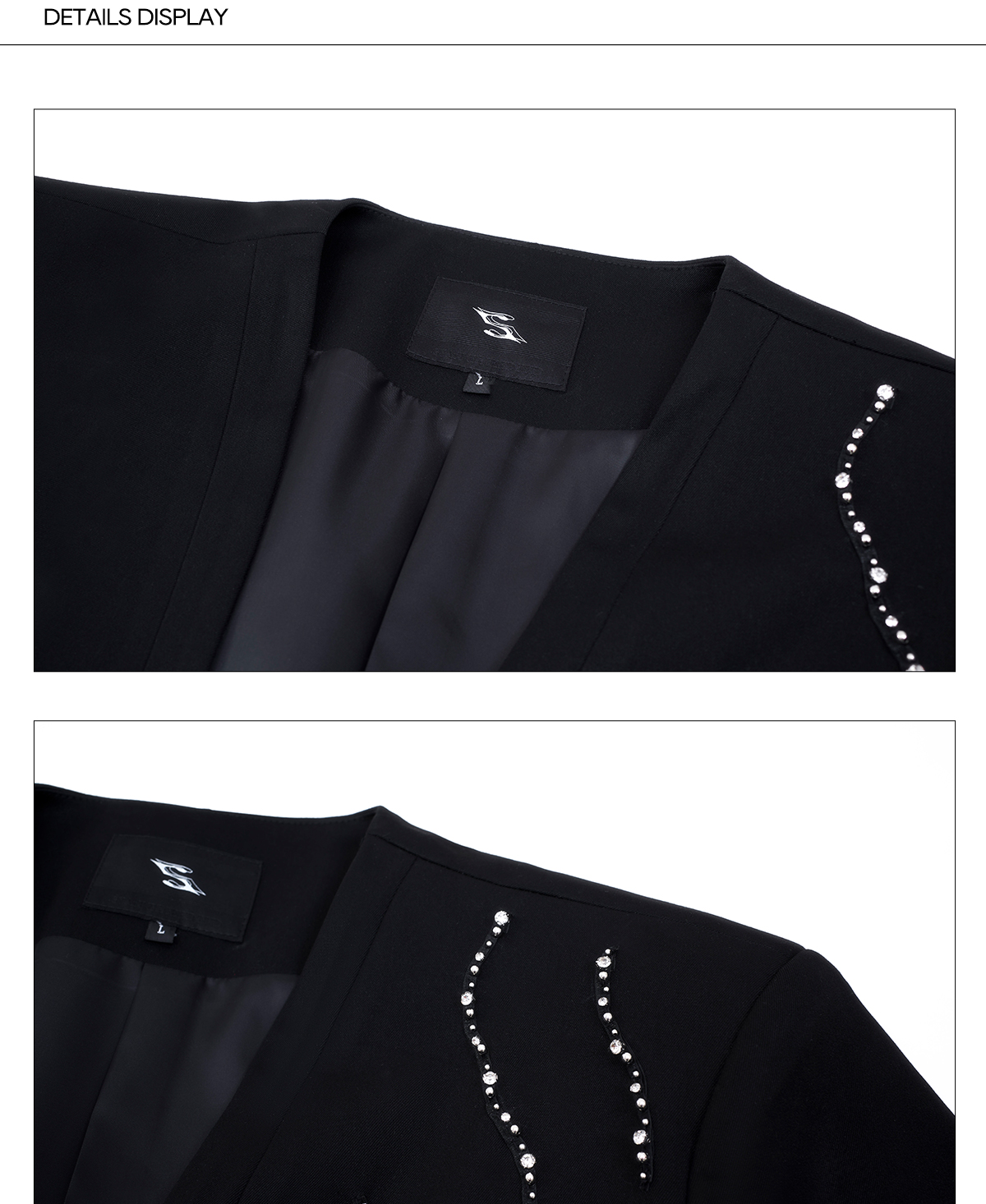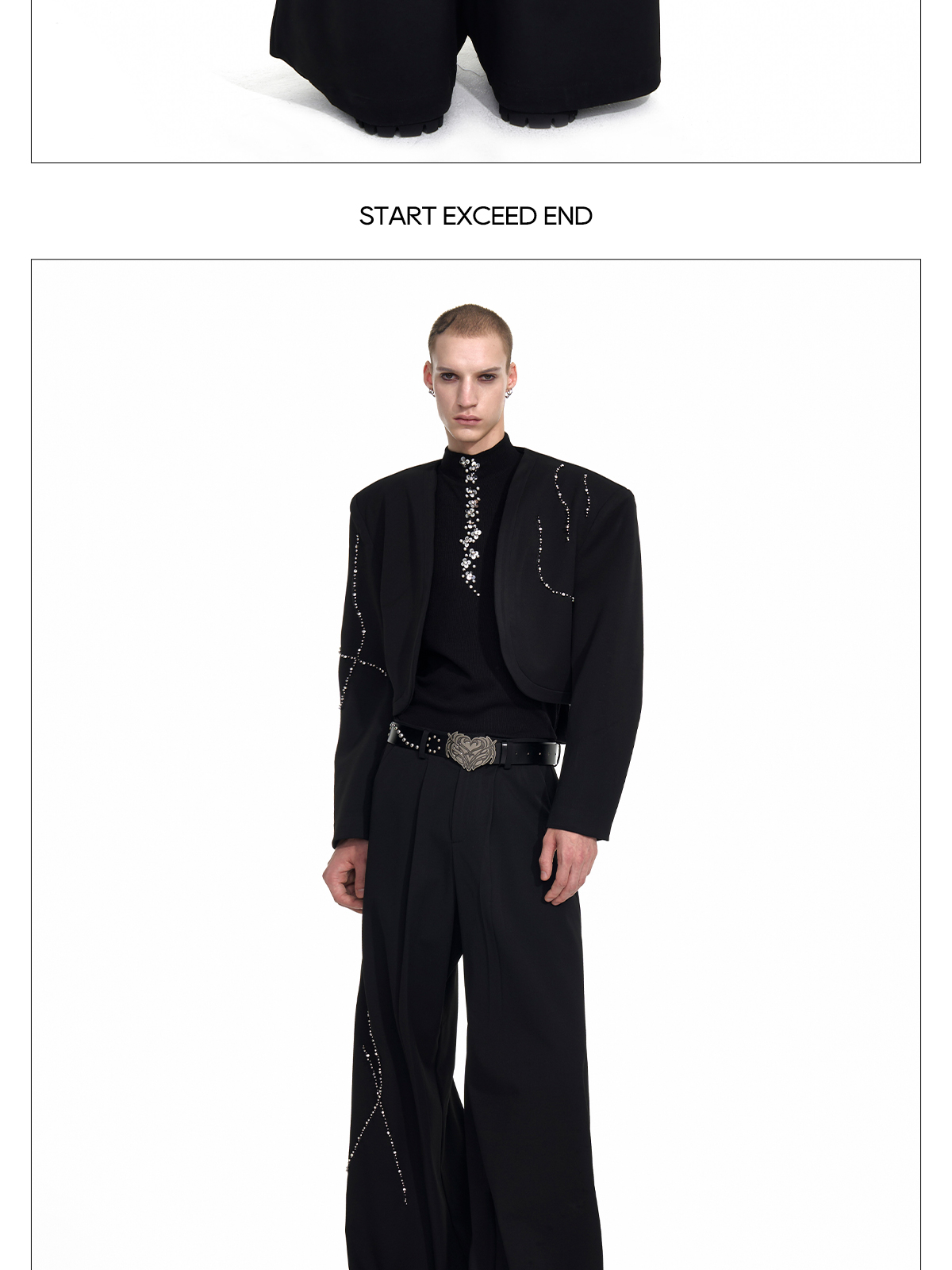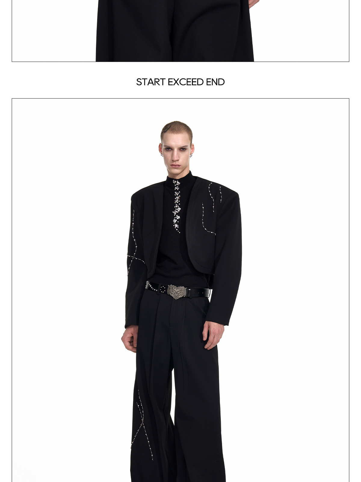 Collarless Shoulder-Pad Rhinestone Tailored Jacket & Rhinestone Trousers Setup WN20924