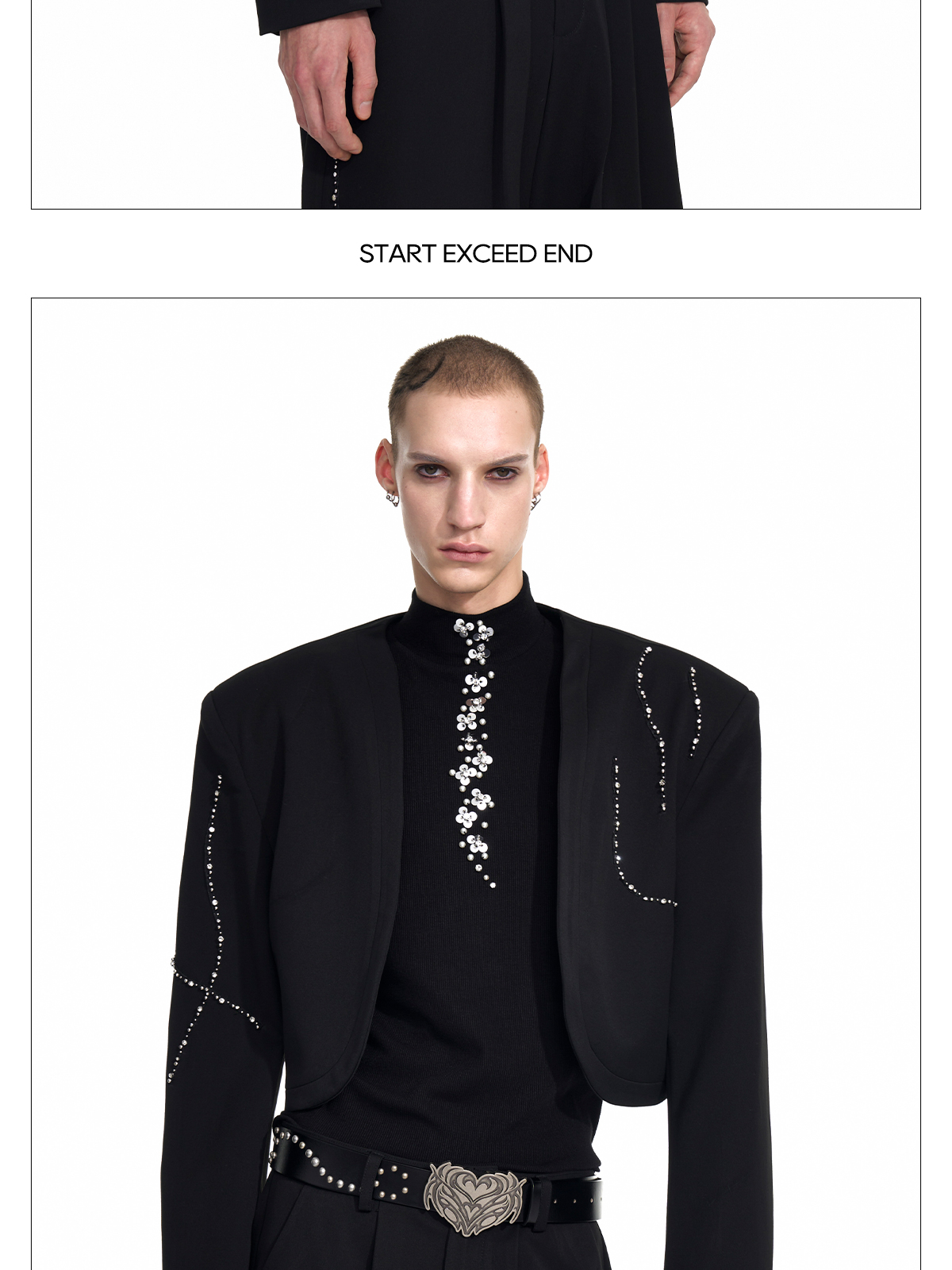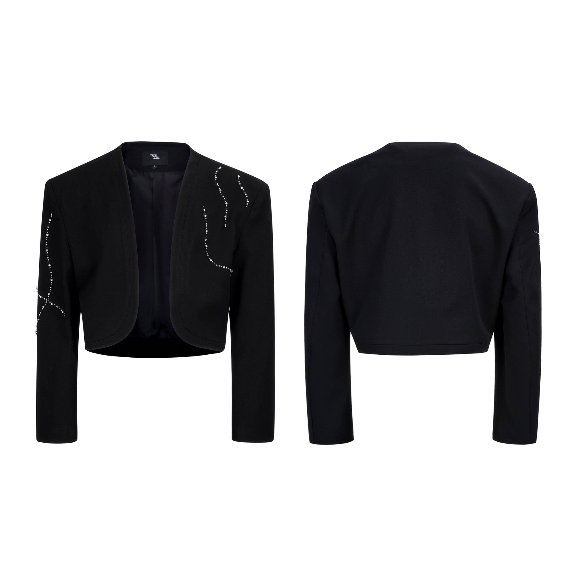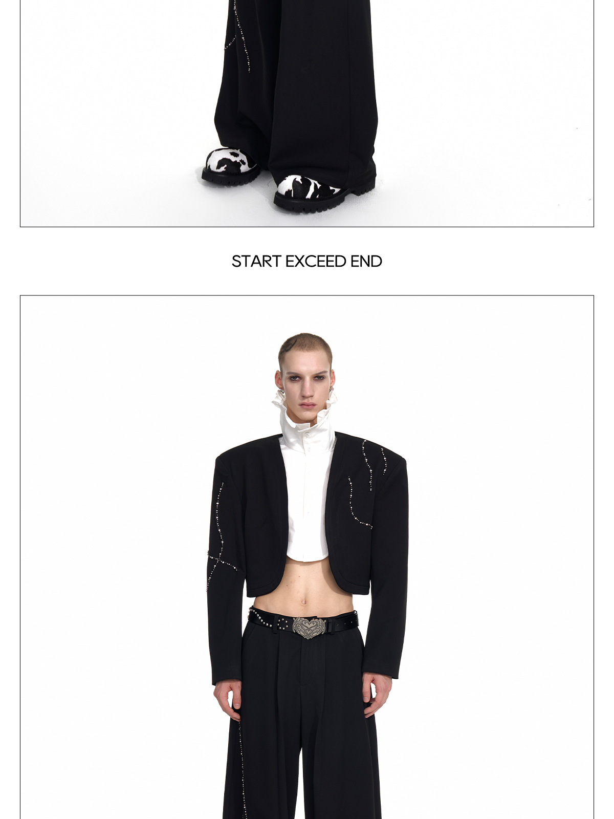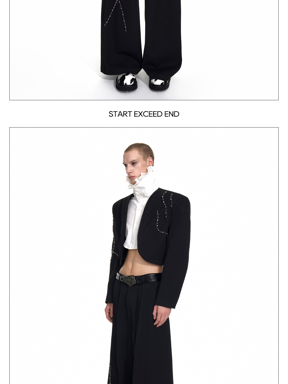 Collarless Shoulder-Pad Rhinestone Tailored Jacket & Rhinestone Trousers Setup WN20924