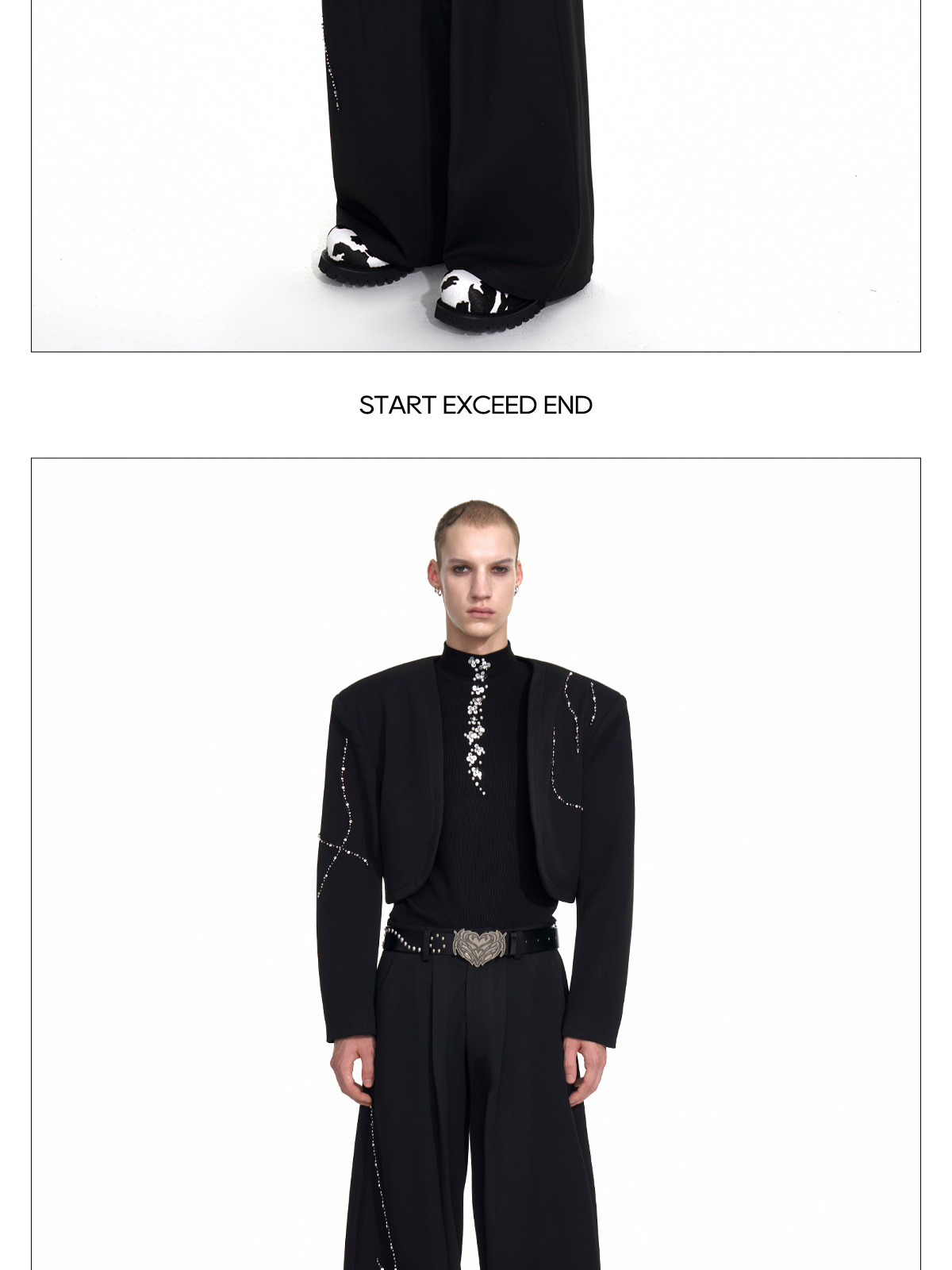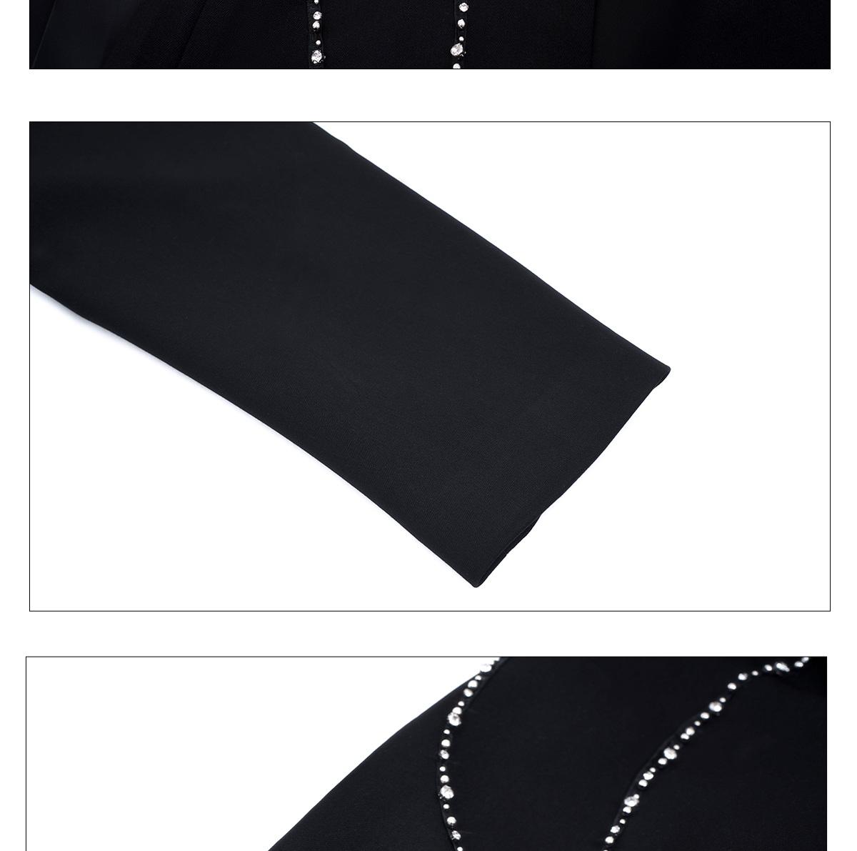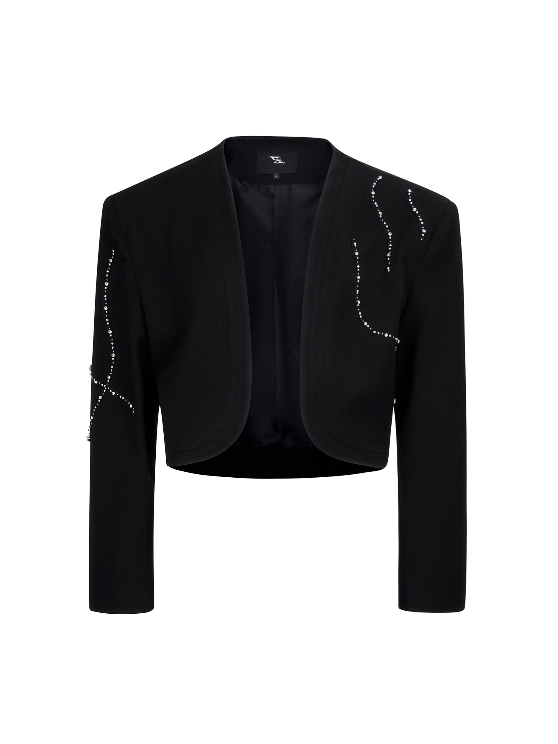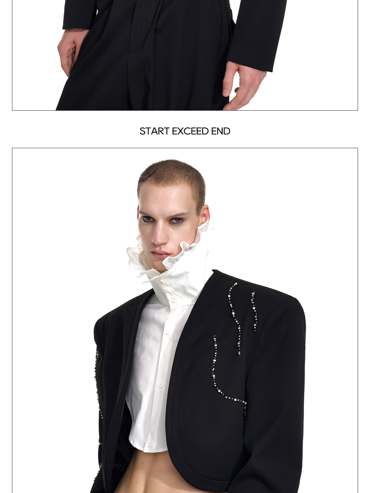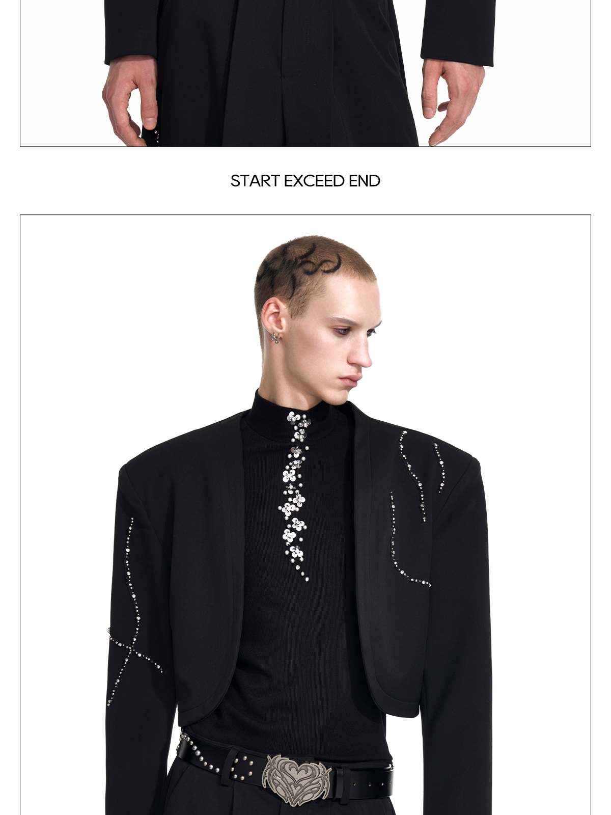 Collarless Shoulder-Pad Rhinestone Tailored Jacket & Rhinestone Trousers Setup WN20924