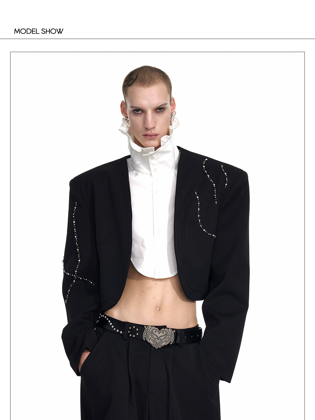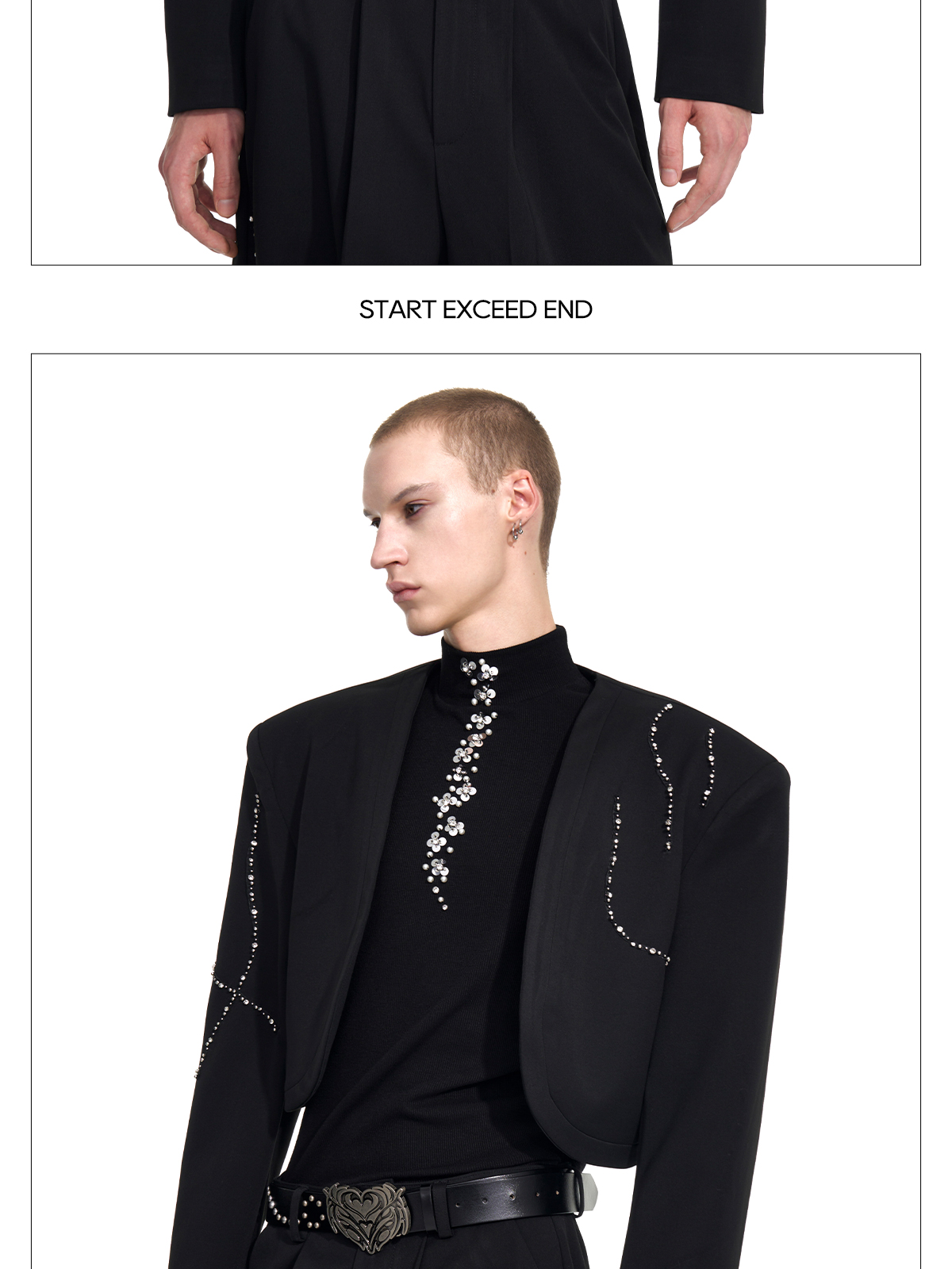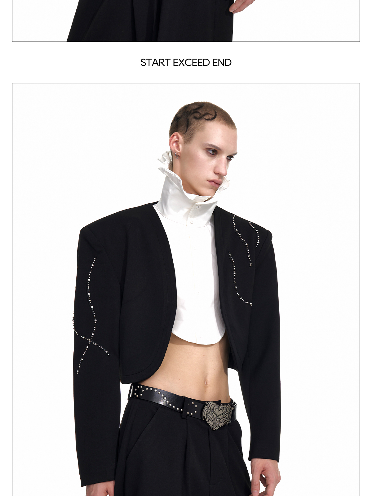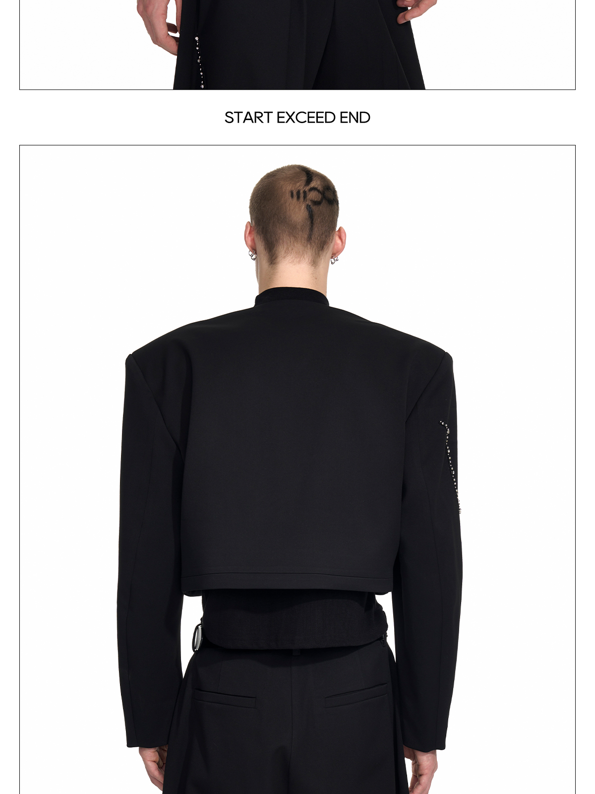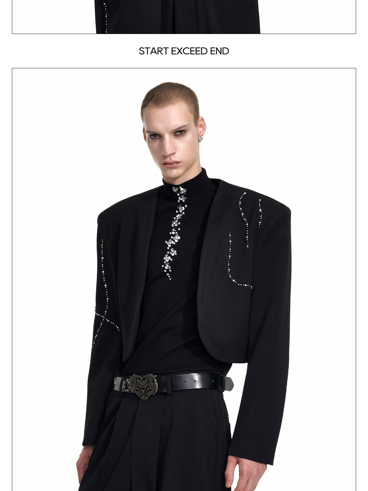 Collarless Shoulder-Pad Rhinestone Tailored Jacket & Rhinestone Trousers Setup WN20924