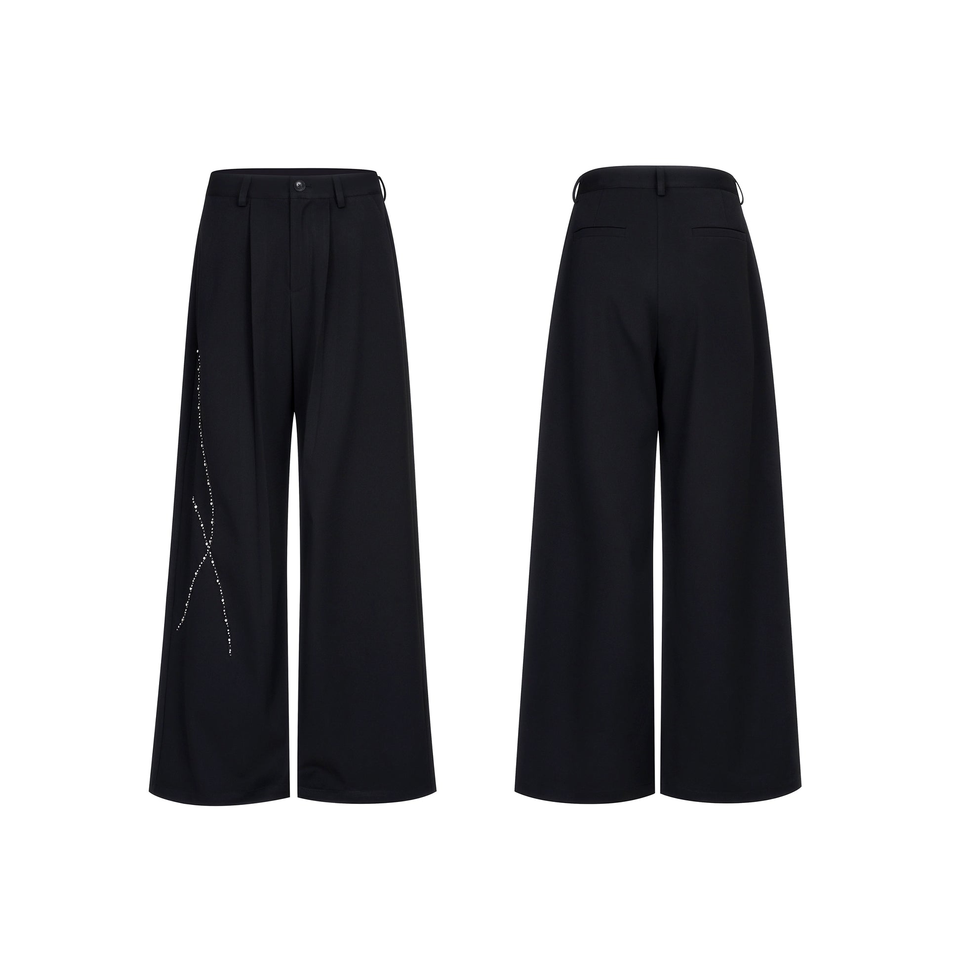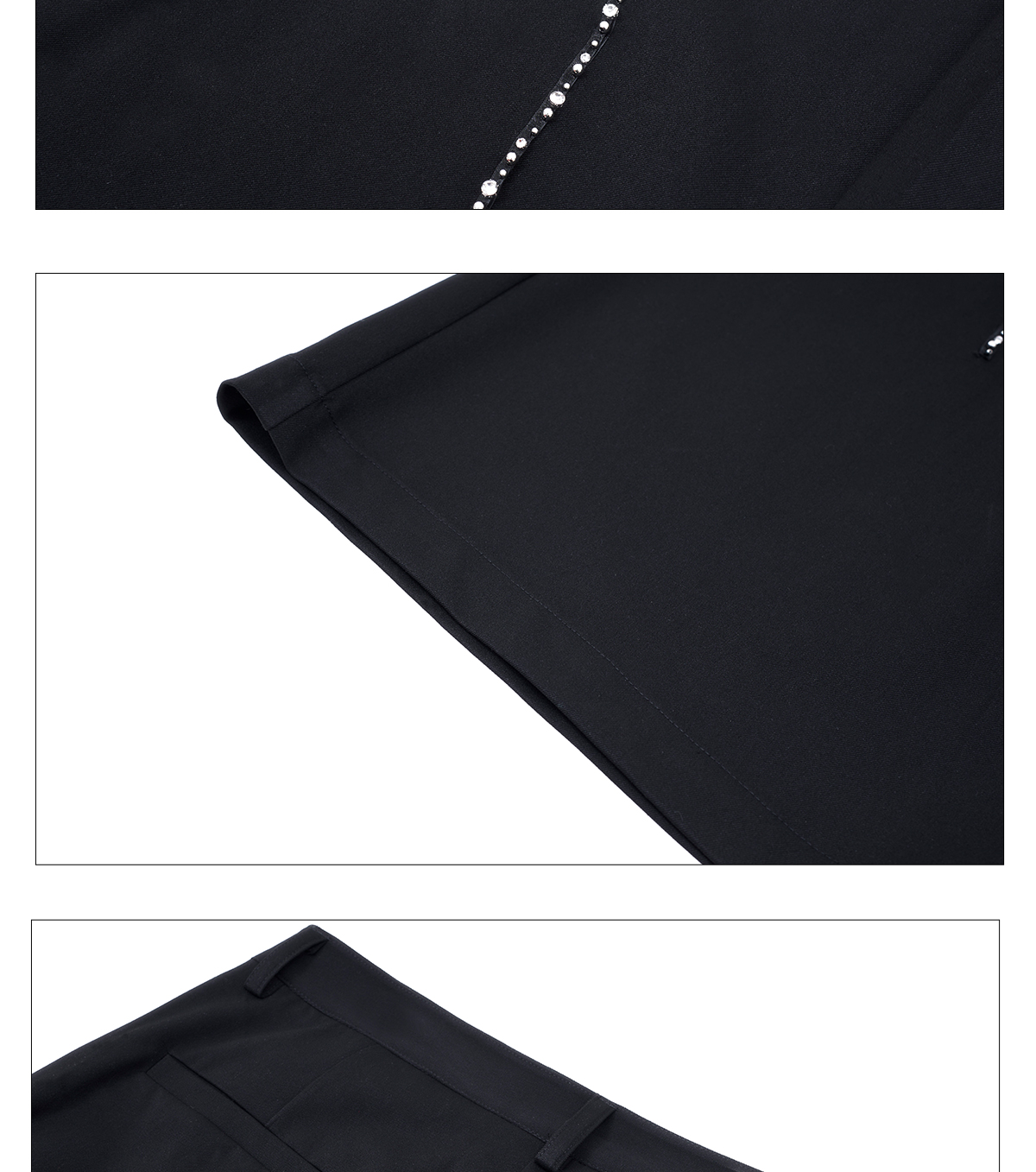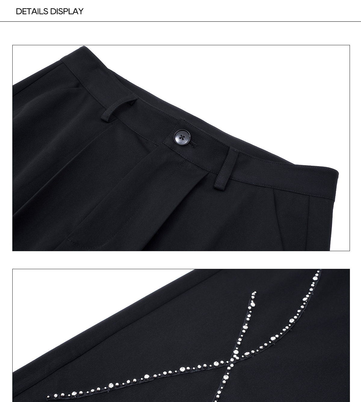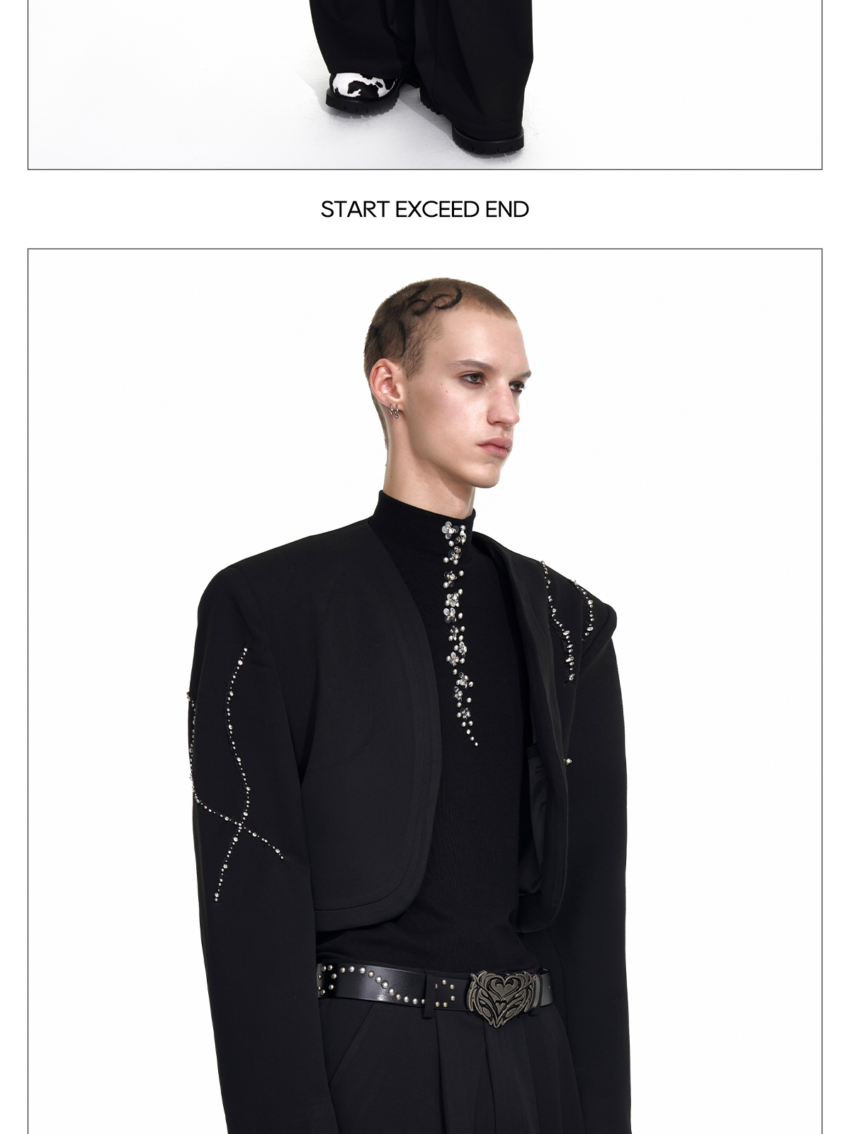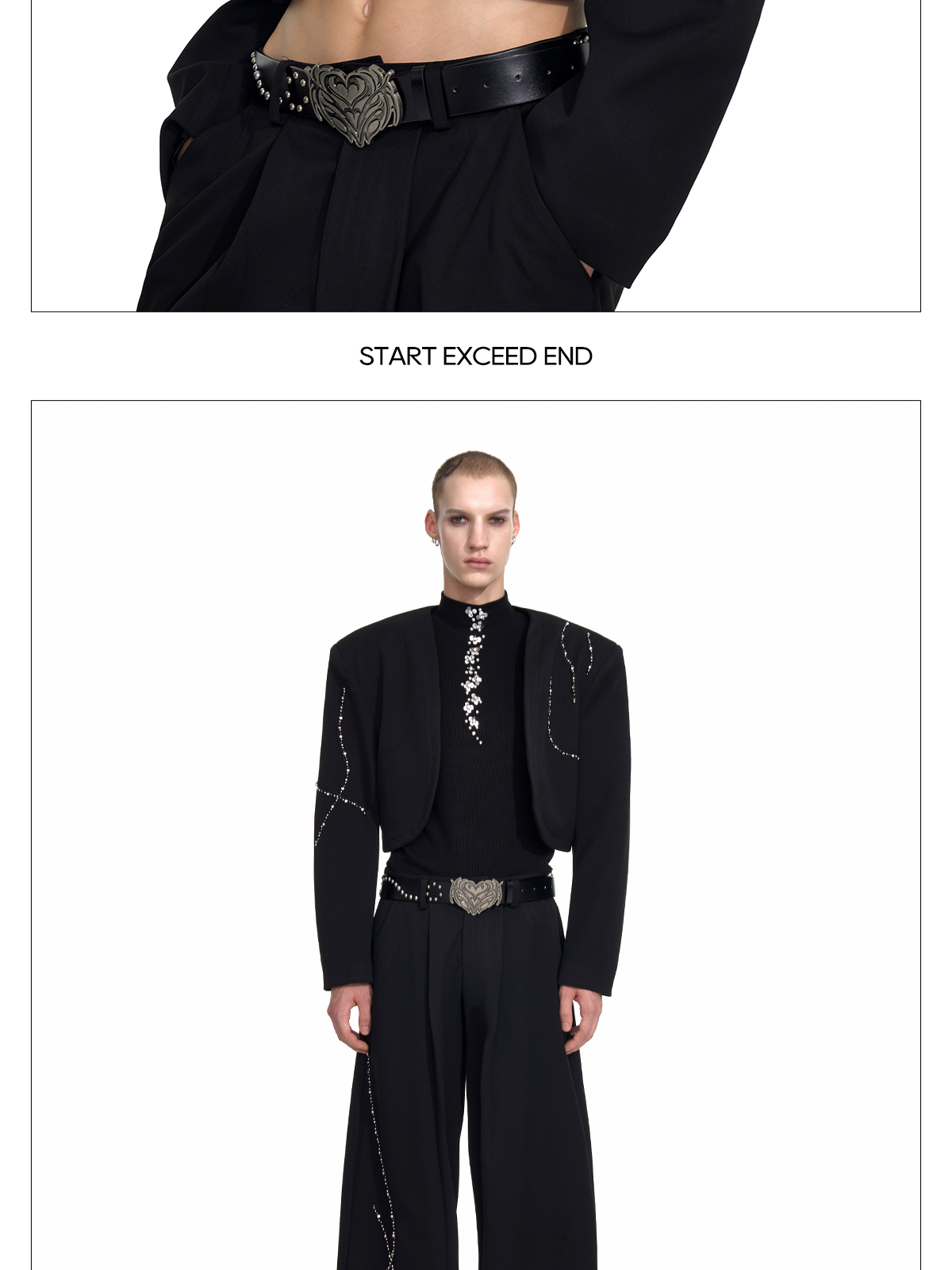Collarless Shoulder-Pad Rhinestone Tailored Jacket & Rhinestone Trousers Setup WN20924