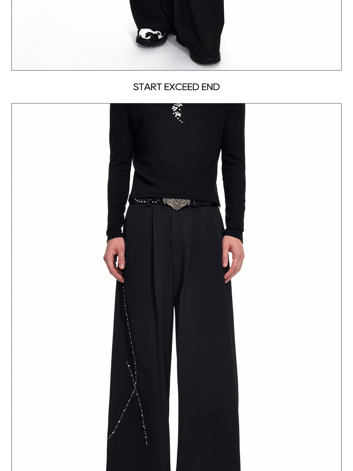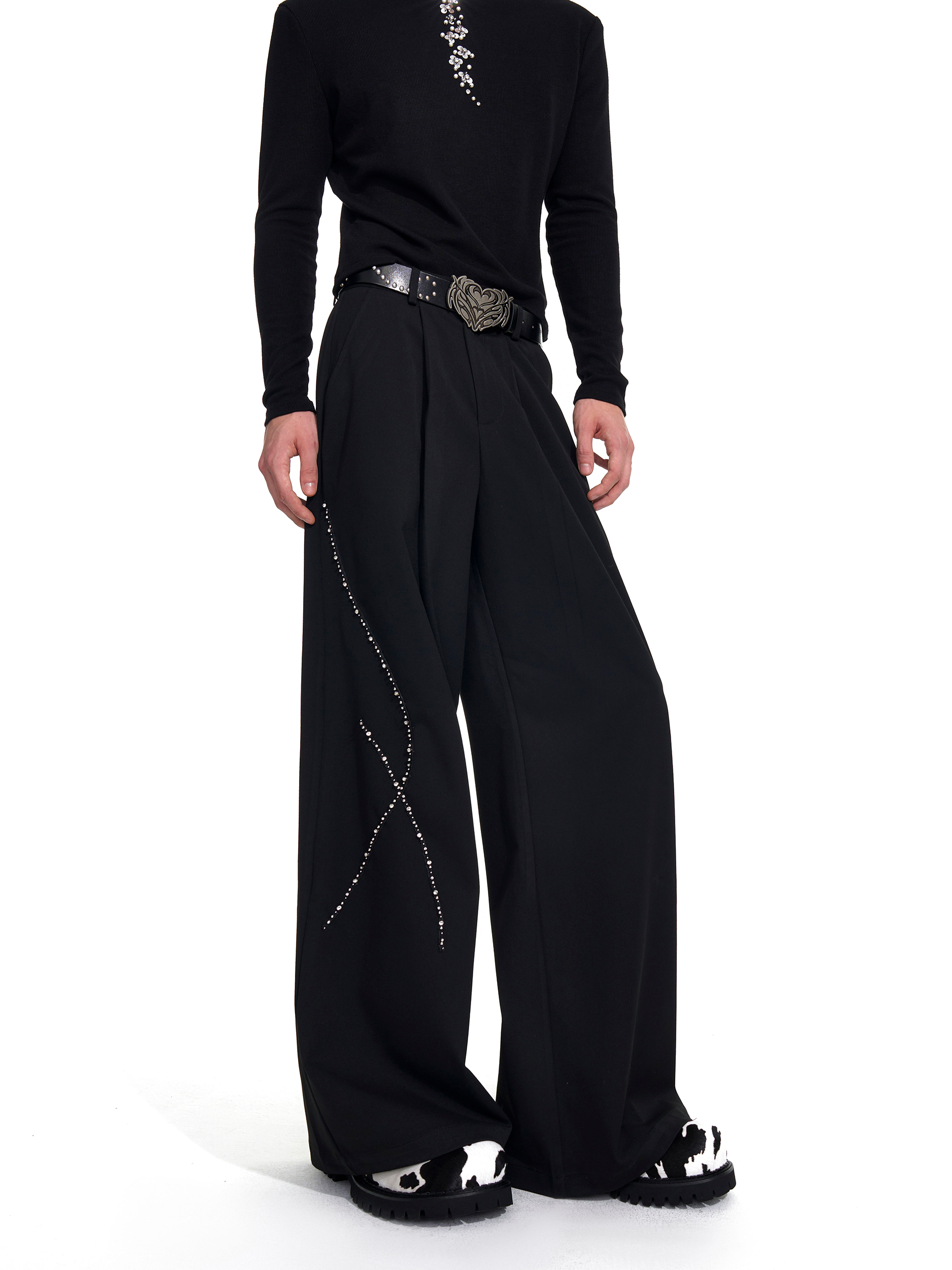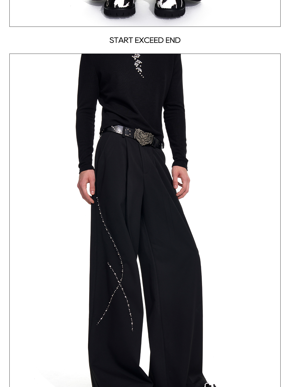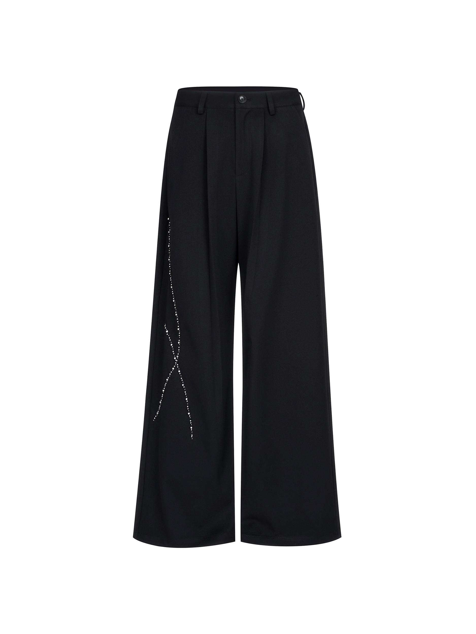 Collarless Shoulder-Pad Rhinestone Tailored Jacket & Rhinestone Trousers Setup WN20924