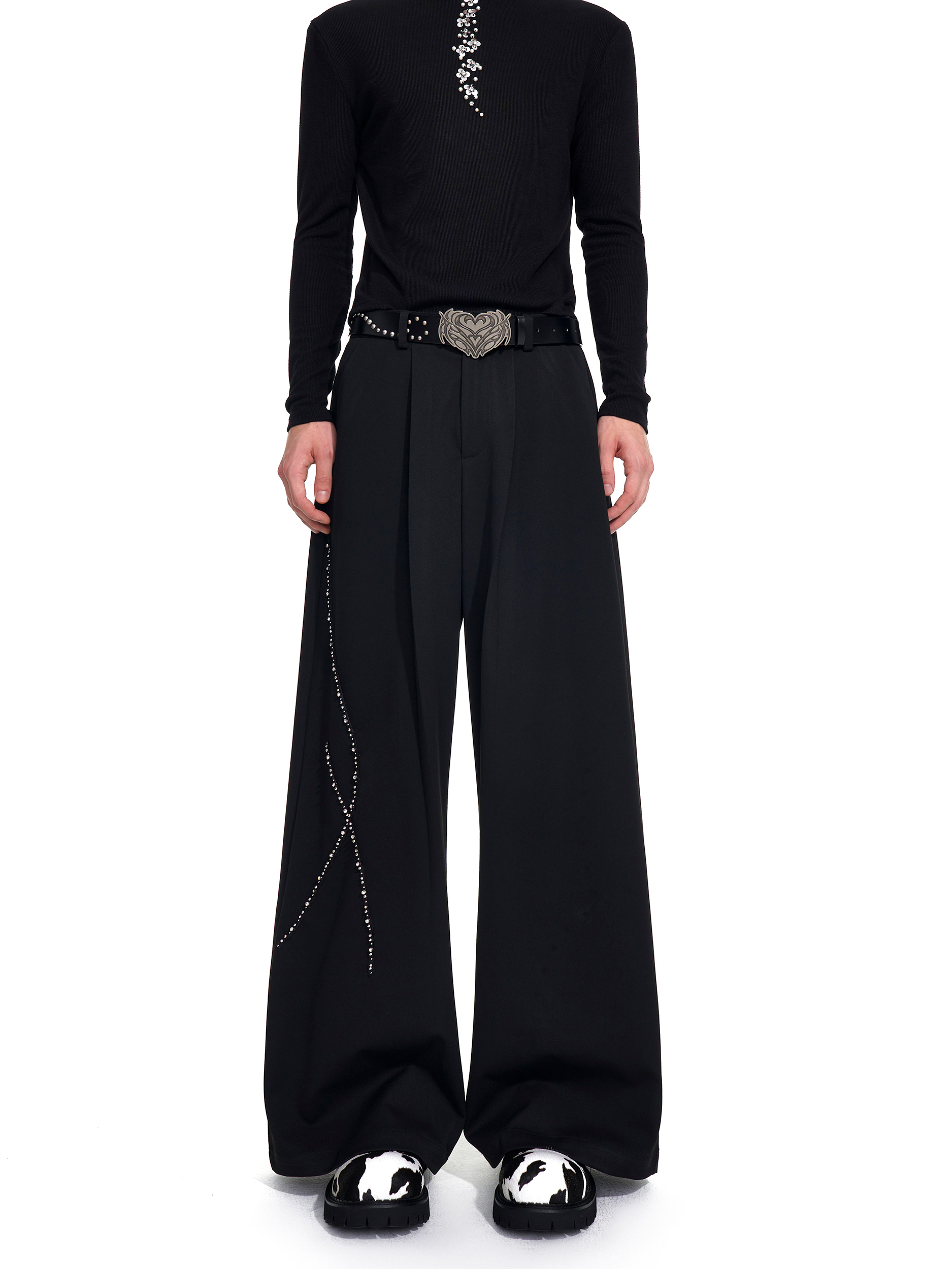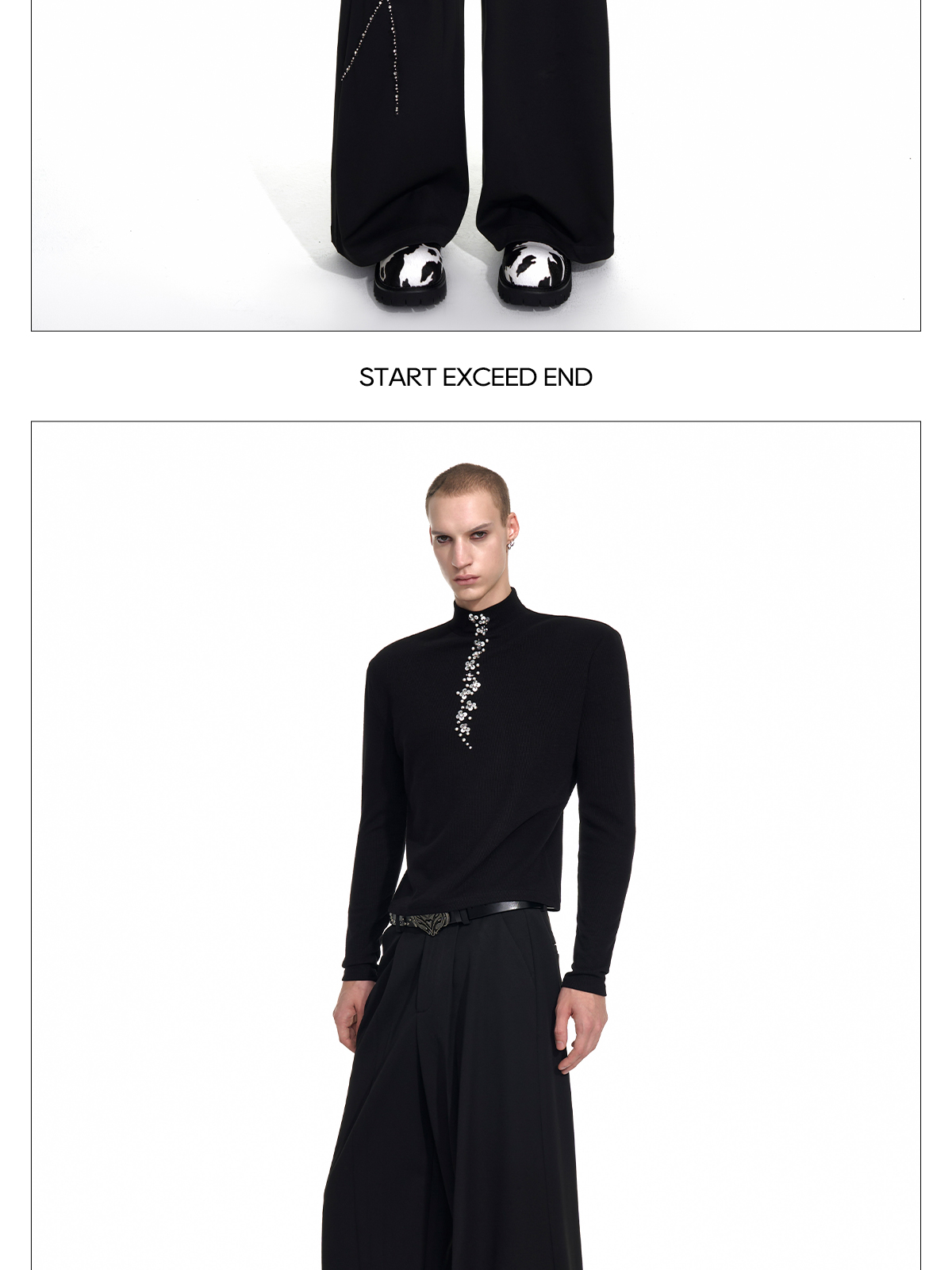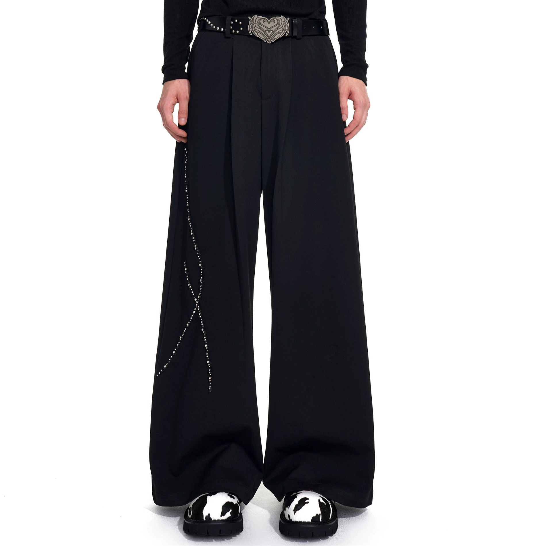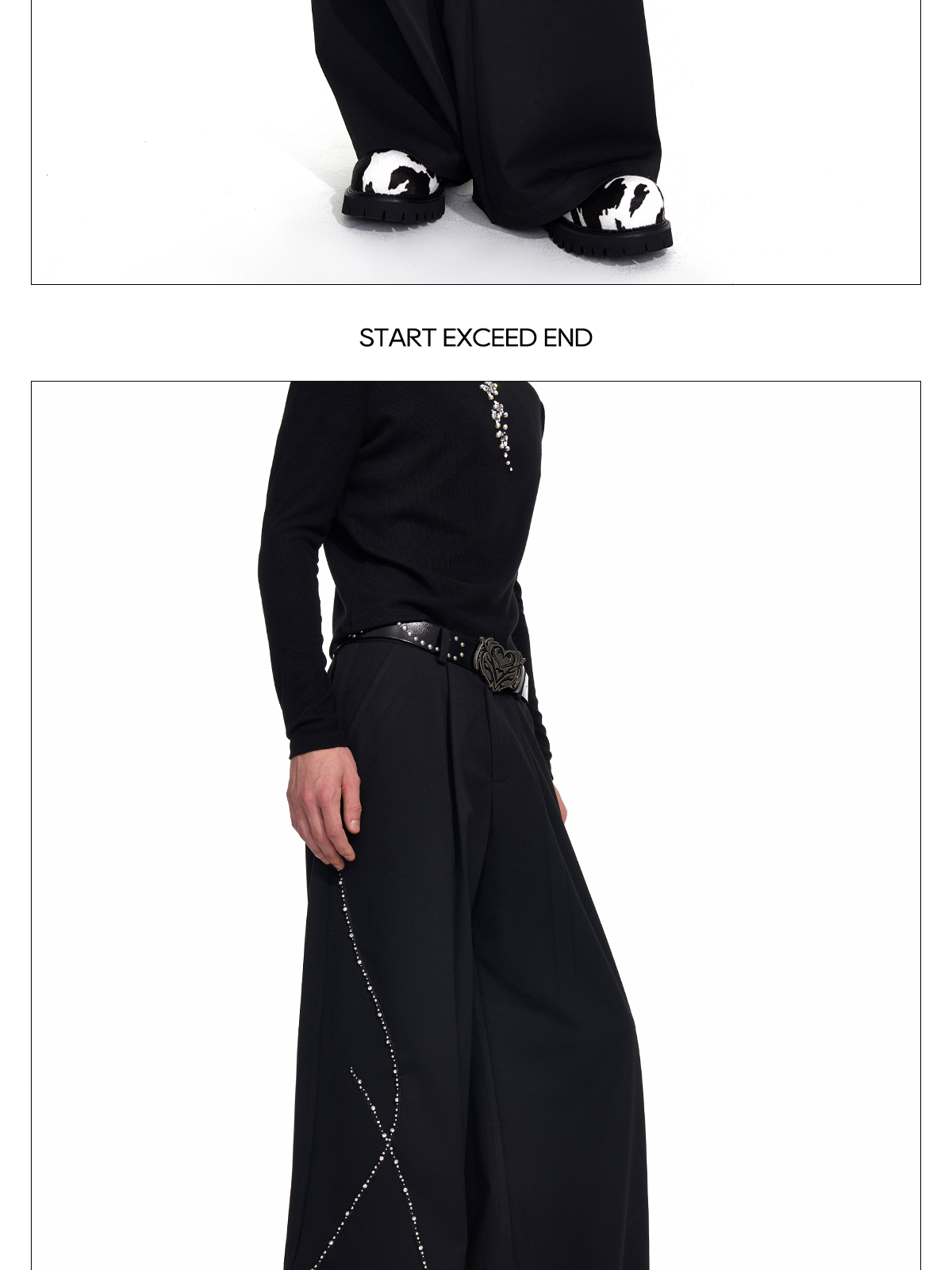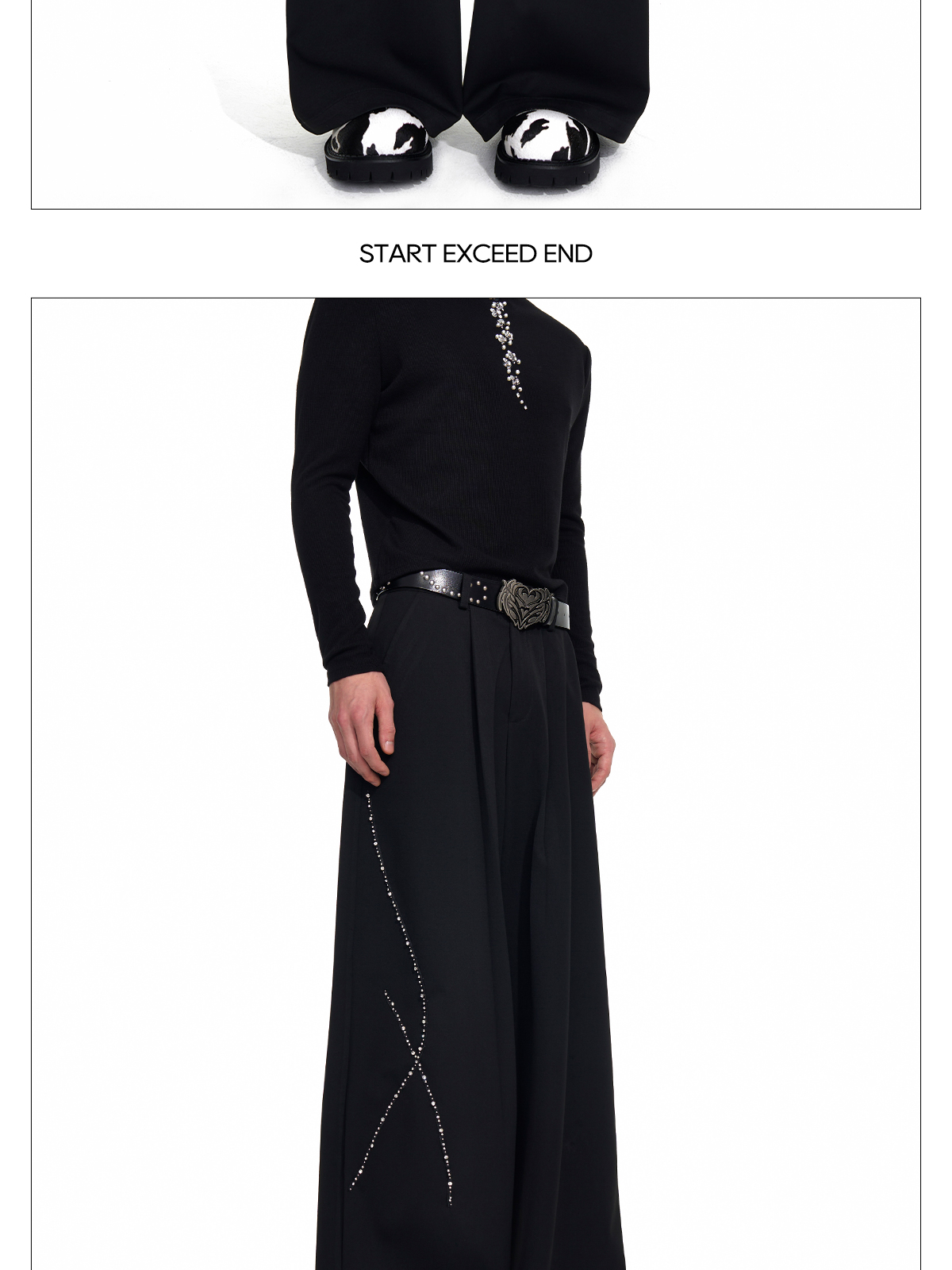 Collarless Shoulder-Pad Rhinestone Tailored Jacket & Rhinestone Trousers Setup WN20924