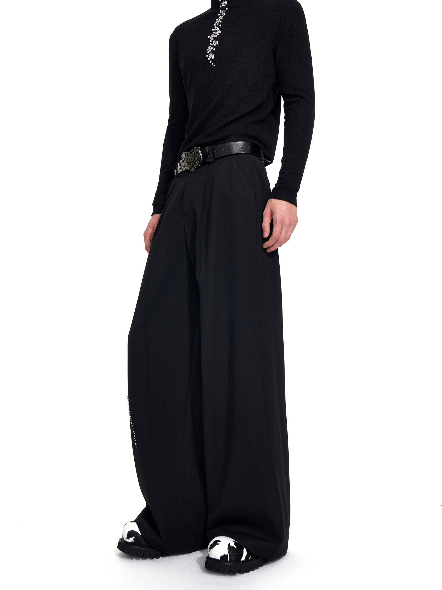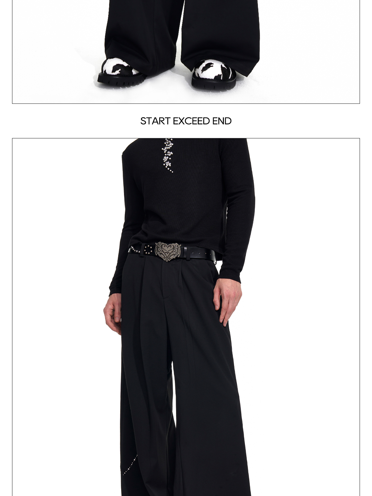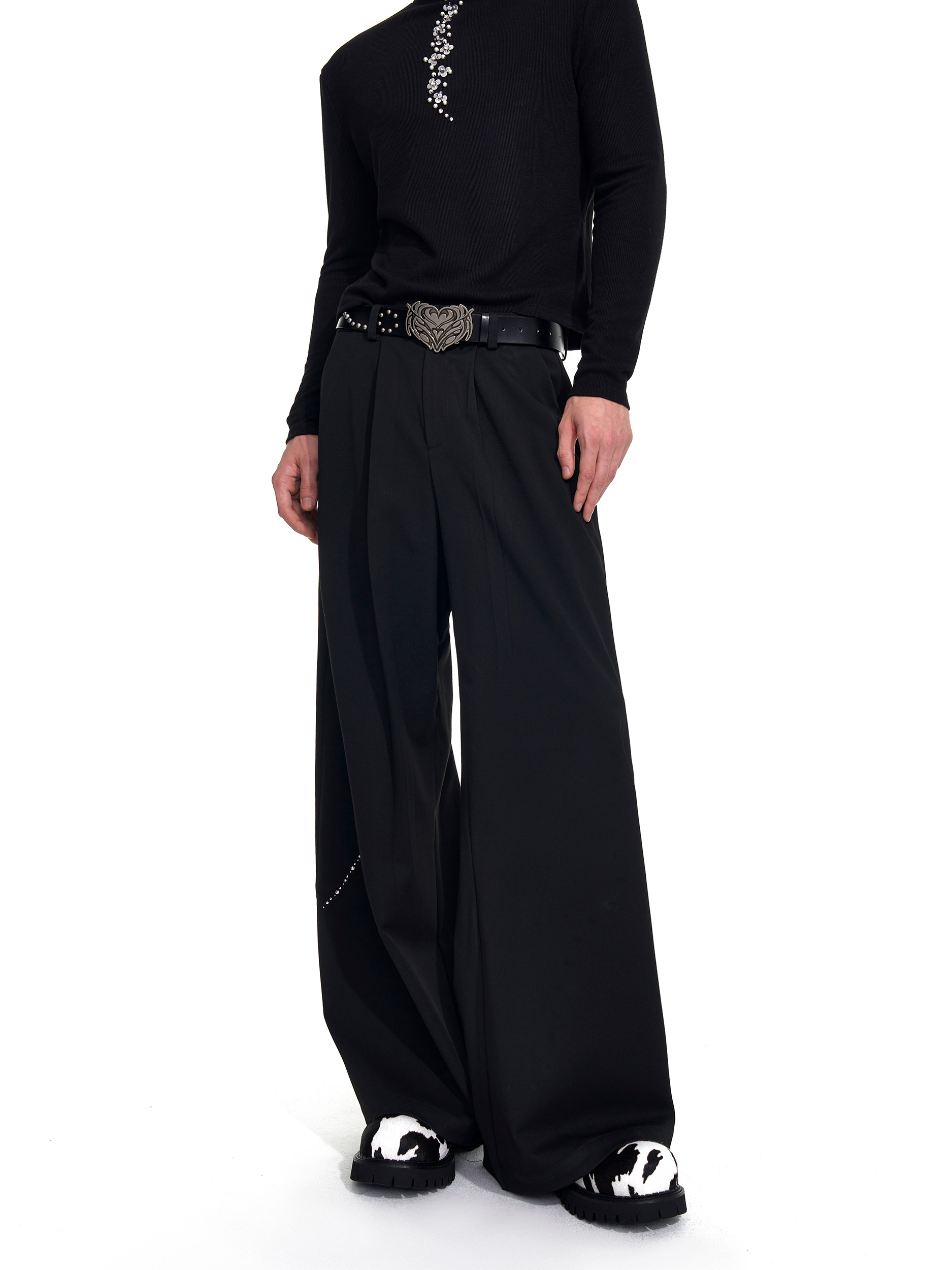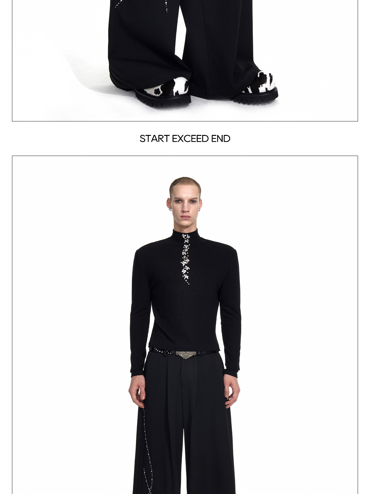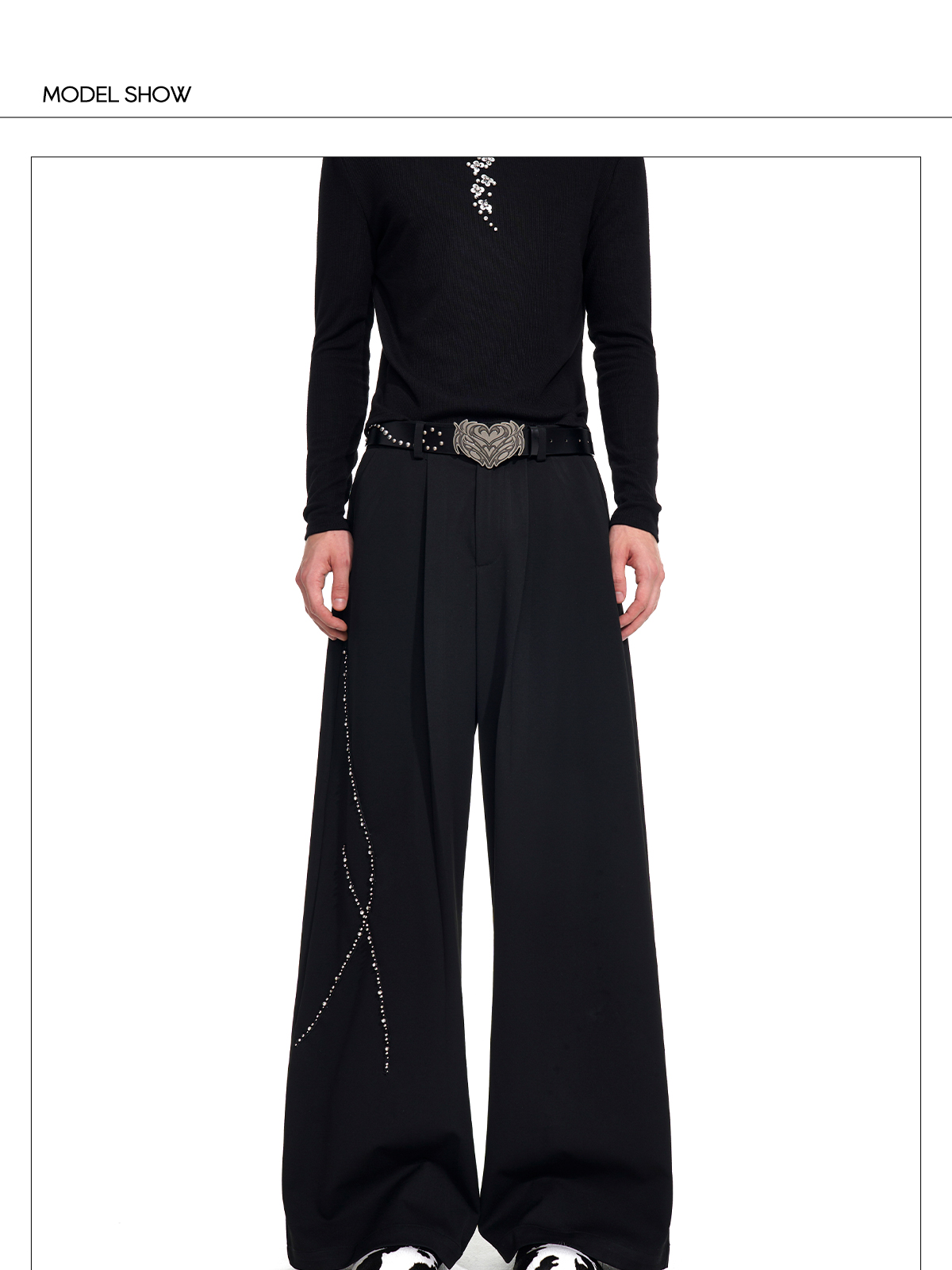 Collarless Shoulder-Pad Rhinestone Tailored Jacket & Rhinestone Trousers Setup WN20924