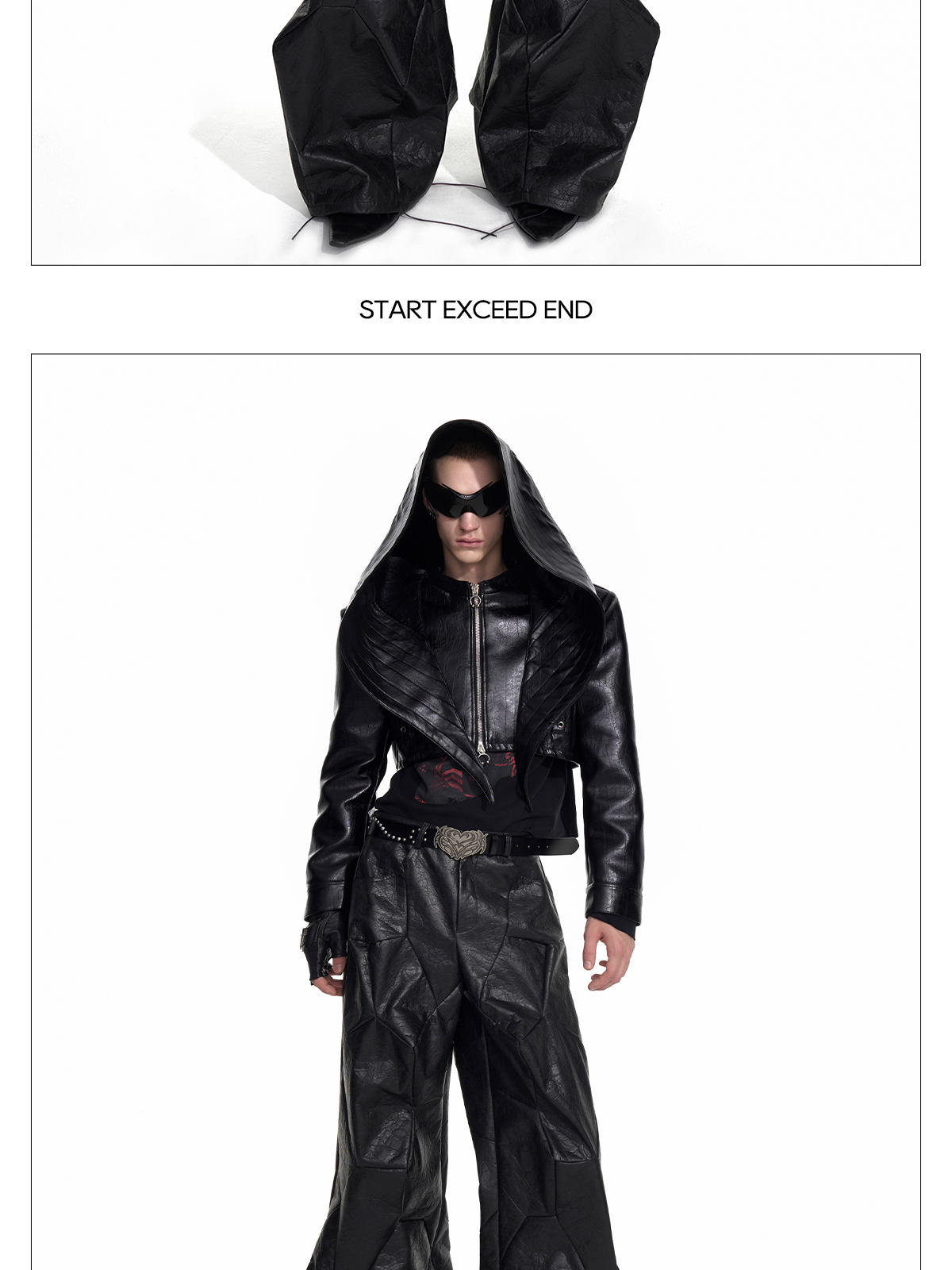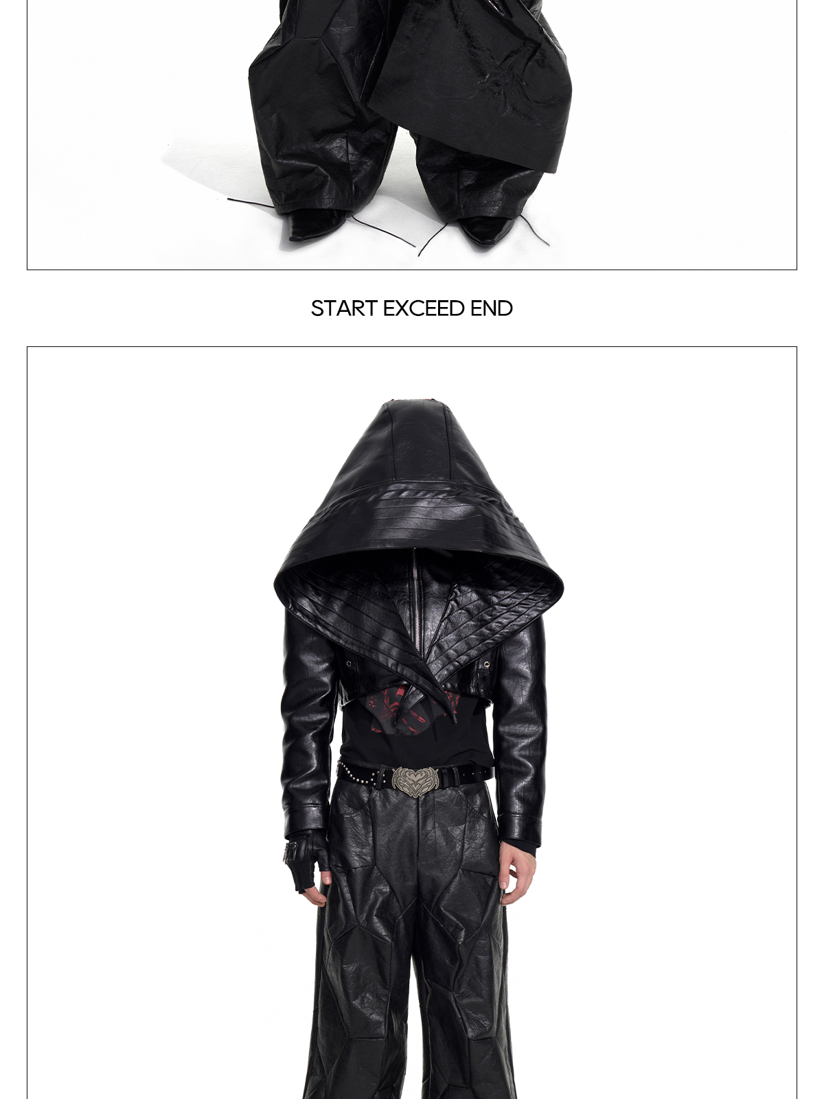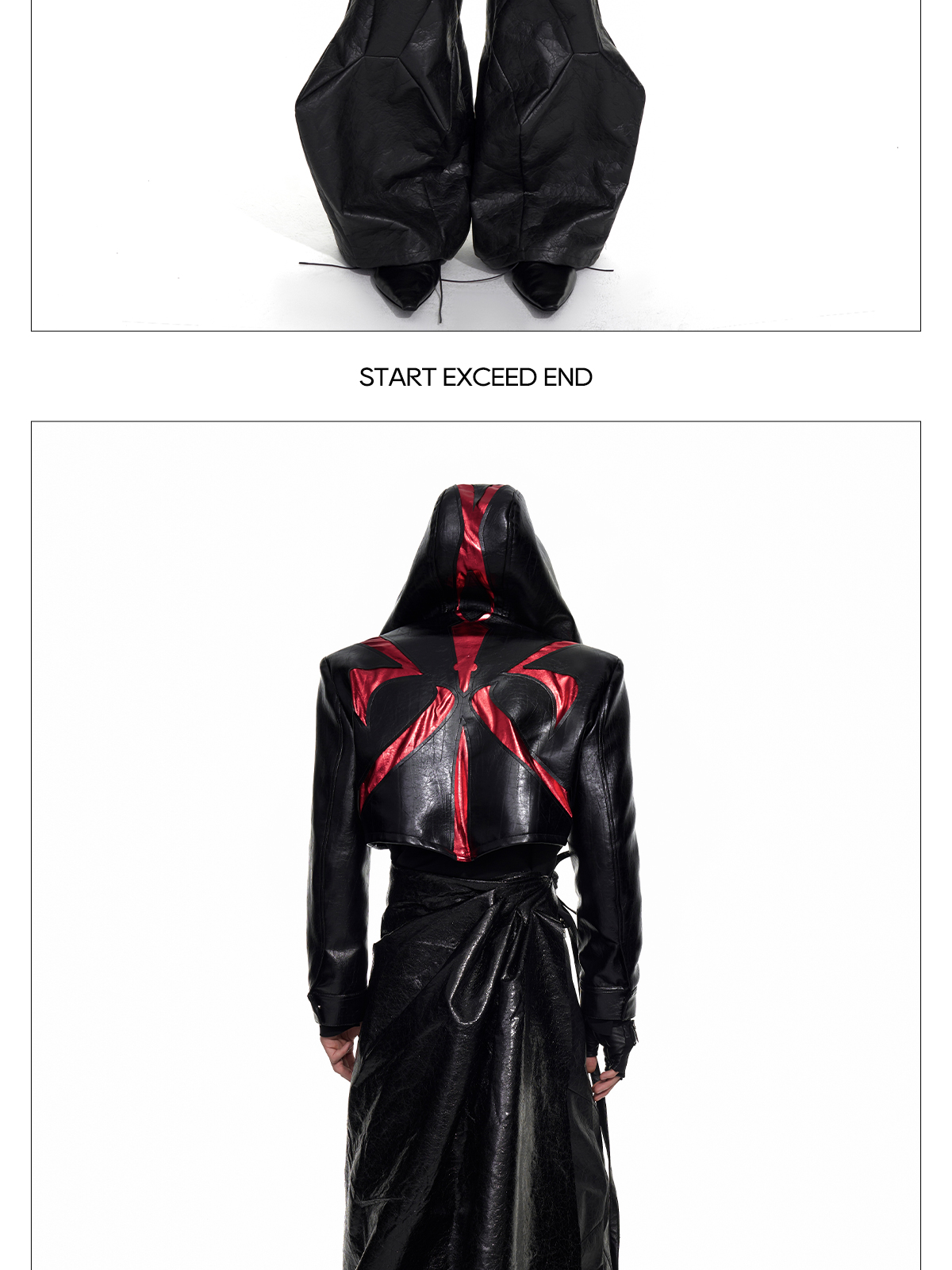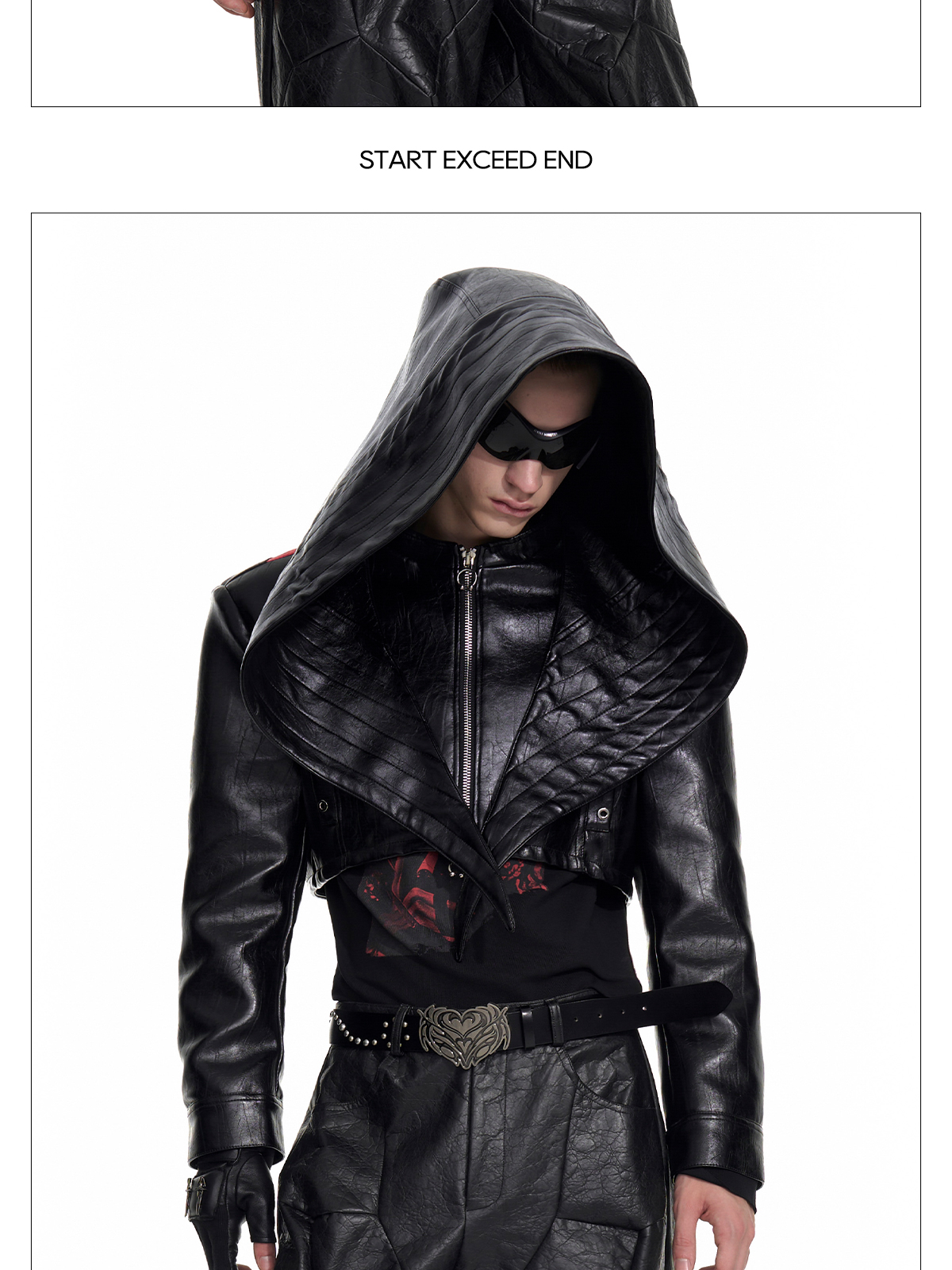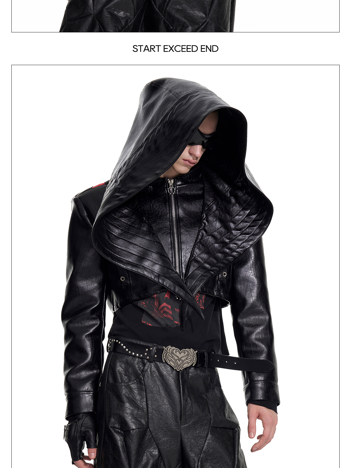 Bat Hat Design PU Leather Hooded Short Jacket WN20926