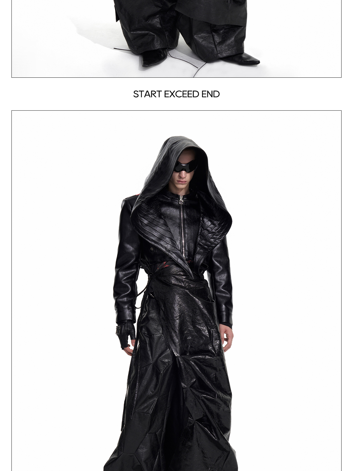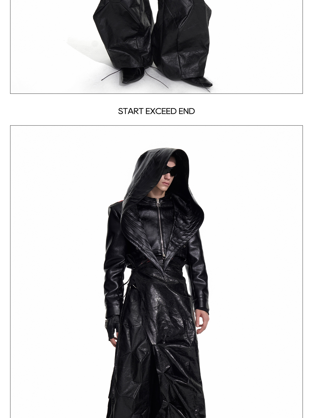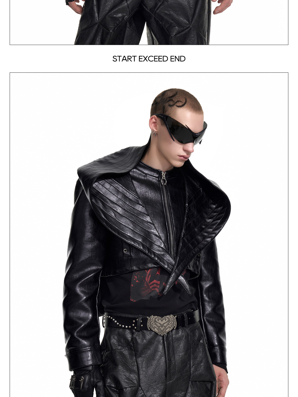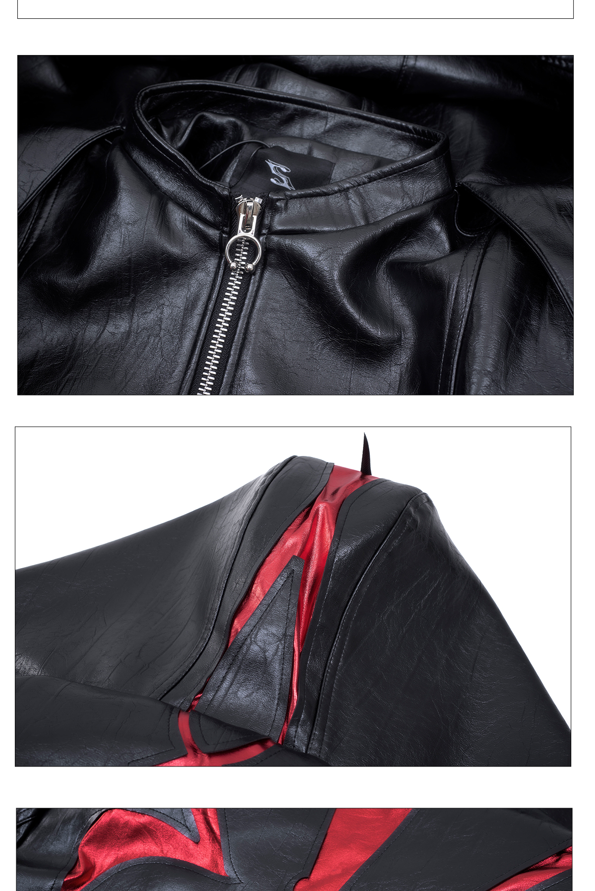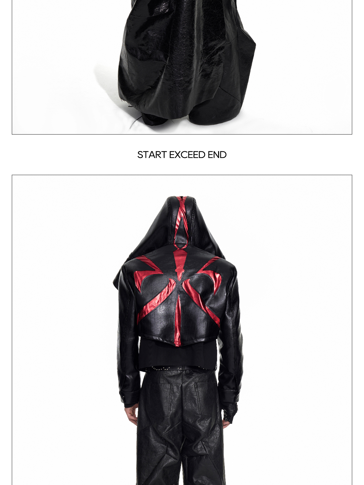 Bat Hat Design PU Leather Hooded Short Jacket WN20926