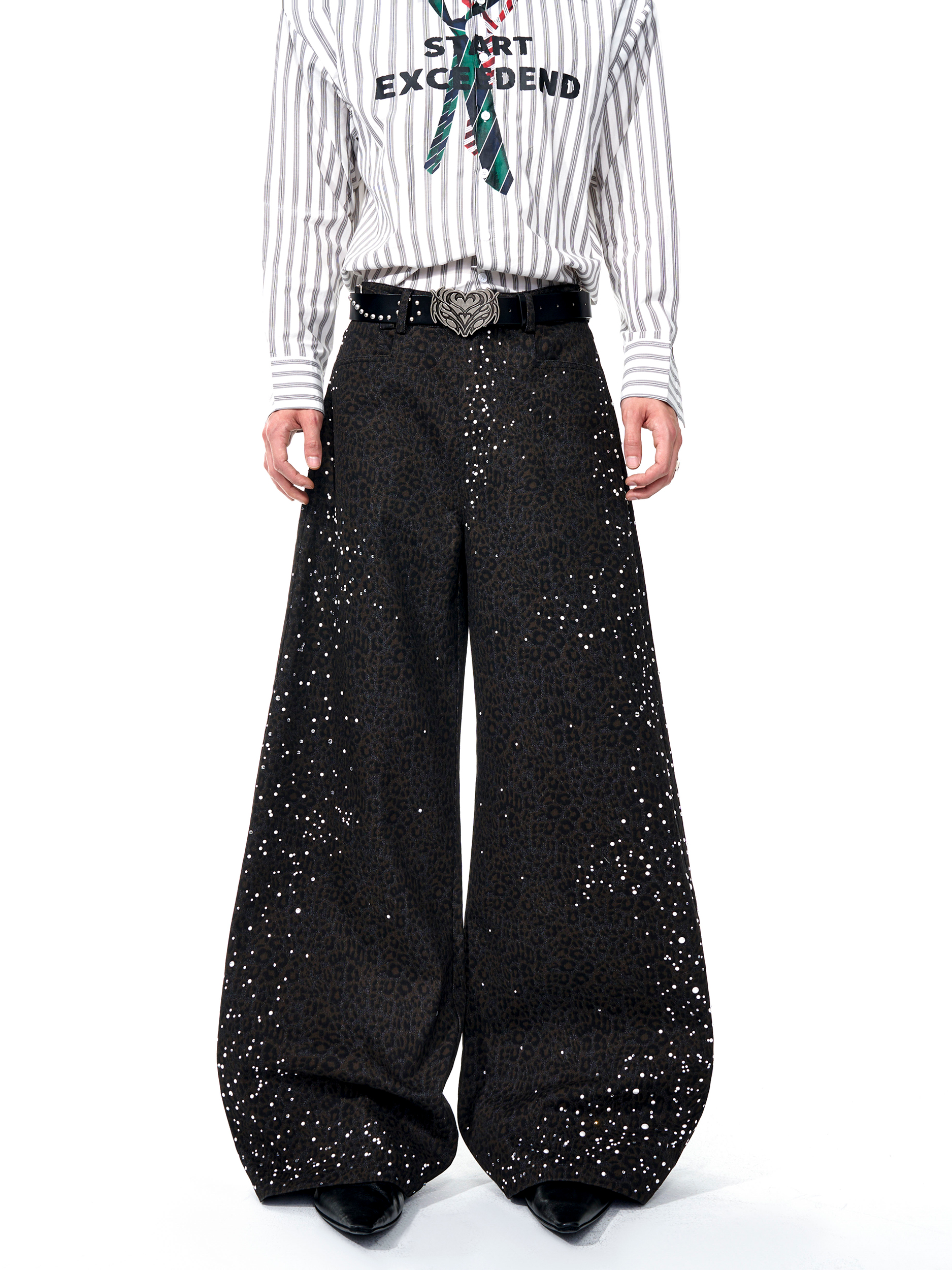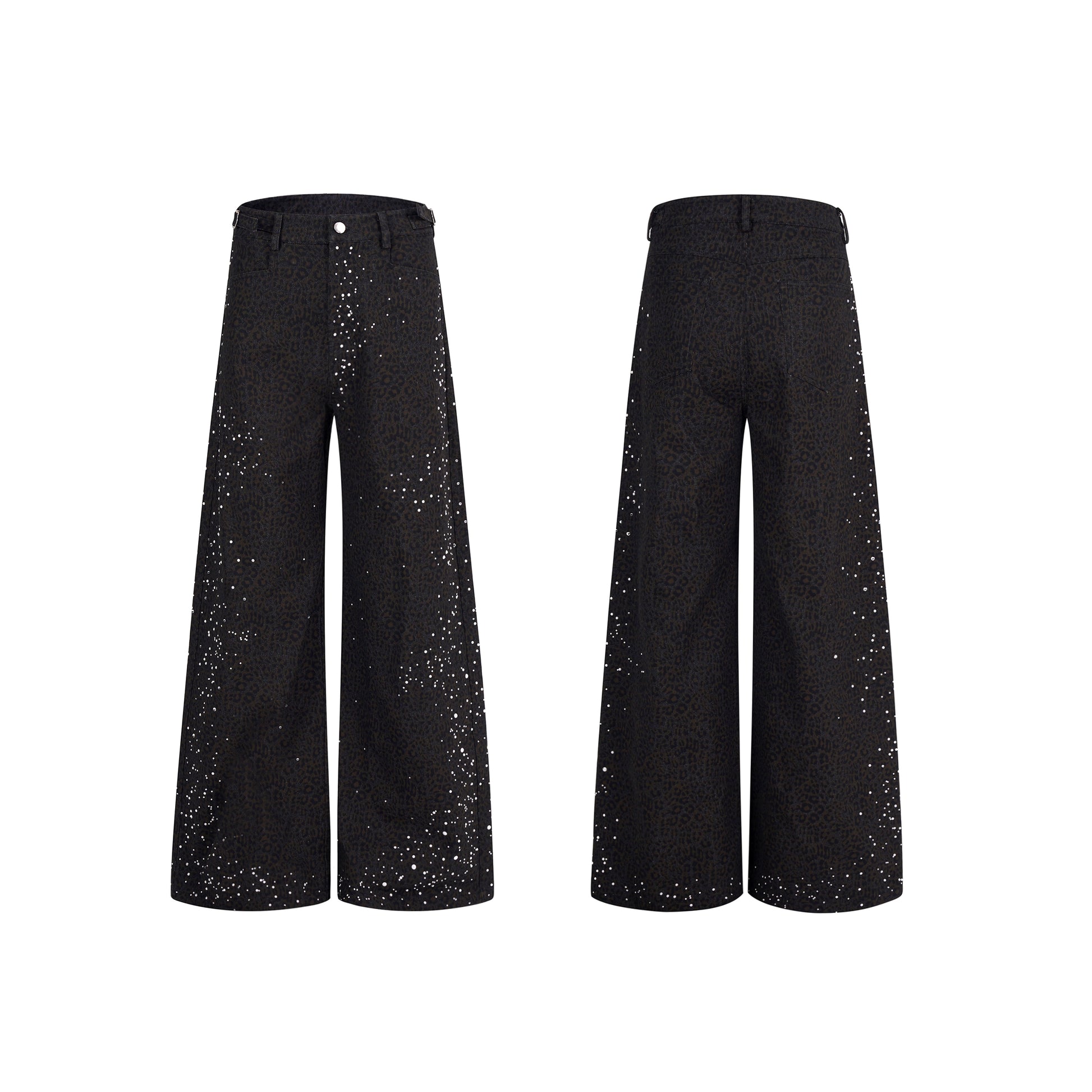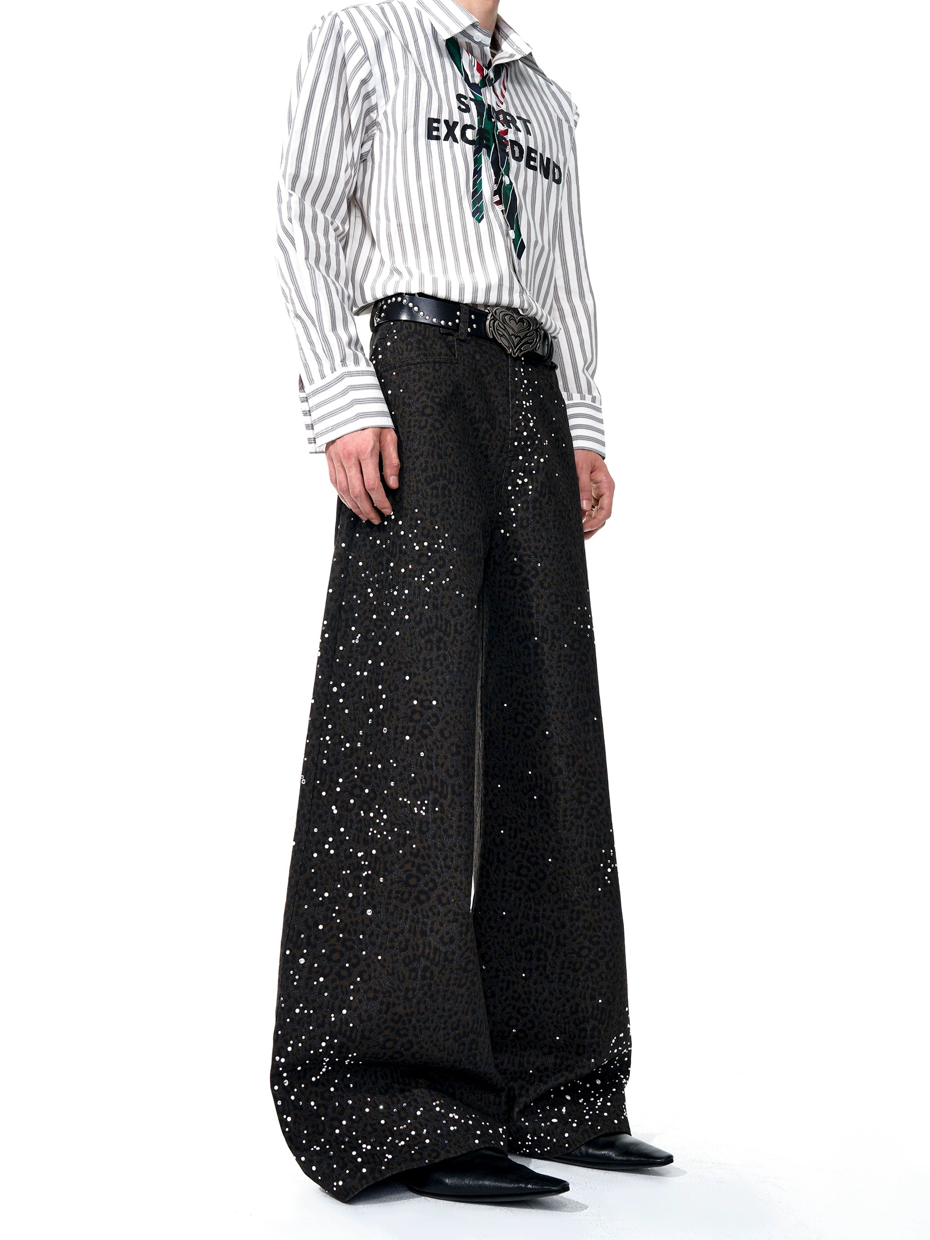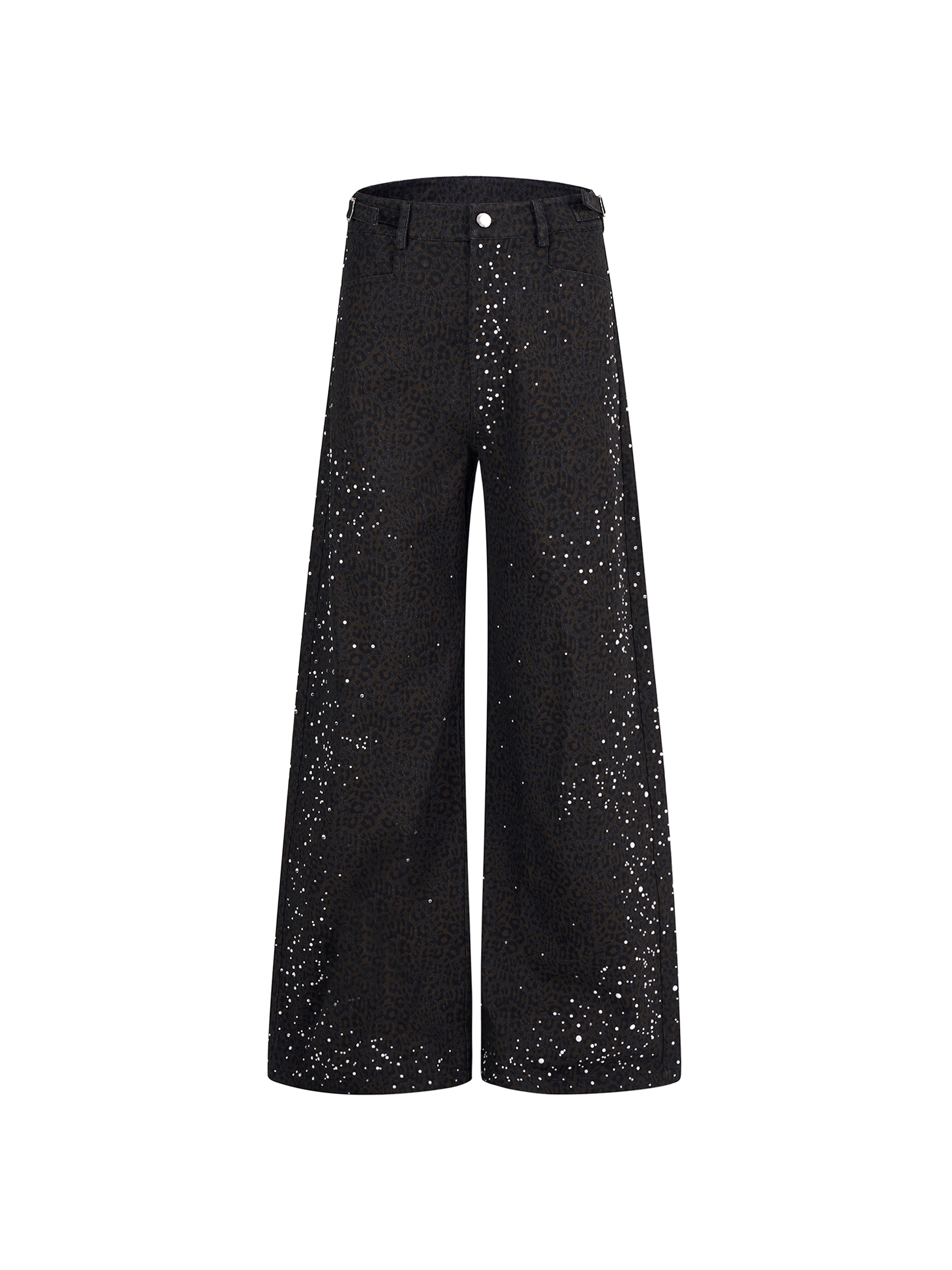 Leopard Pearl Rhinestone Wide Leg Pants WN20948