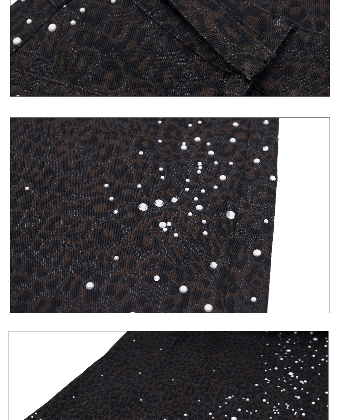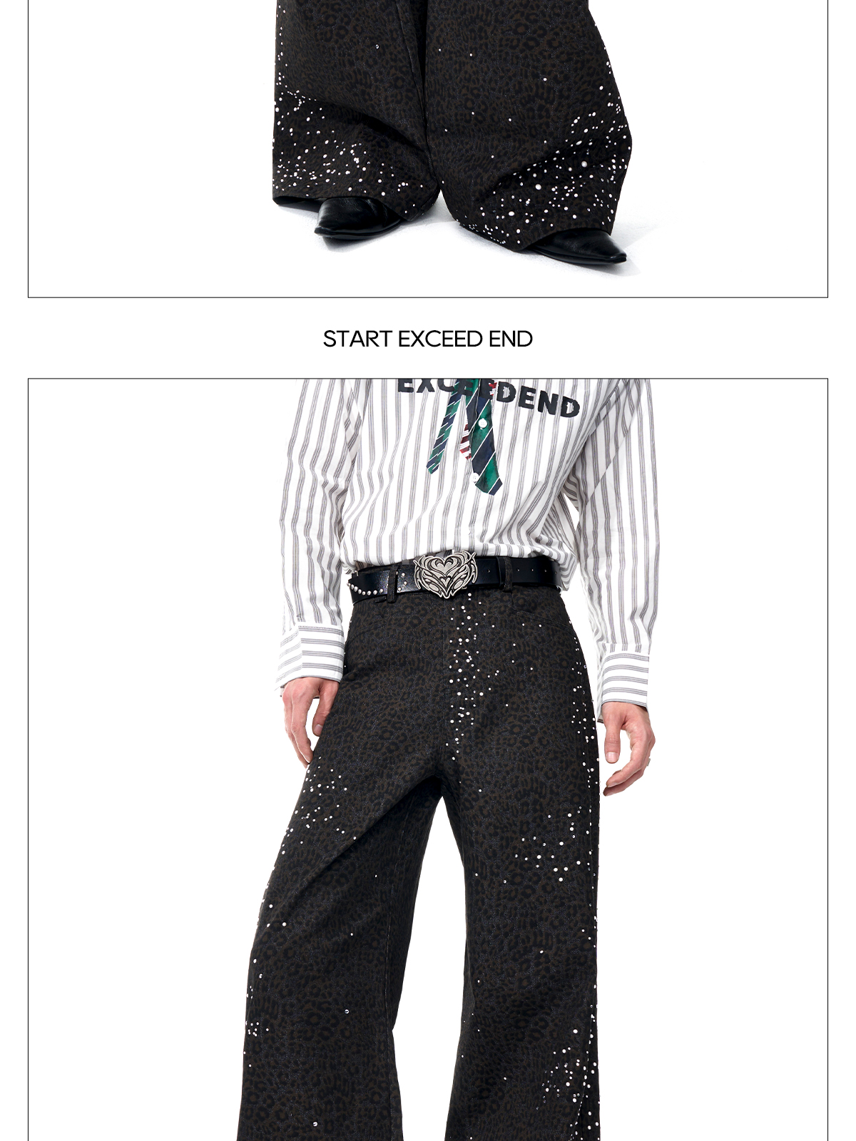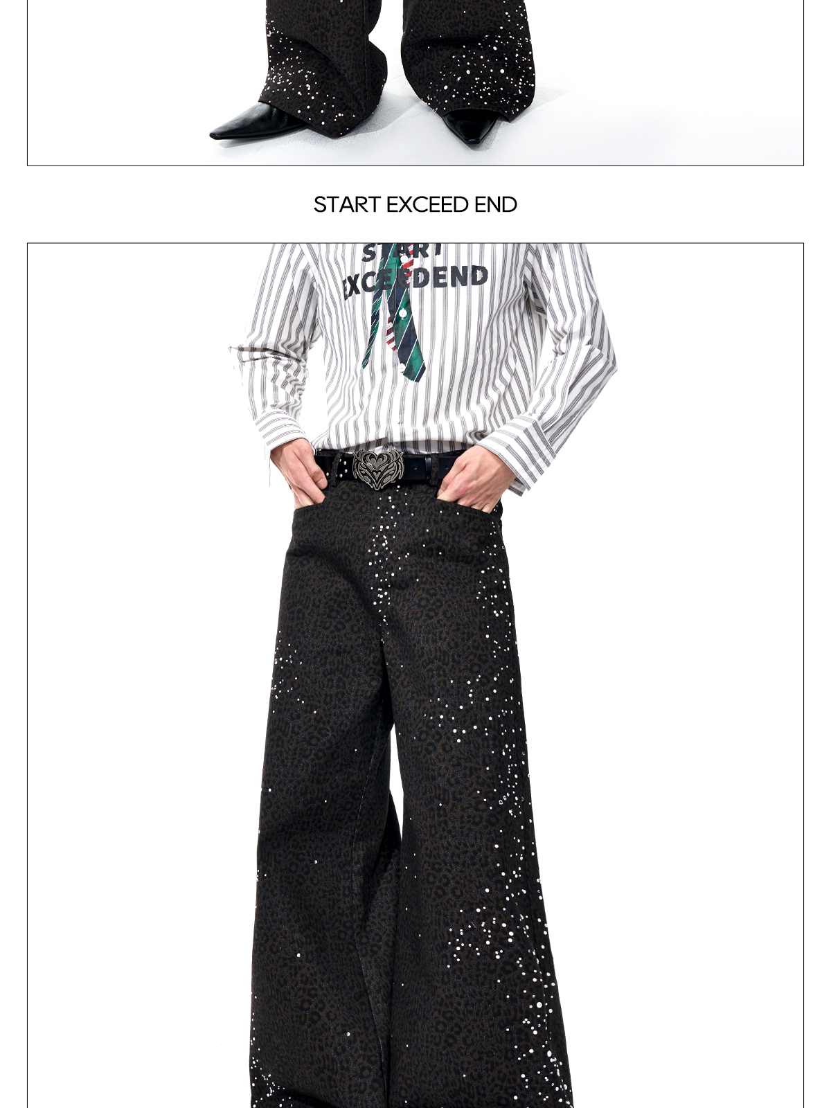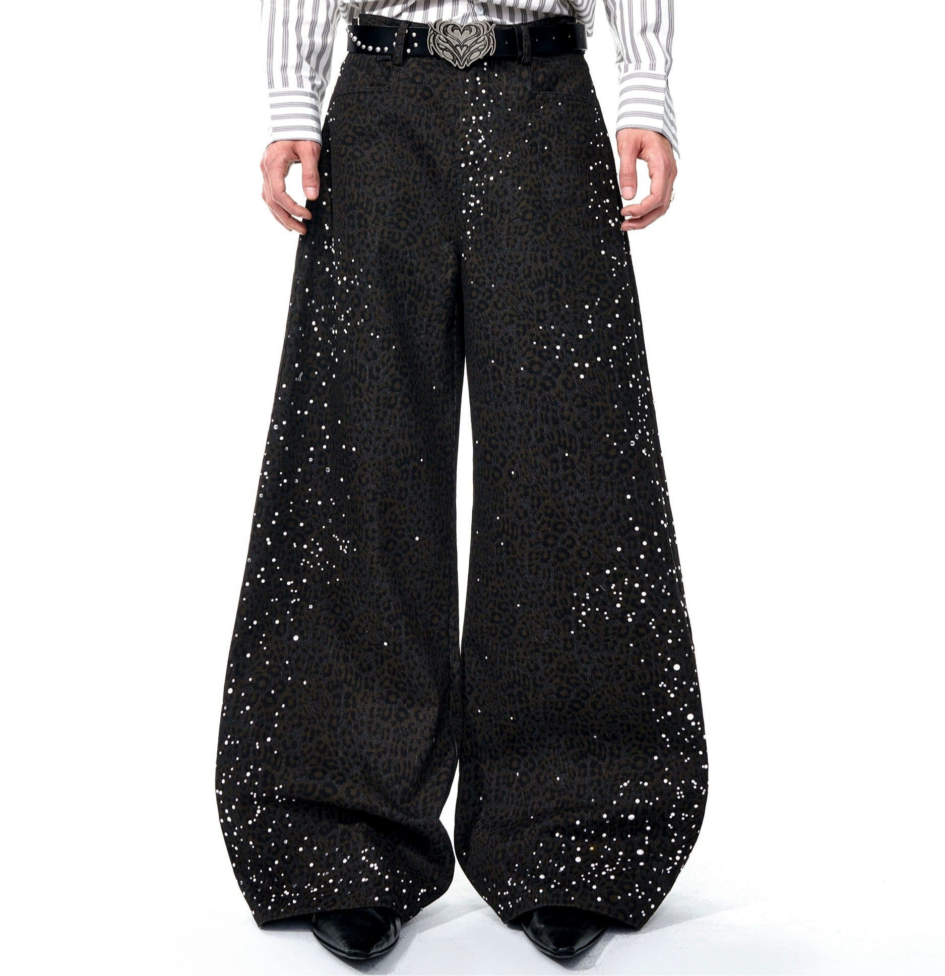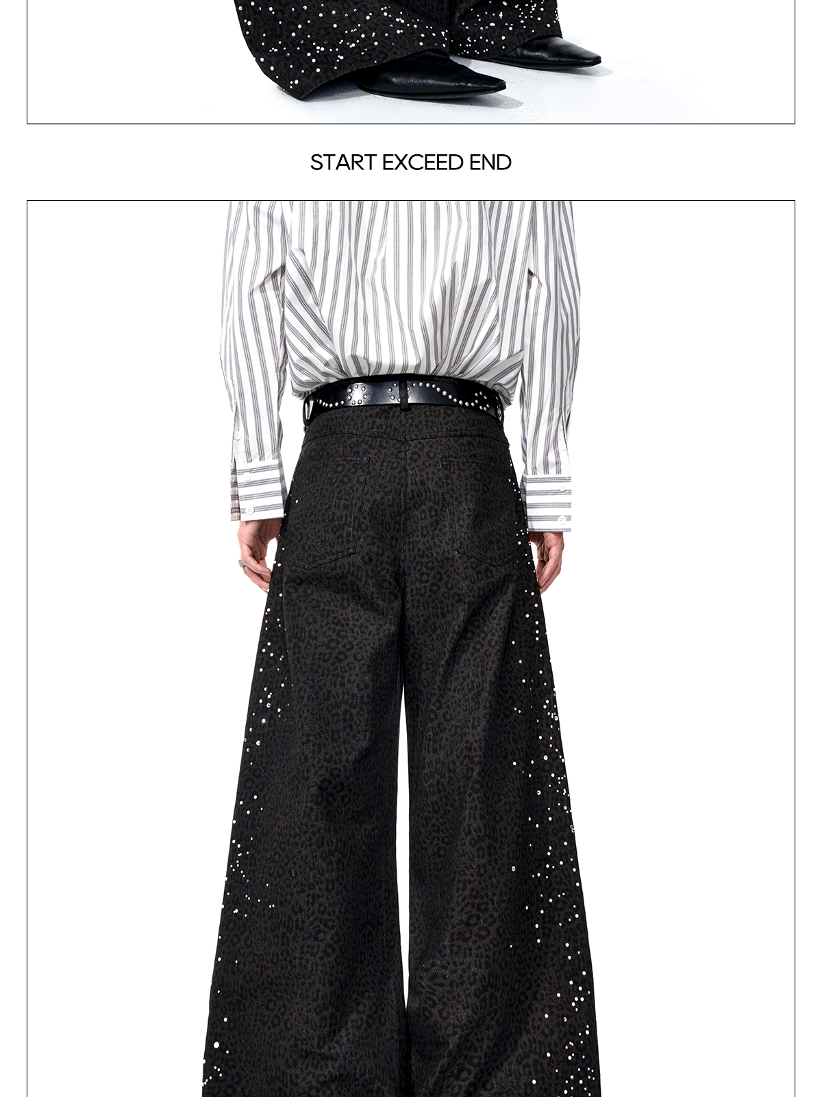Leopard Pearl Rhinestone Wide Leg Pants WN20948