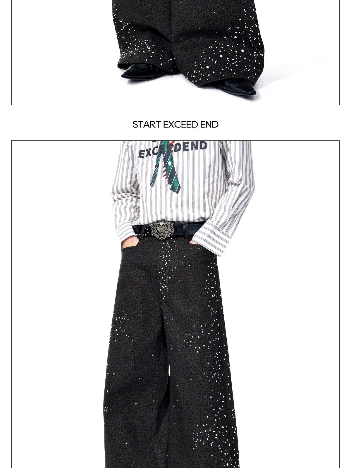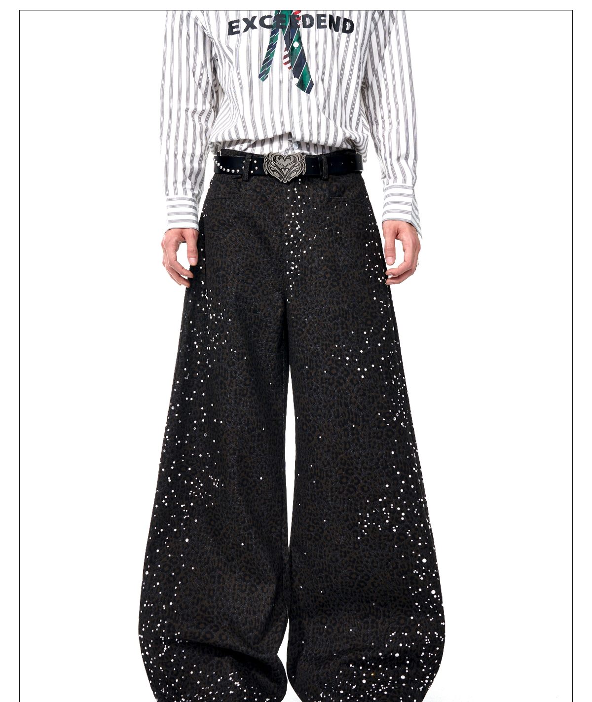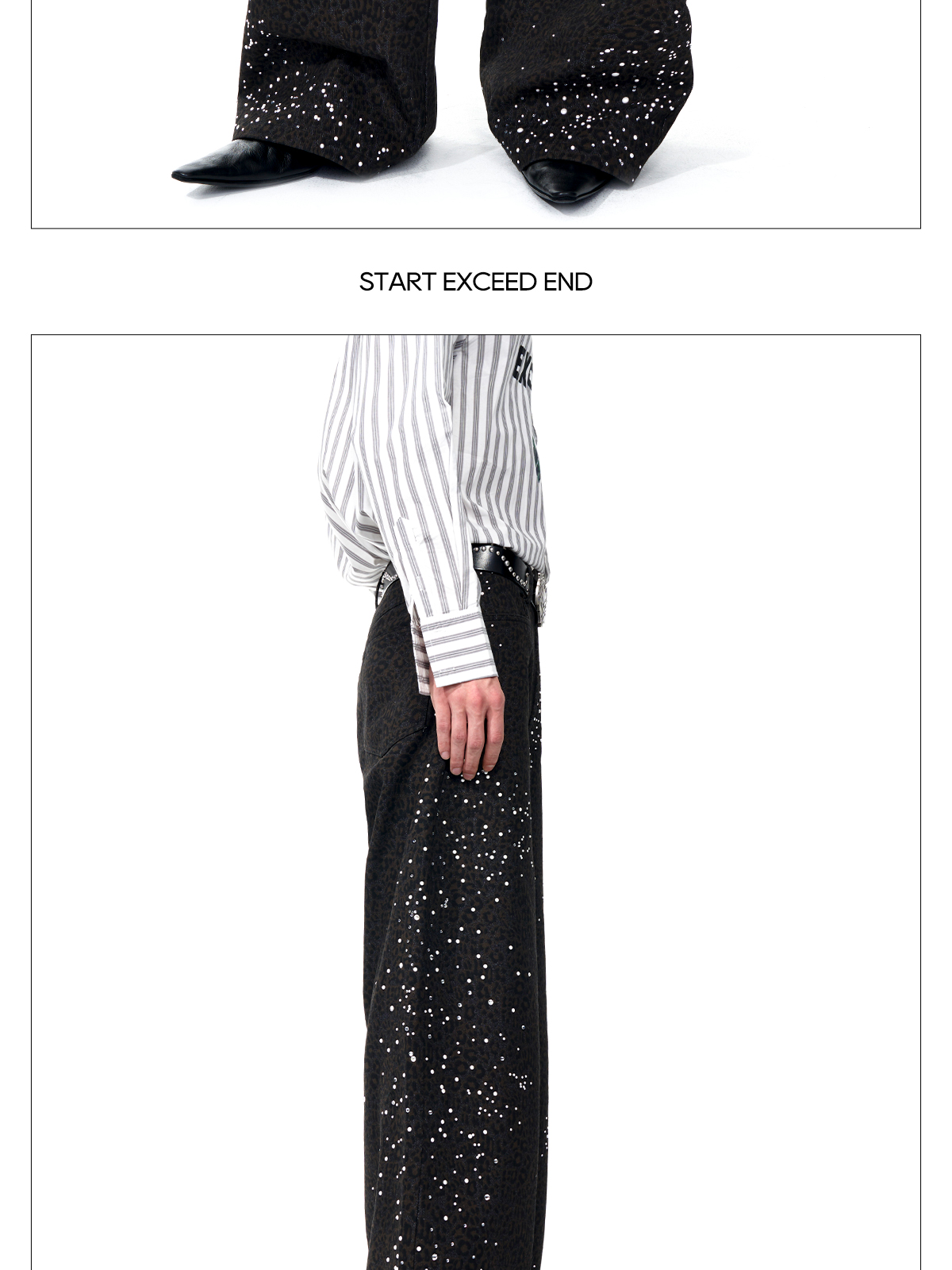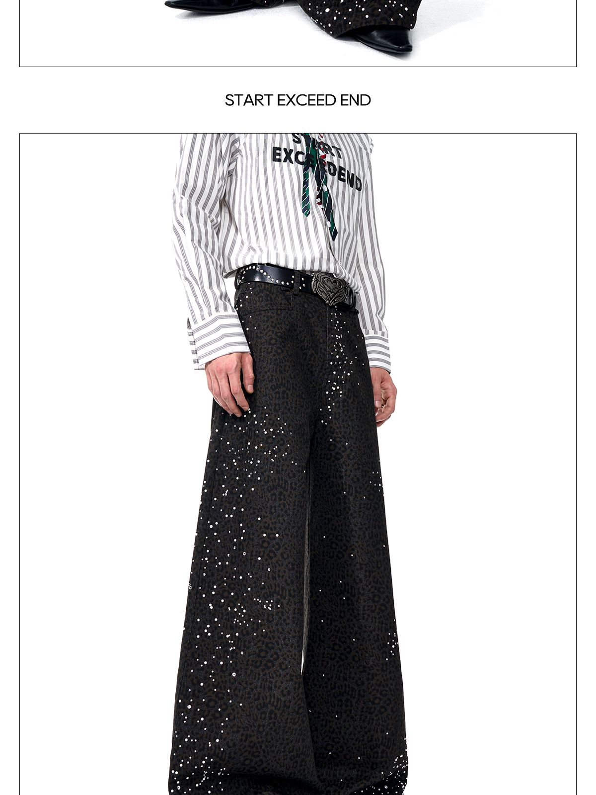 Leopard Pearl Rhinestone Wide Leg Pants WN20948