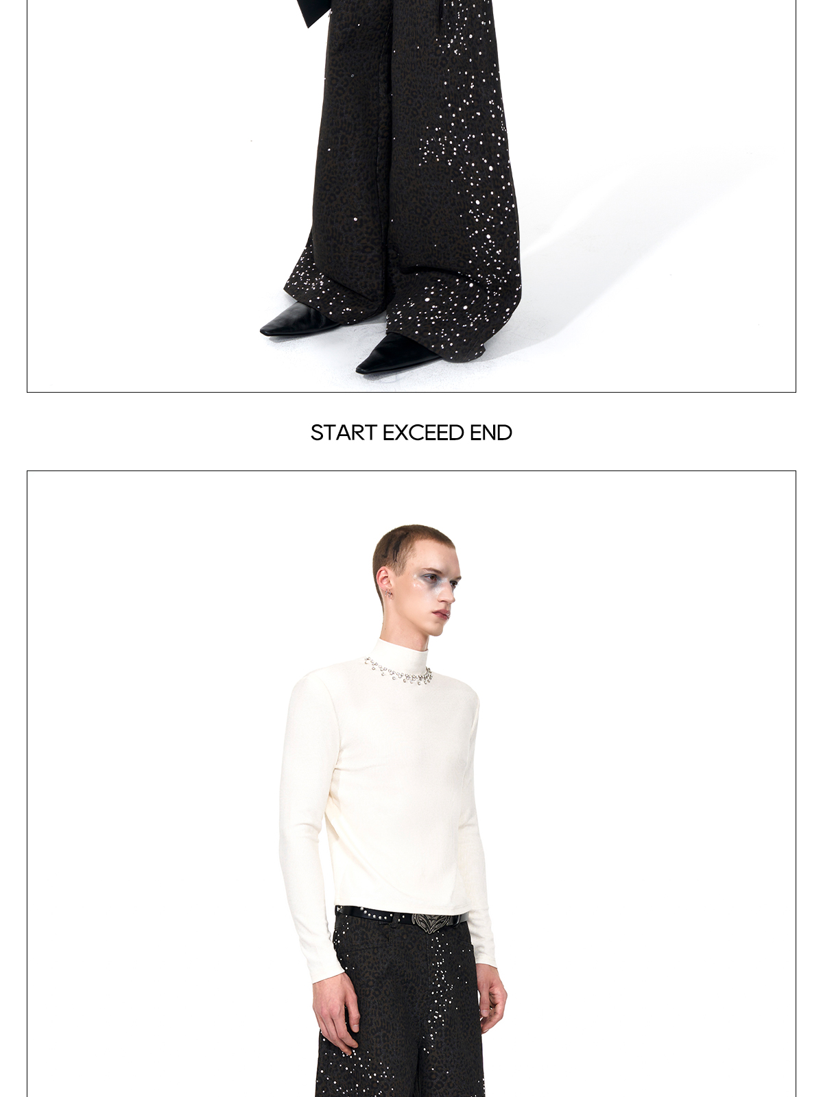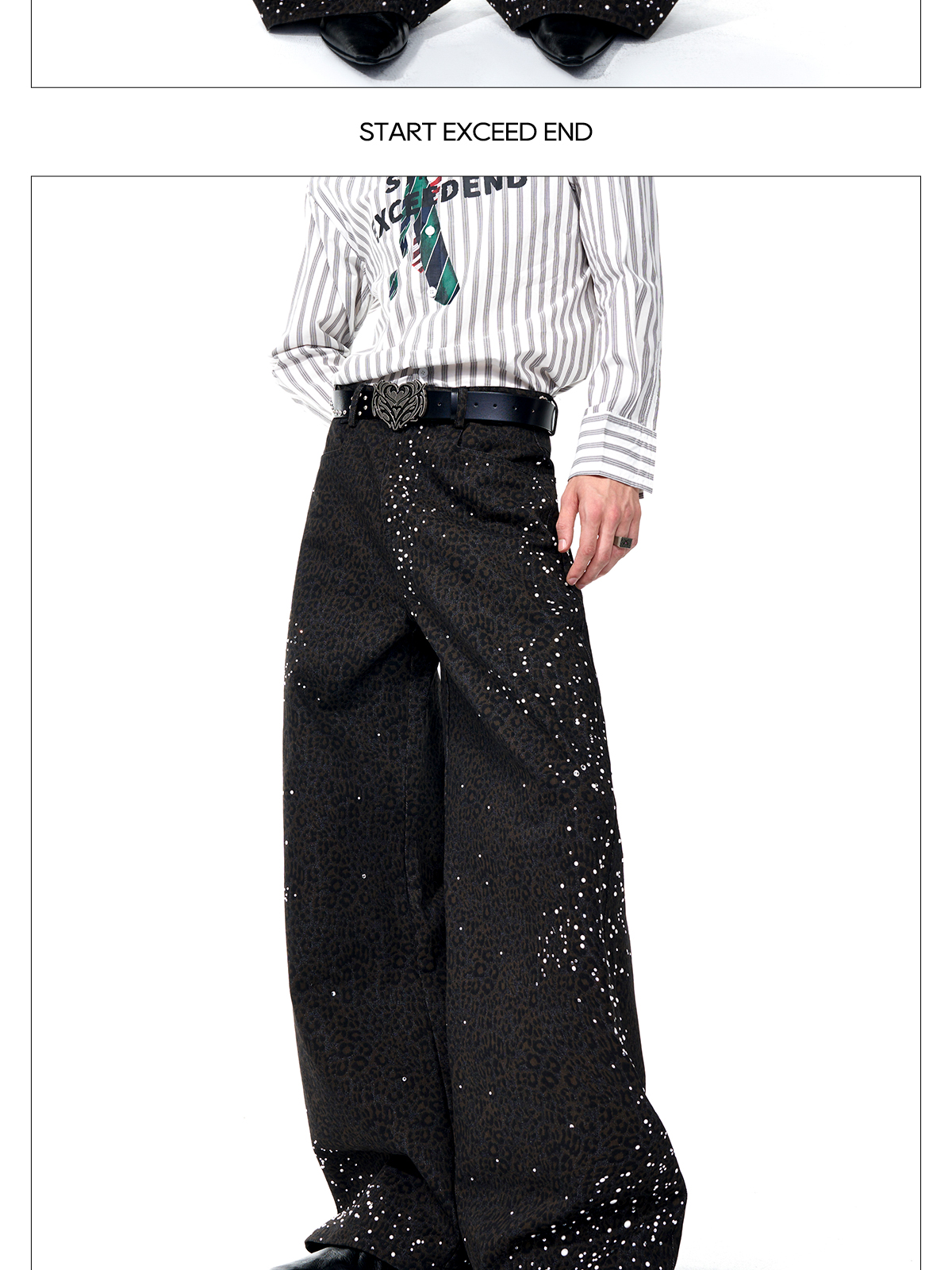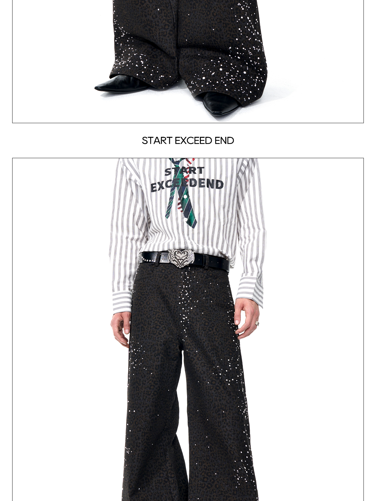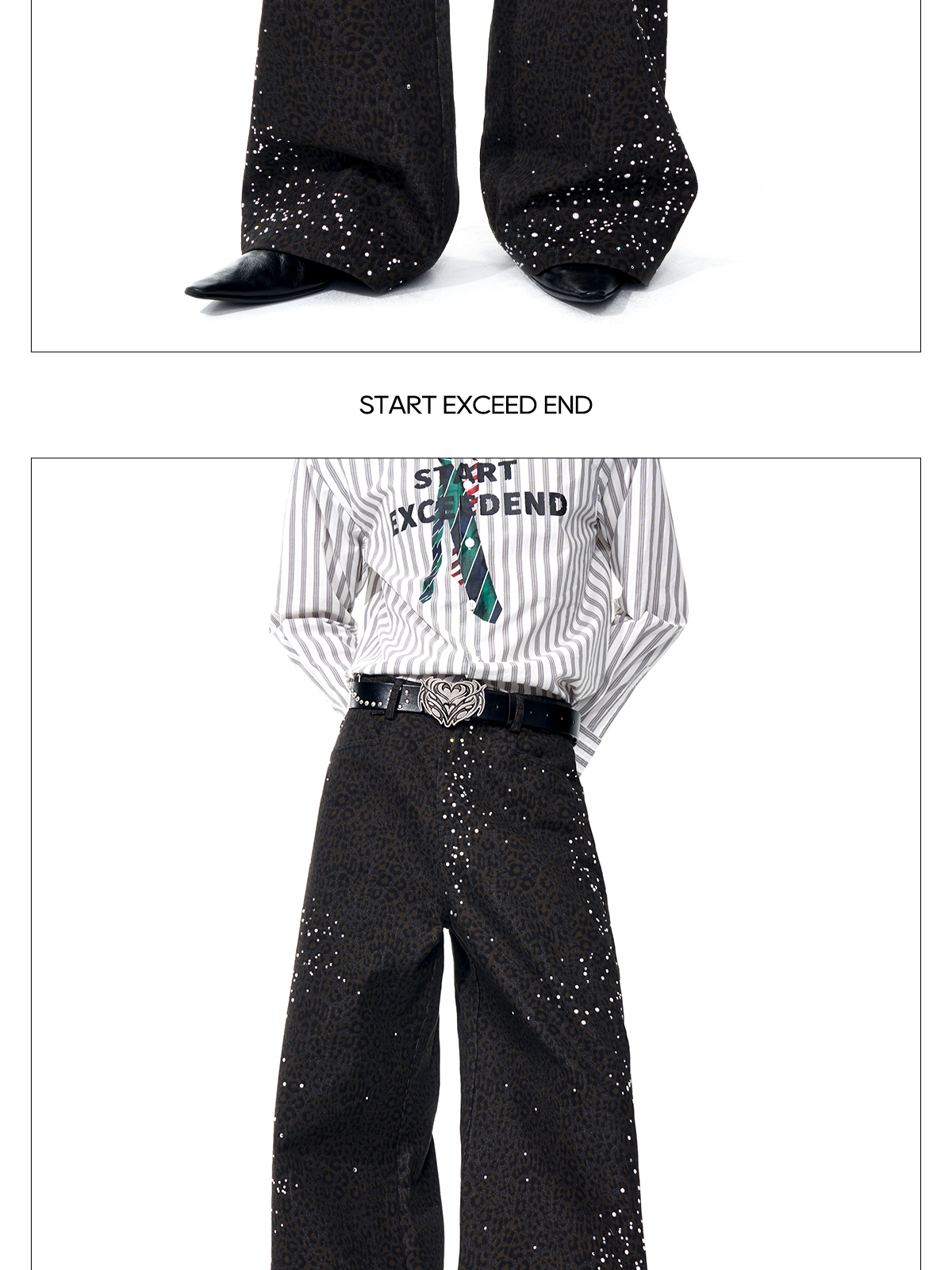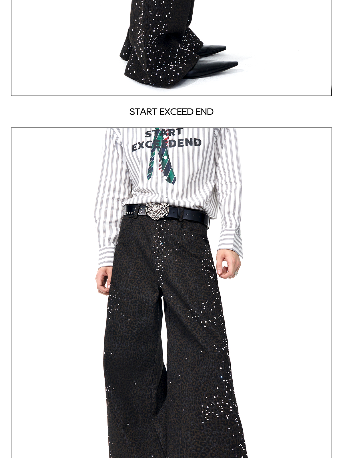 Leopard Pearl Rhinestone Wide Leg Pants WN20948