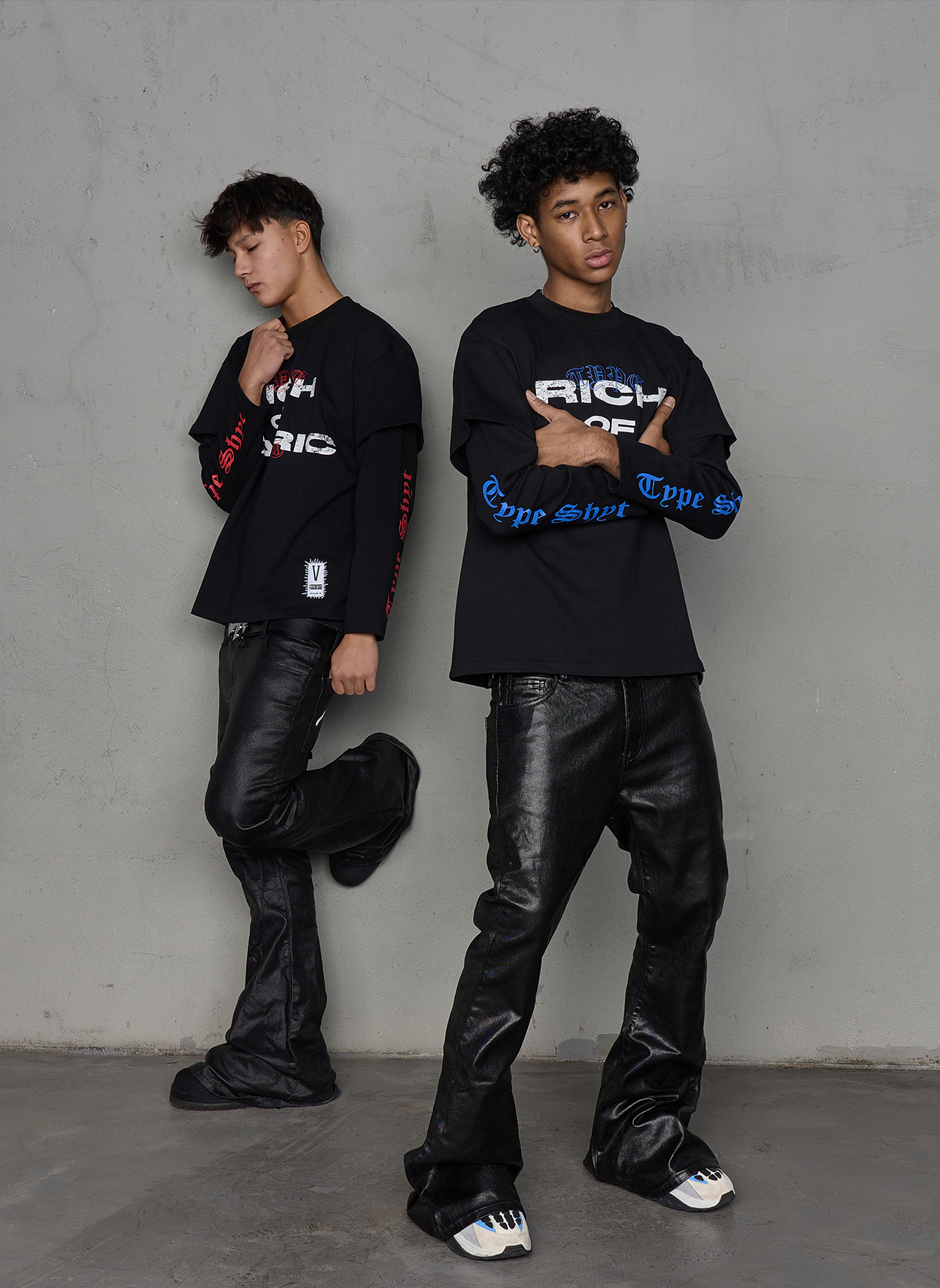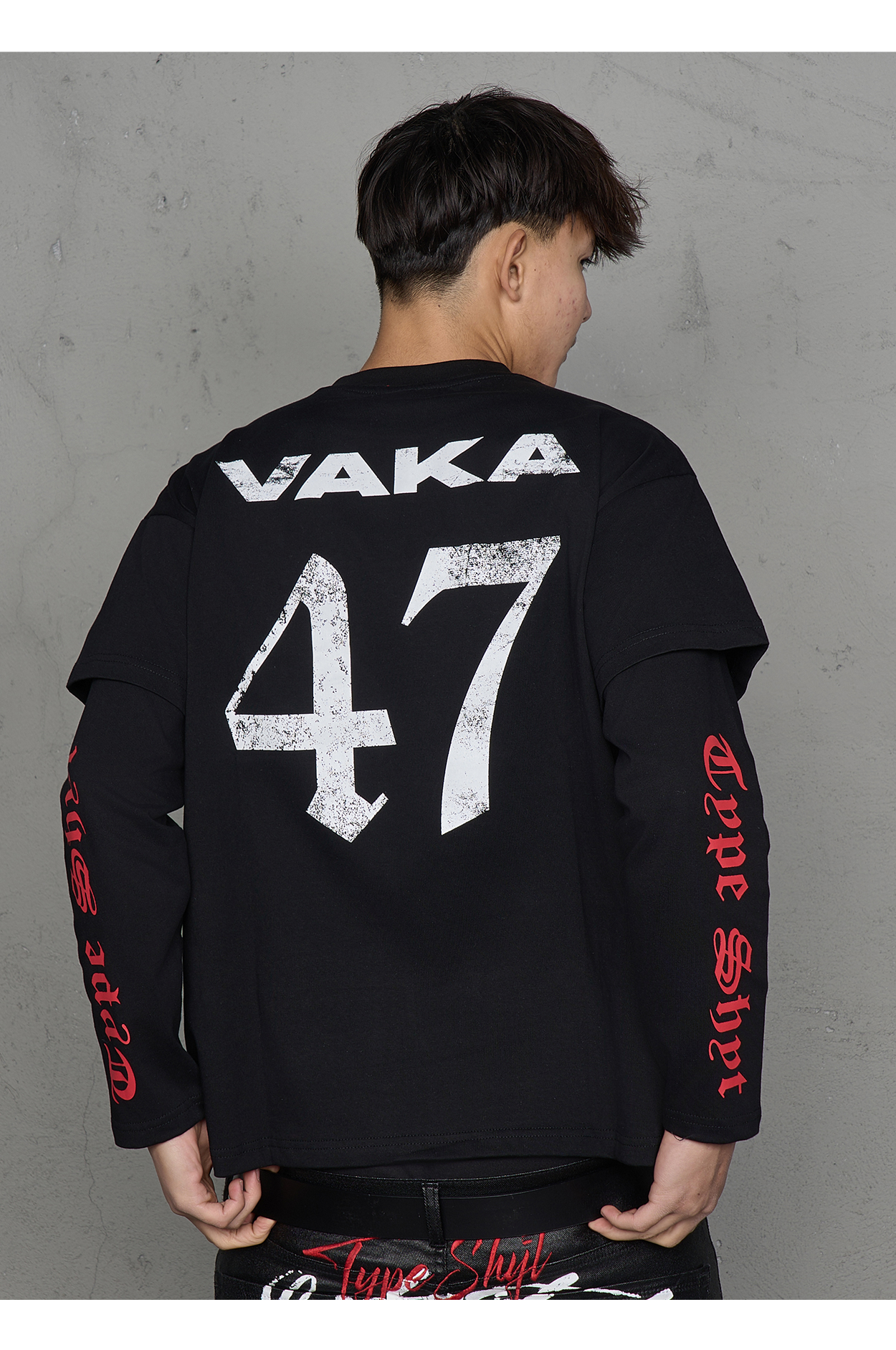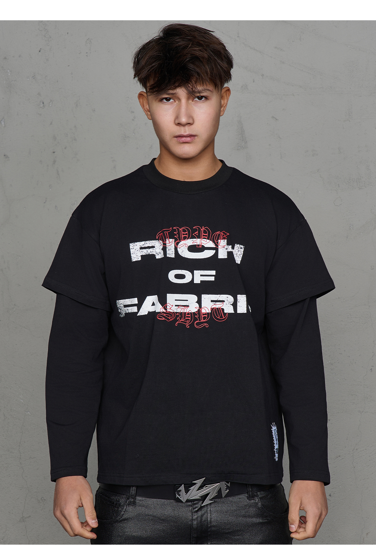 Fake Layered Embroidery Label Long Sleeve T-Shirt WN21008