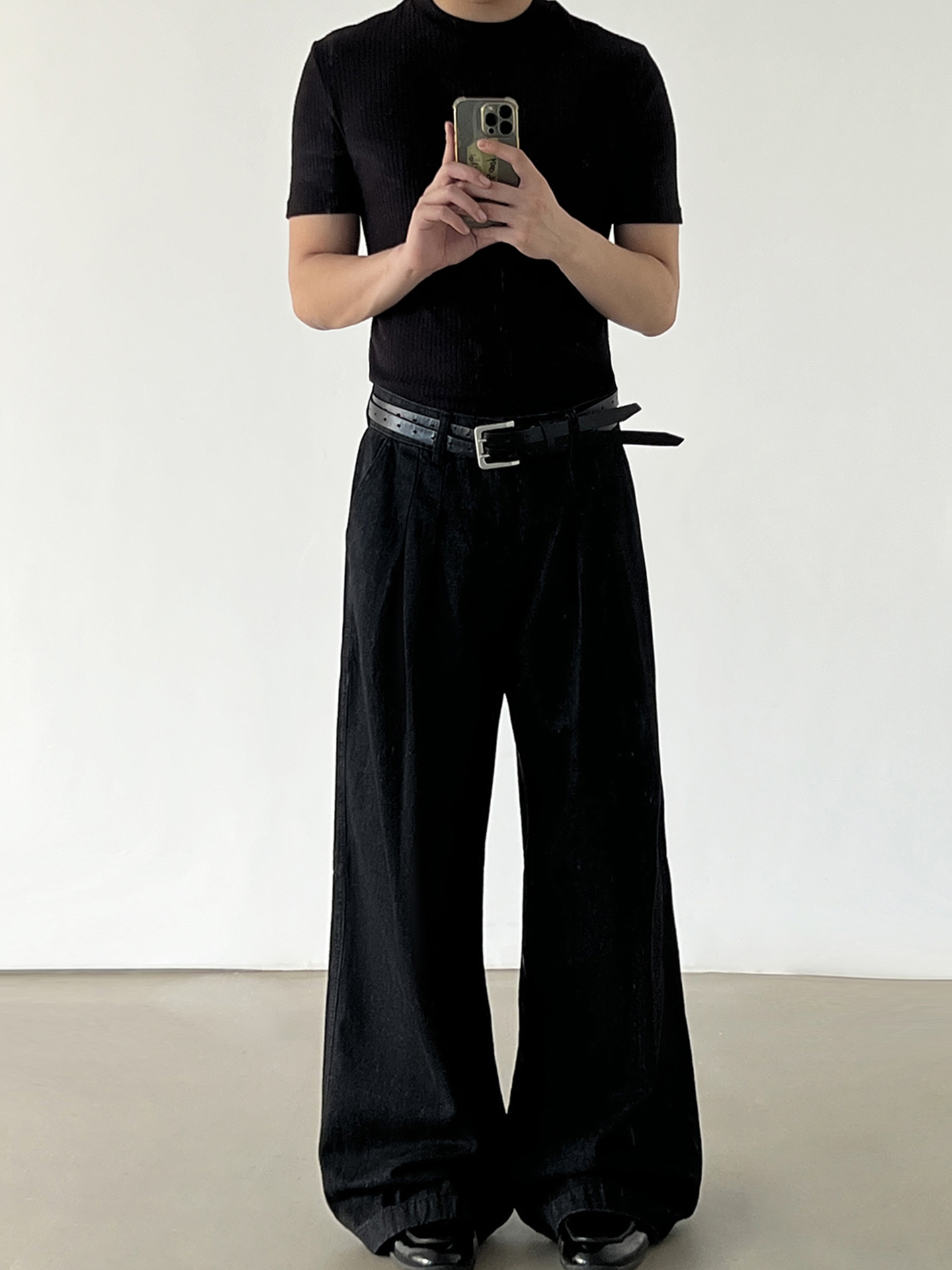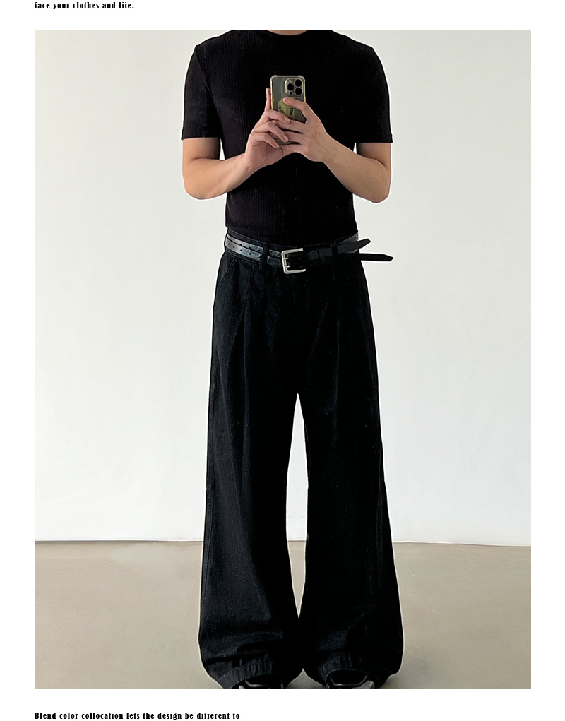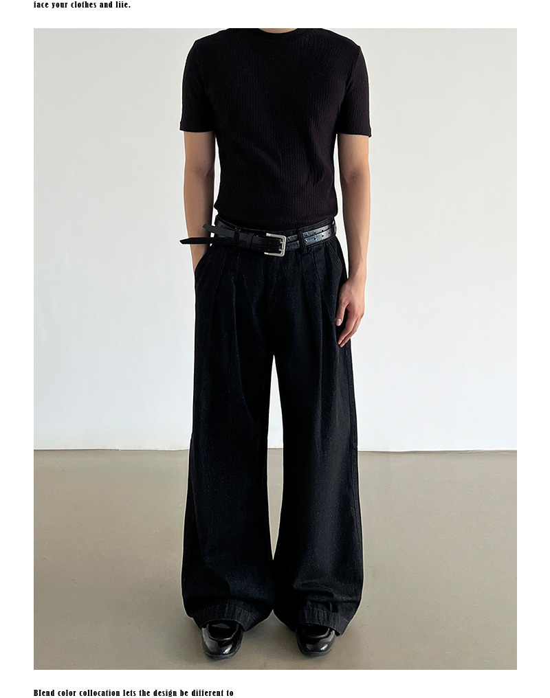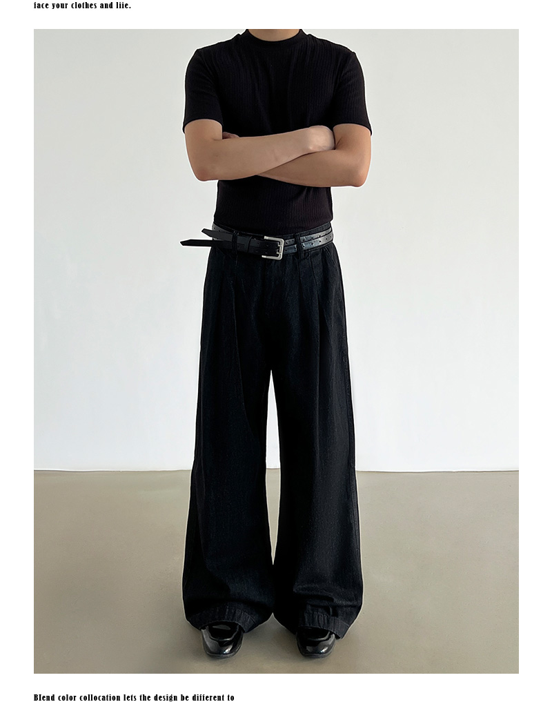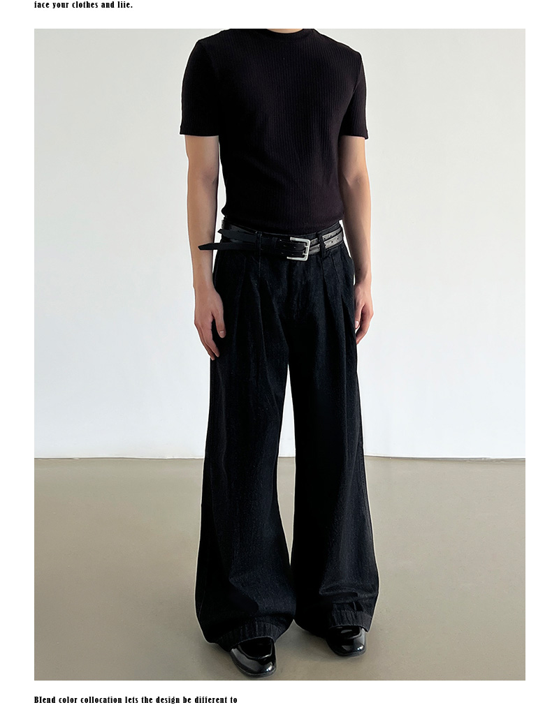 Pleats Straight Wide Leg Denim Jeans WN21196