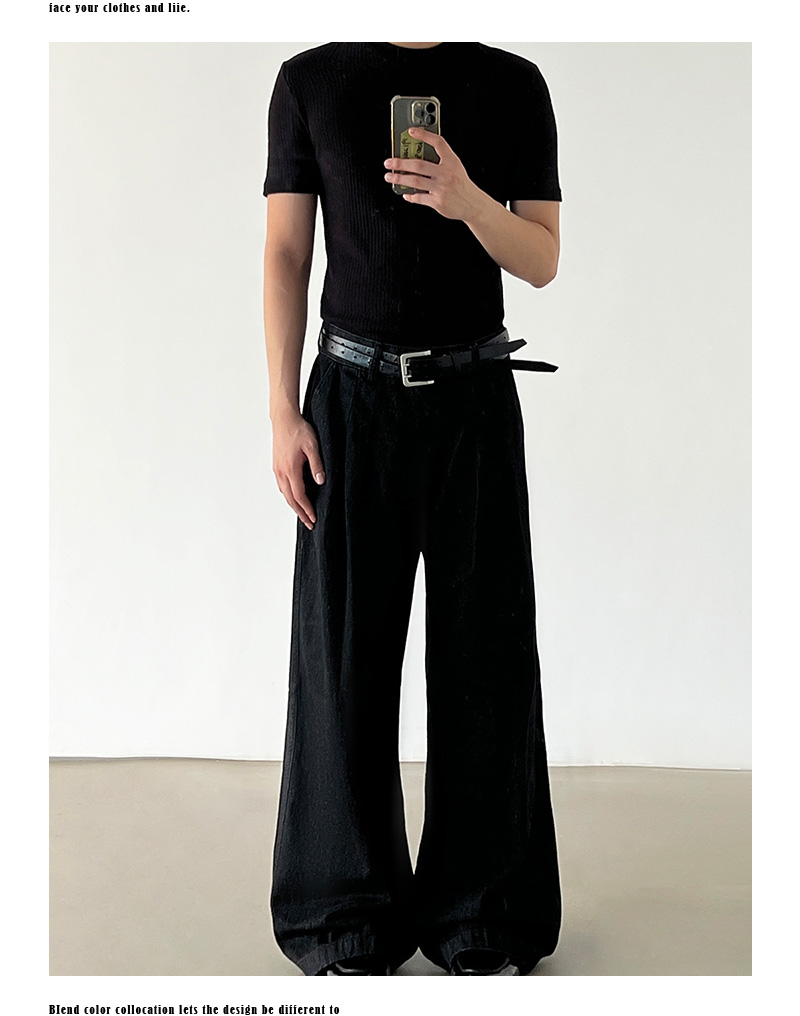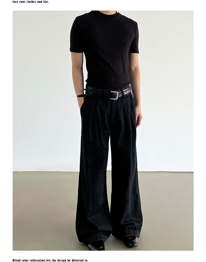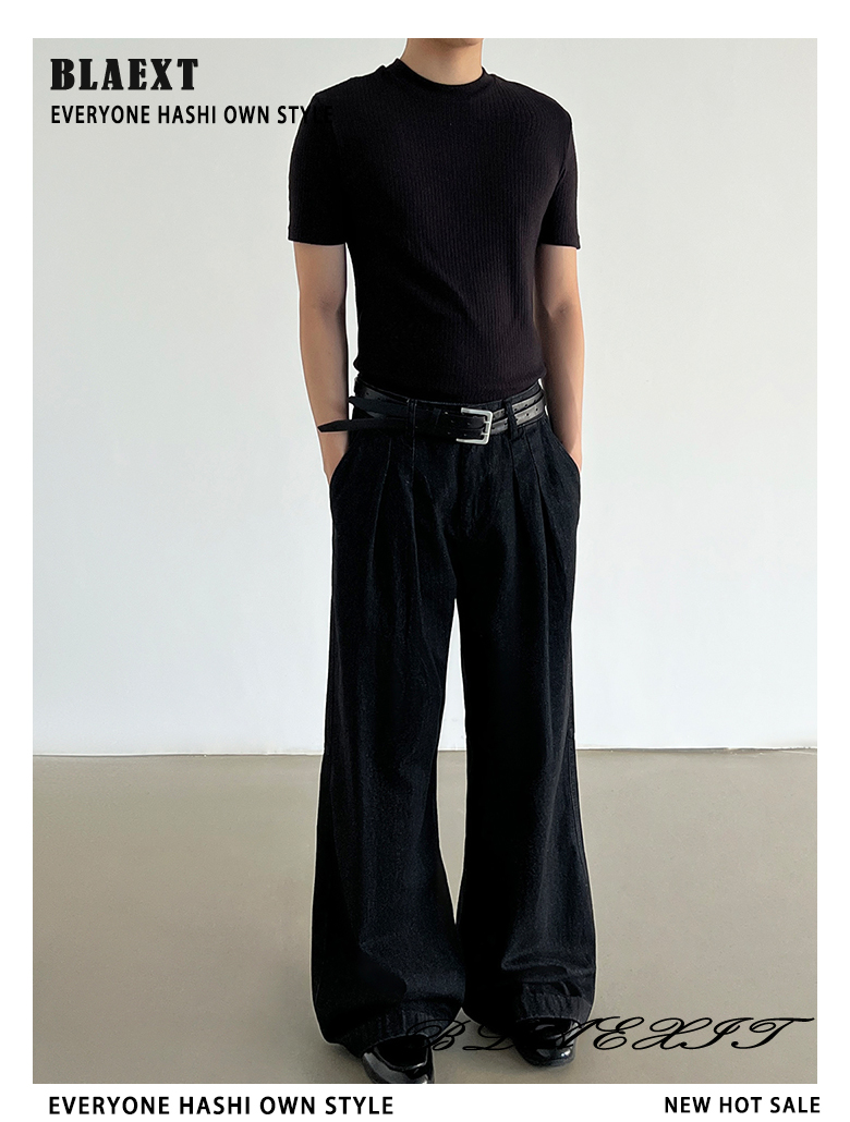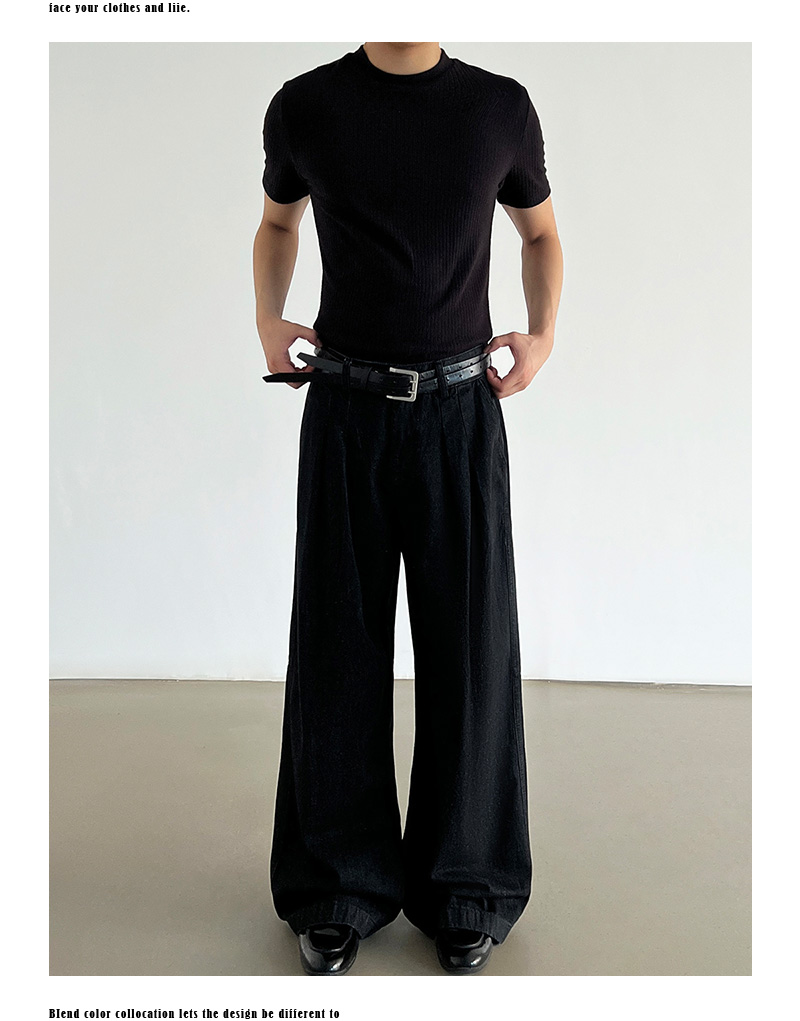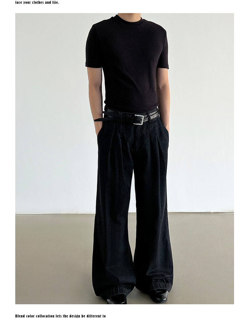 Pleats Straight Wide Leg Denim Jeans WN21196