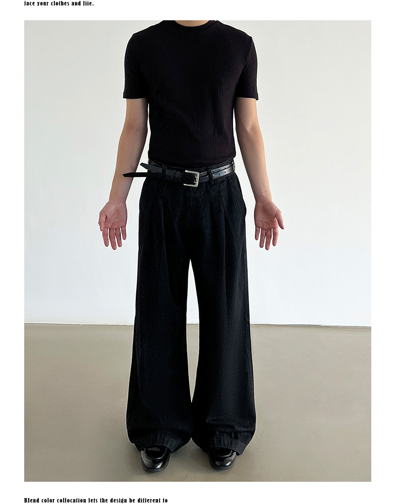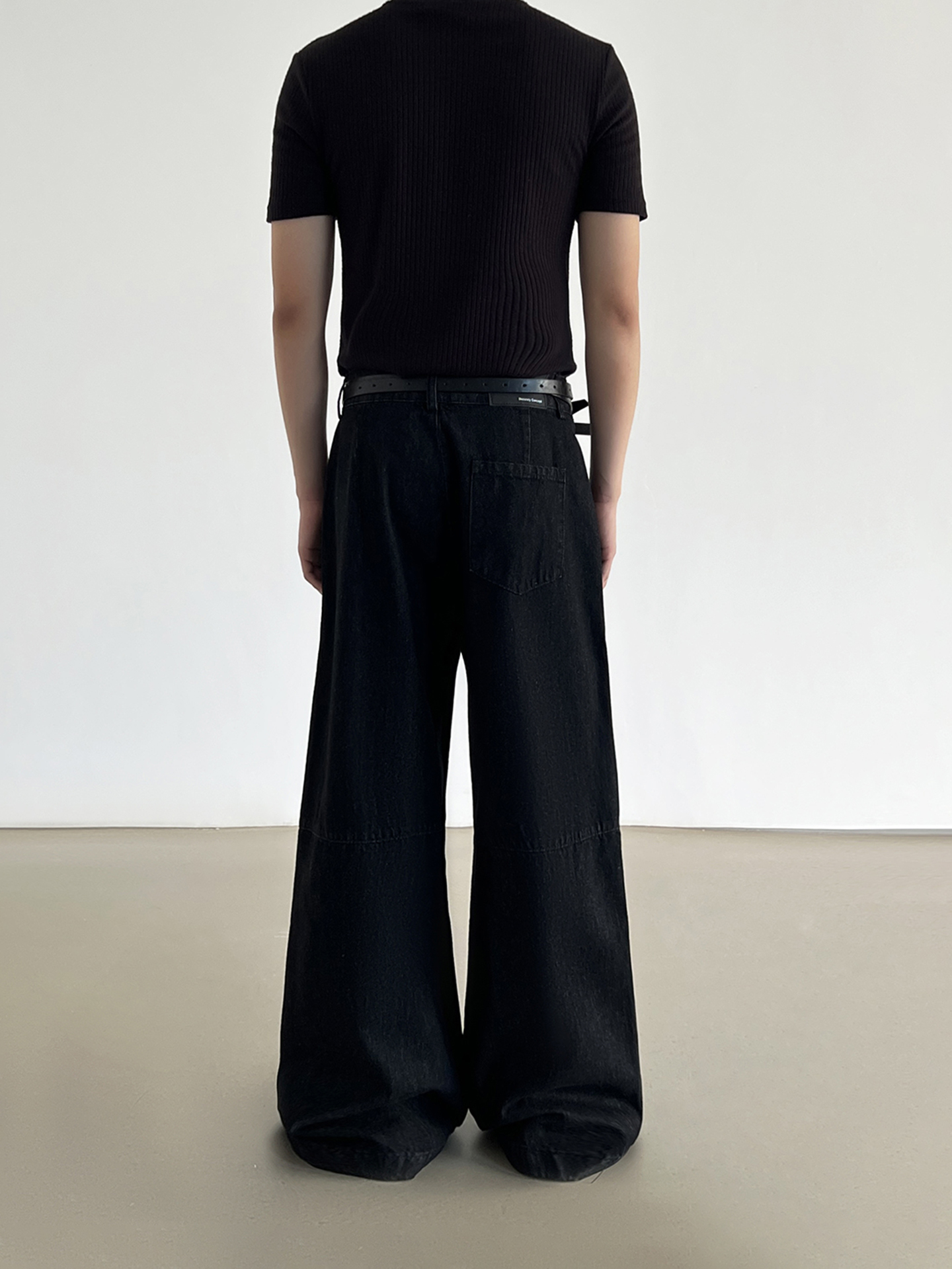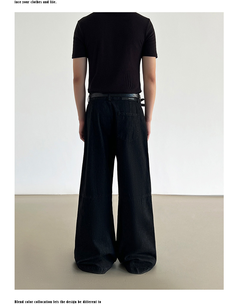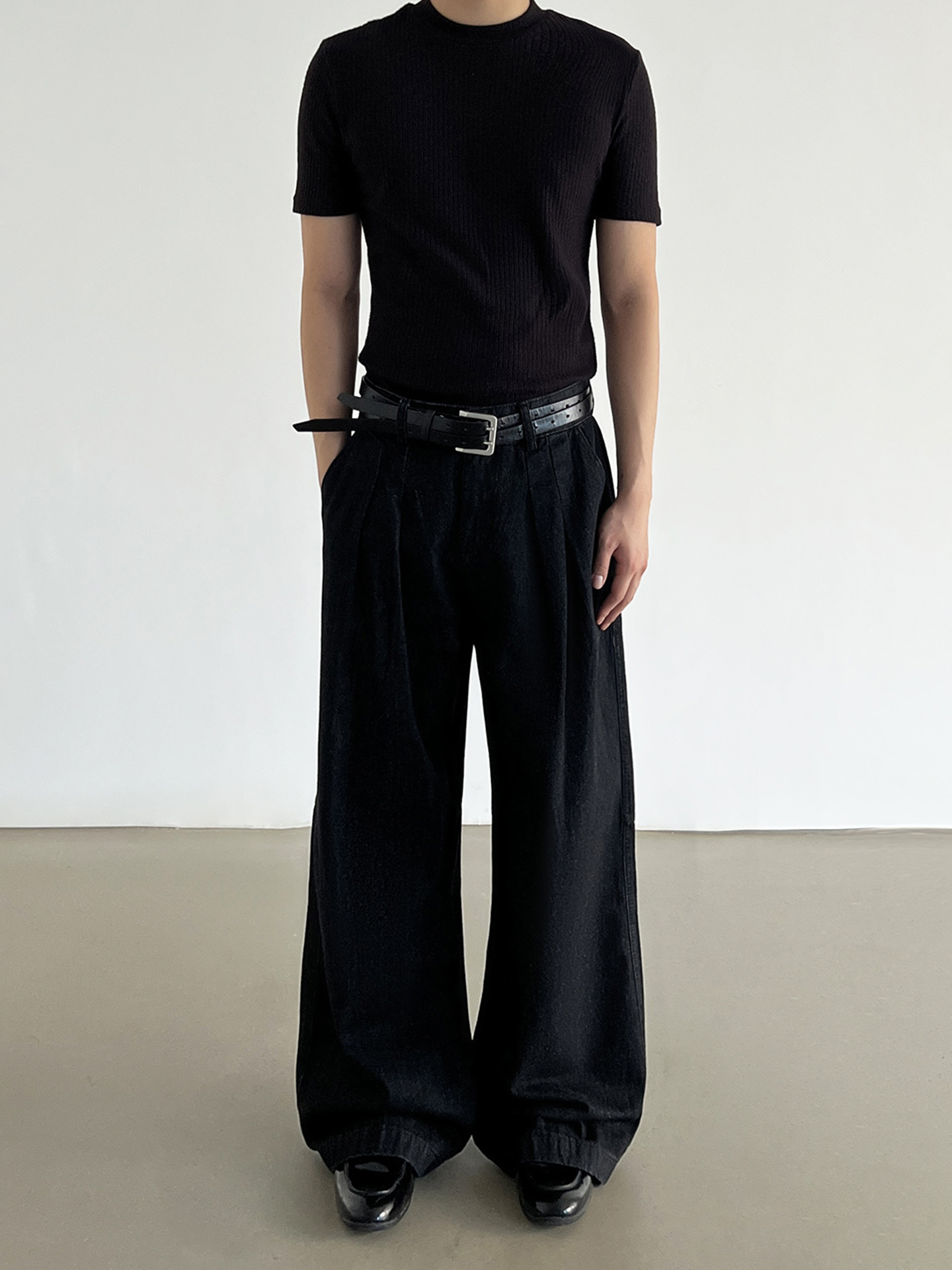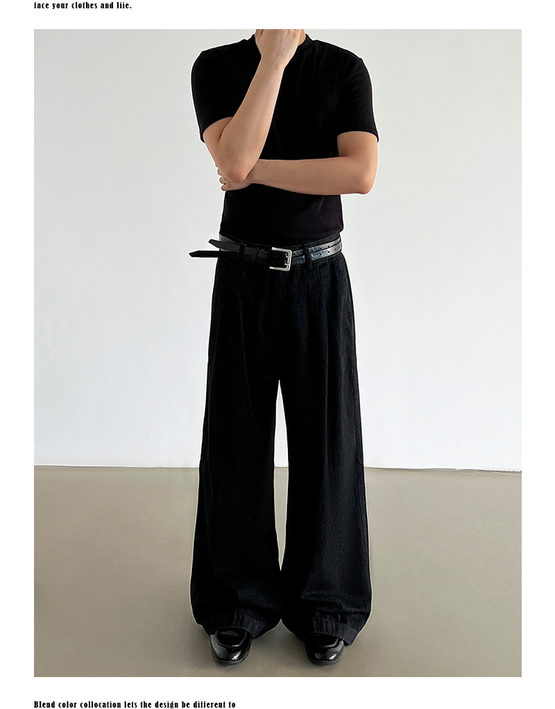 Pleats Straight Wide Leg Denim Jeans WN21196