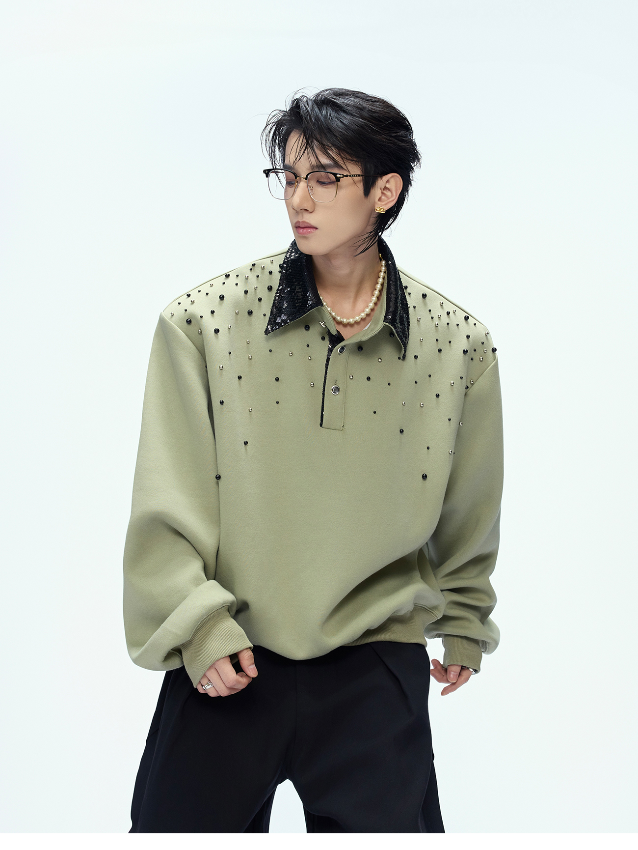 Pearl Sequin Long Sleeve Polo Shirt WN21217