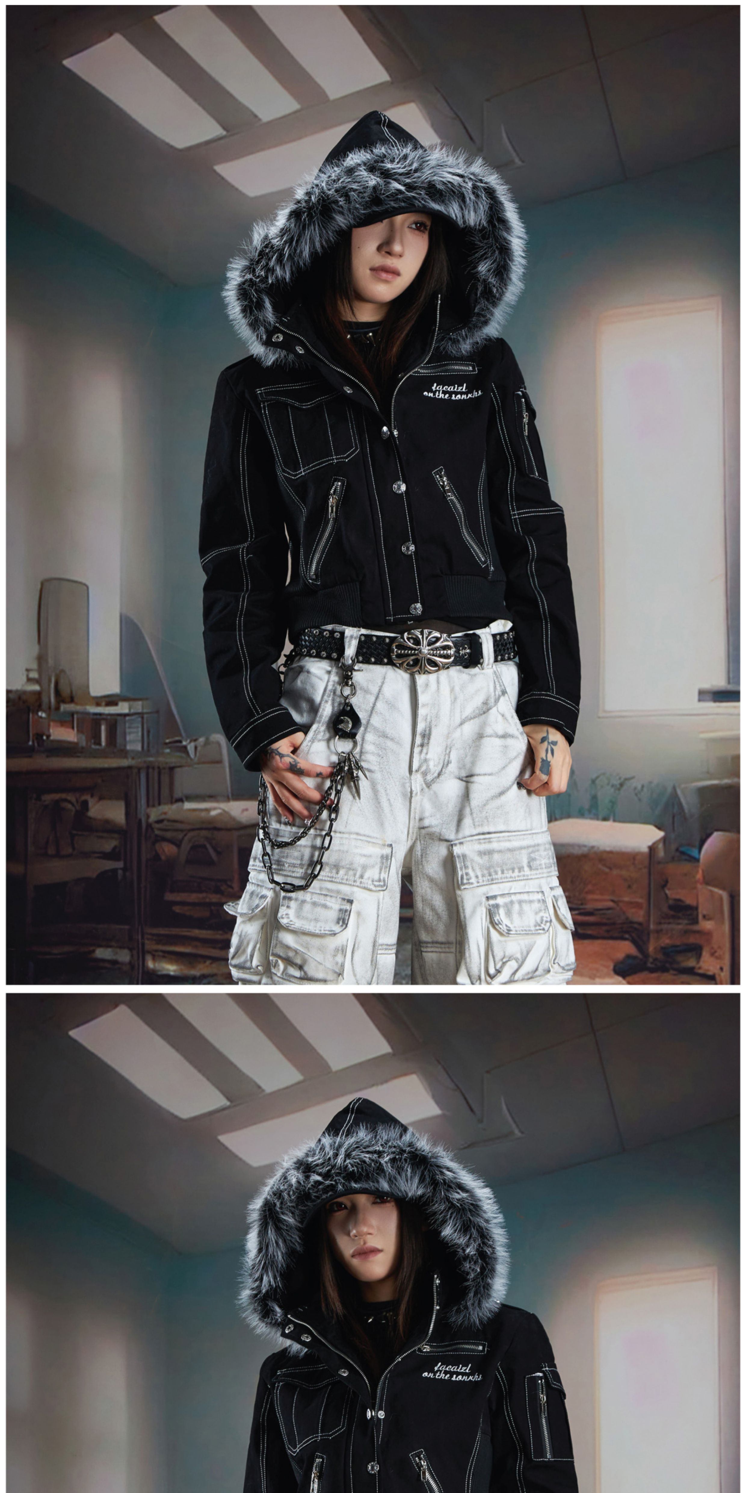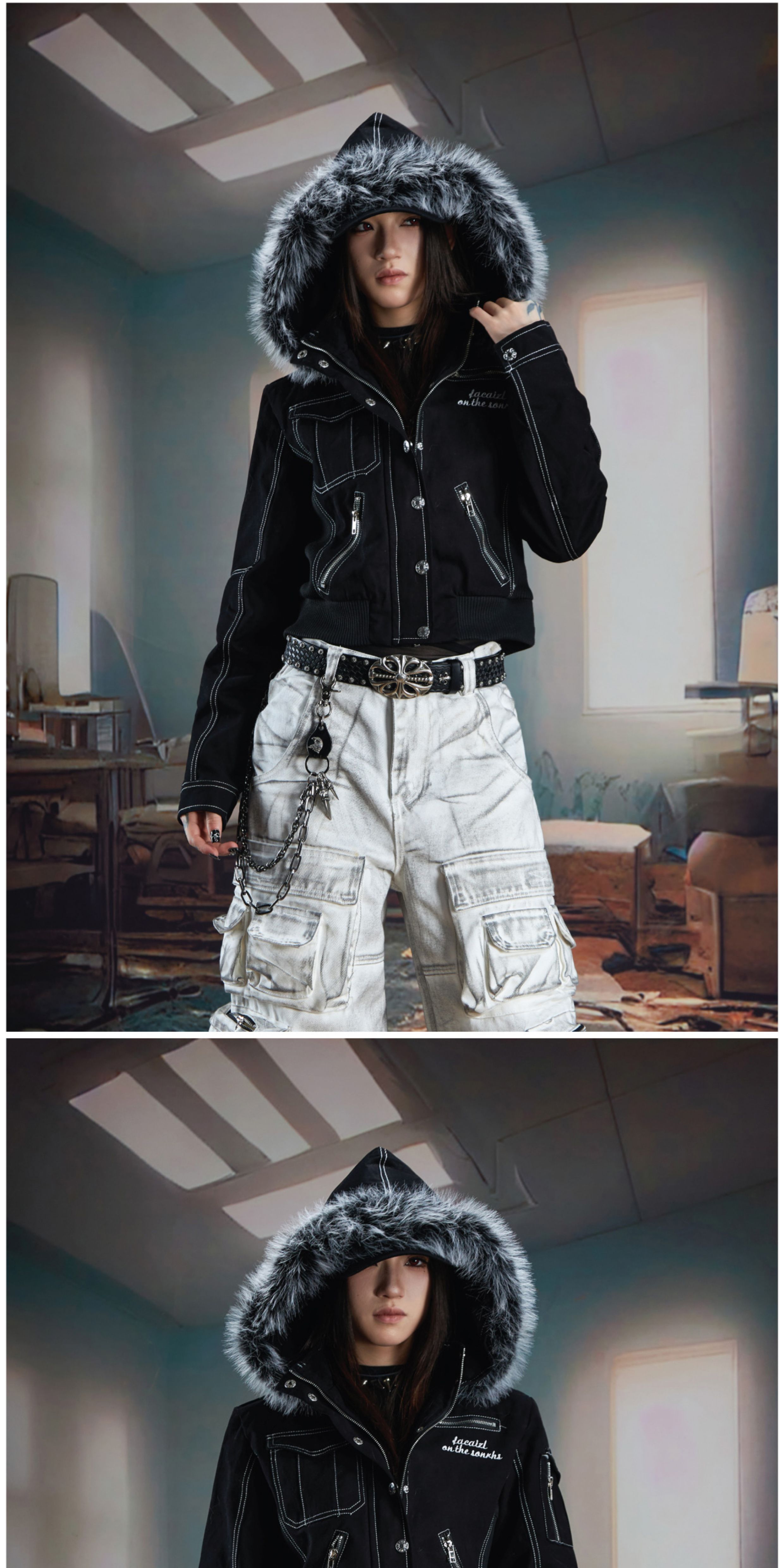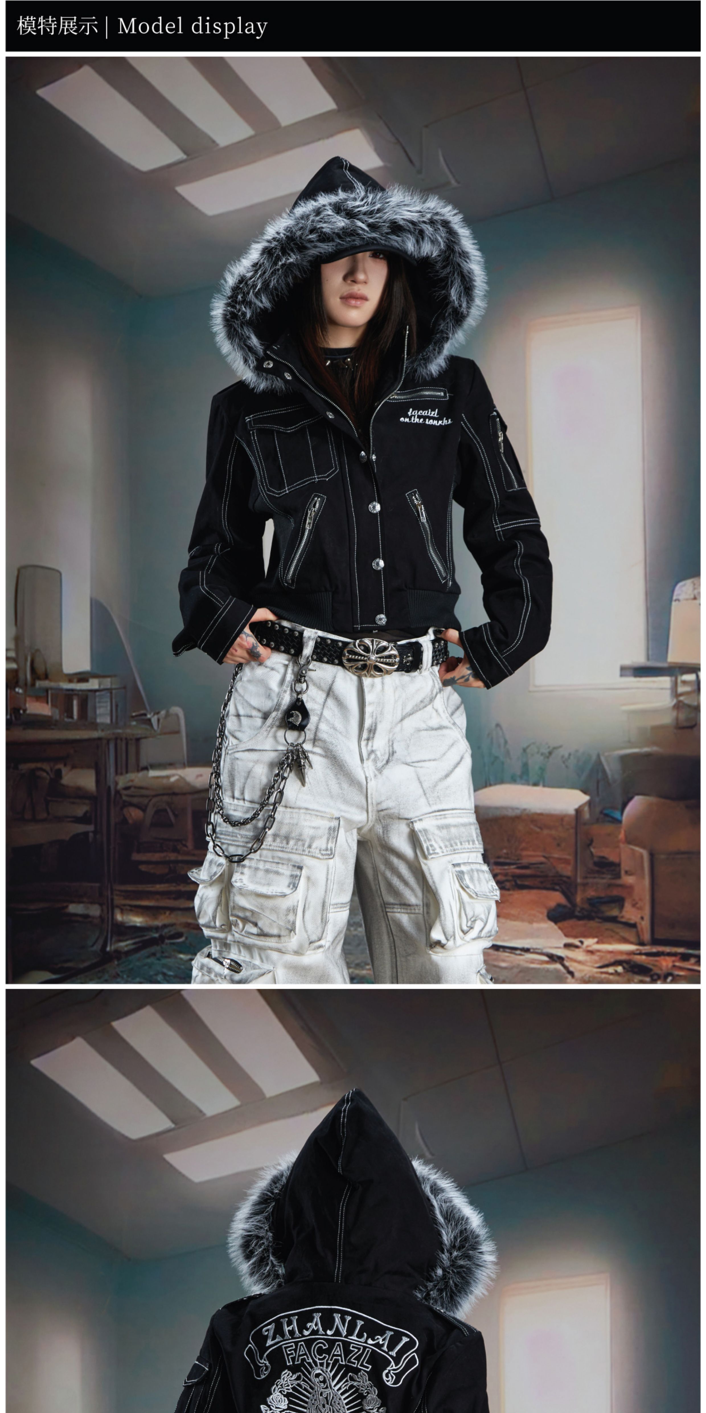 Embroidery Detachable Fur-Collar Denim Jacket WN21352