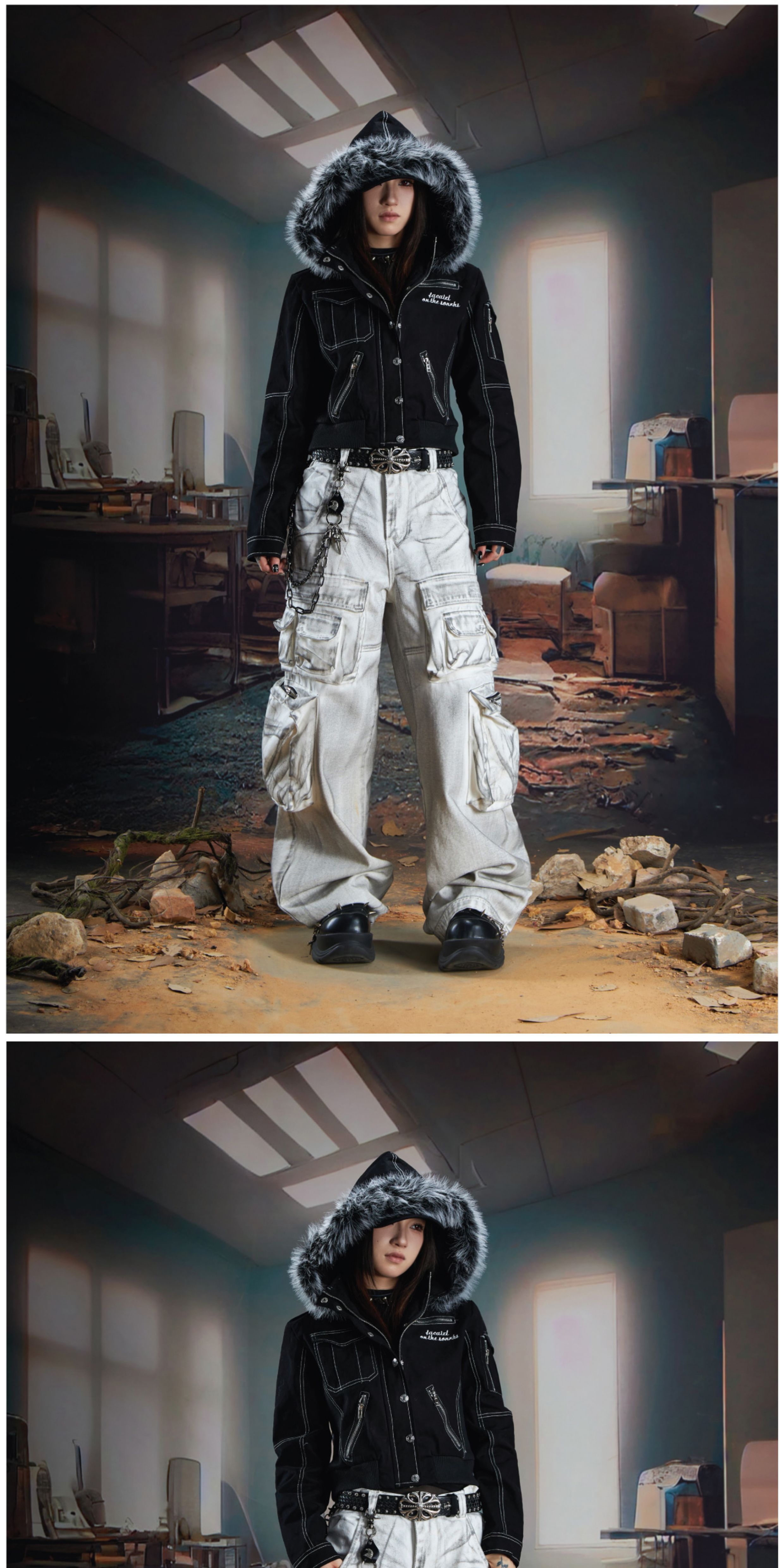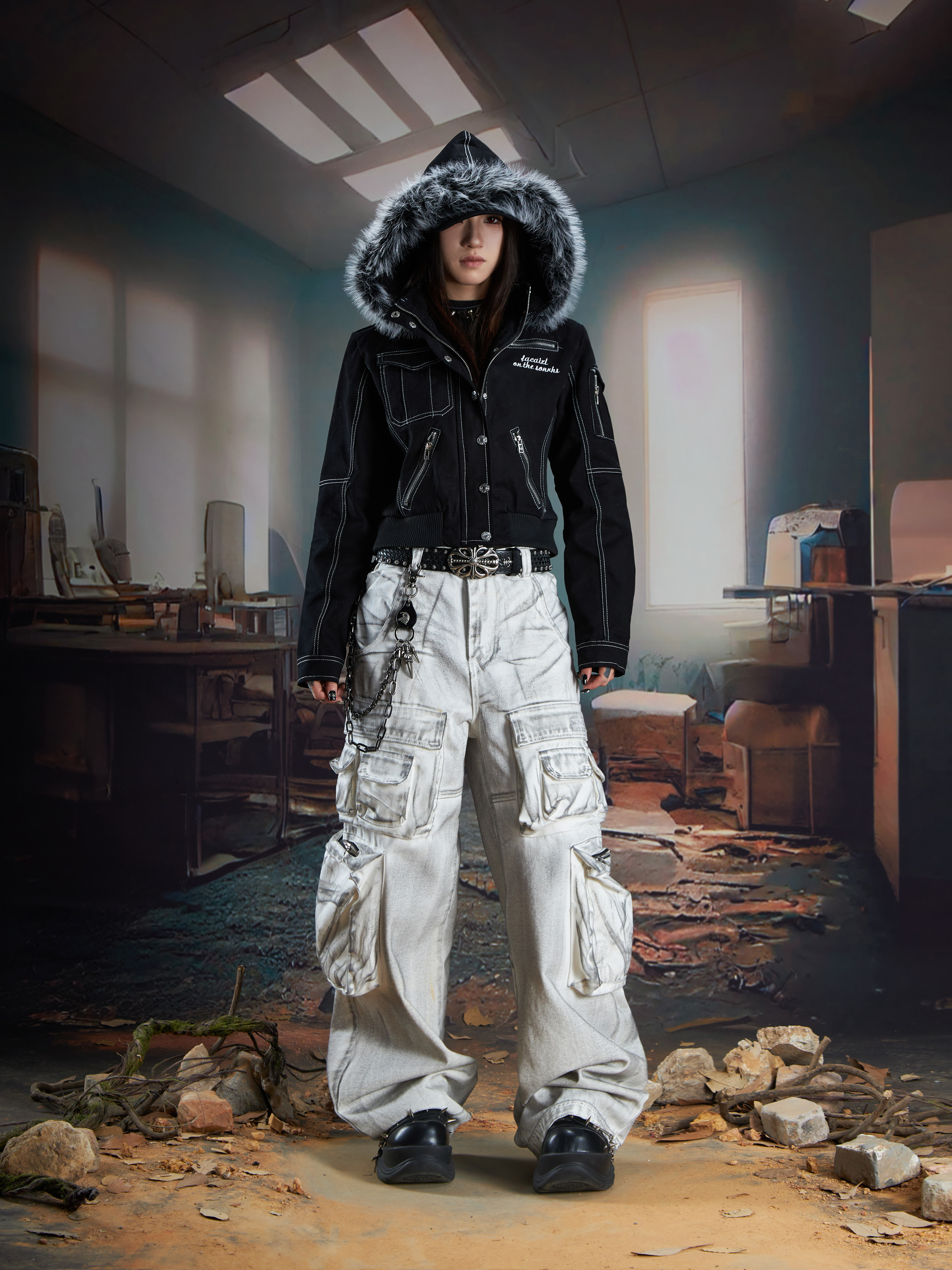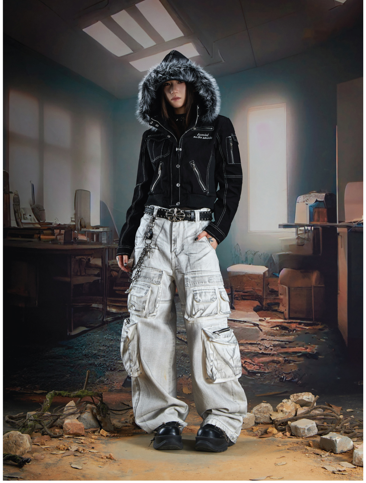 Embroidery Detachable Fur-Collar Denim Jacket WN21352