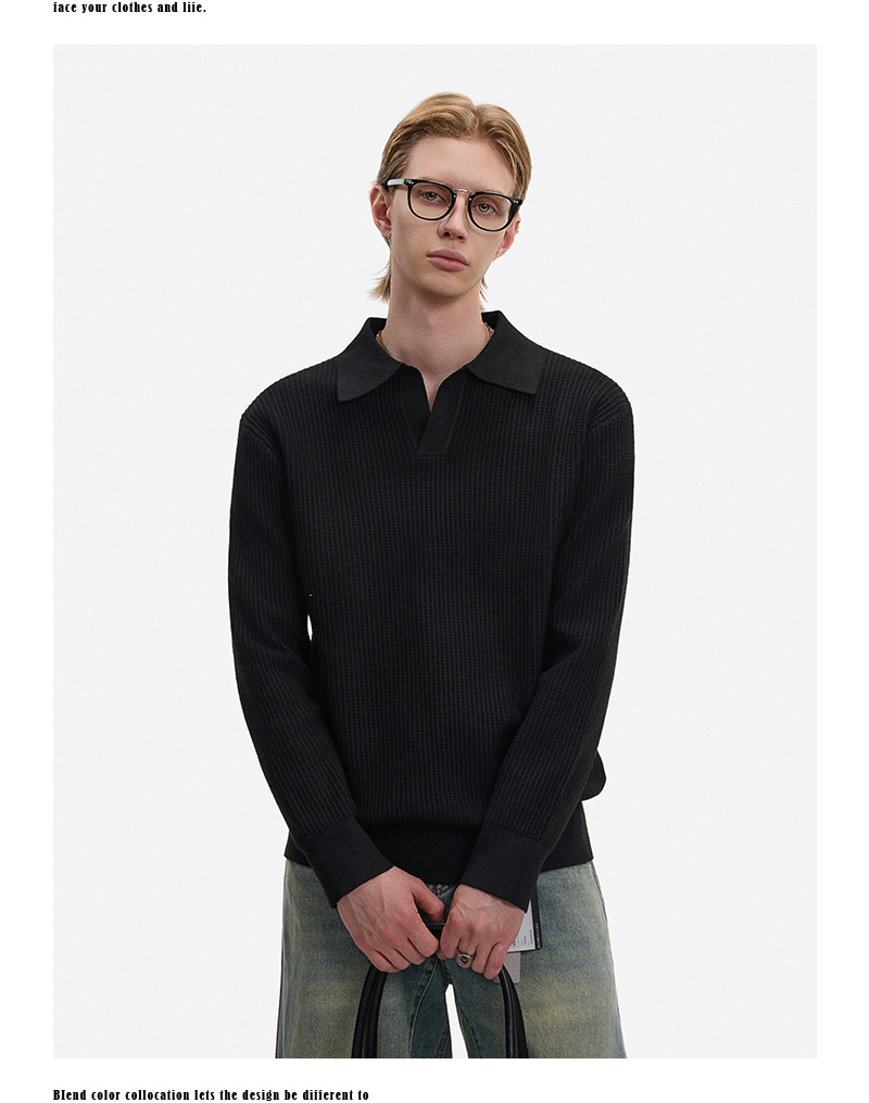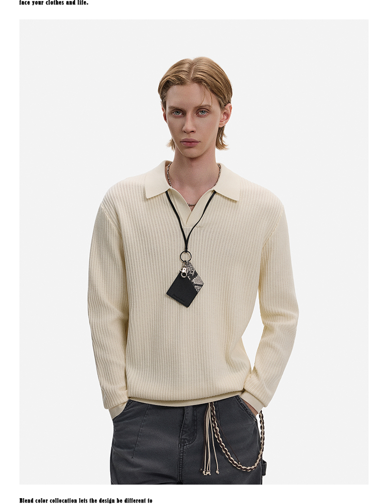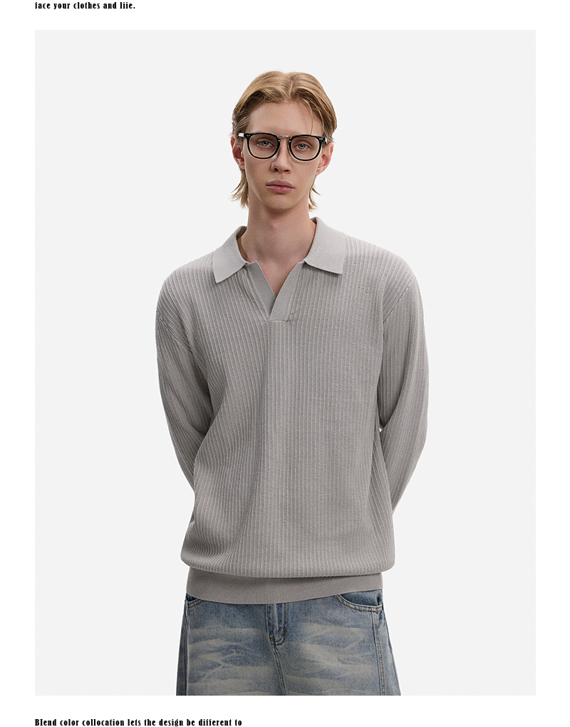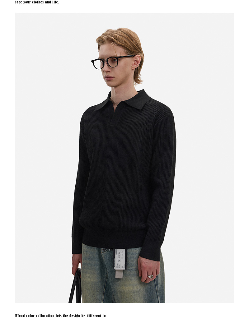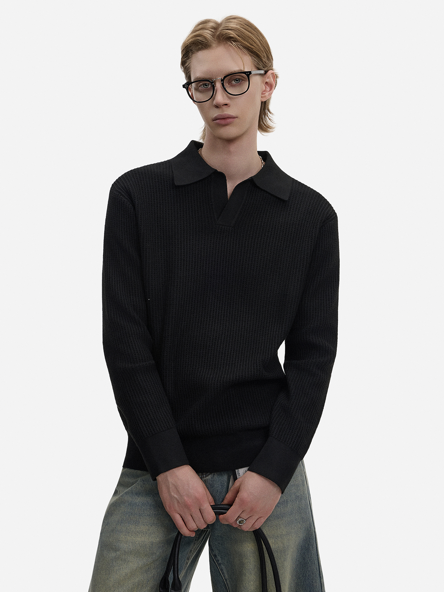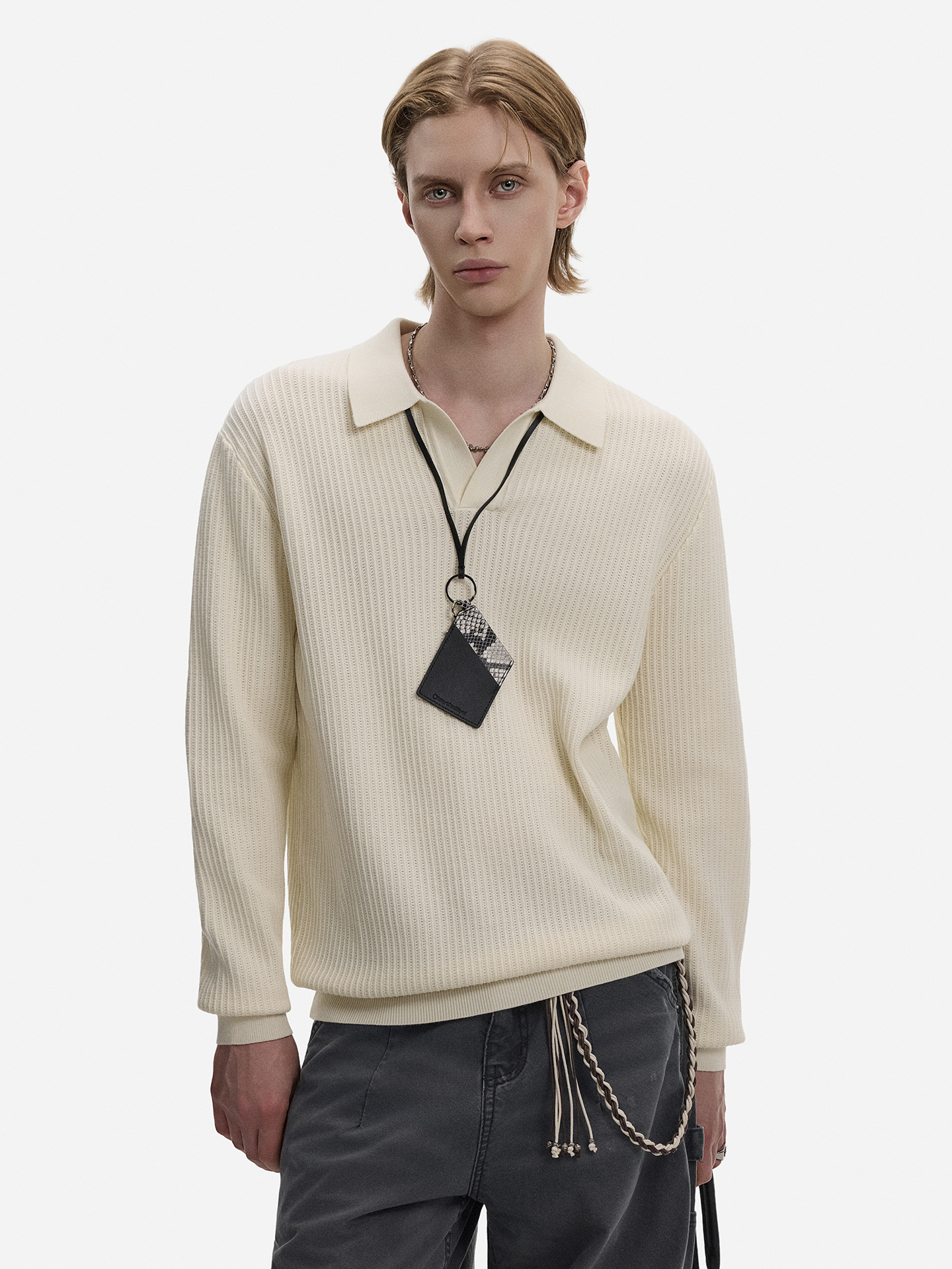 Polo-Collar Knit Long Sleeve Sweater WN21422