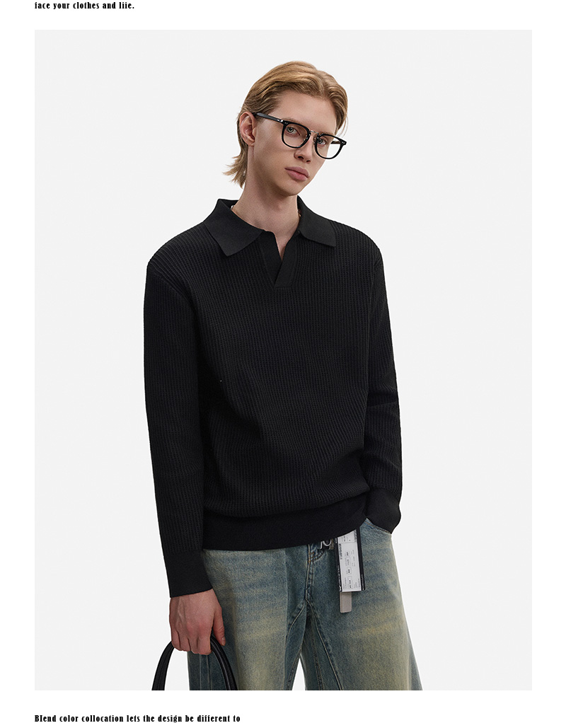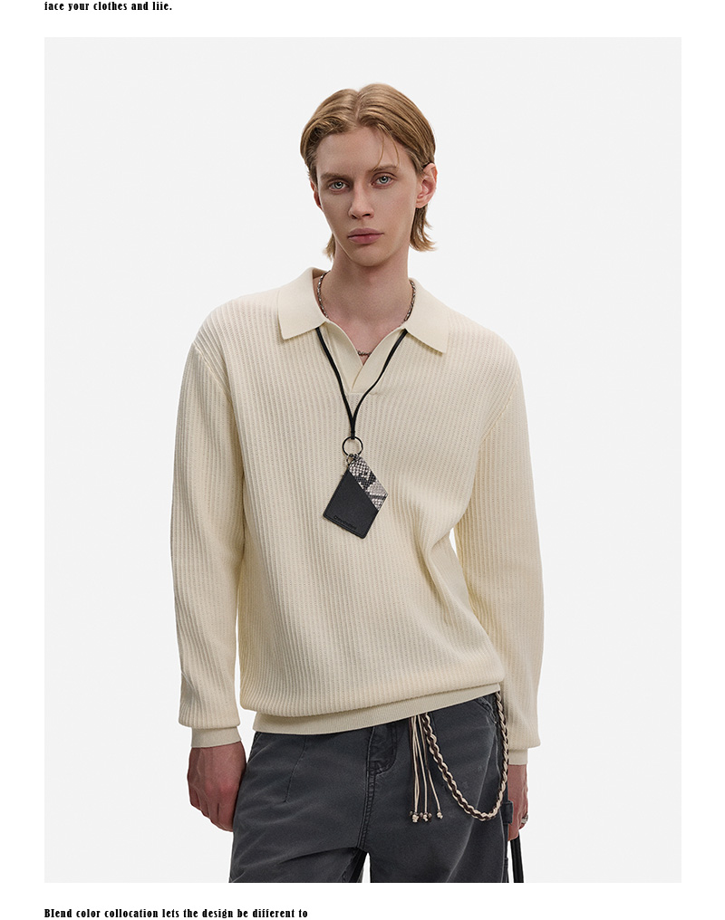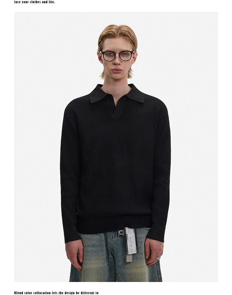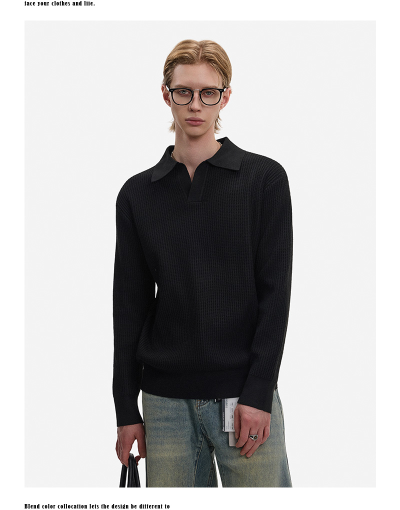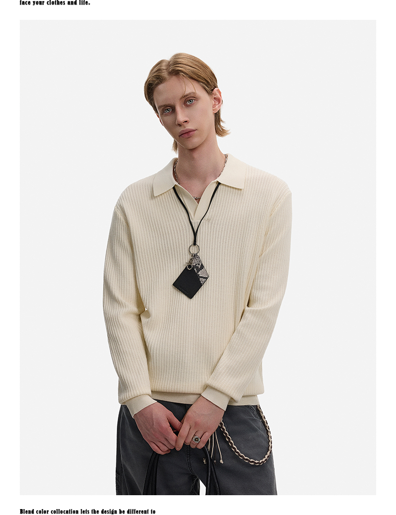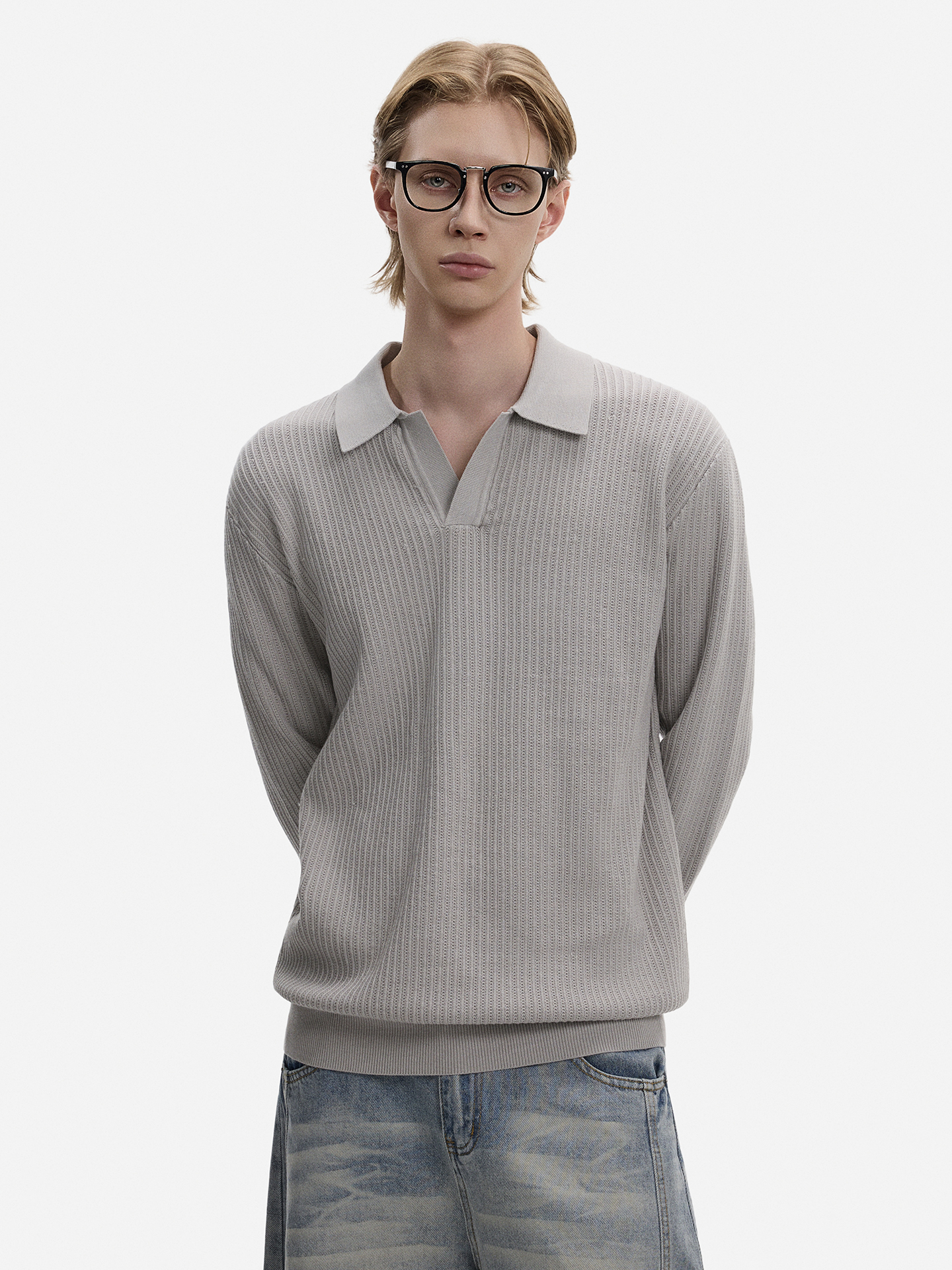 Polo-Collar Knit Long Sleeve Sweater WN21422