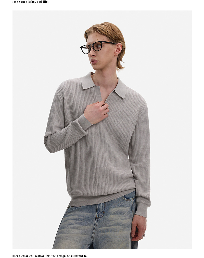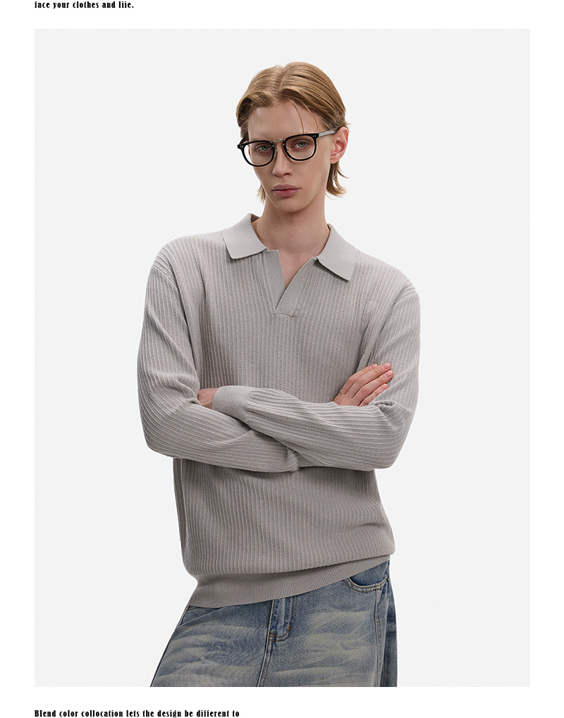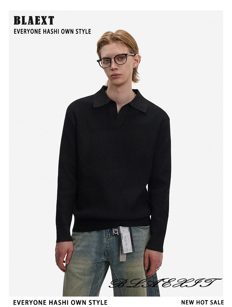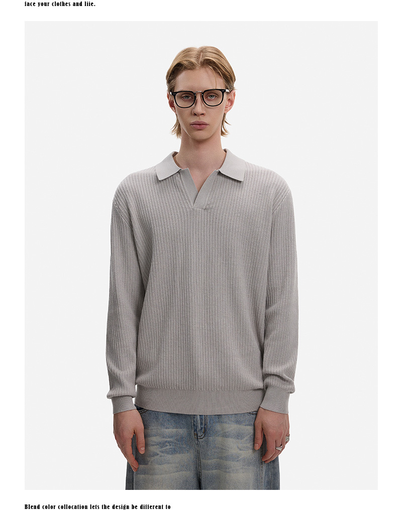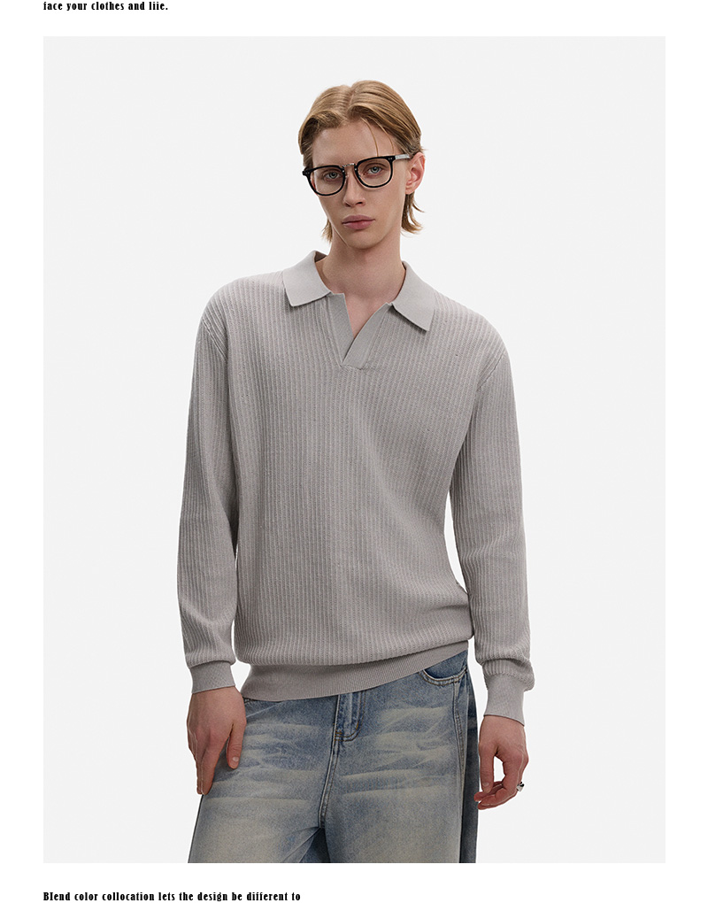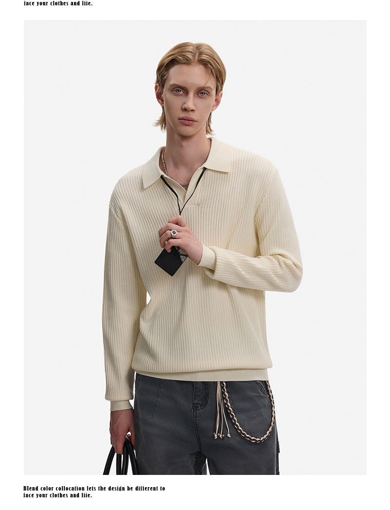 Polo-Collar Knit Long Sleeve Sweater WN21422
