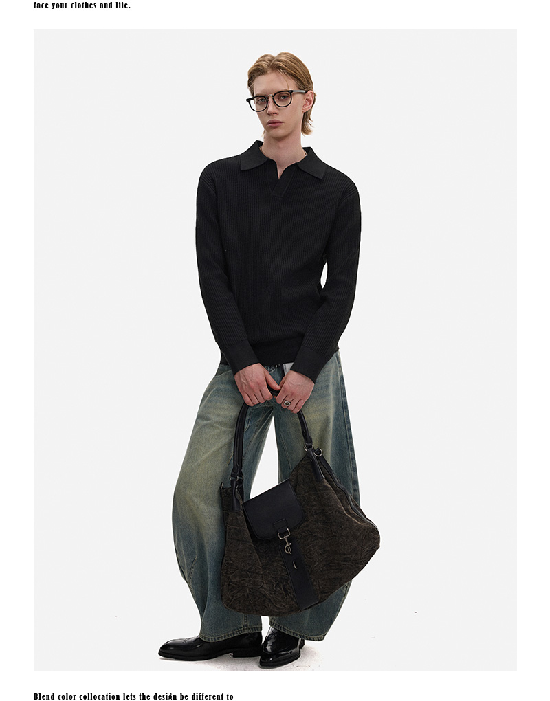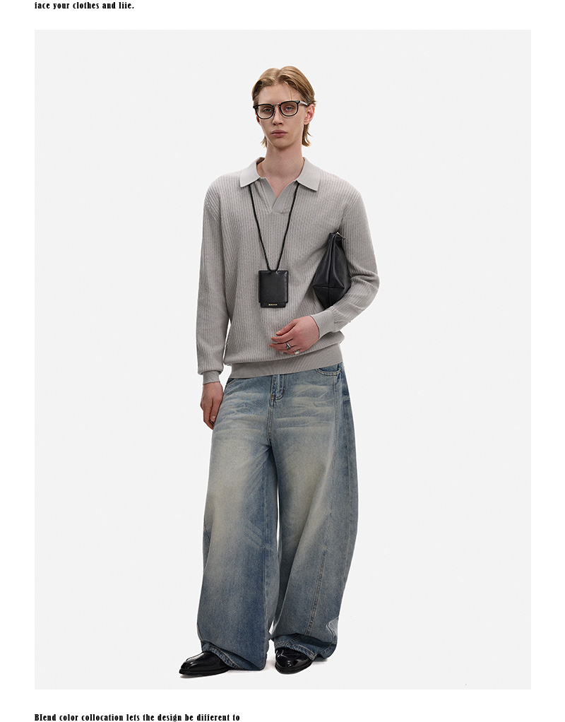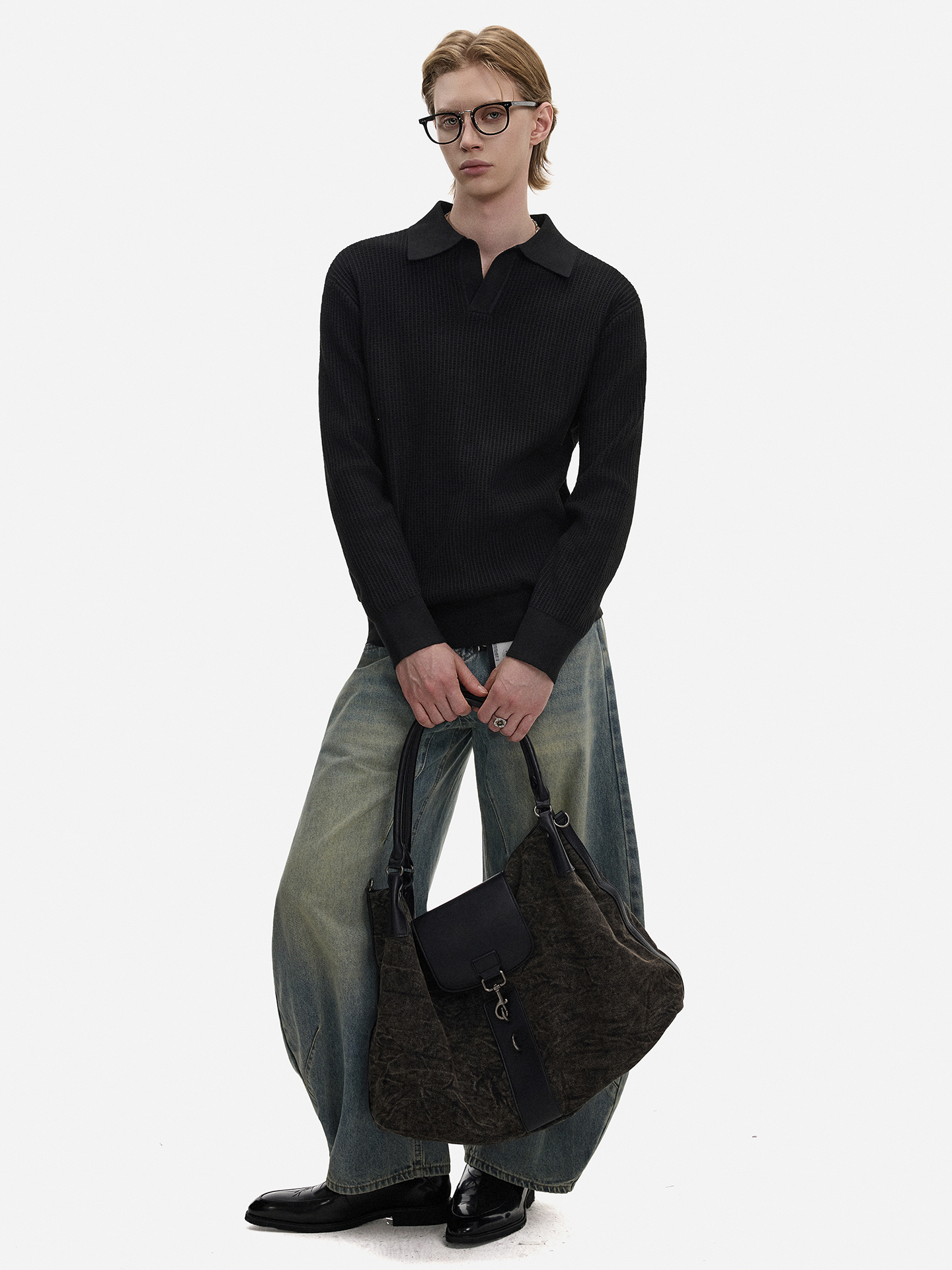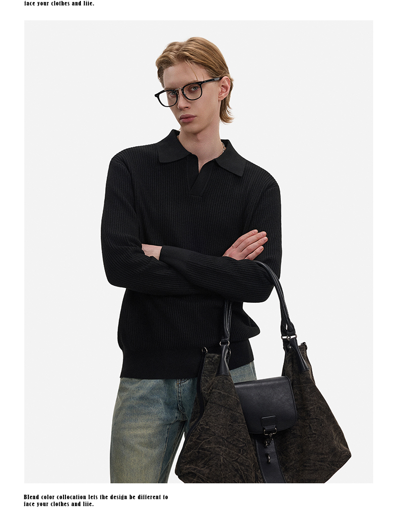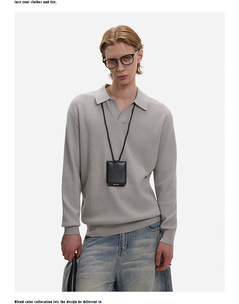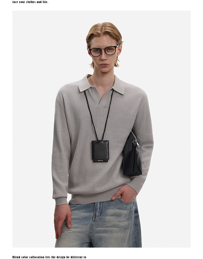 Polo-Collar Knit Long Sleeve Sweater WN21422