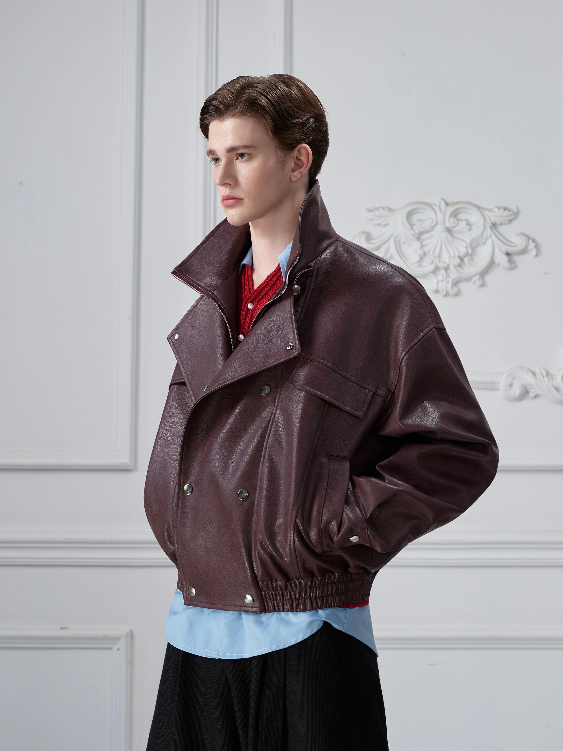 Deconstructed Fake Layered Button PU Leather Short Jacket WN21688