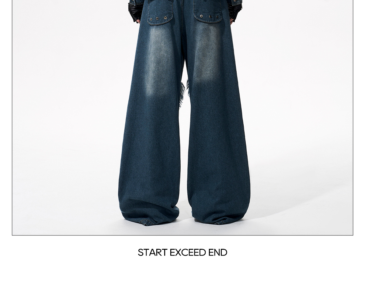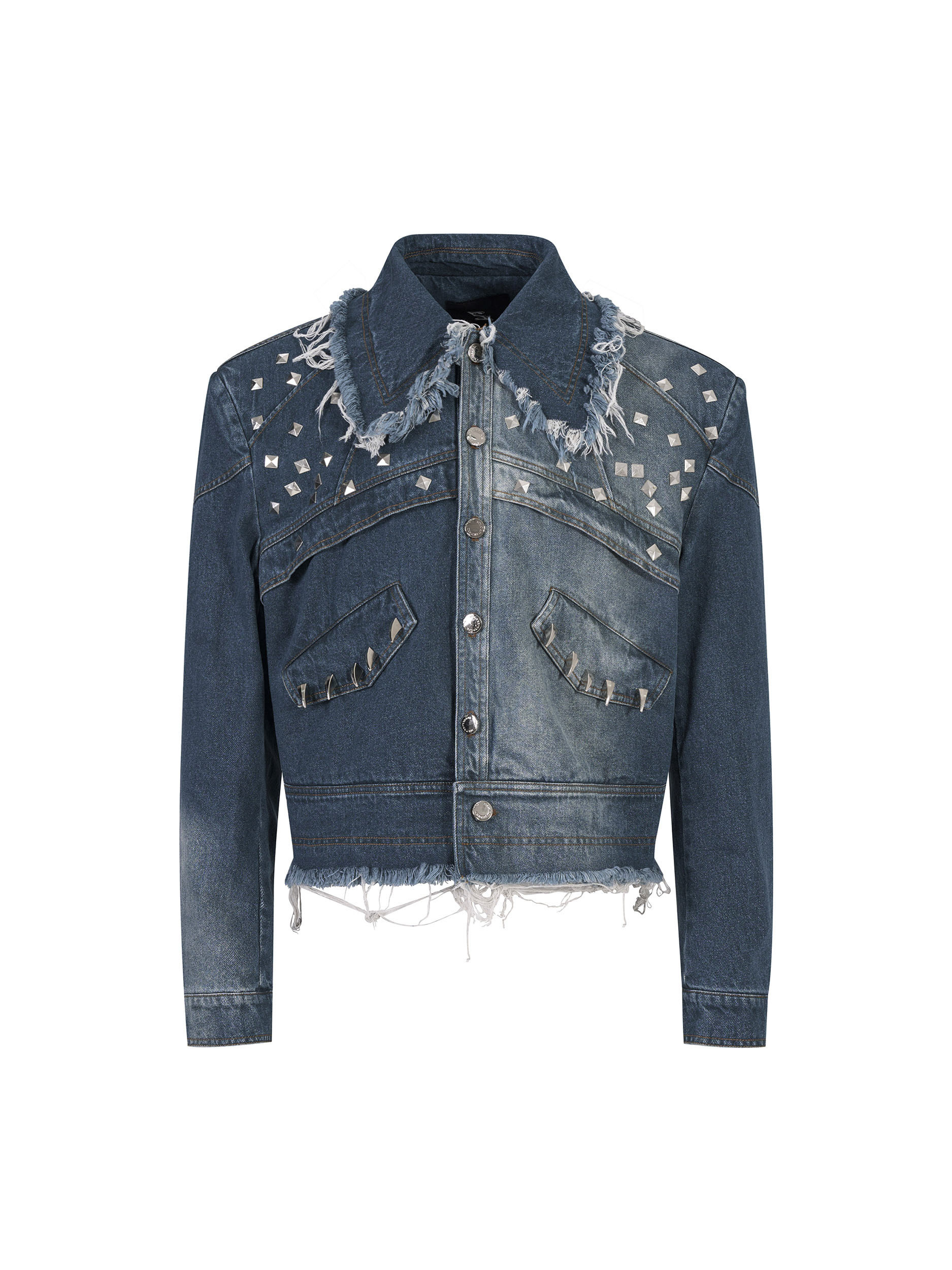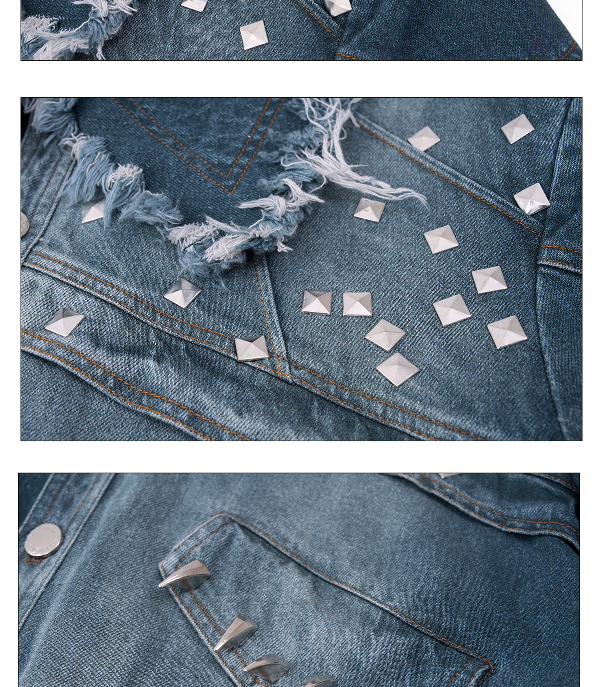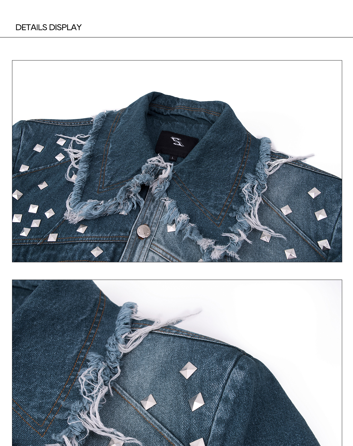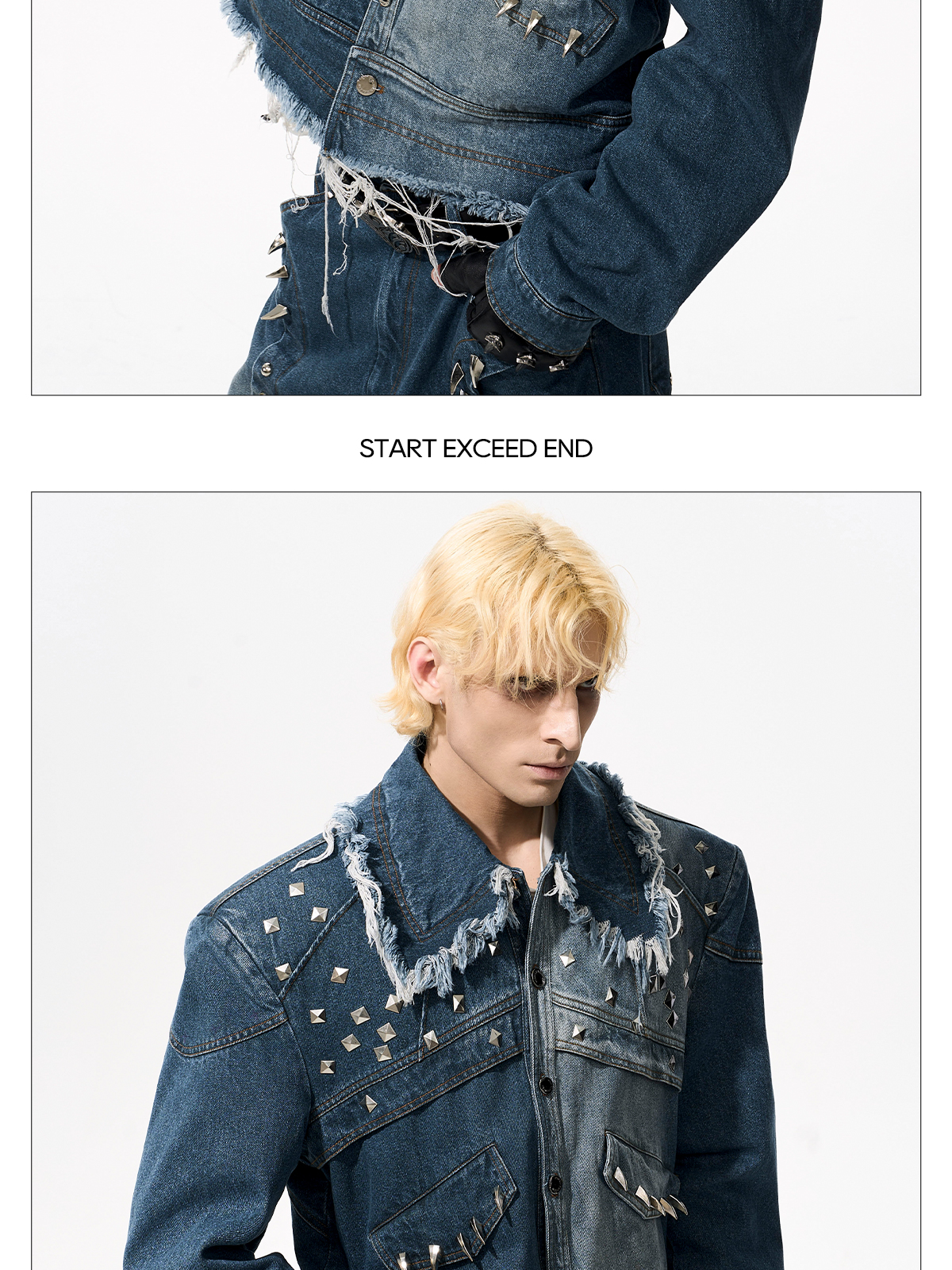 Deconstruction Rivet Design Washed Damege Denim Jacket & Denim Jeans Setup WN21969