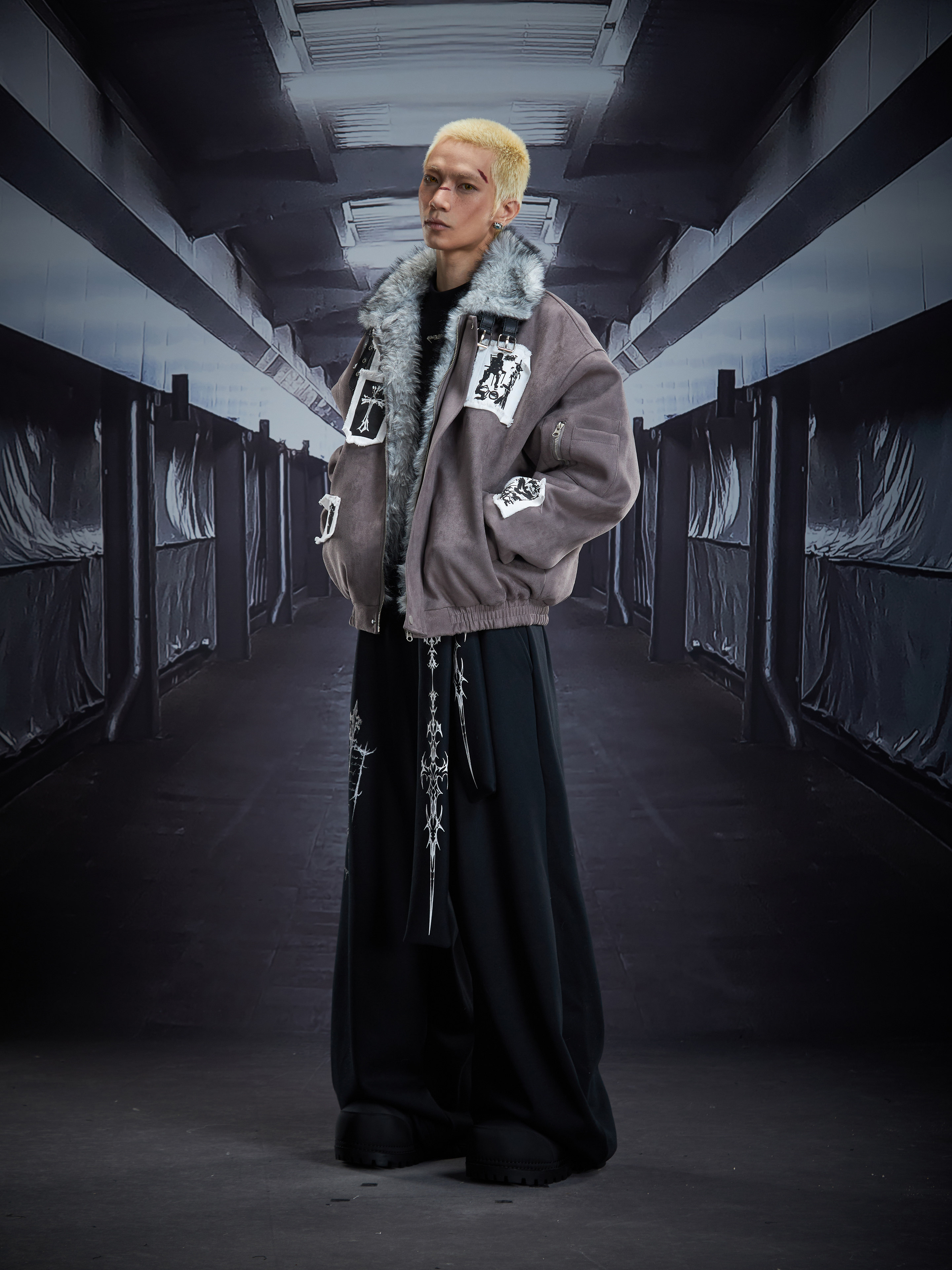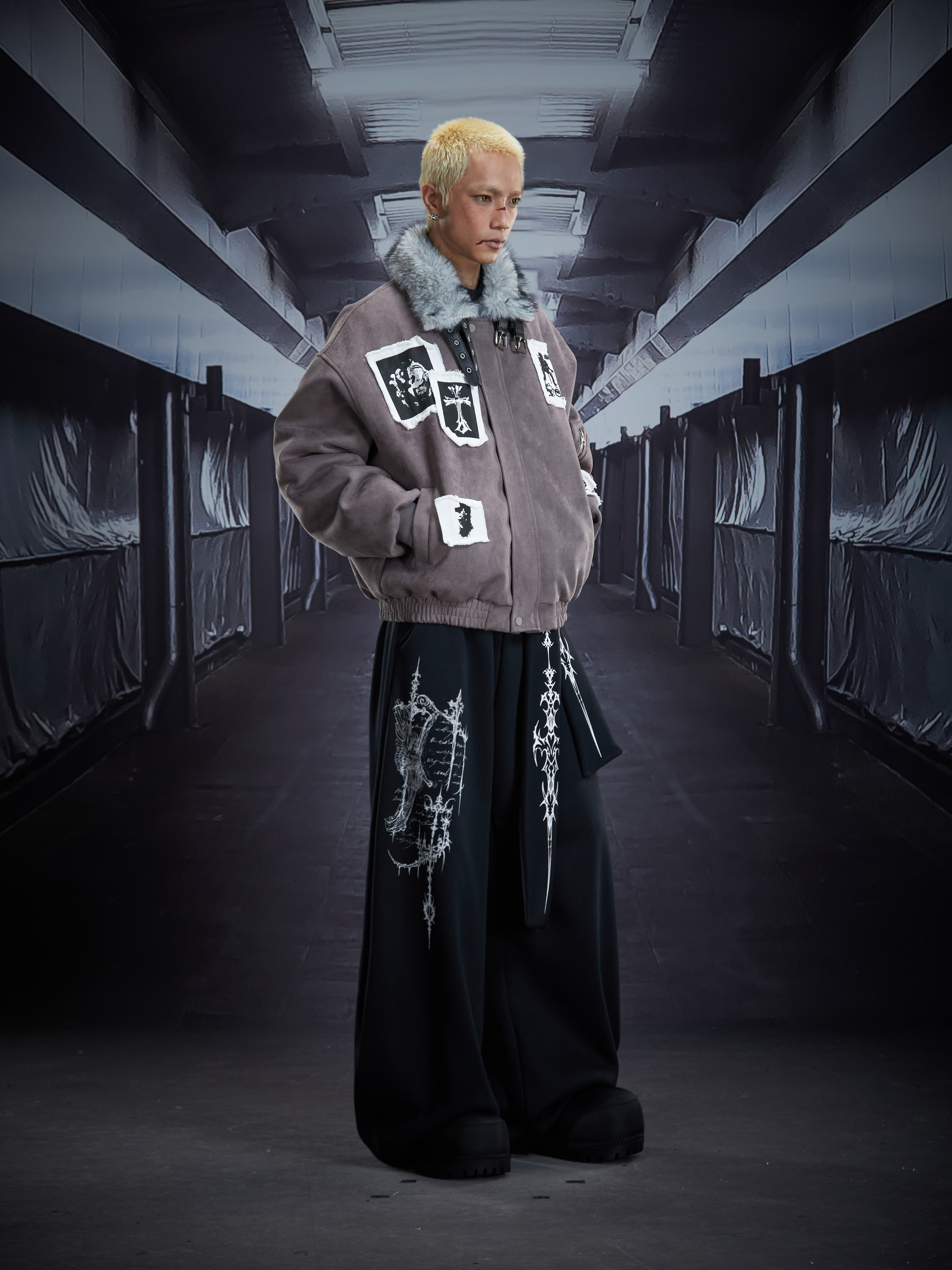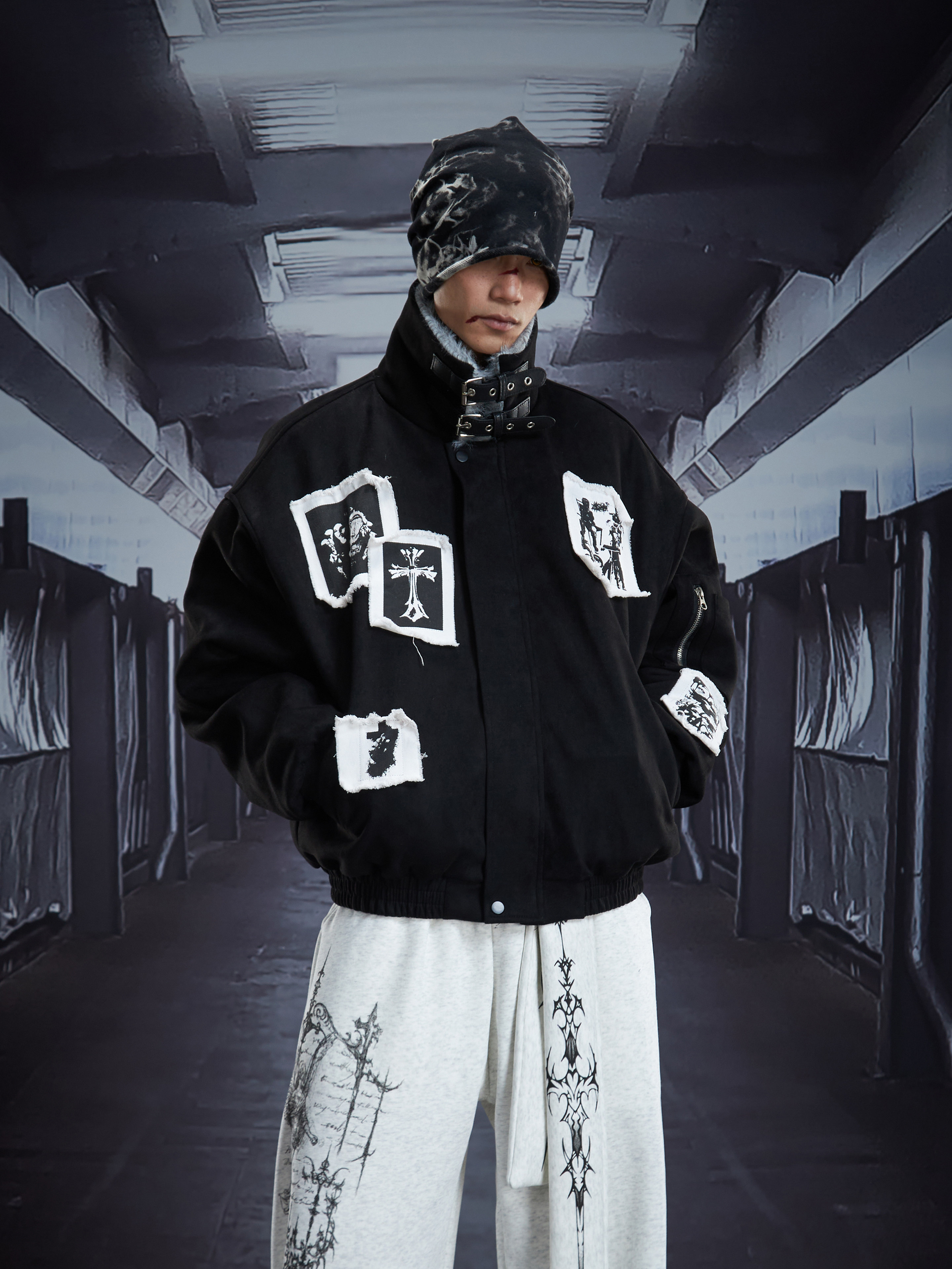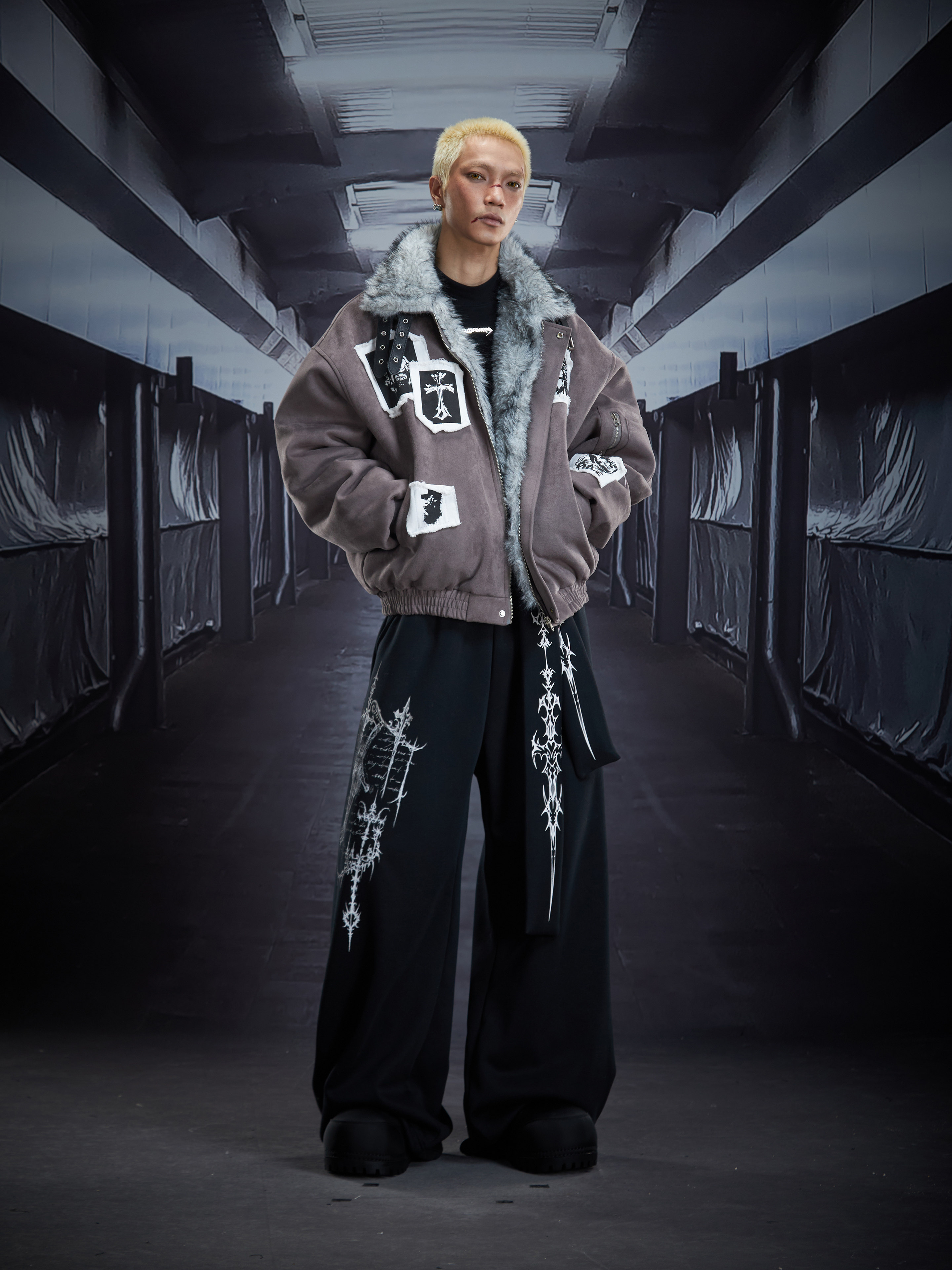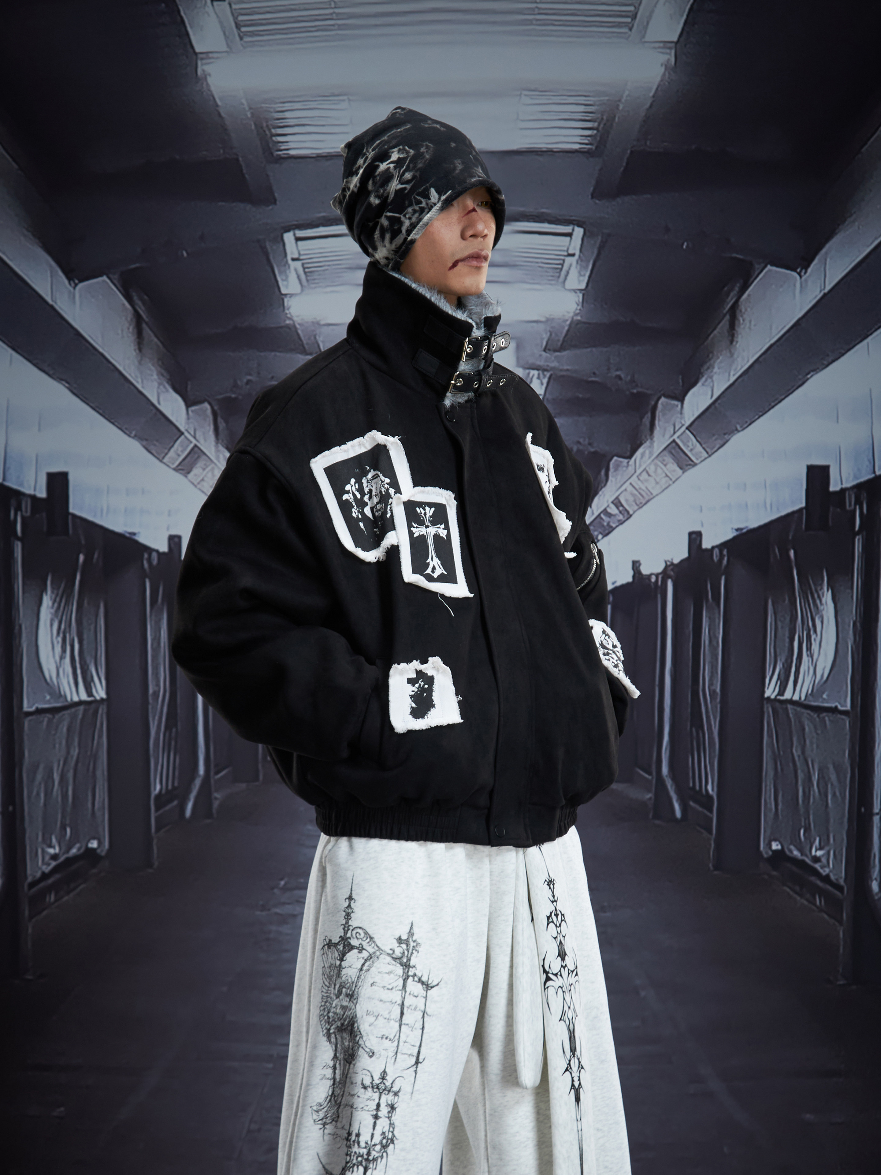 Eagle Patch Fake Fur Collar Stand Neck Padded Jacket WN22868