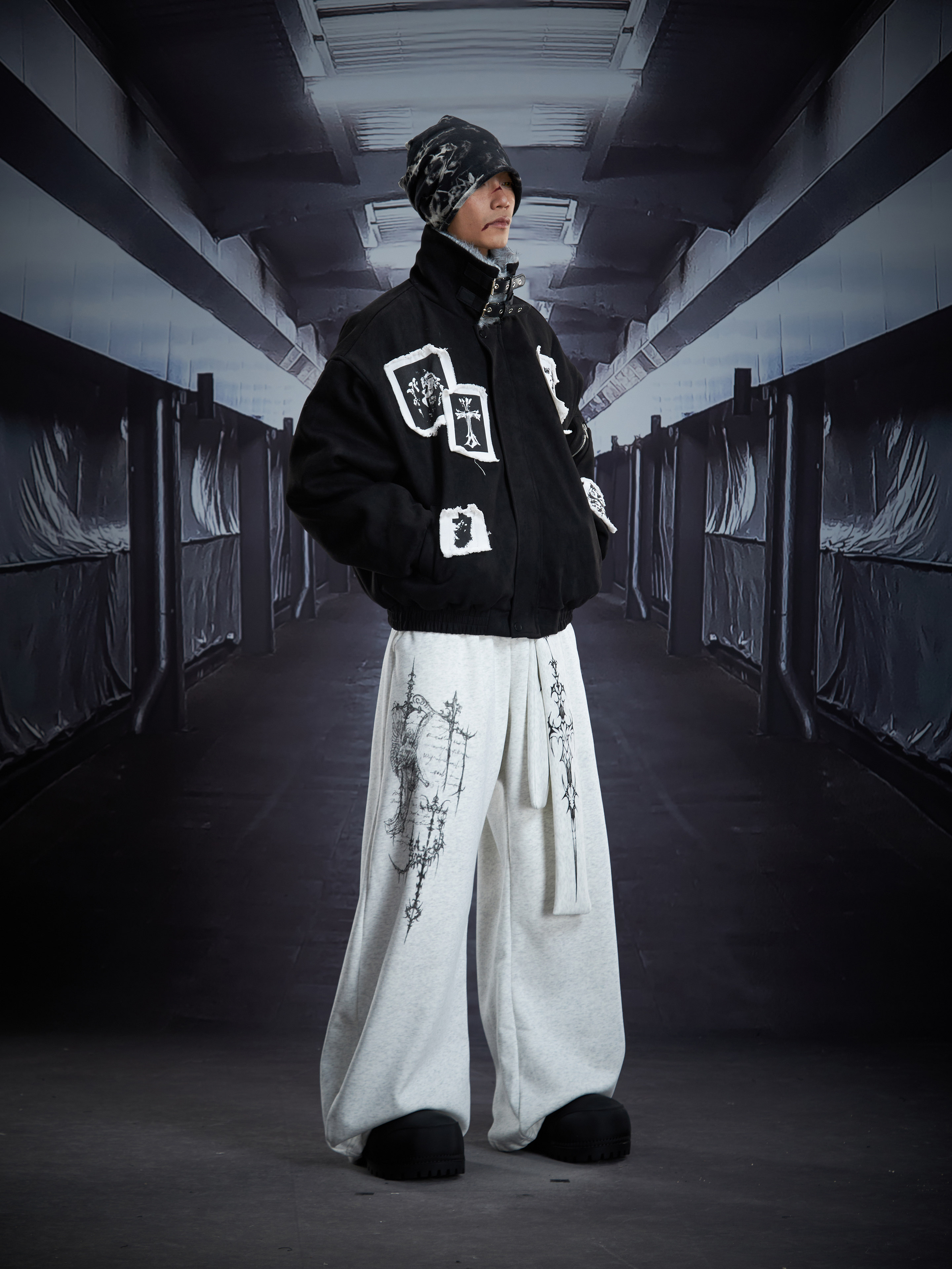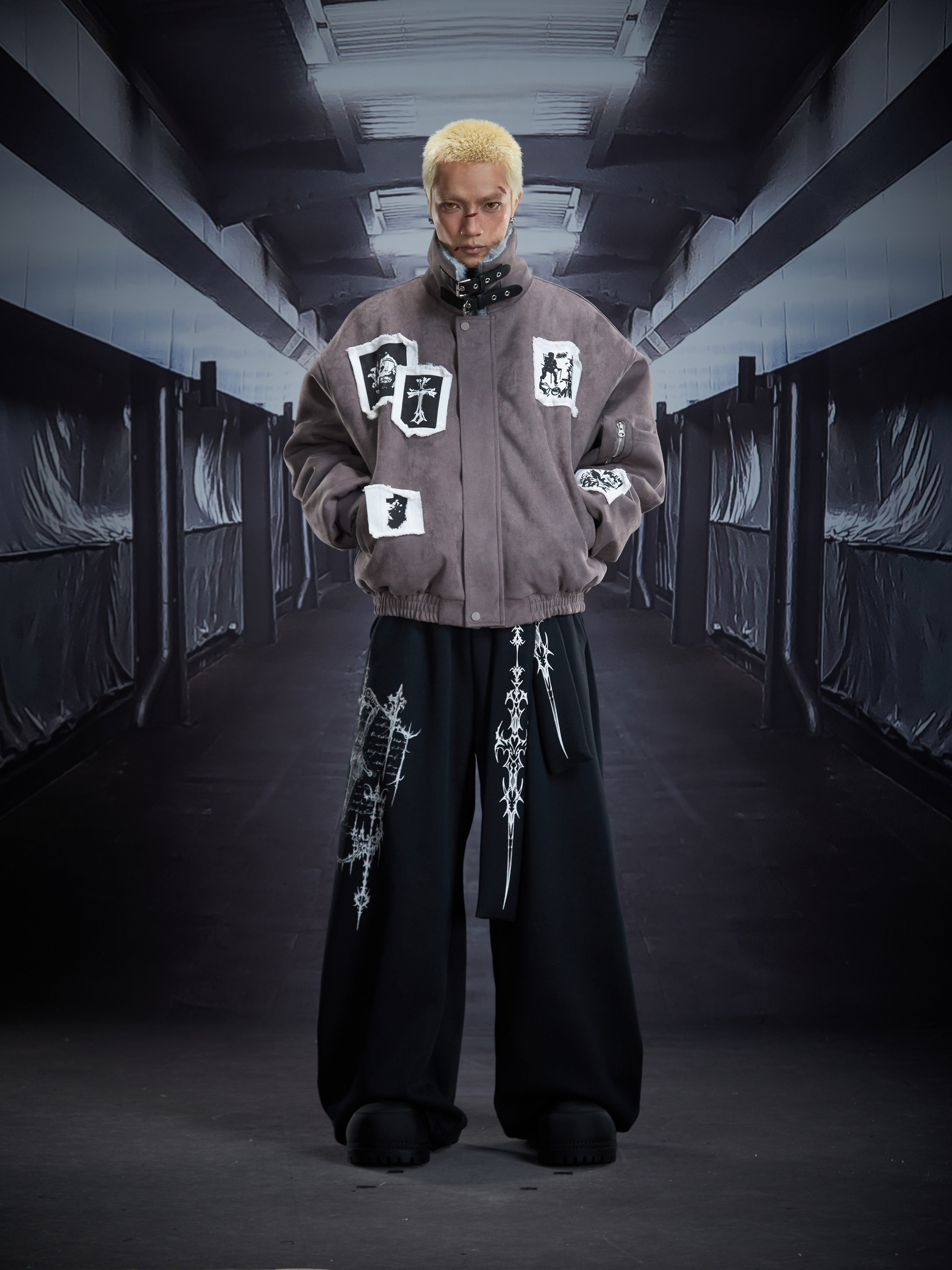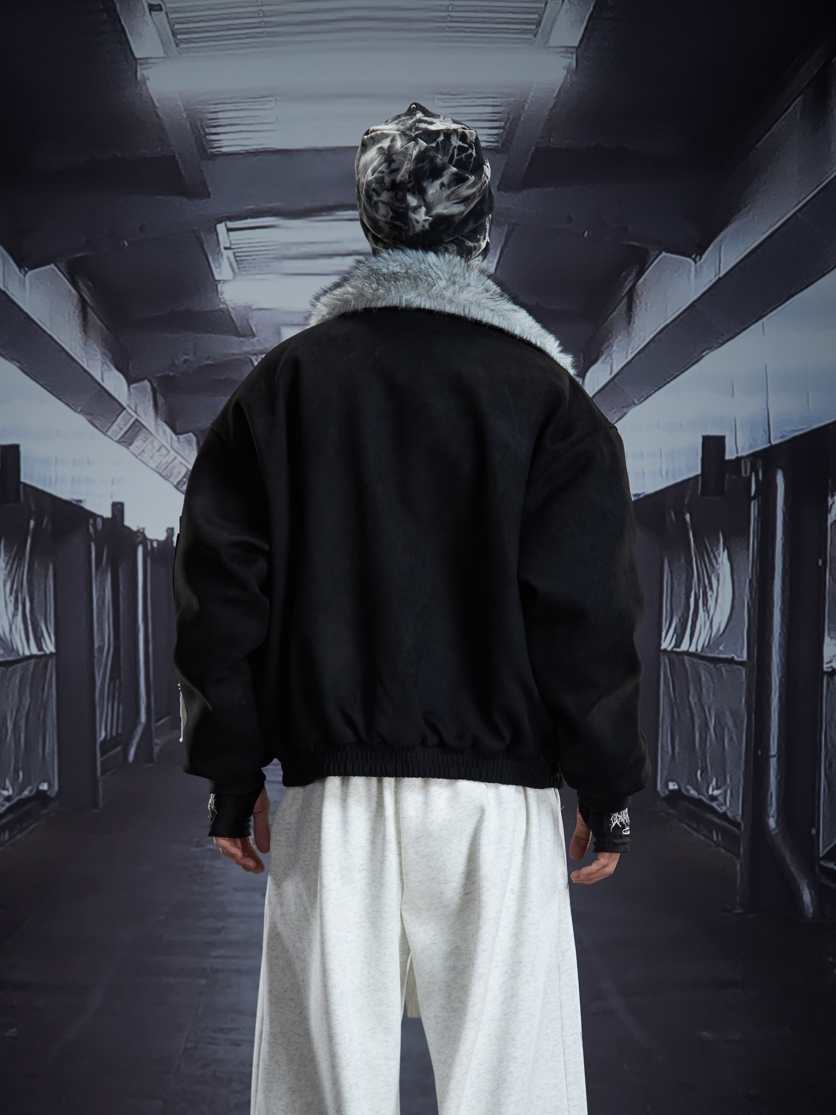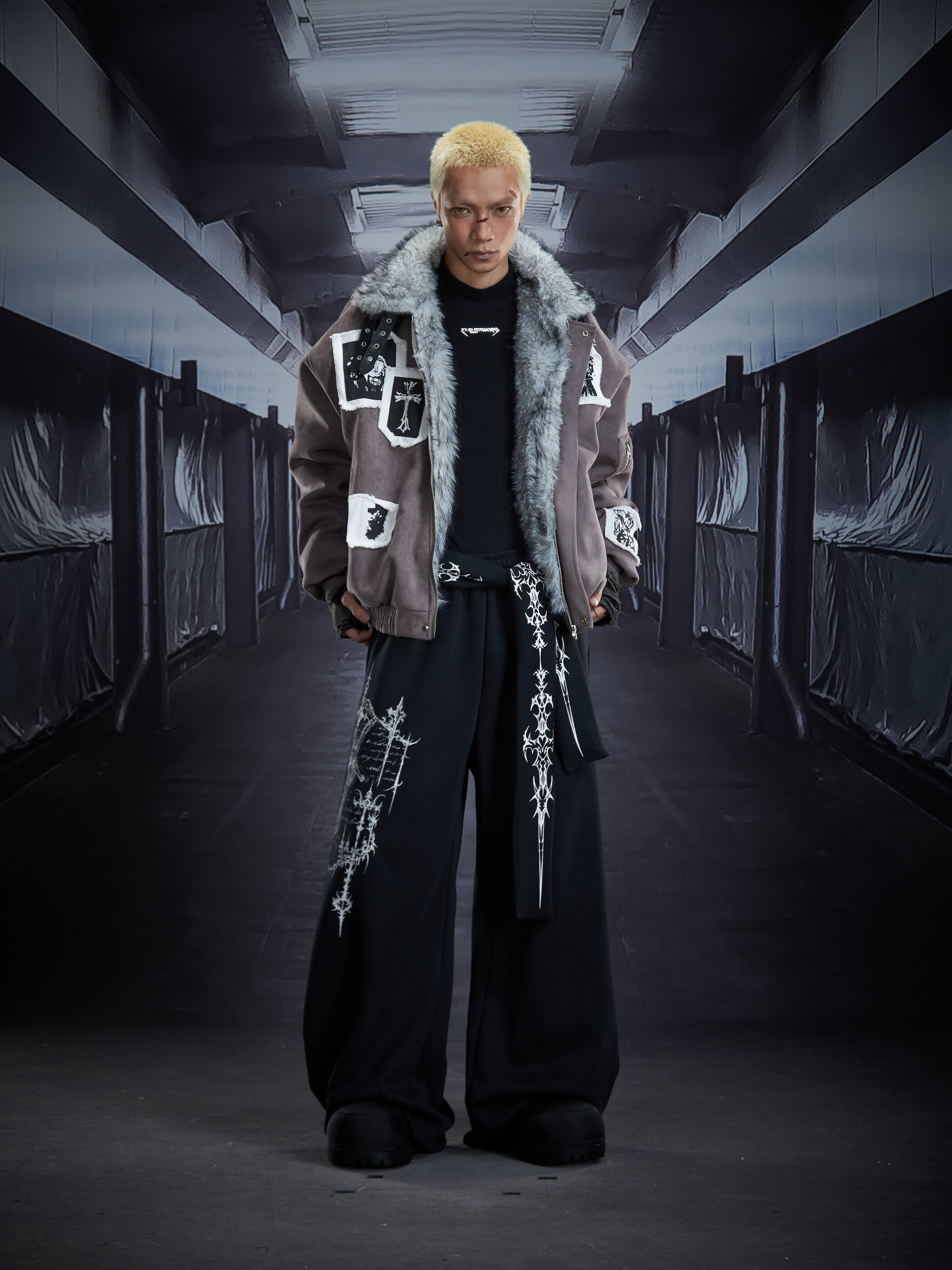 Eagle Patch Fake Fur Collar Stand Neck Padded Jacket WN22868