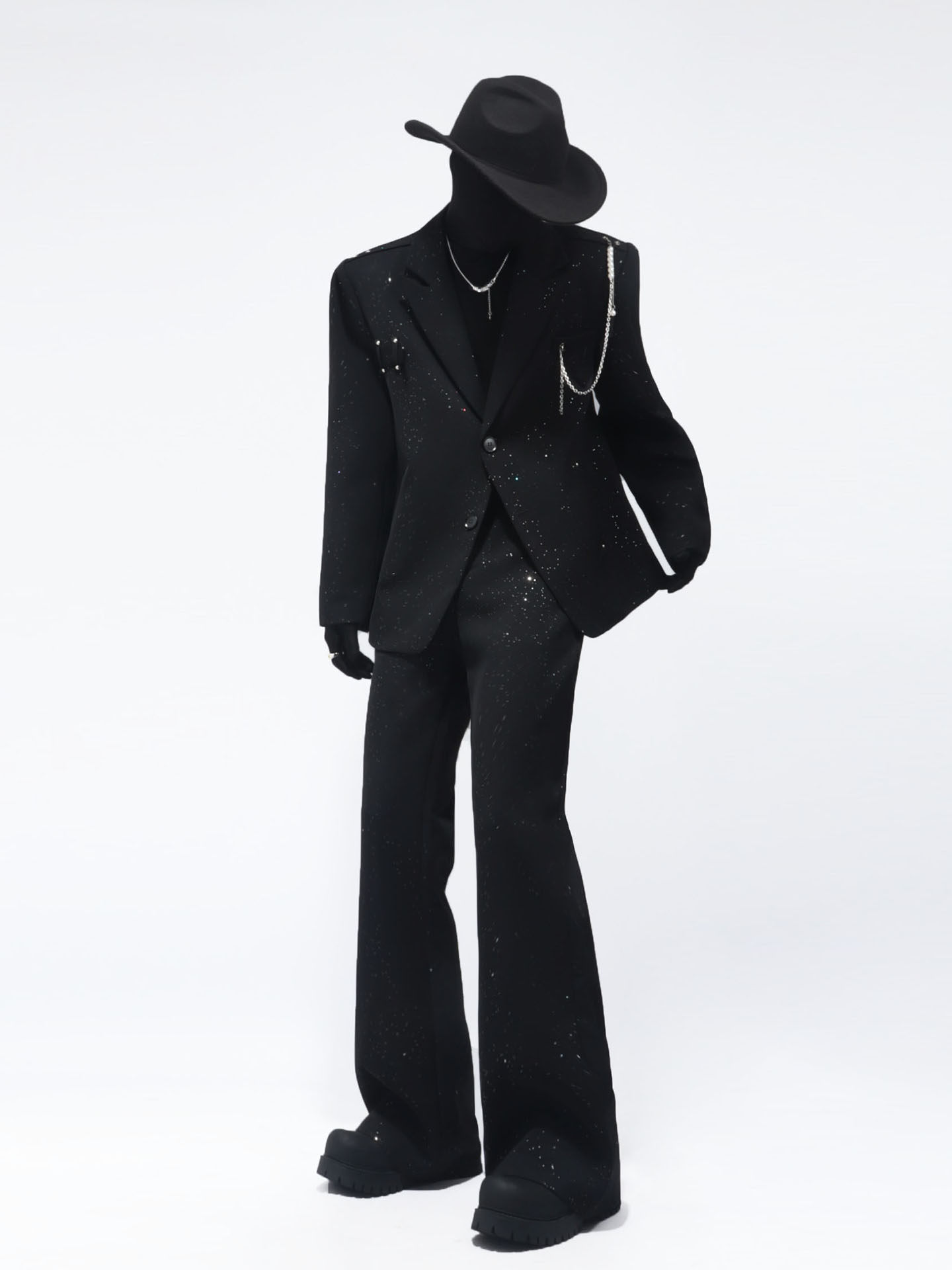 Metal Chain Shoulder-pad Oversize Tailored Jacket & Wide Leg Trousers Setup WN23742