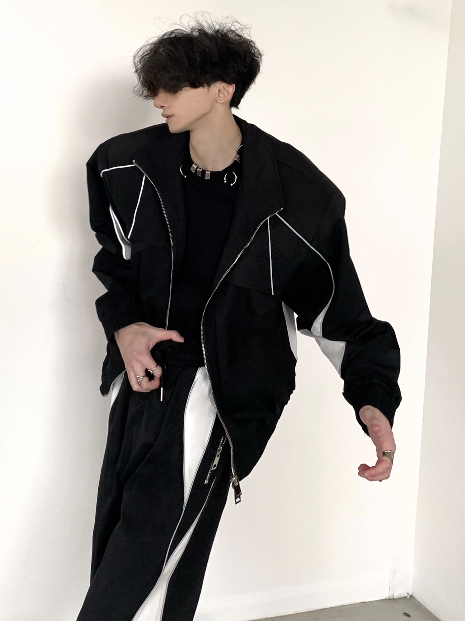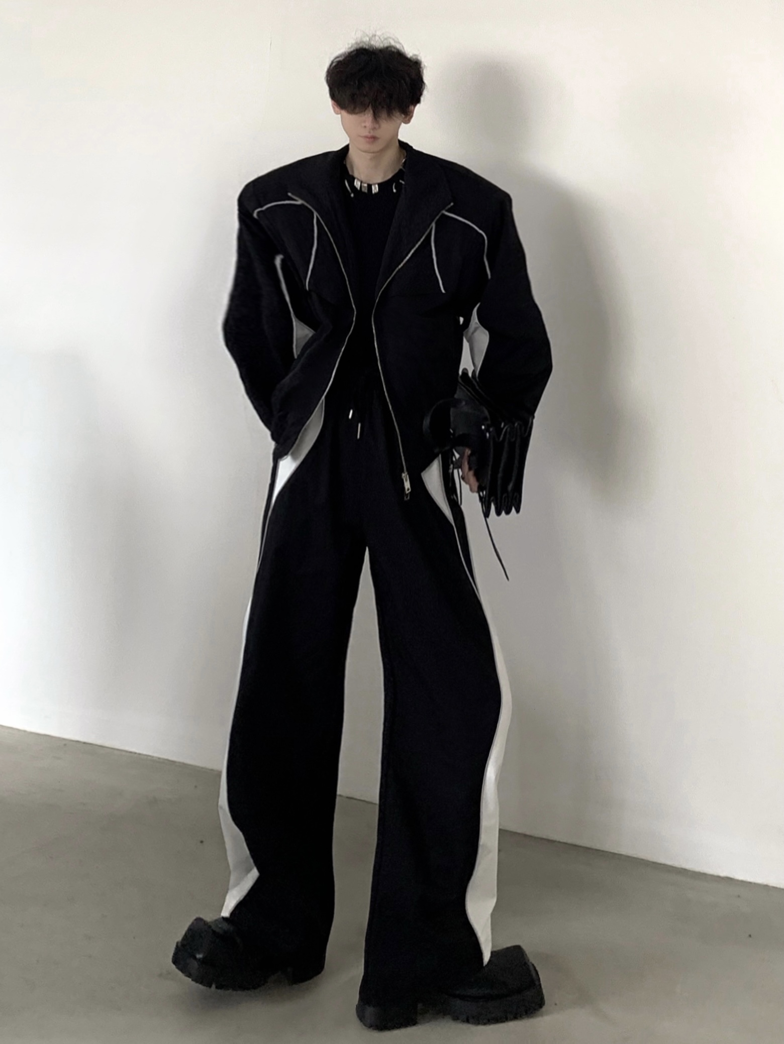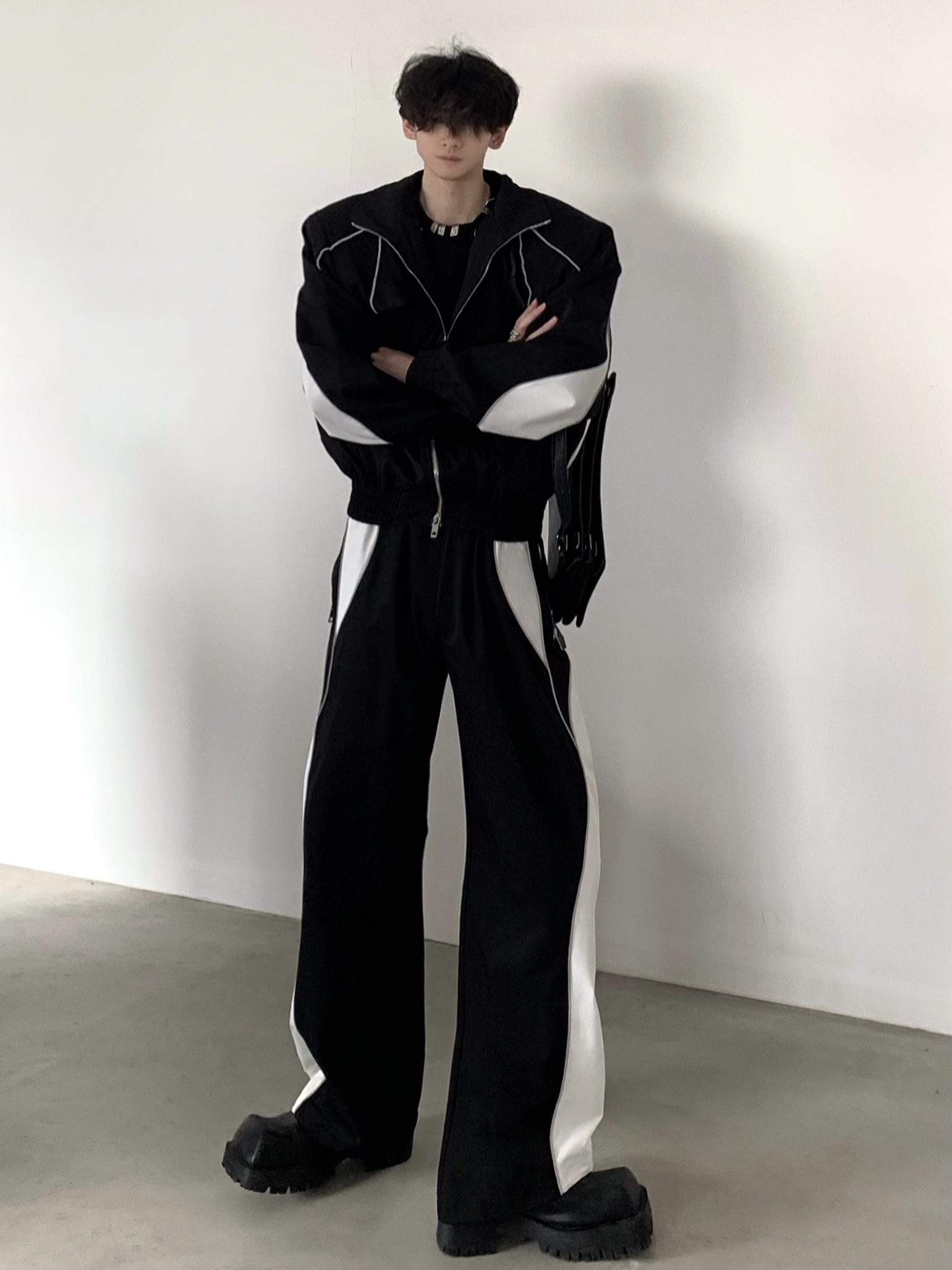 Zipper Shoulder Pad Sporty Jacket & Wide-Leg Pants Setup WN5973